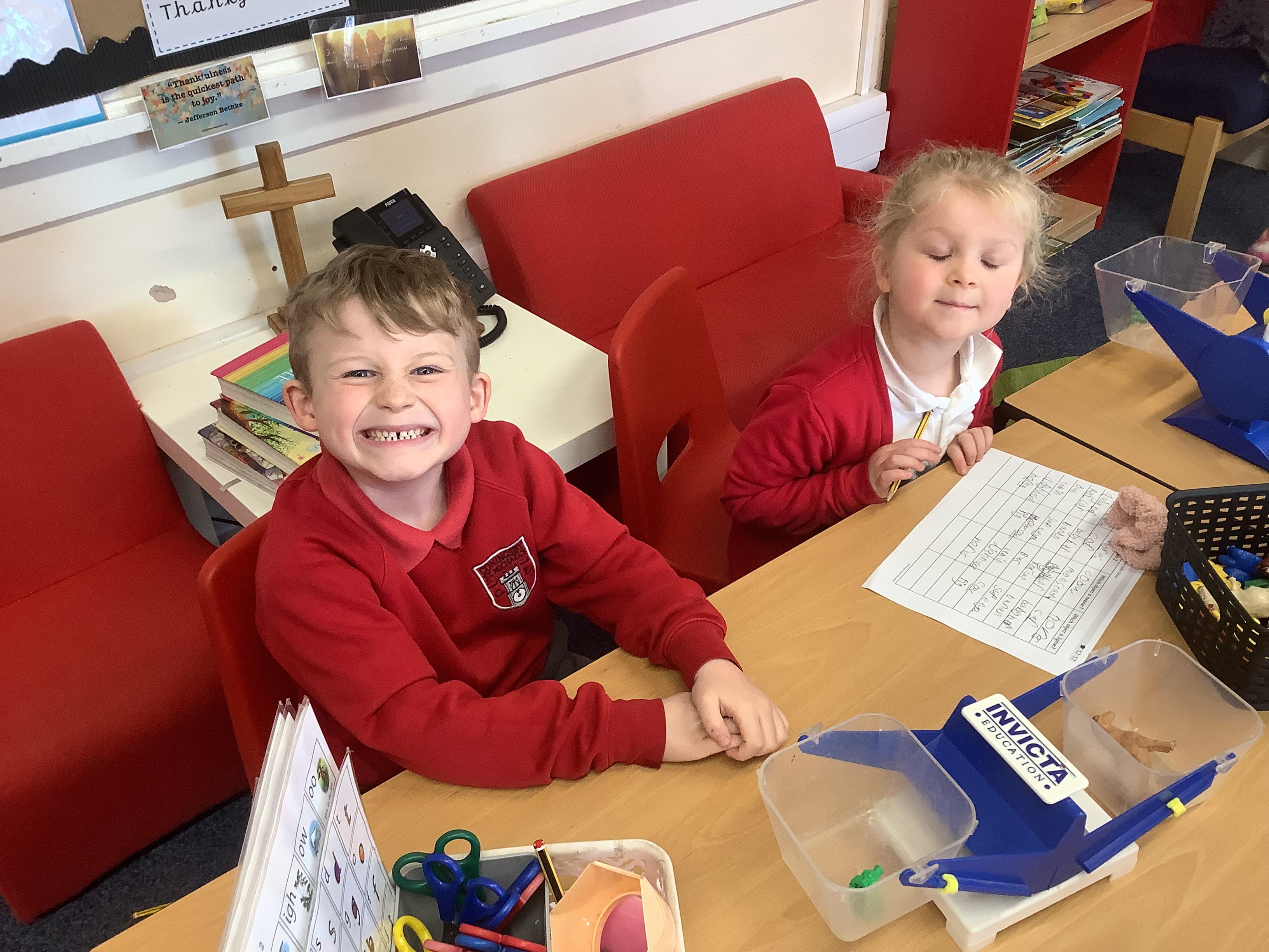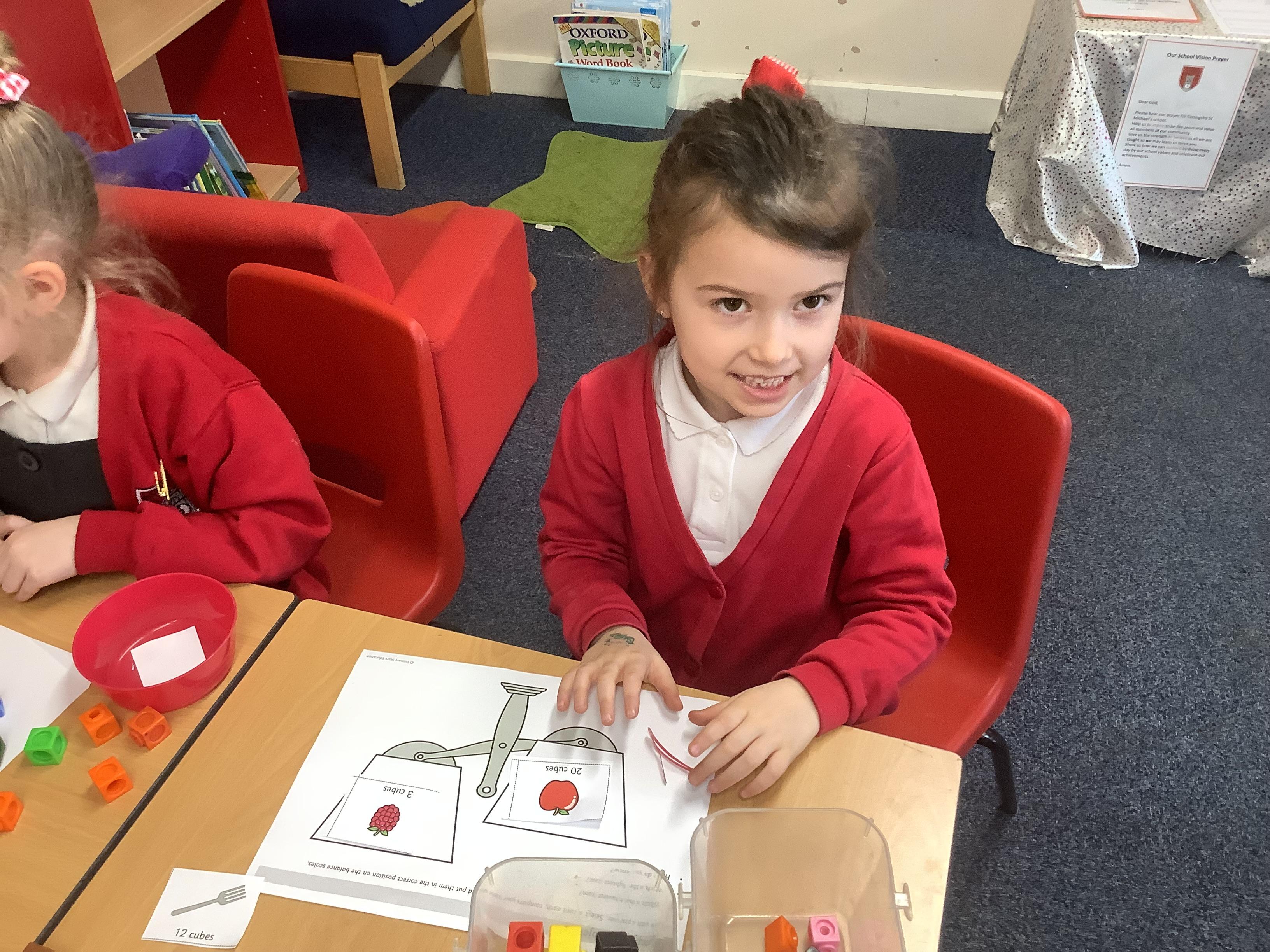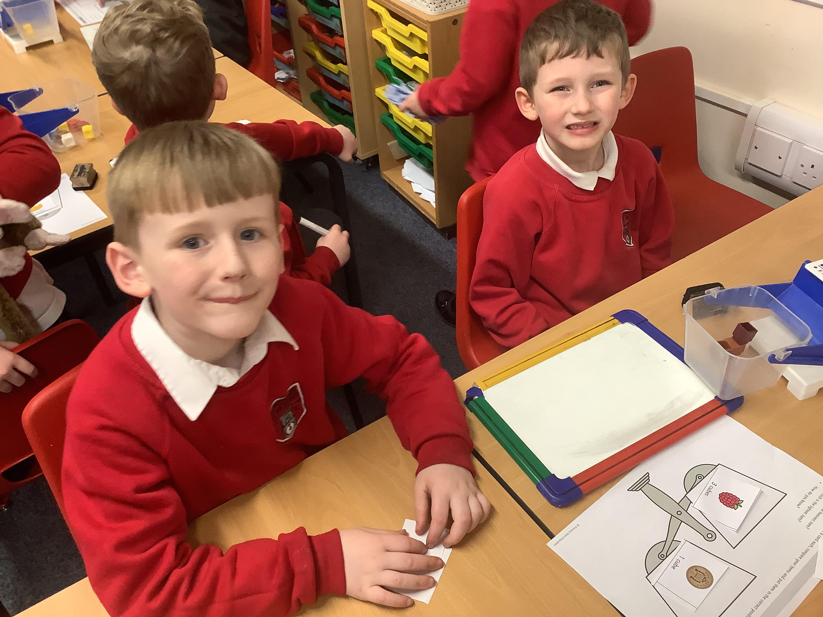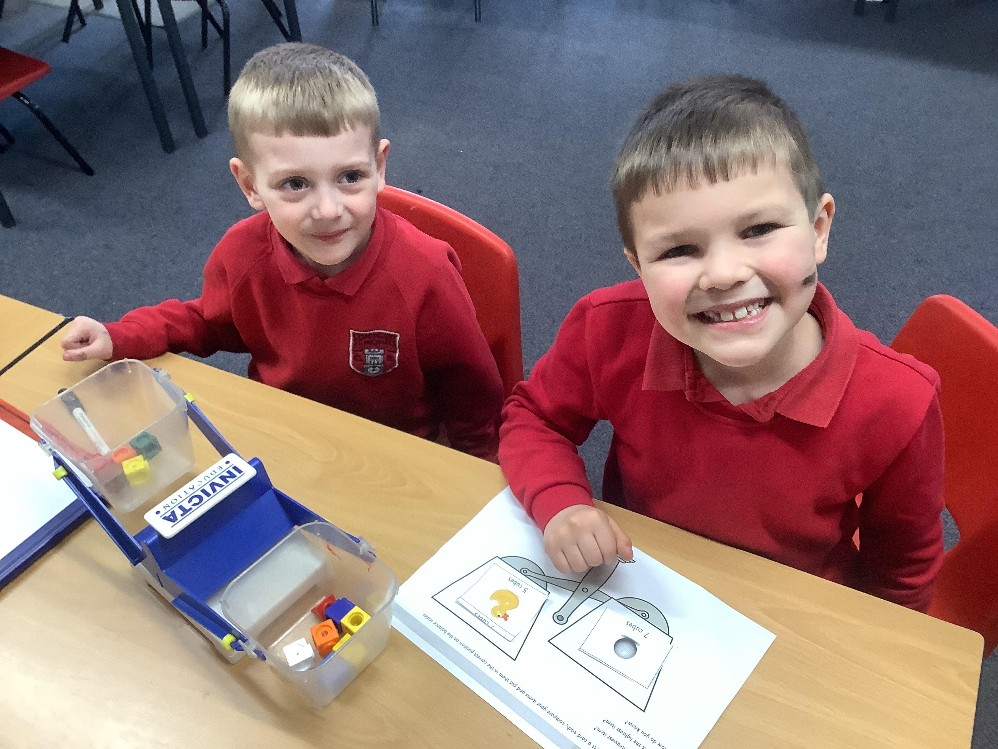 In Year 1 Maths children selected an object card. Then compared two objects identifying which is lighter / heavier.