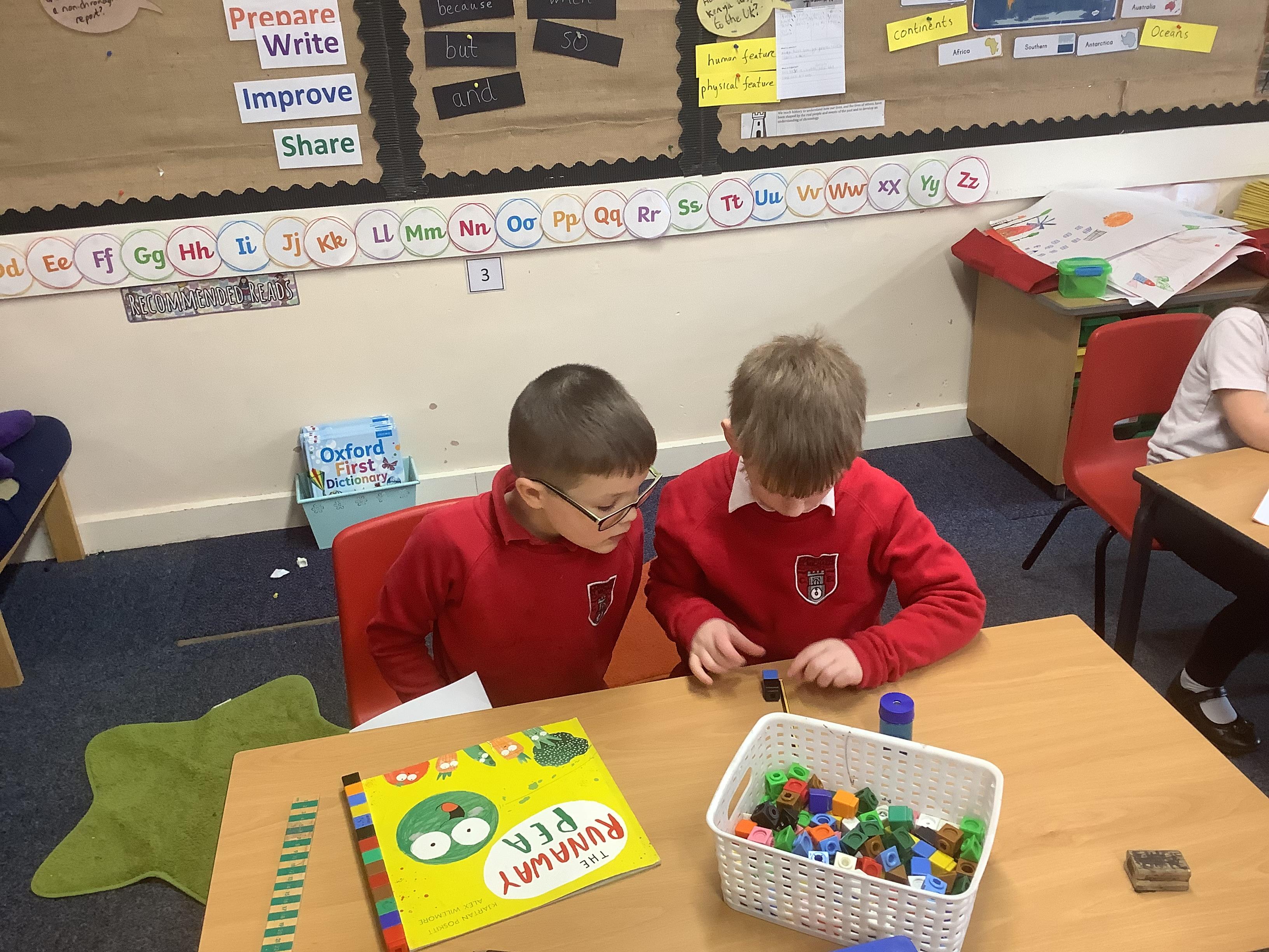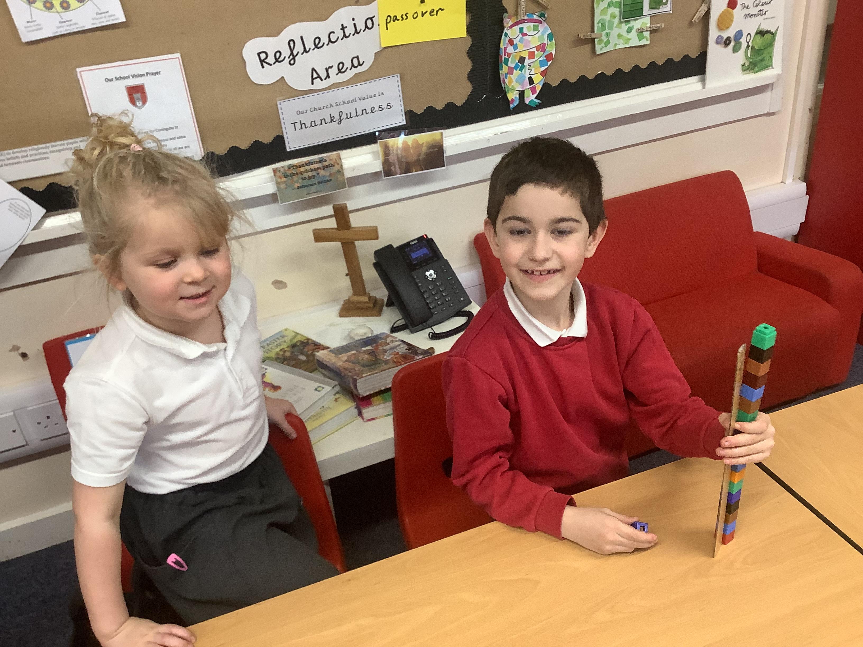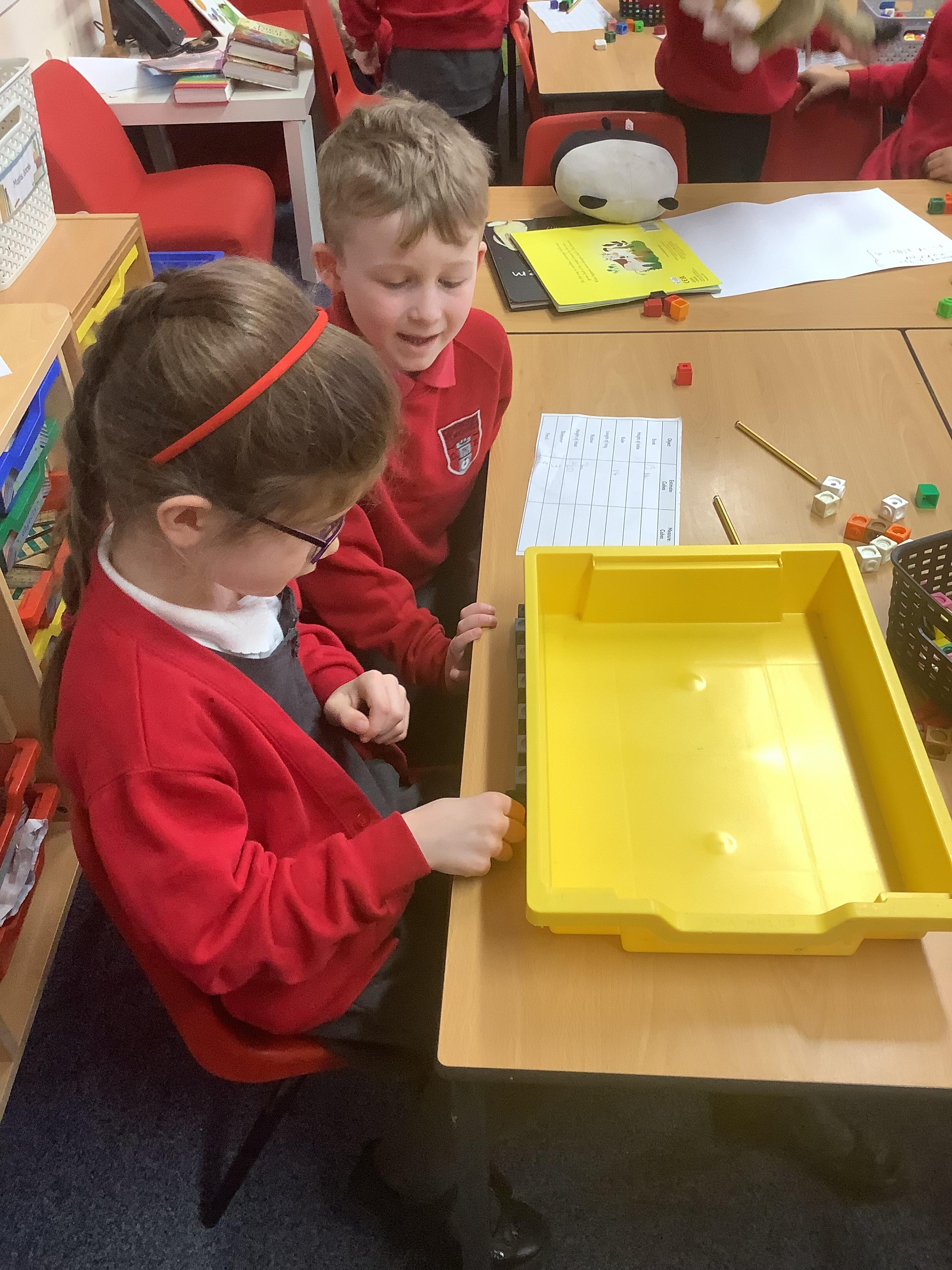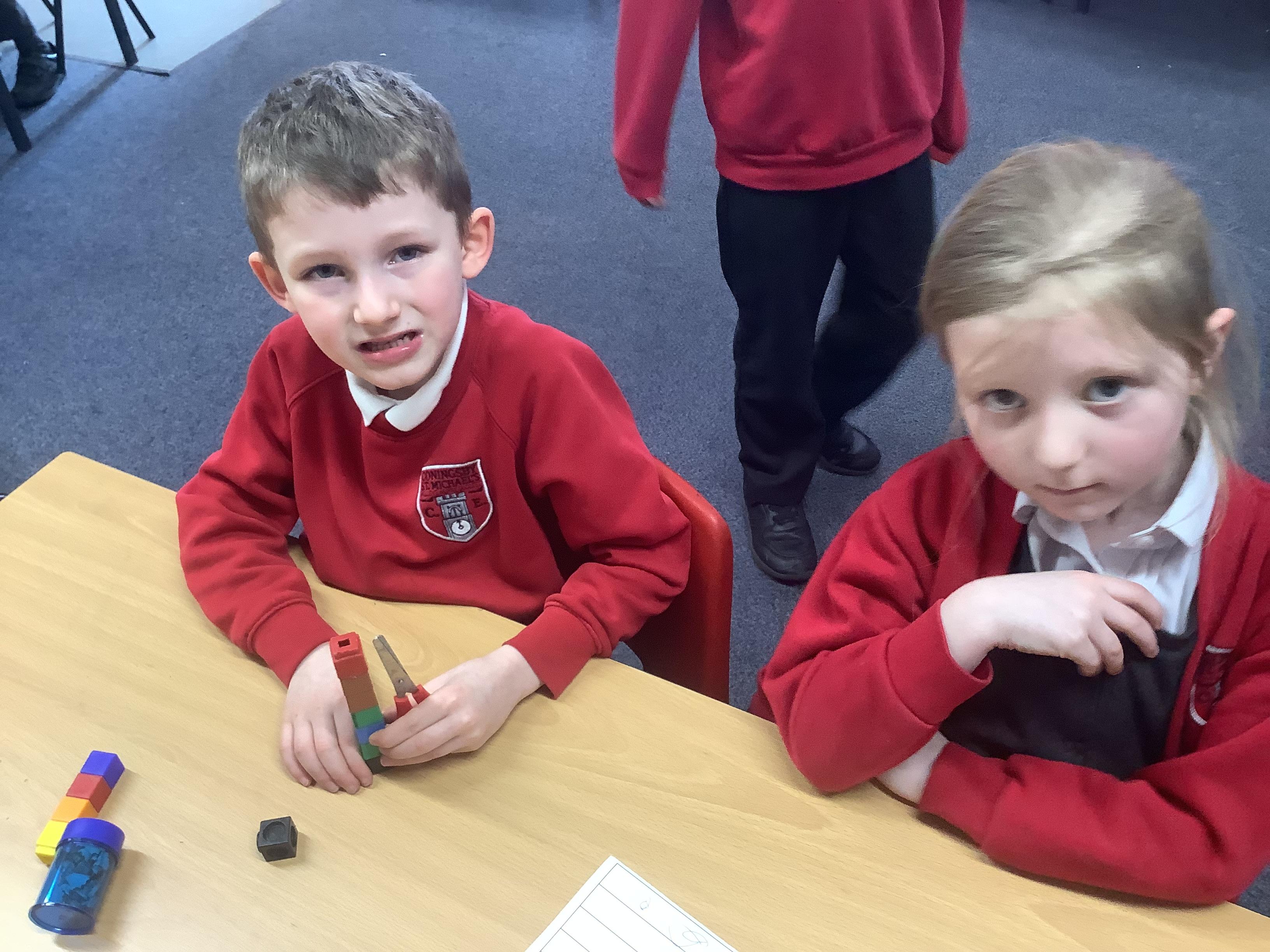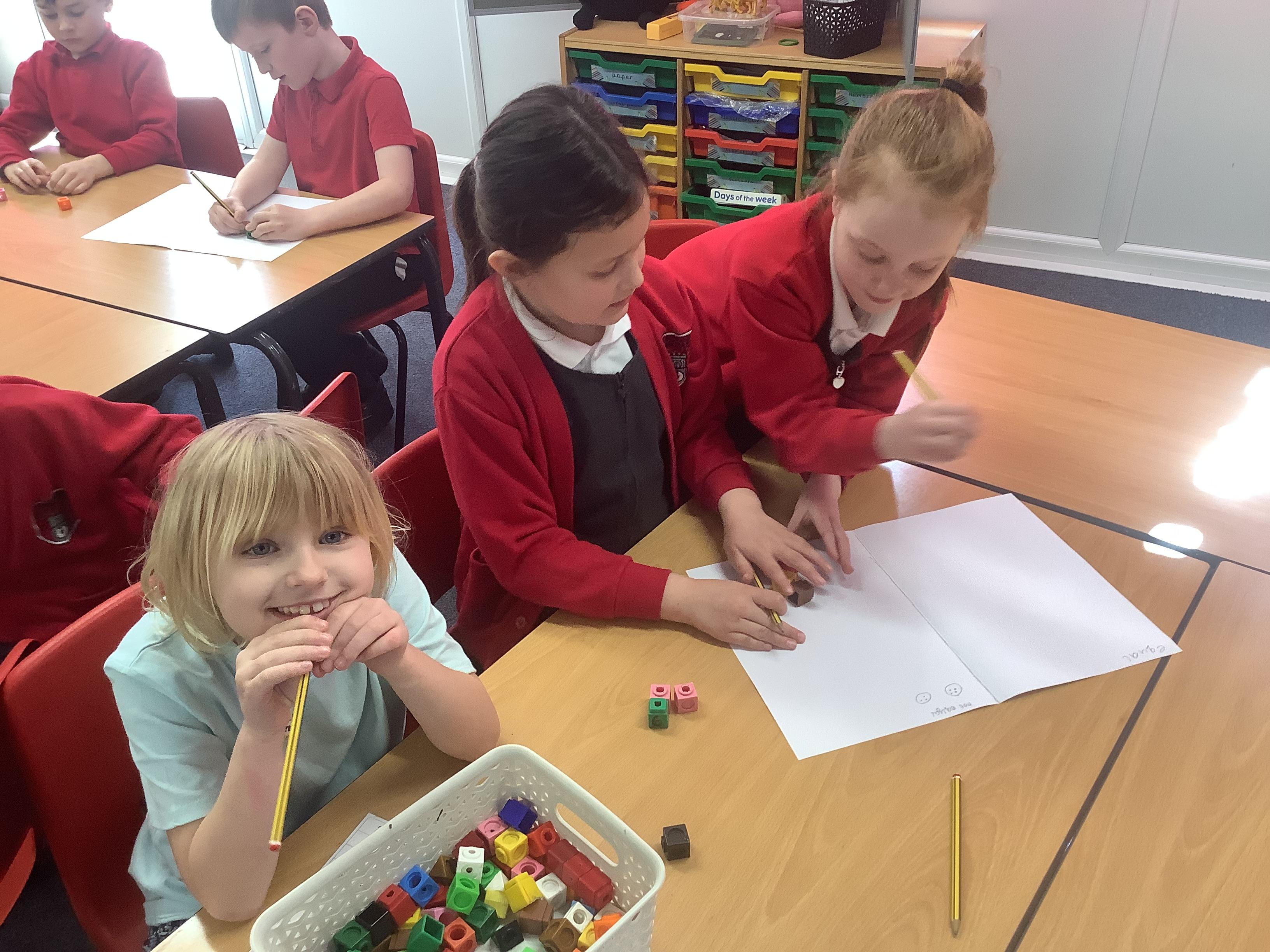 In year 1 maths we were estimating and measuring using cubes. We had a list of objects that we had to measure to see how many cubes long they are. We worked with a partner to find out.