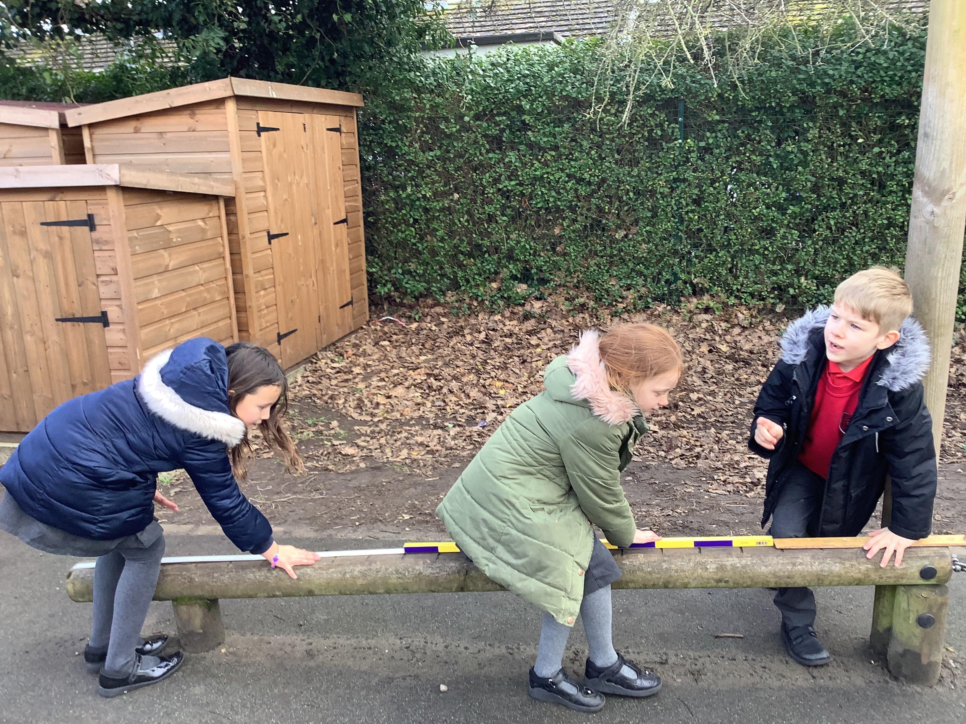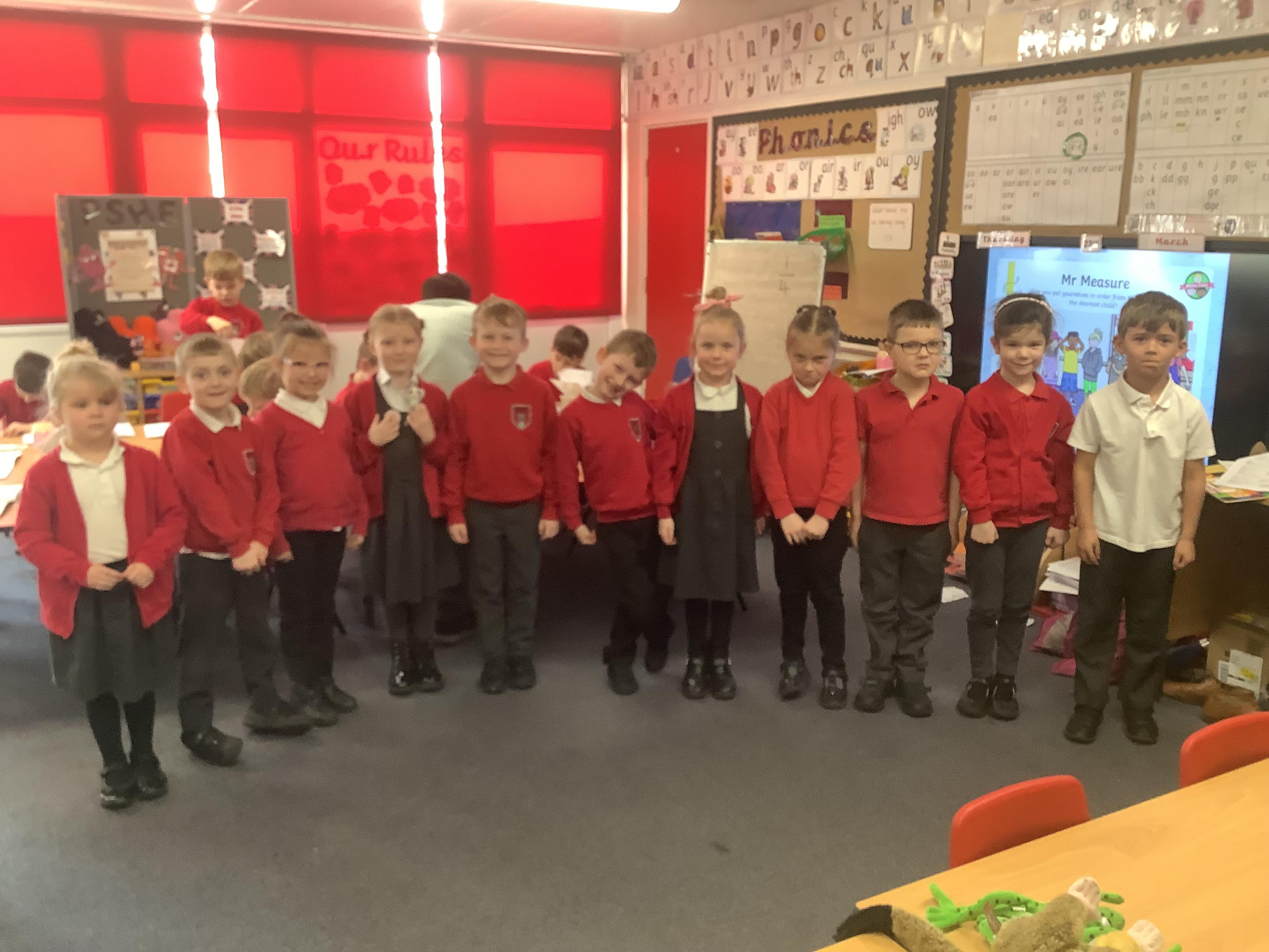 Year 2 over the next couple of weeks we will be learning about measurement. We have started by measuring items from around the classroom in centimeters (cm) and continued outside by measuring objects in meters (m).