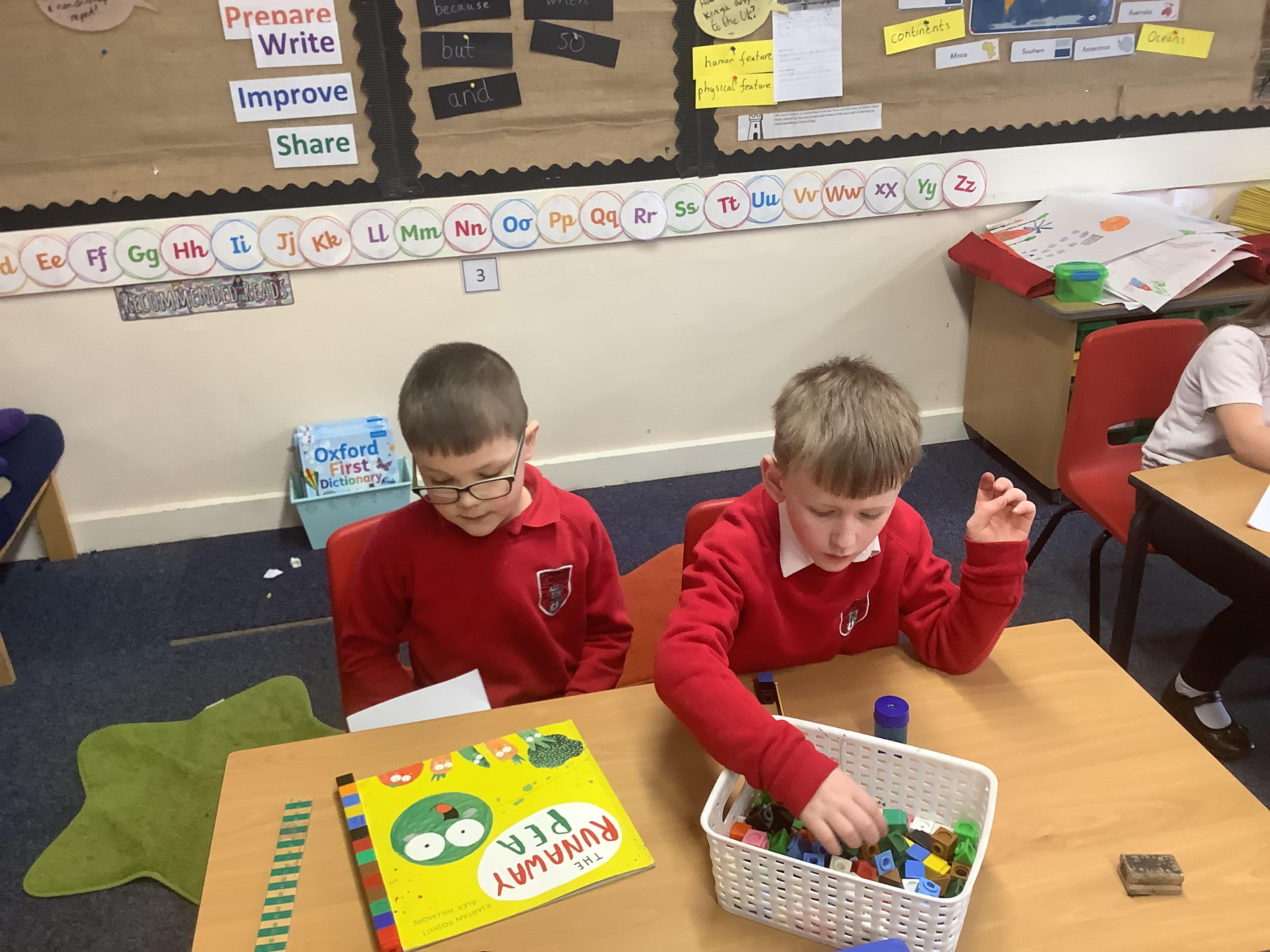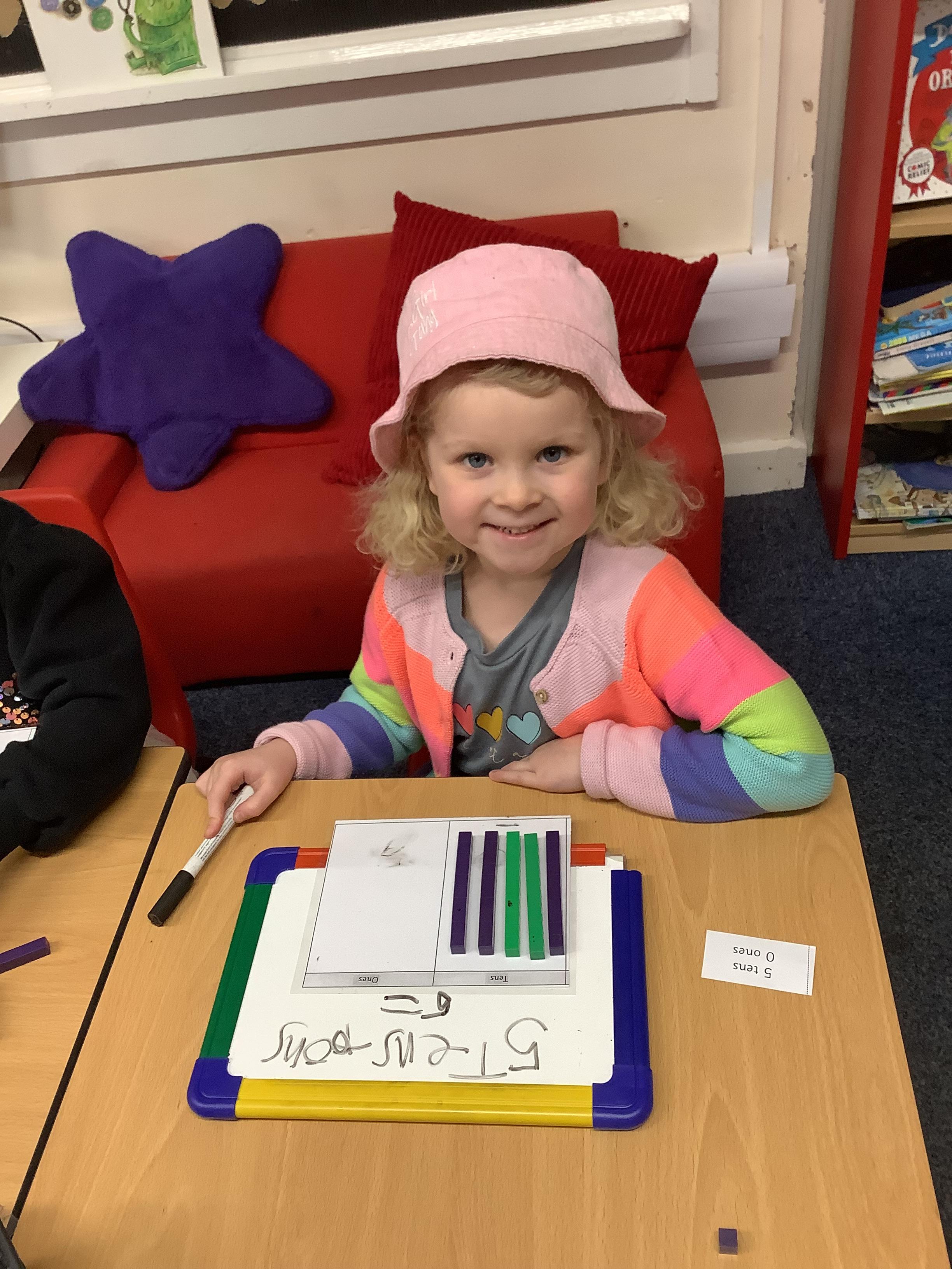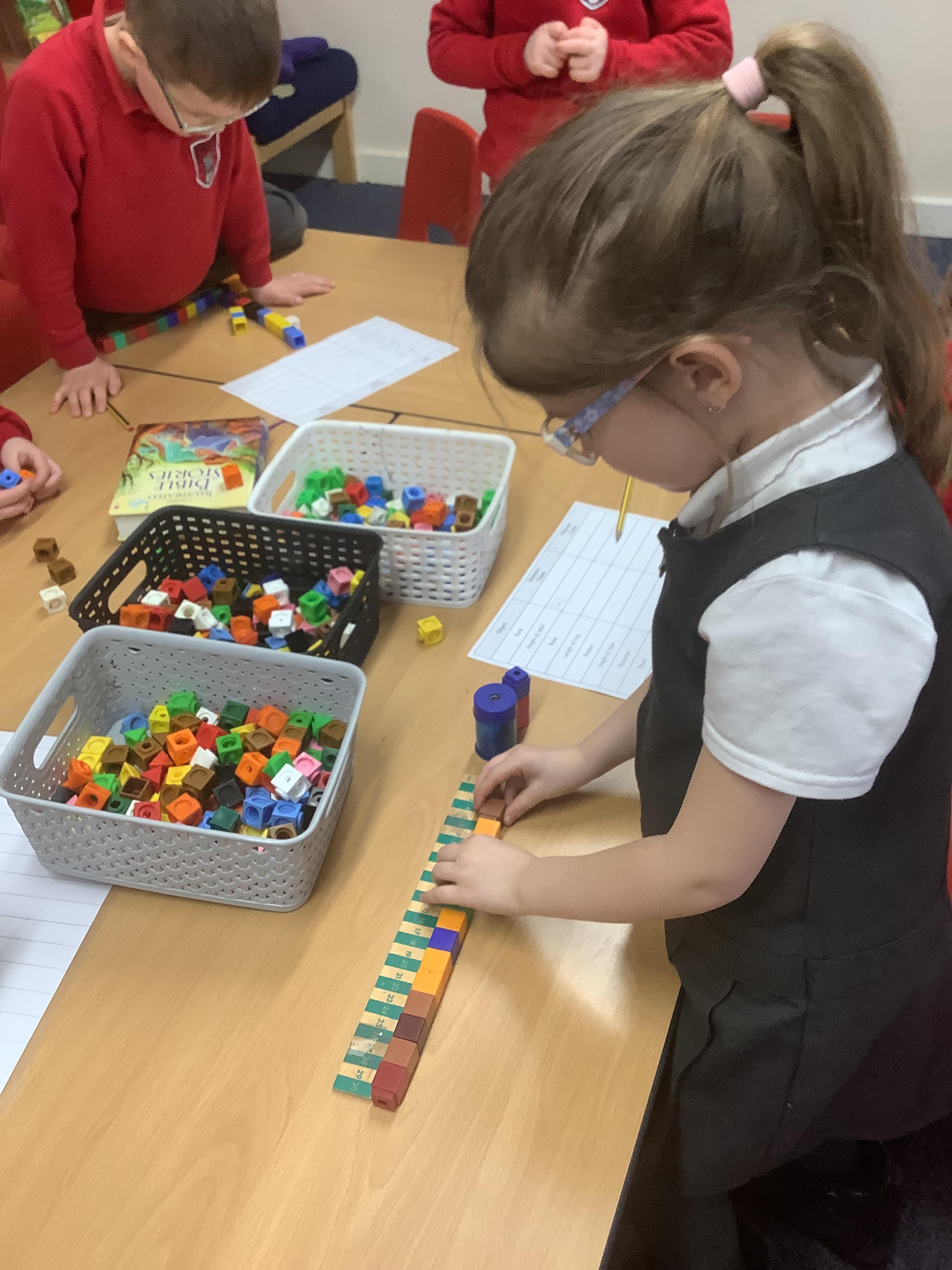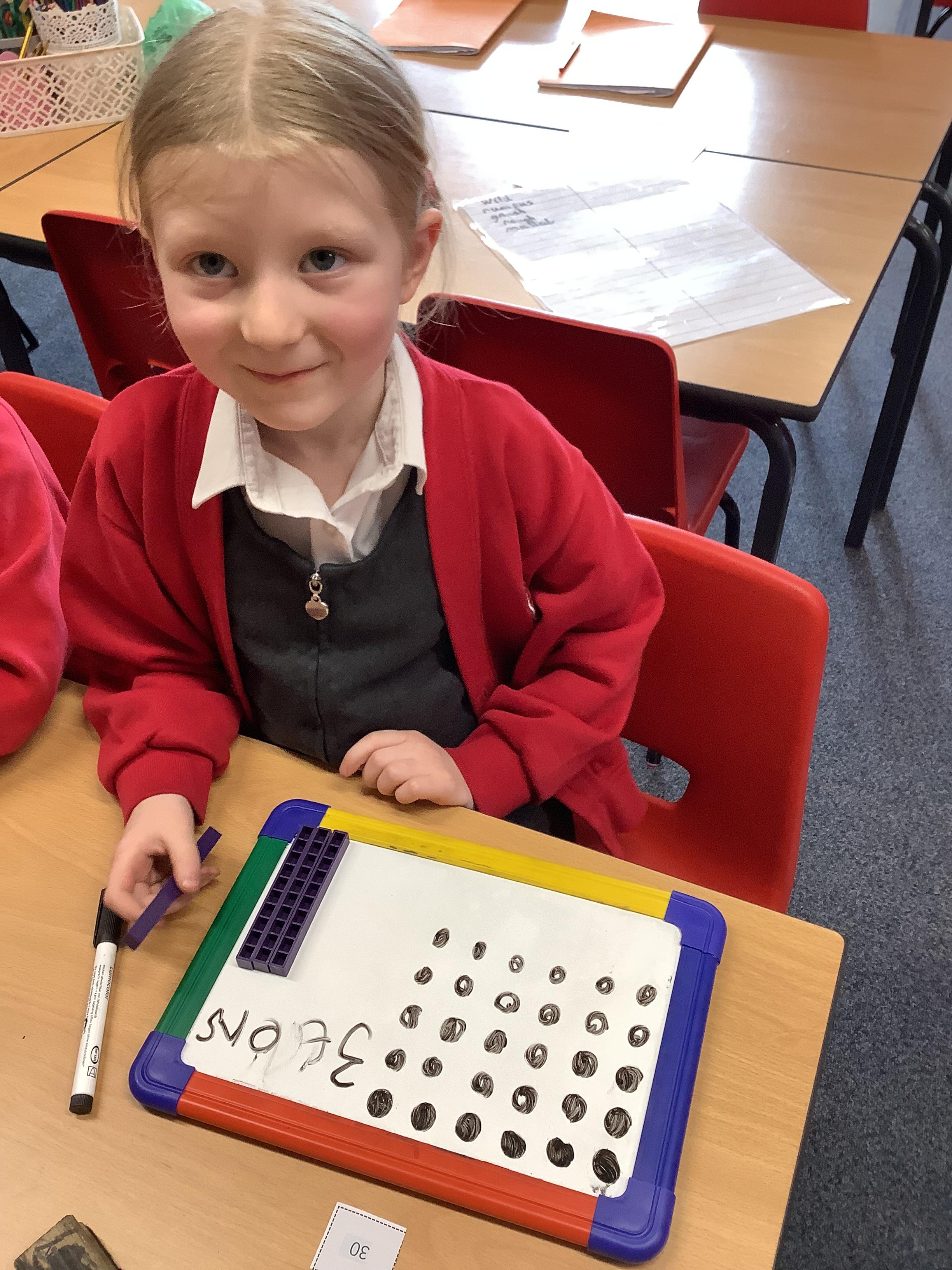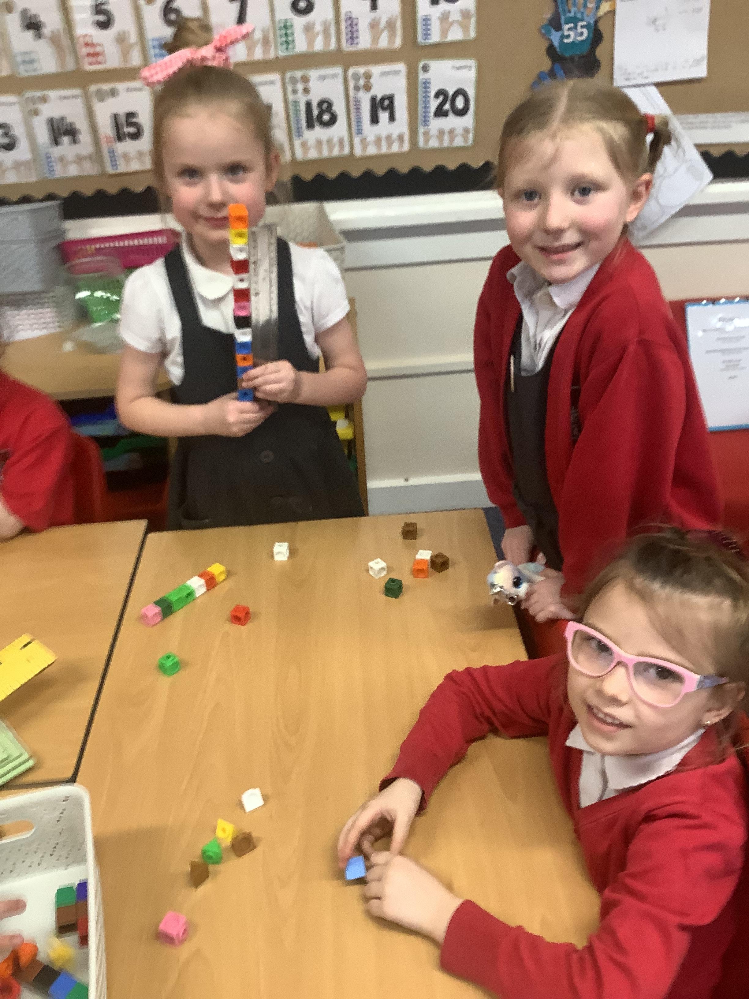 In Year 1 maths we looked at grouping objects into tens to make it easier to count. We then built numbers by grouping in tens using numicon, tens frames, tens and ones and counting sticks.
