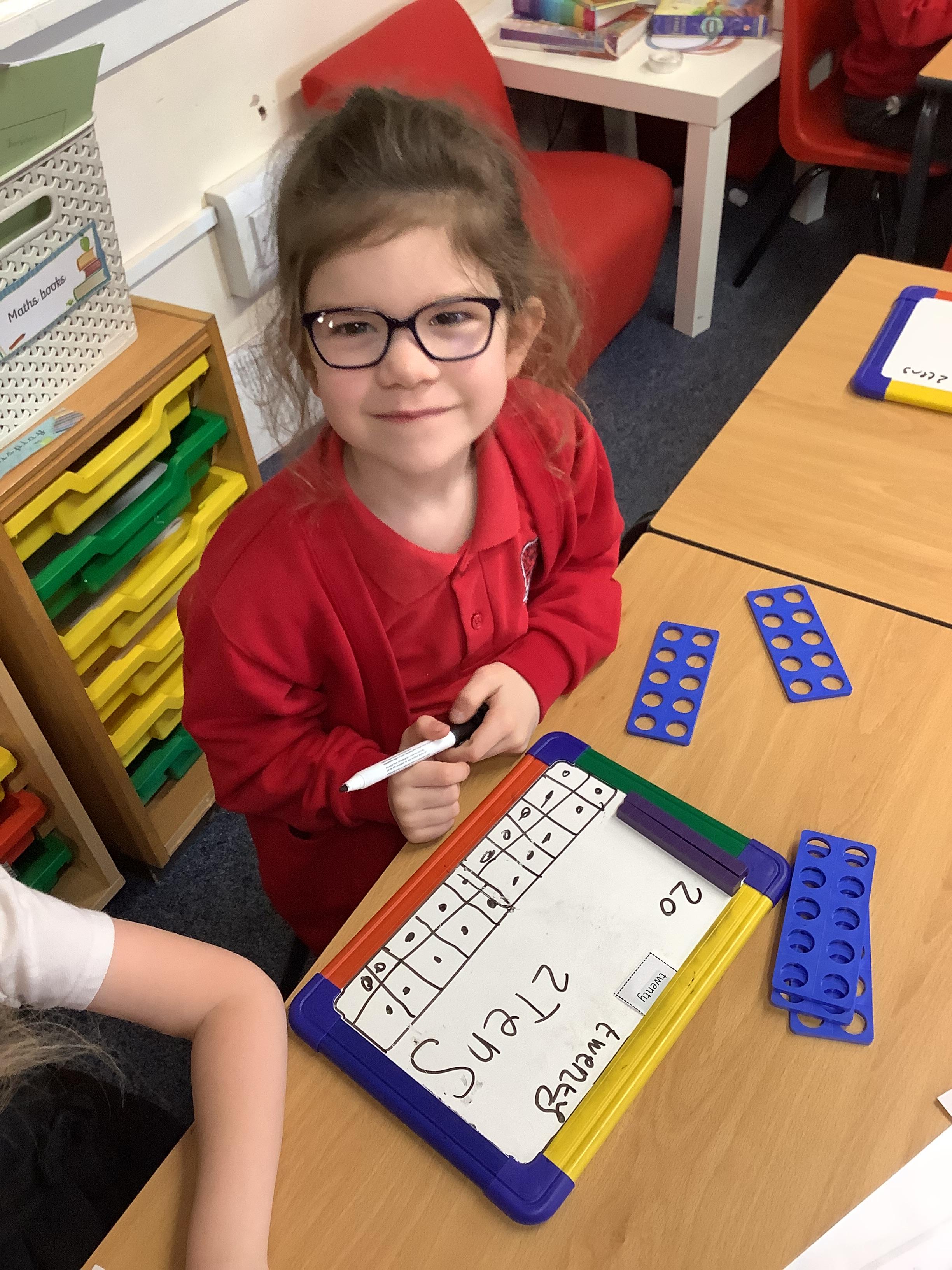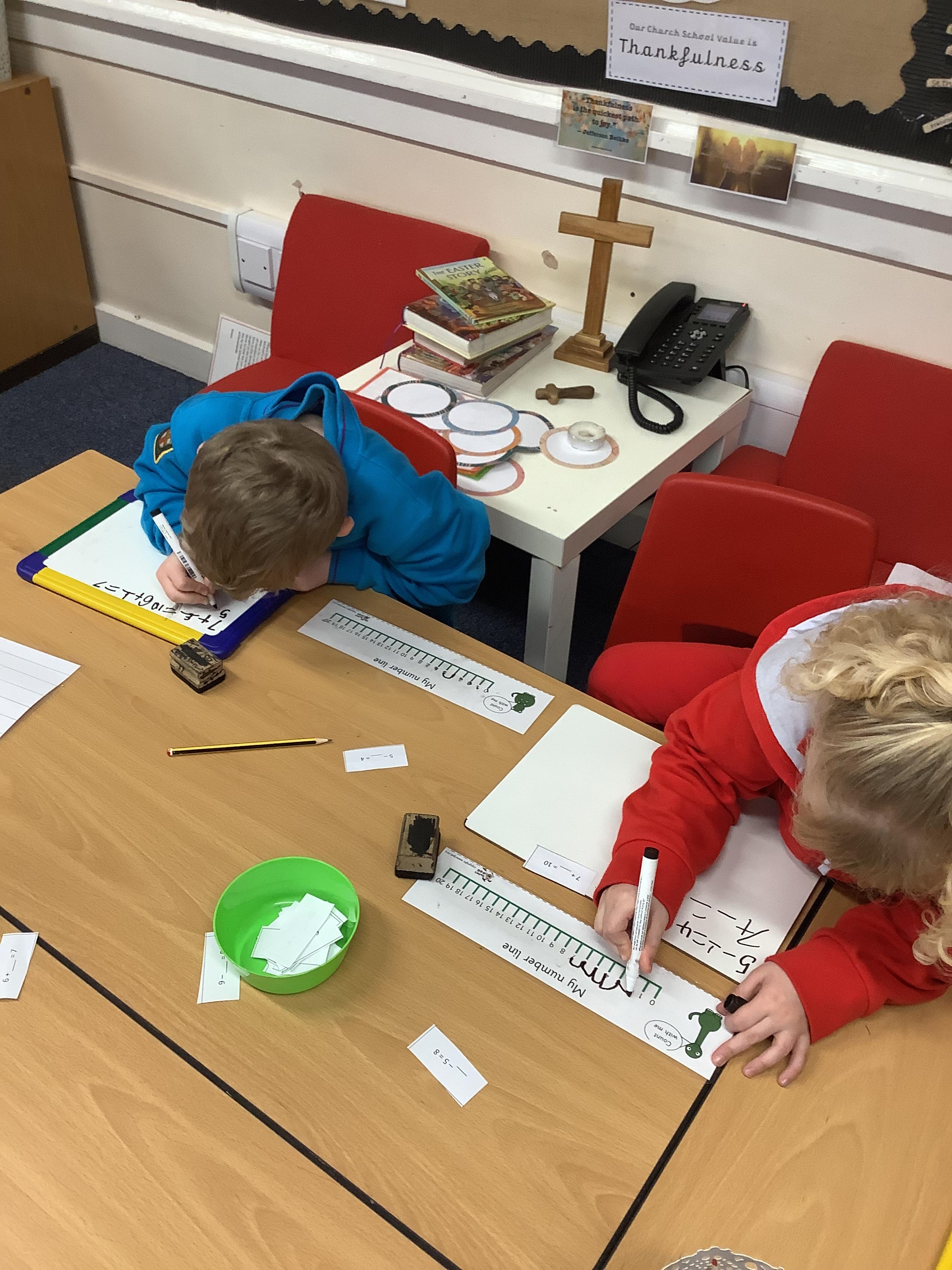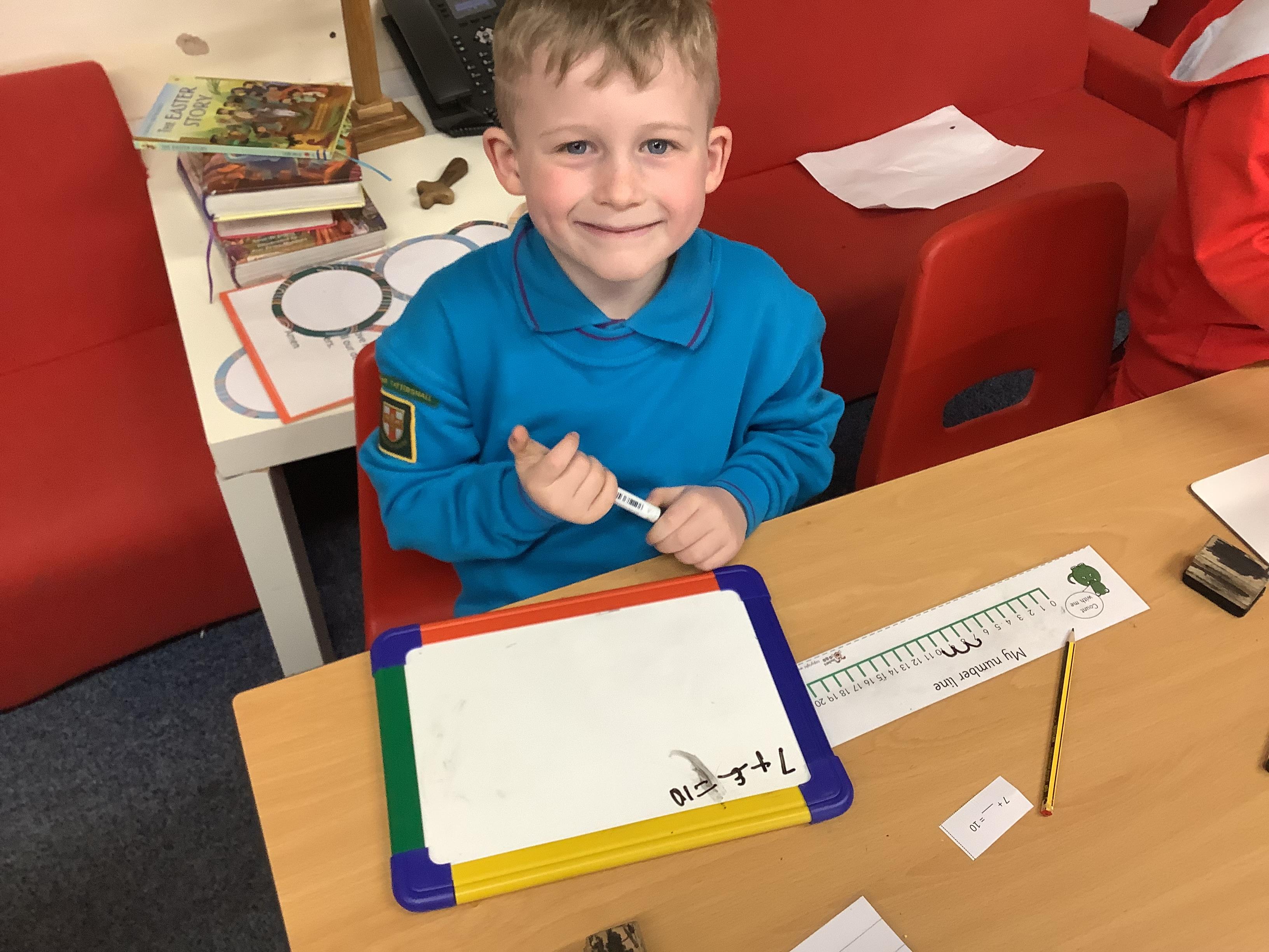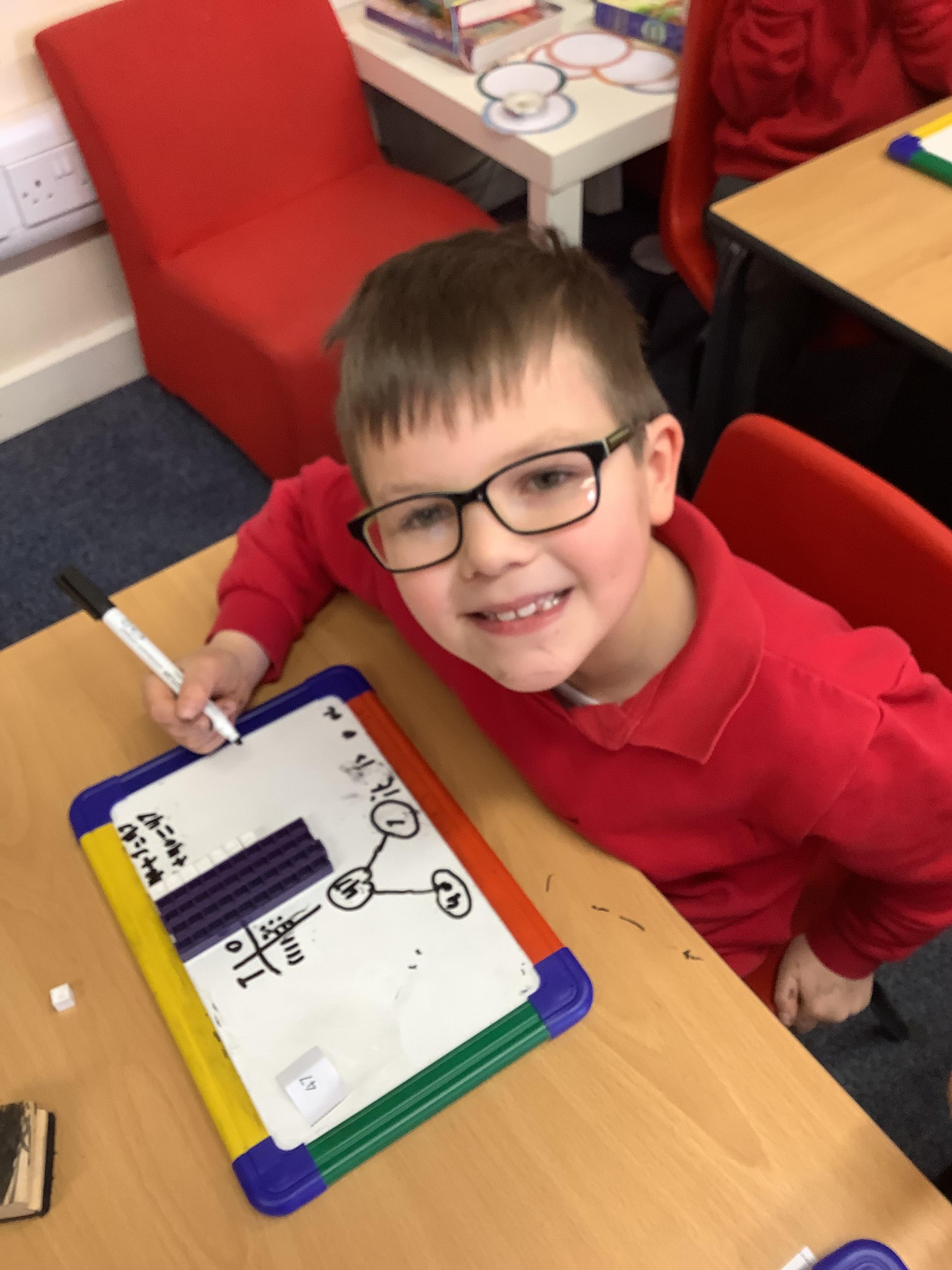 In Year 1 maths we have been solving missing number problems. We worked with a partner using number lines, tens frames and part whole models to solve the problems.