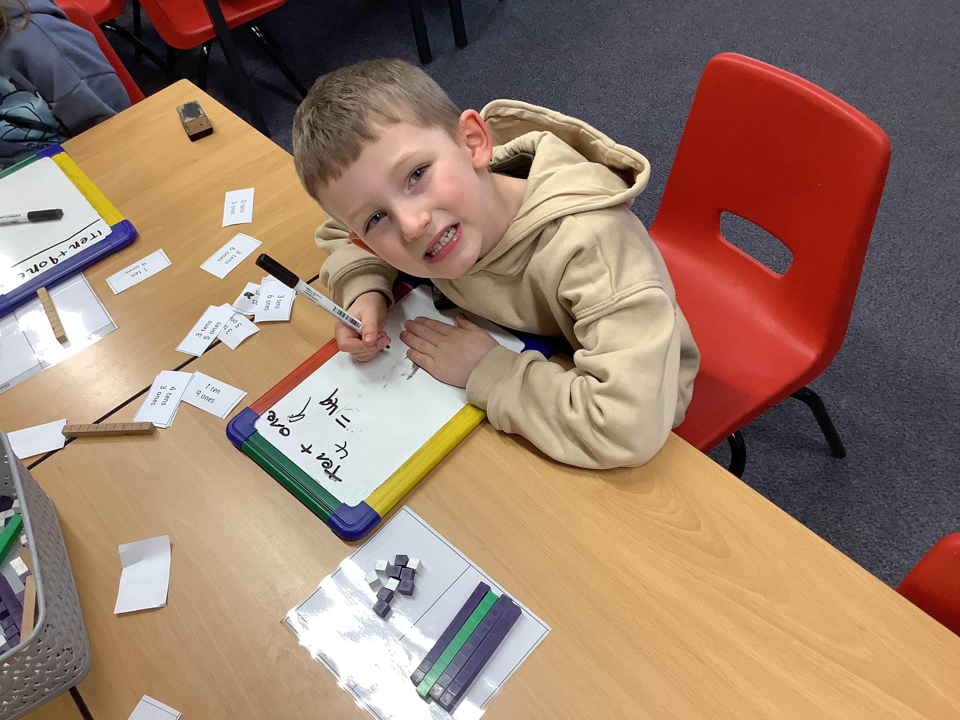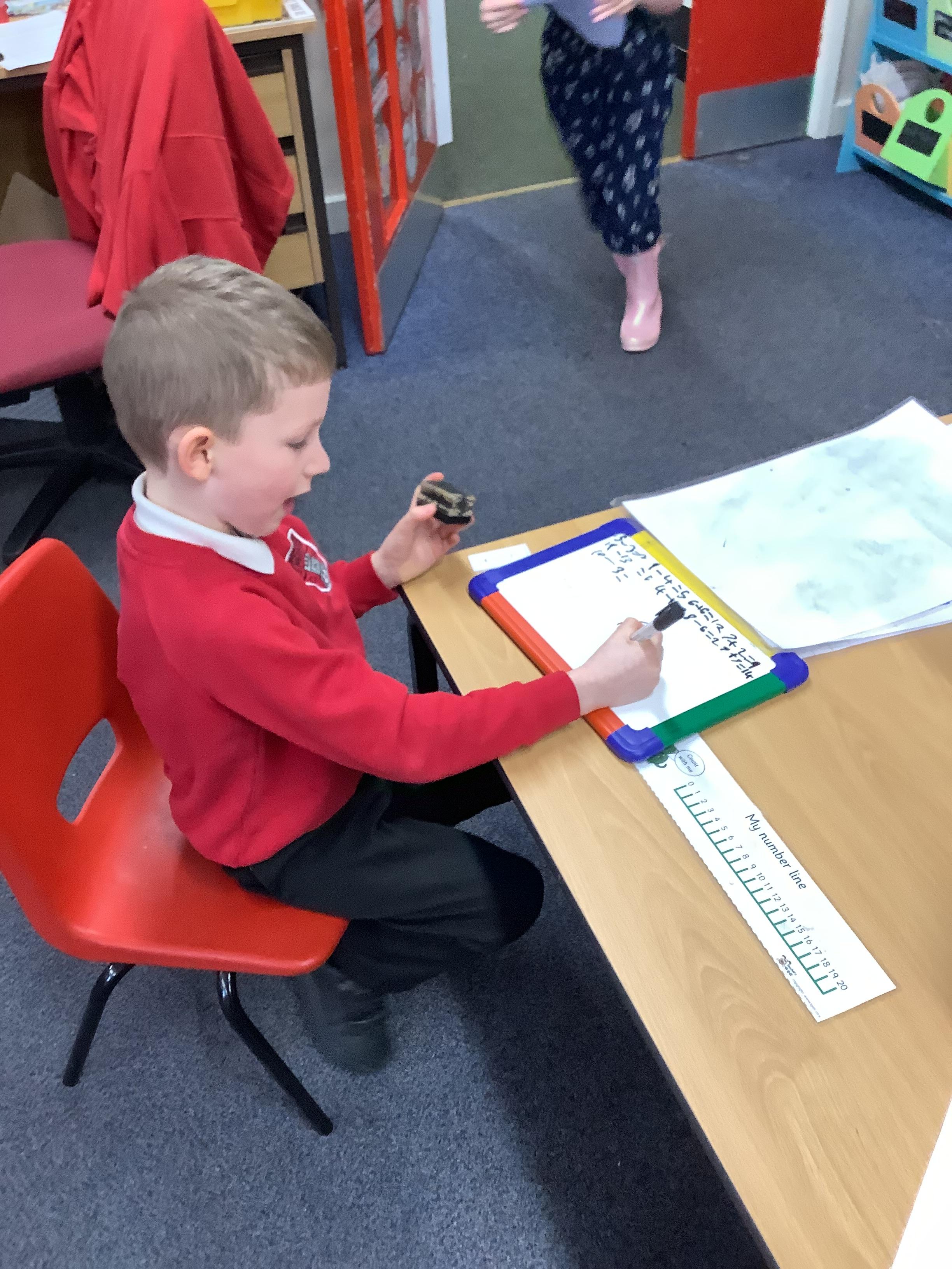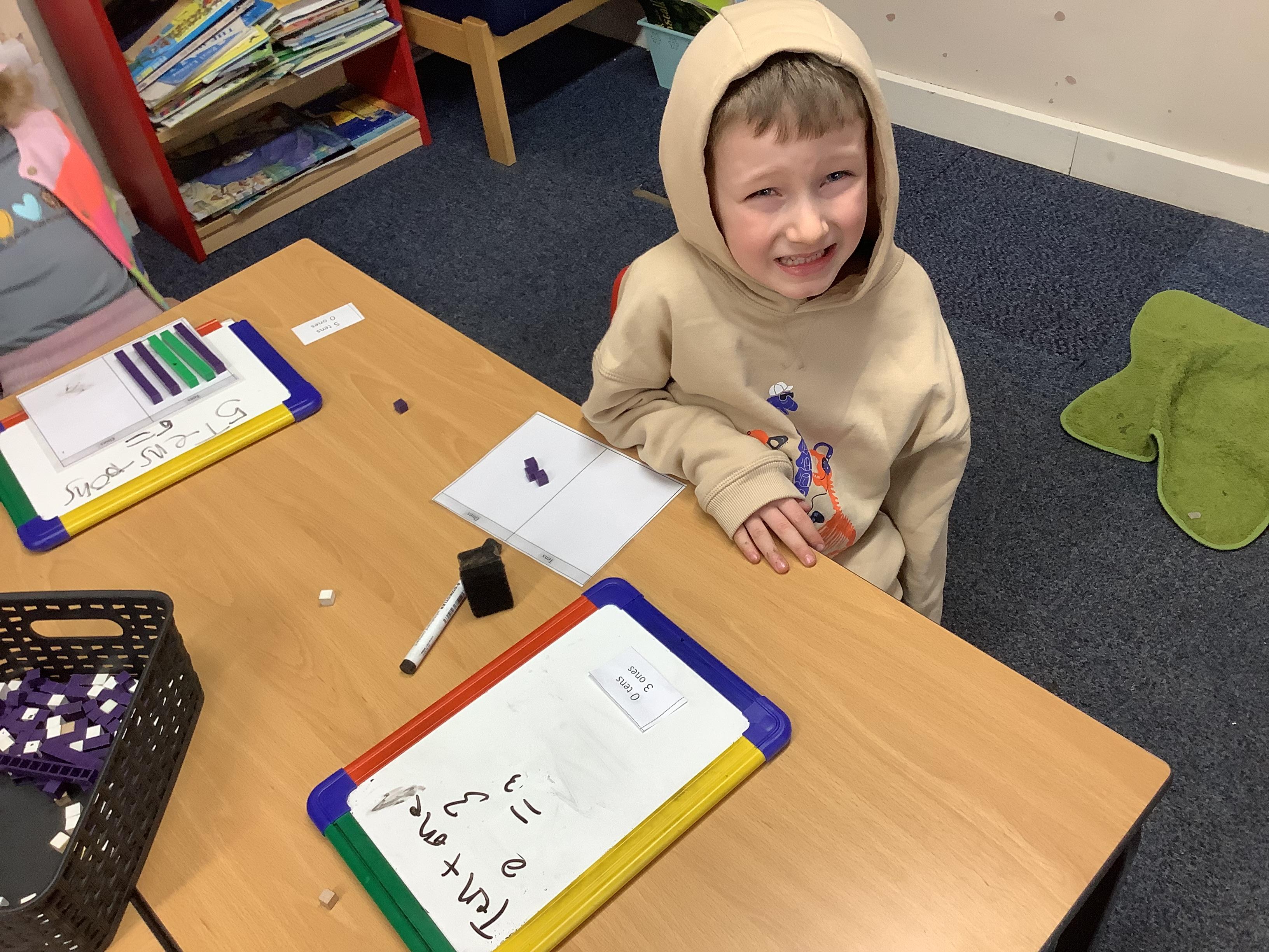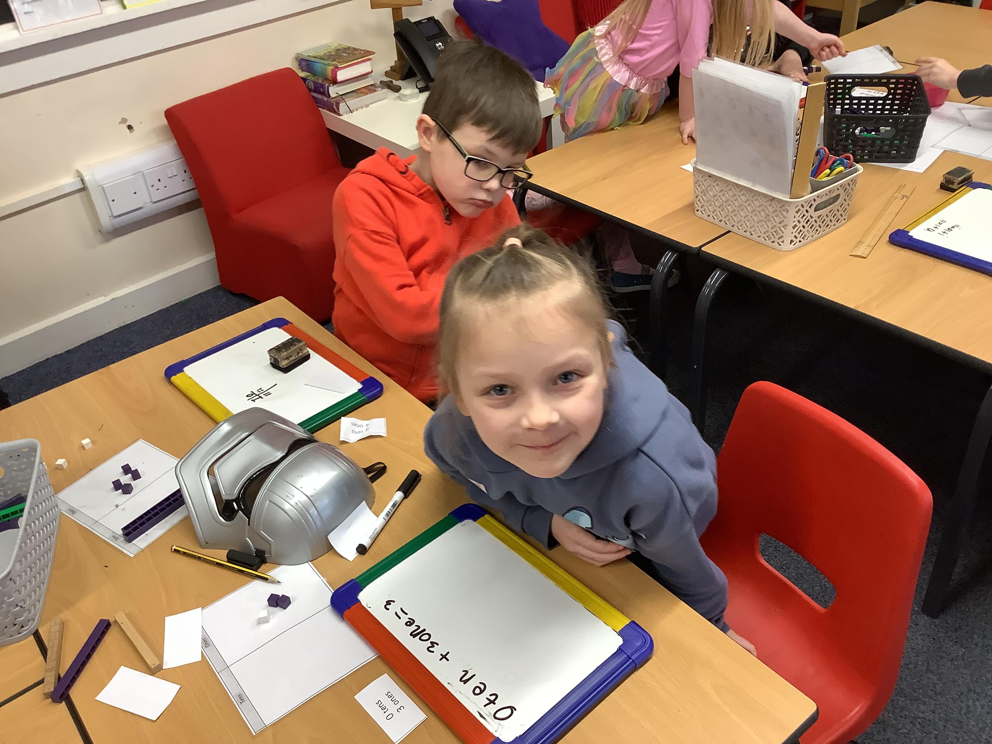 In Year 1 maths we have been solving missing number problems. We worked with a partner using number lines, tens frames and part whole models to solve the problems.