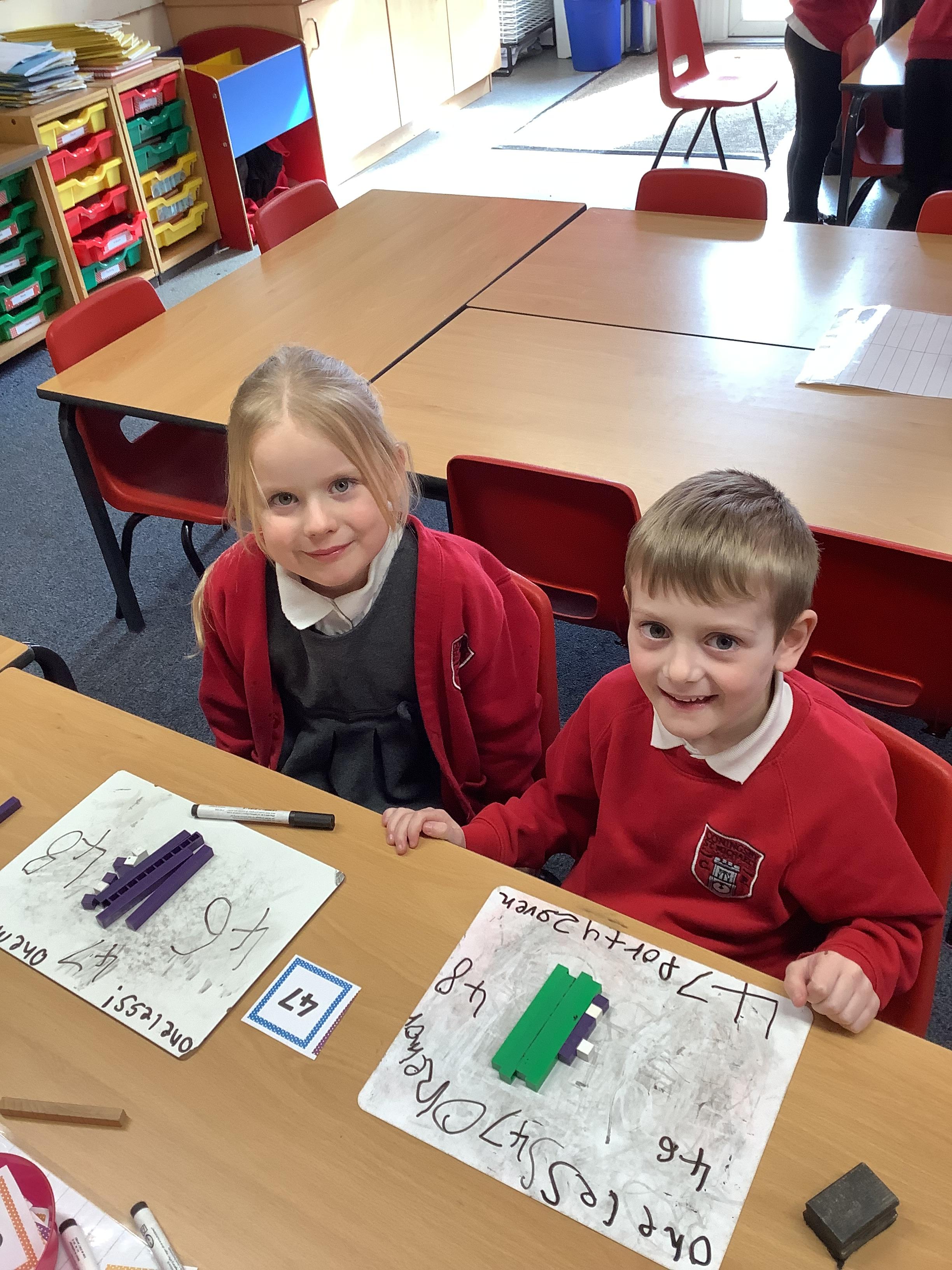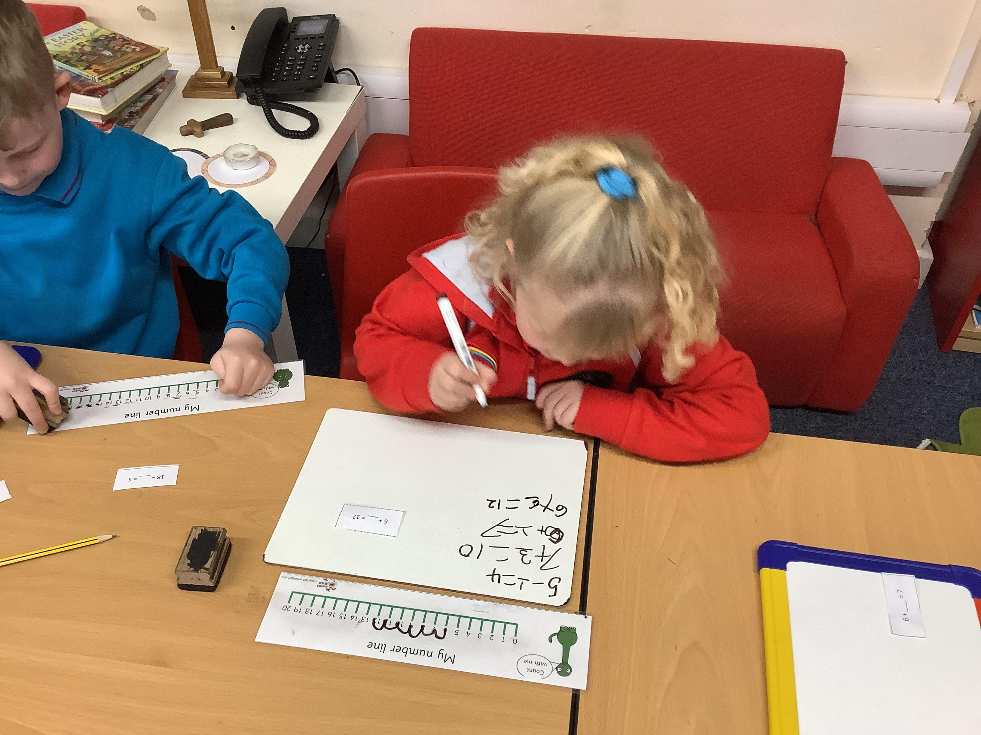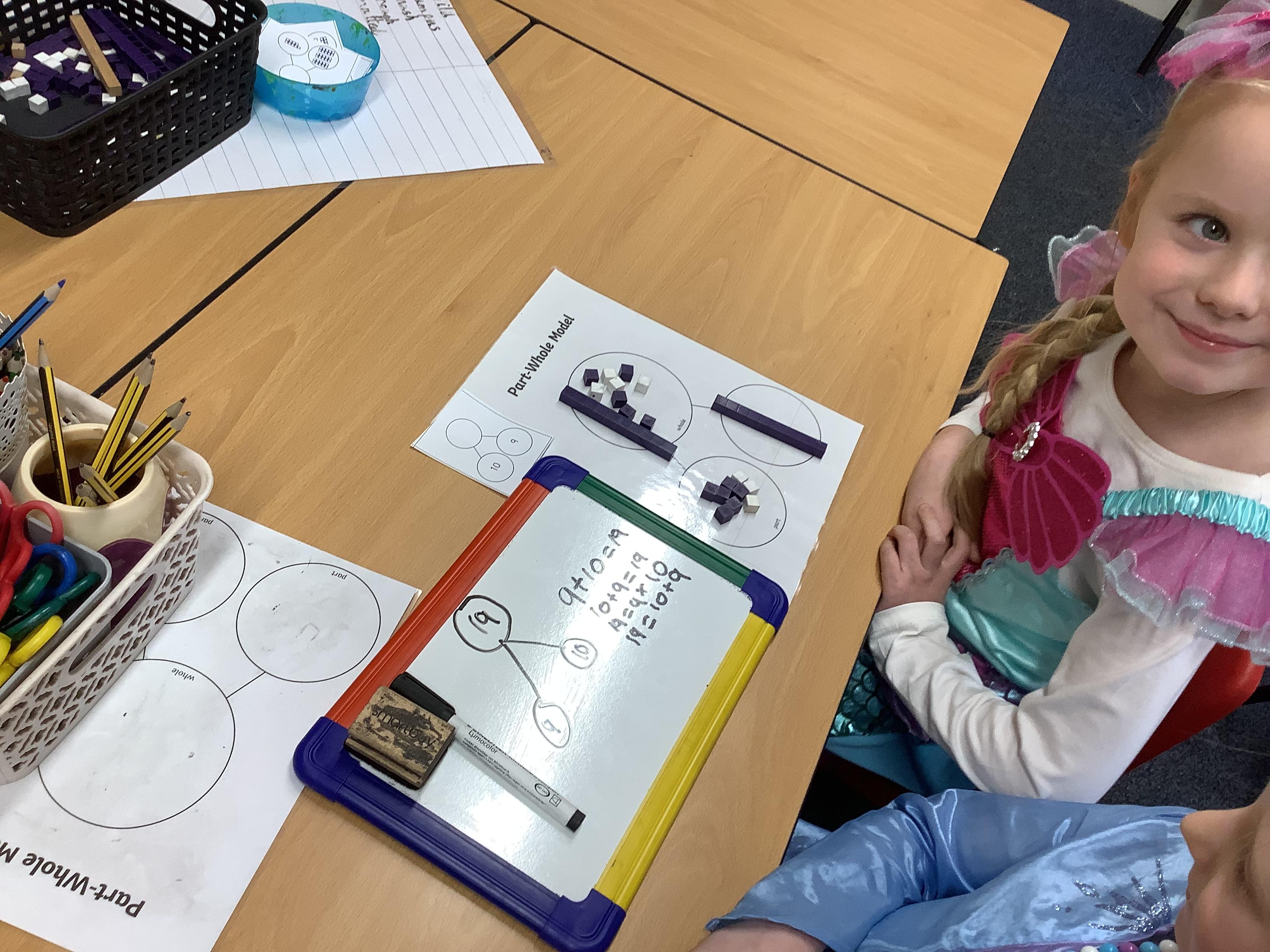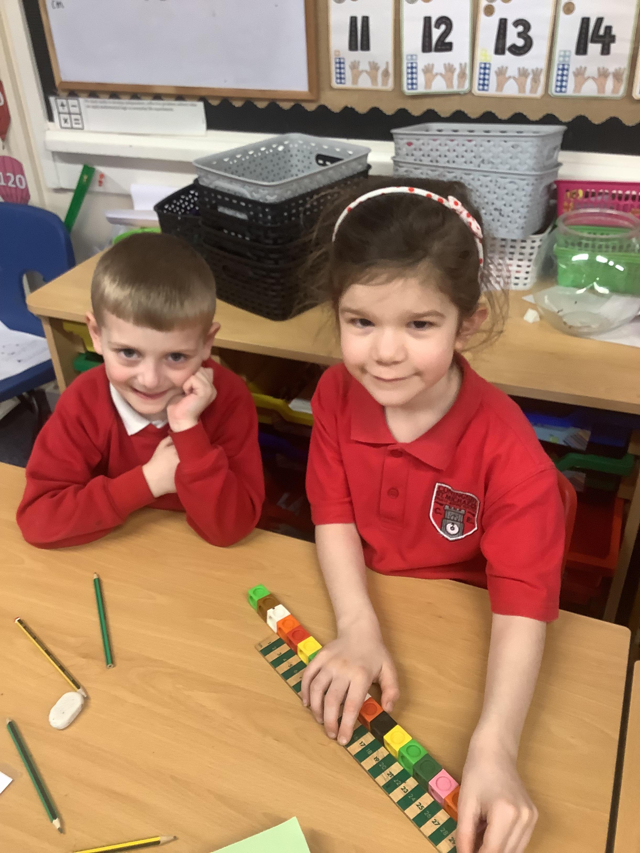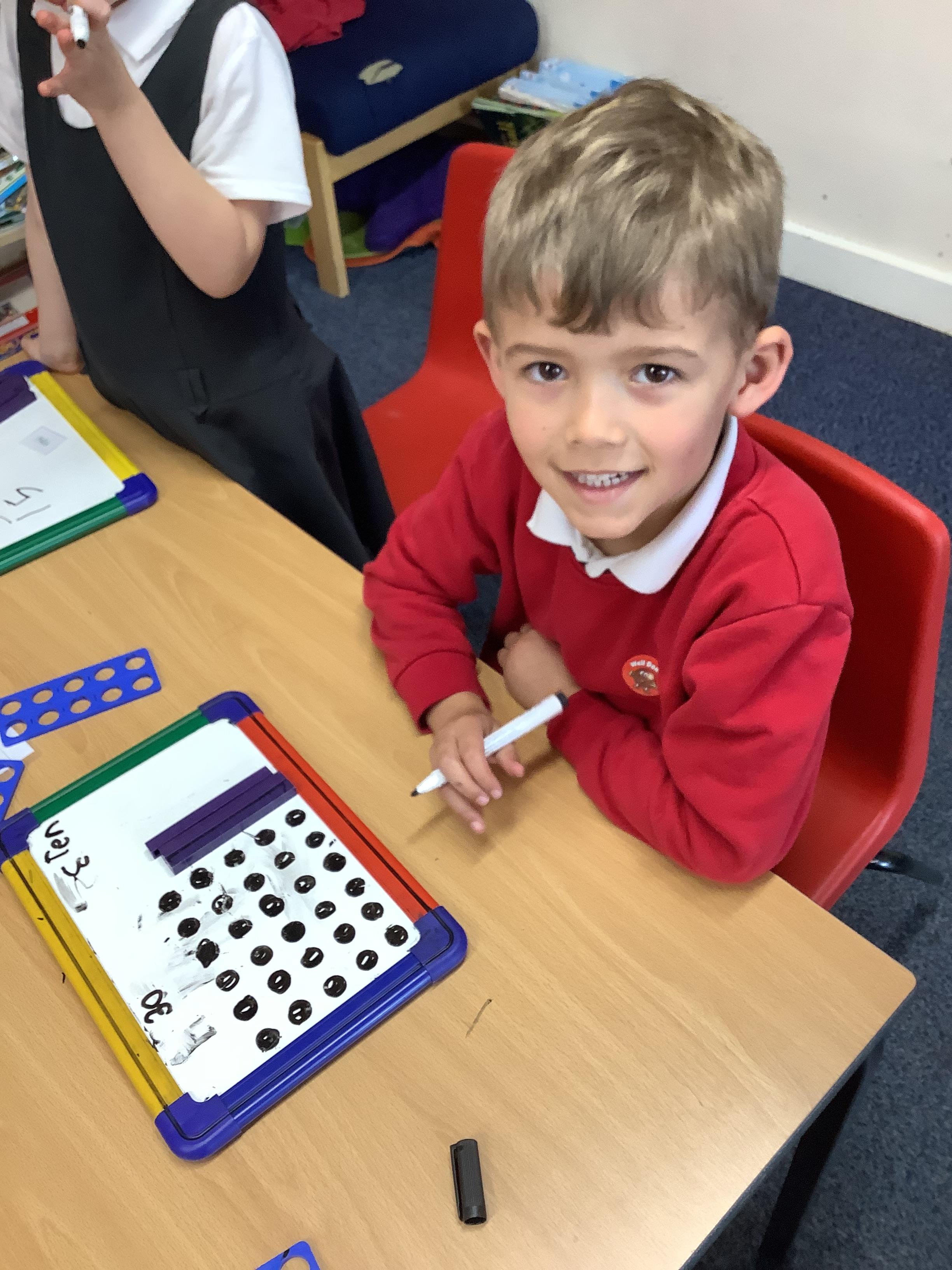 In Year 1 maths we have been solving missing number problems. We worked with a partner using number lines, tens frames and part whole models to solve the problems.