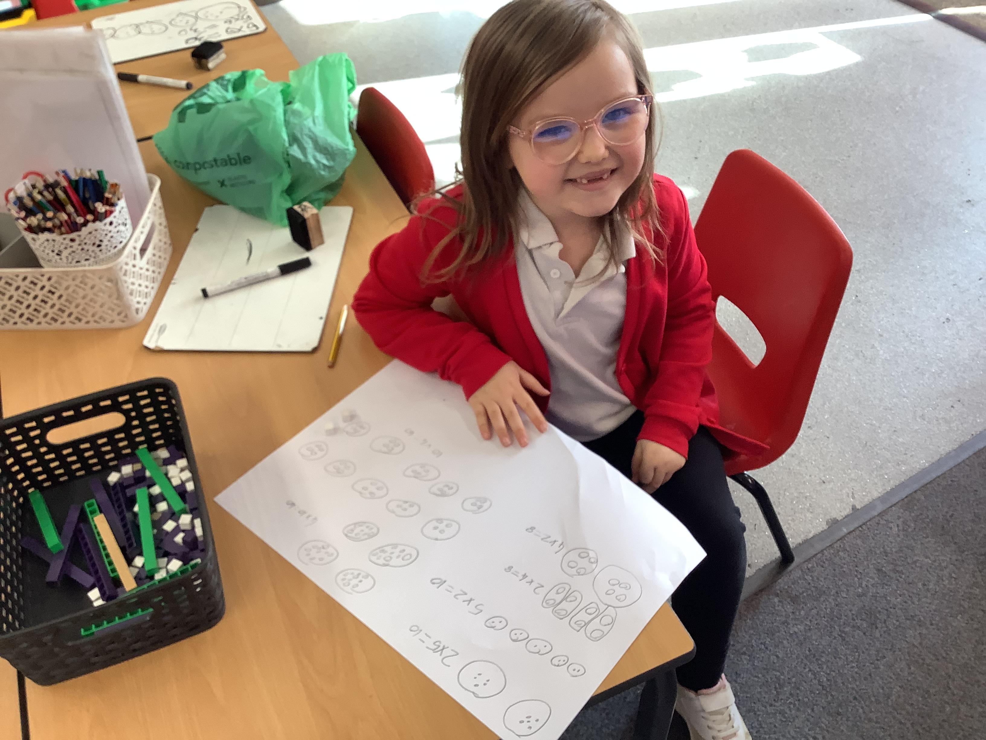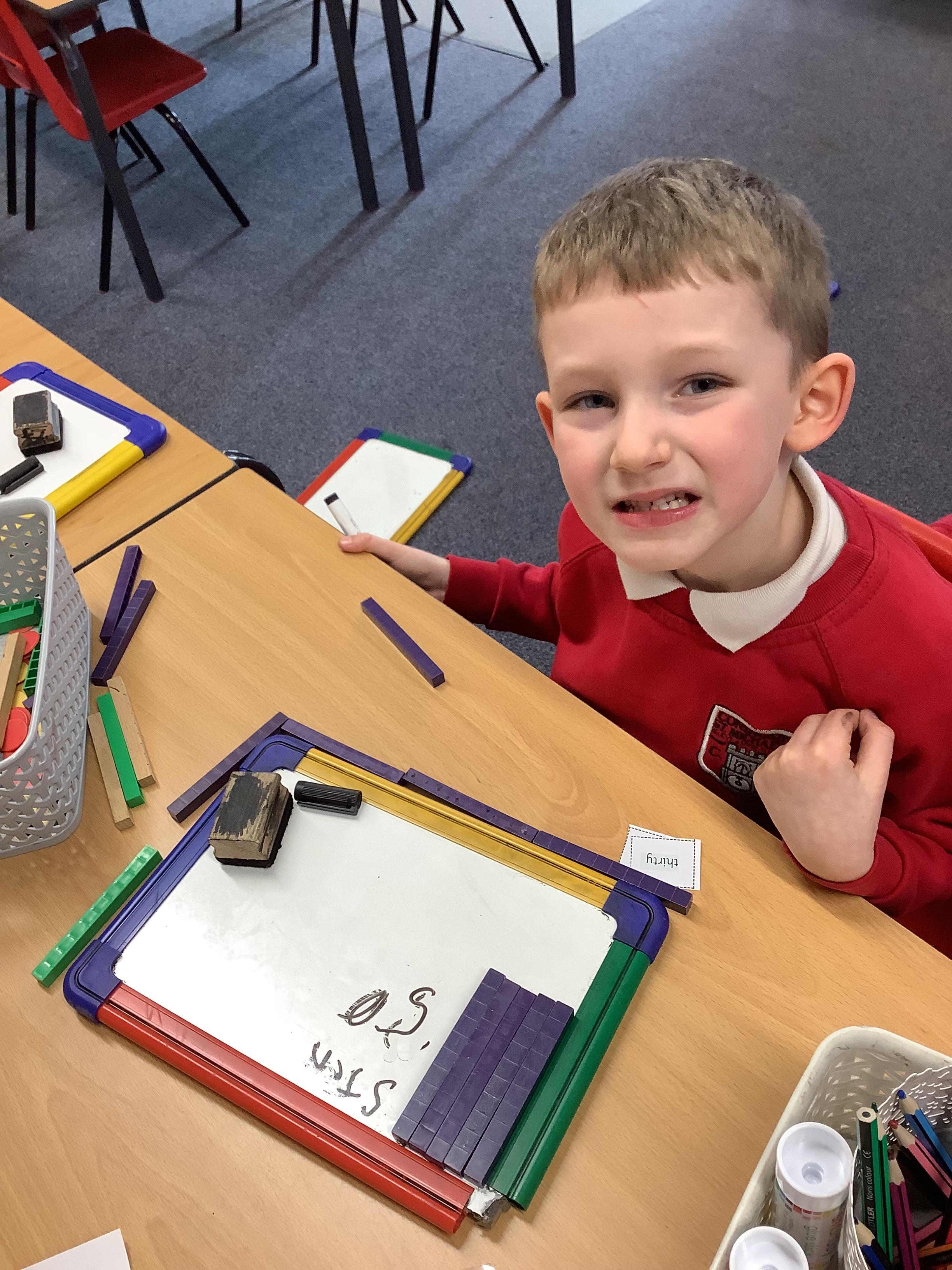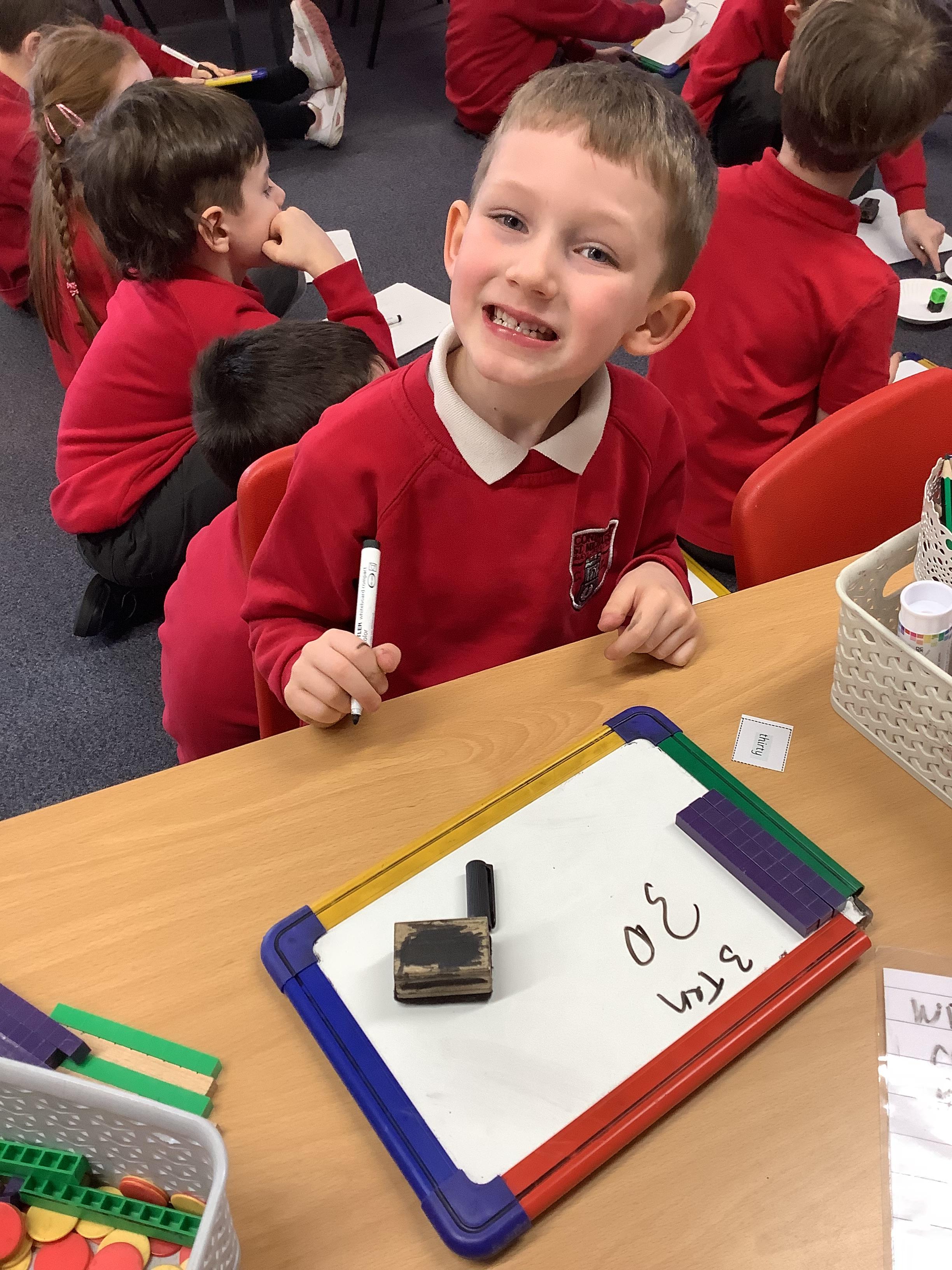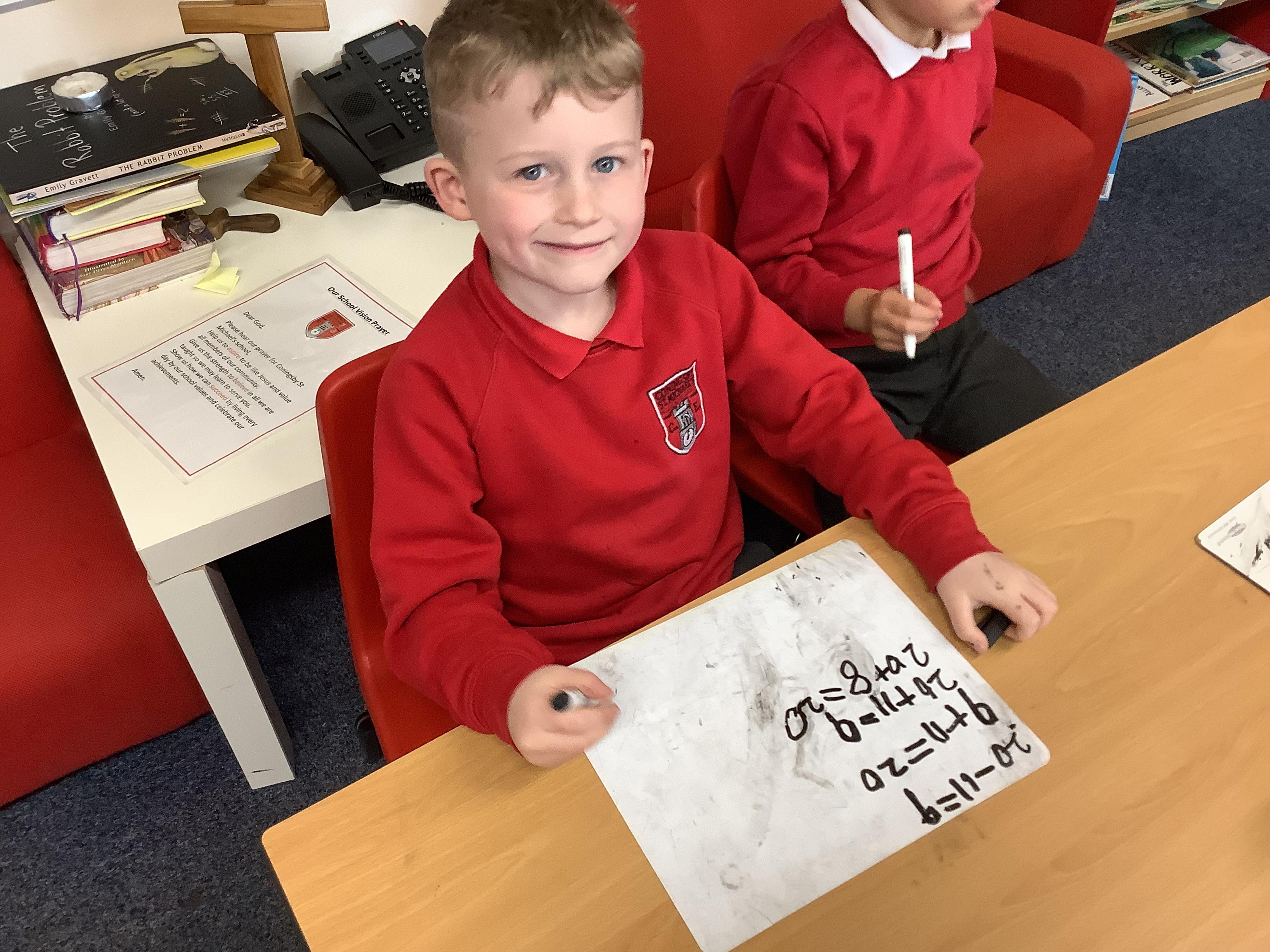 In Year 1 maths we have been solving missing number problems. We worked with a partner using number lines, tens frames and part whole models to solve the problems.