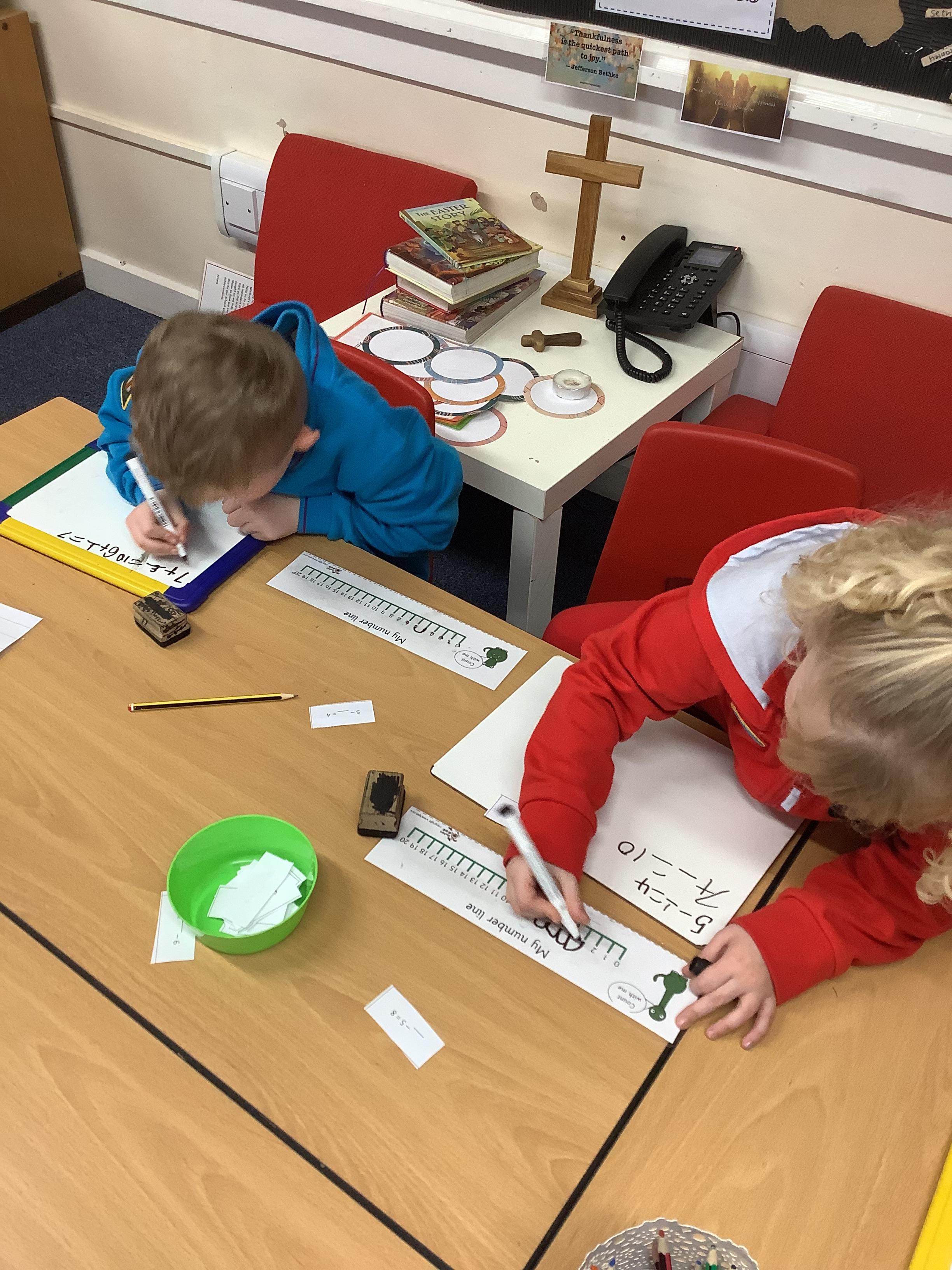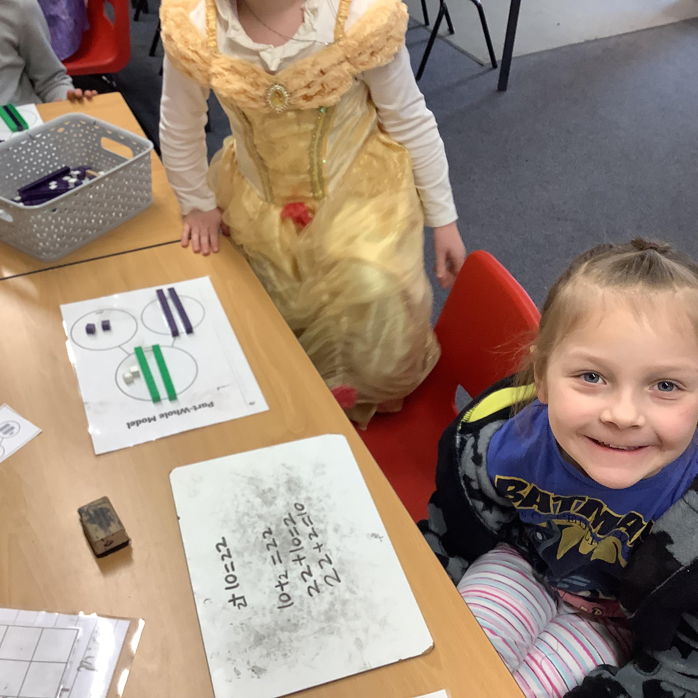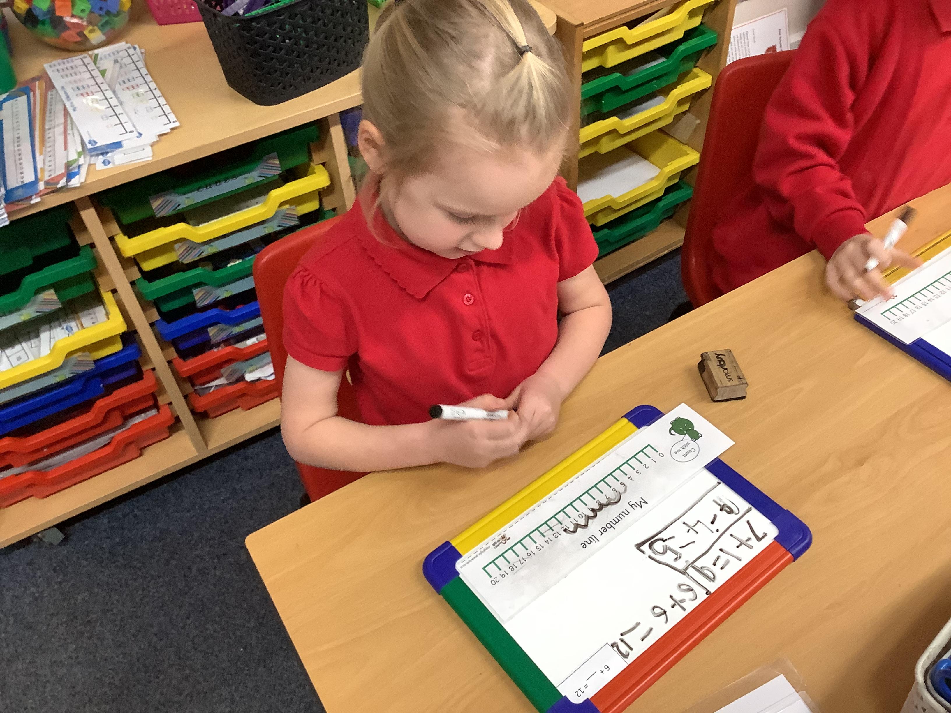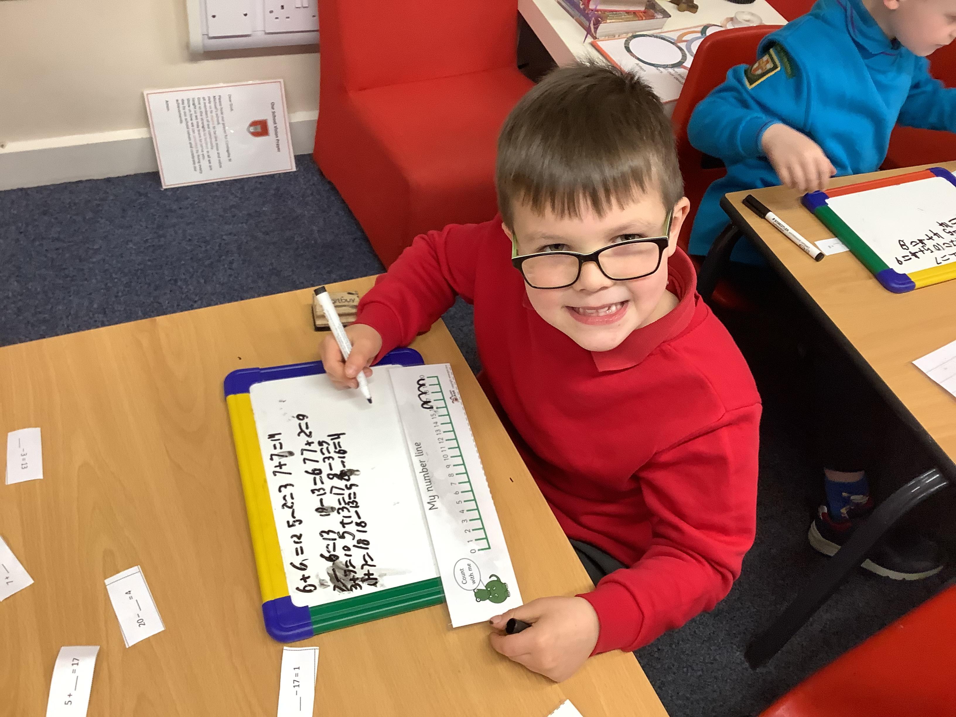 In Year 1 maths we have been solving missing number problems. We worked with a partner using number lines, tens frames and part whole models to solve the problems.