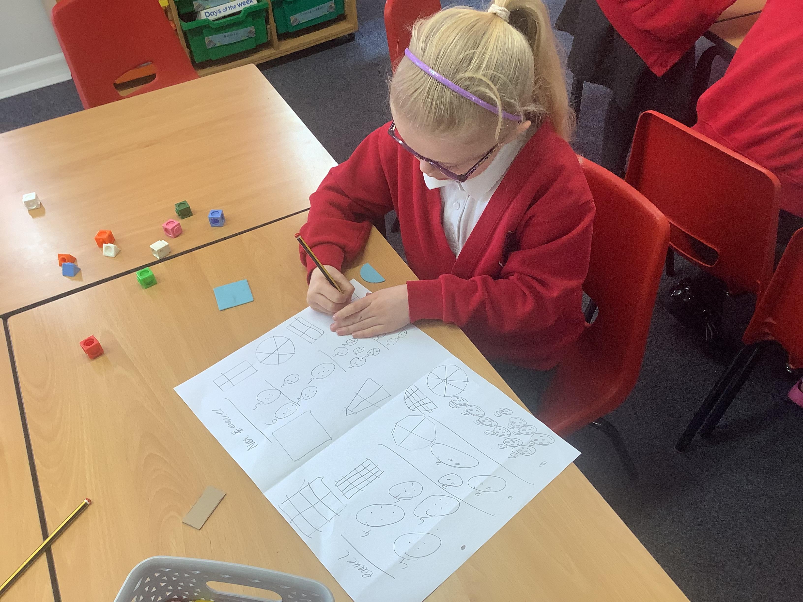In Year 2 in maths started our learning about fractions. We looked equal and unequal groups.