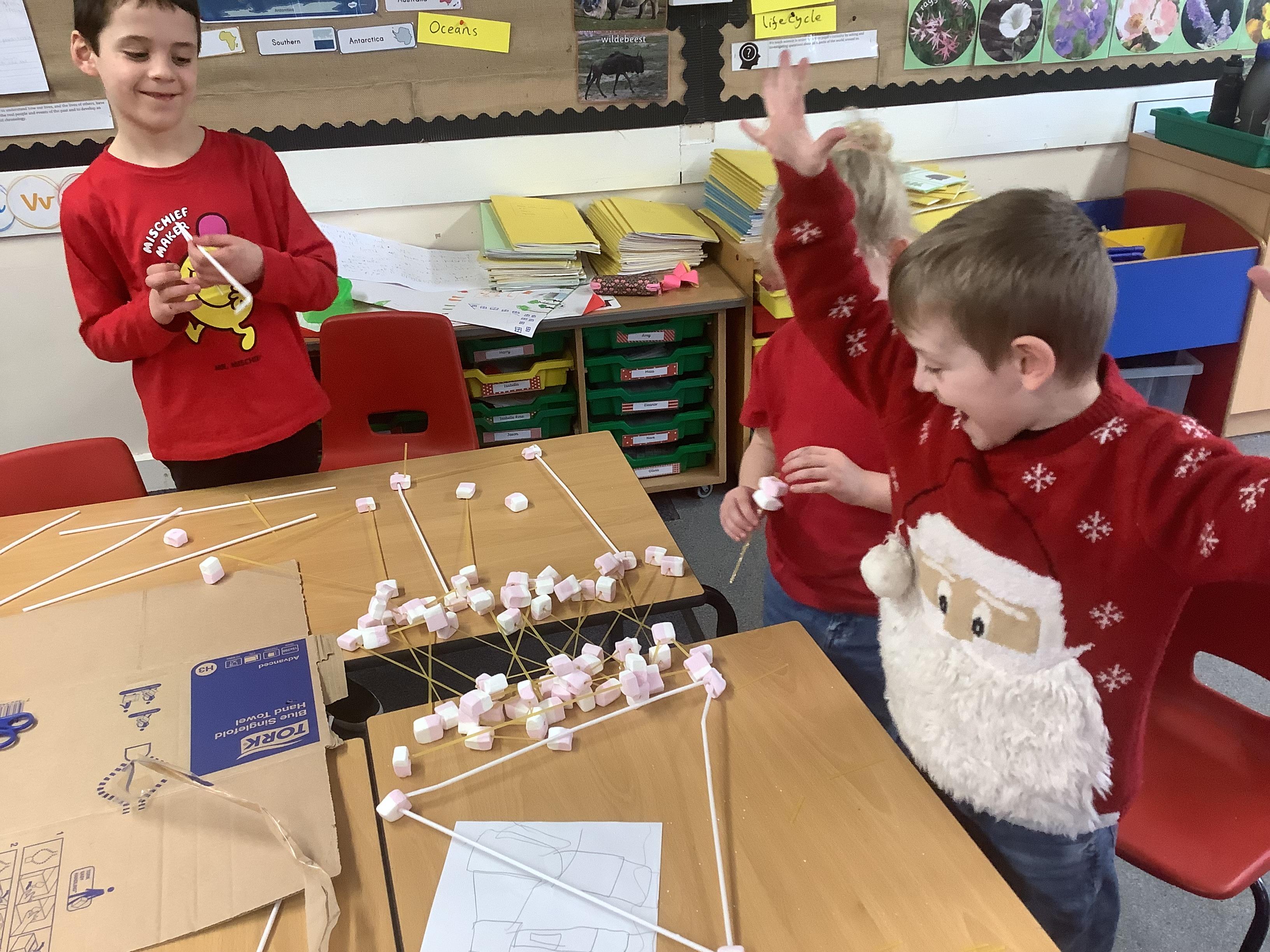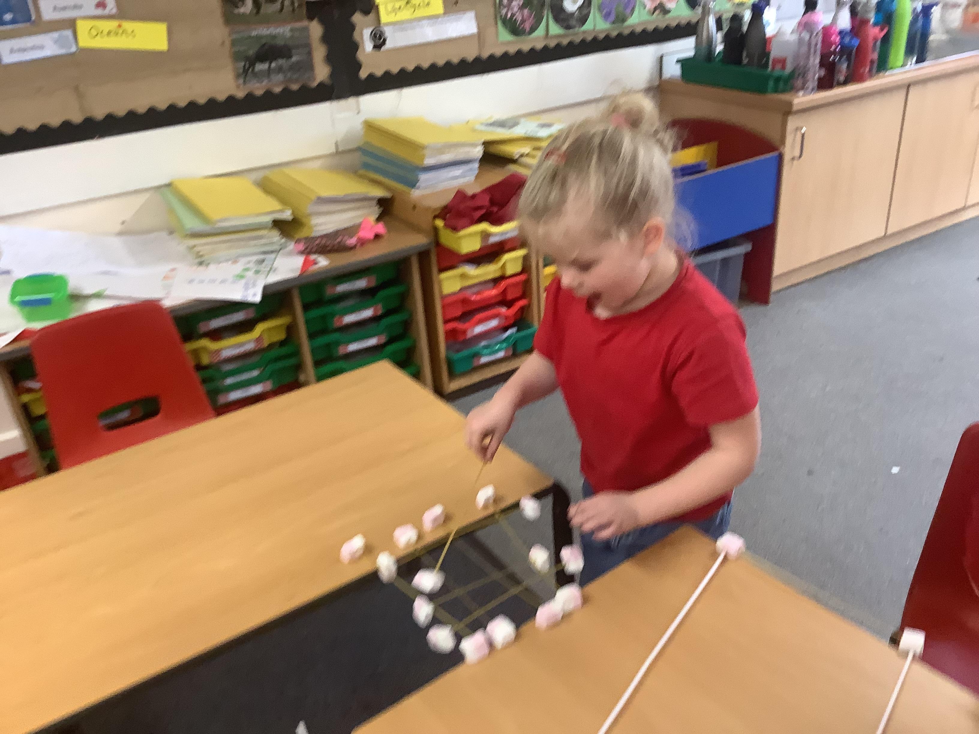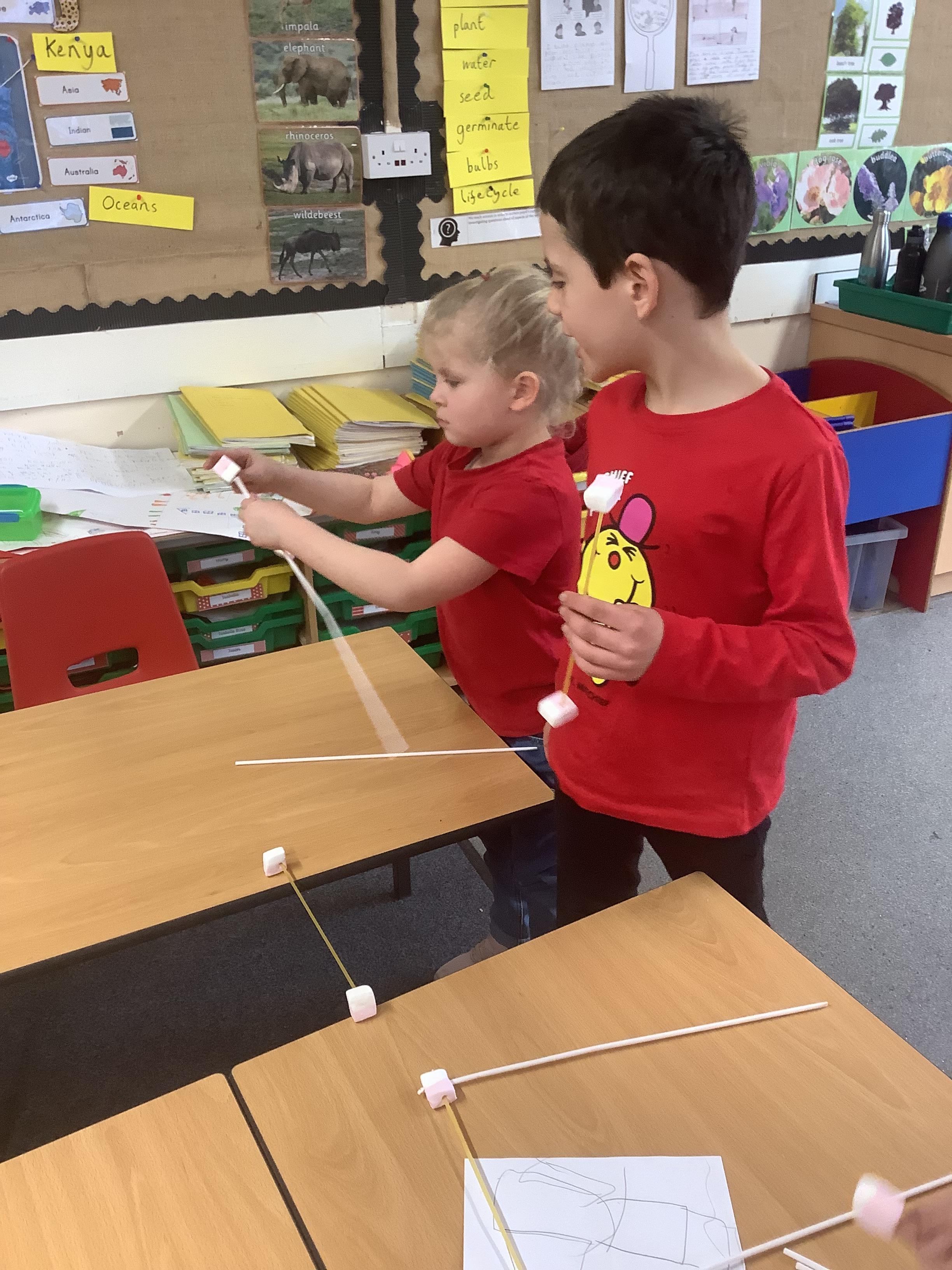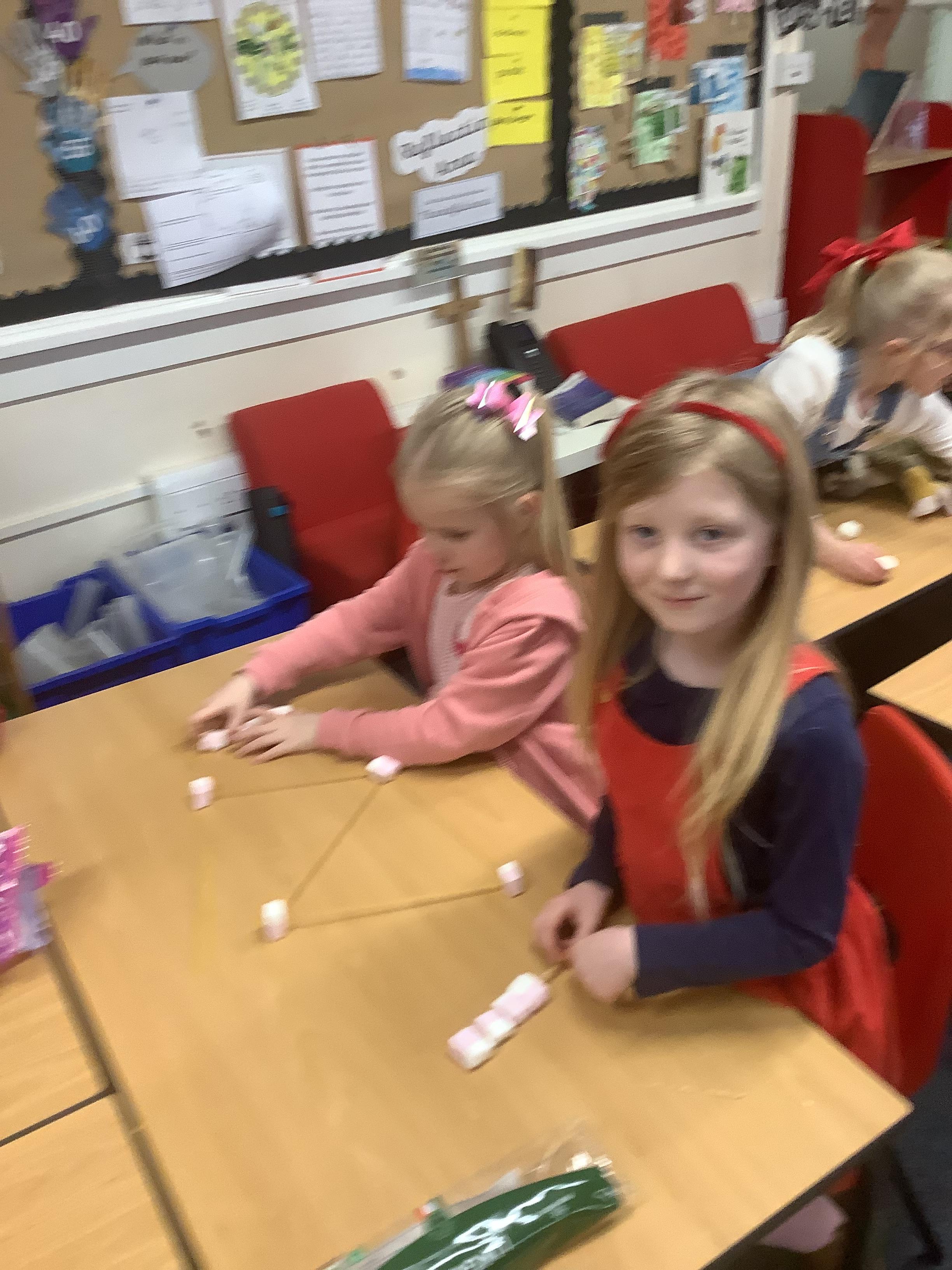 As it is British Science week we decided a challenge was in order. We had to create a bridge using marshmallows and spaghetti that would be strong enough to hold weights.