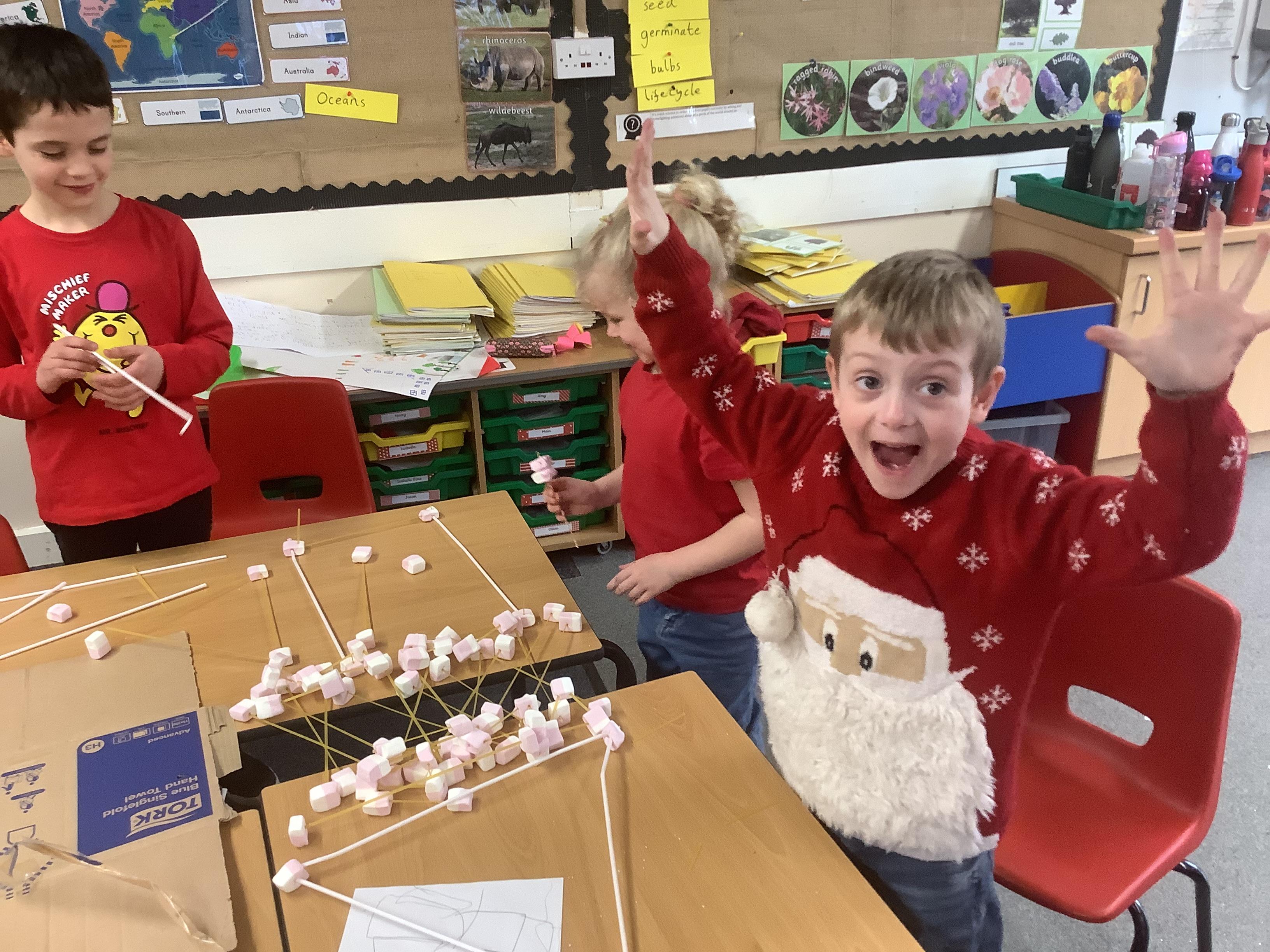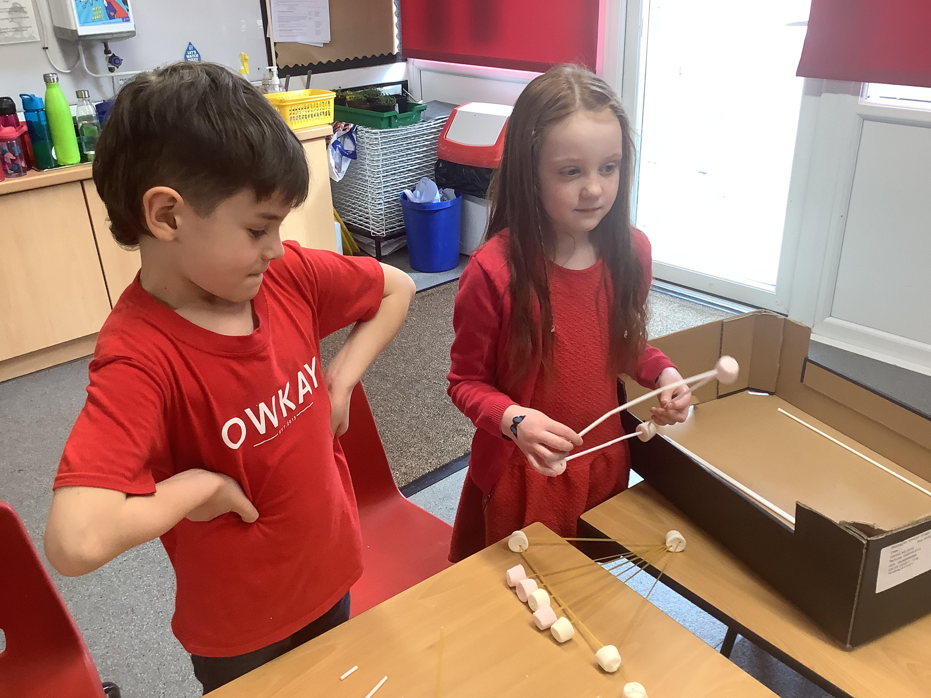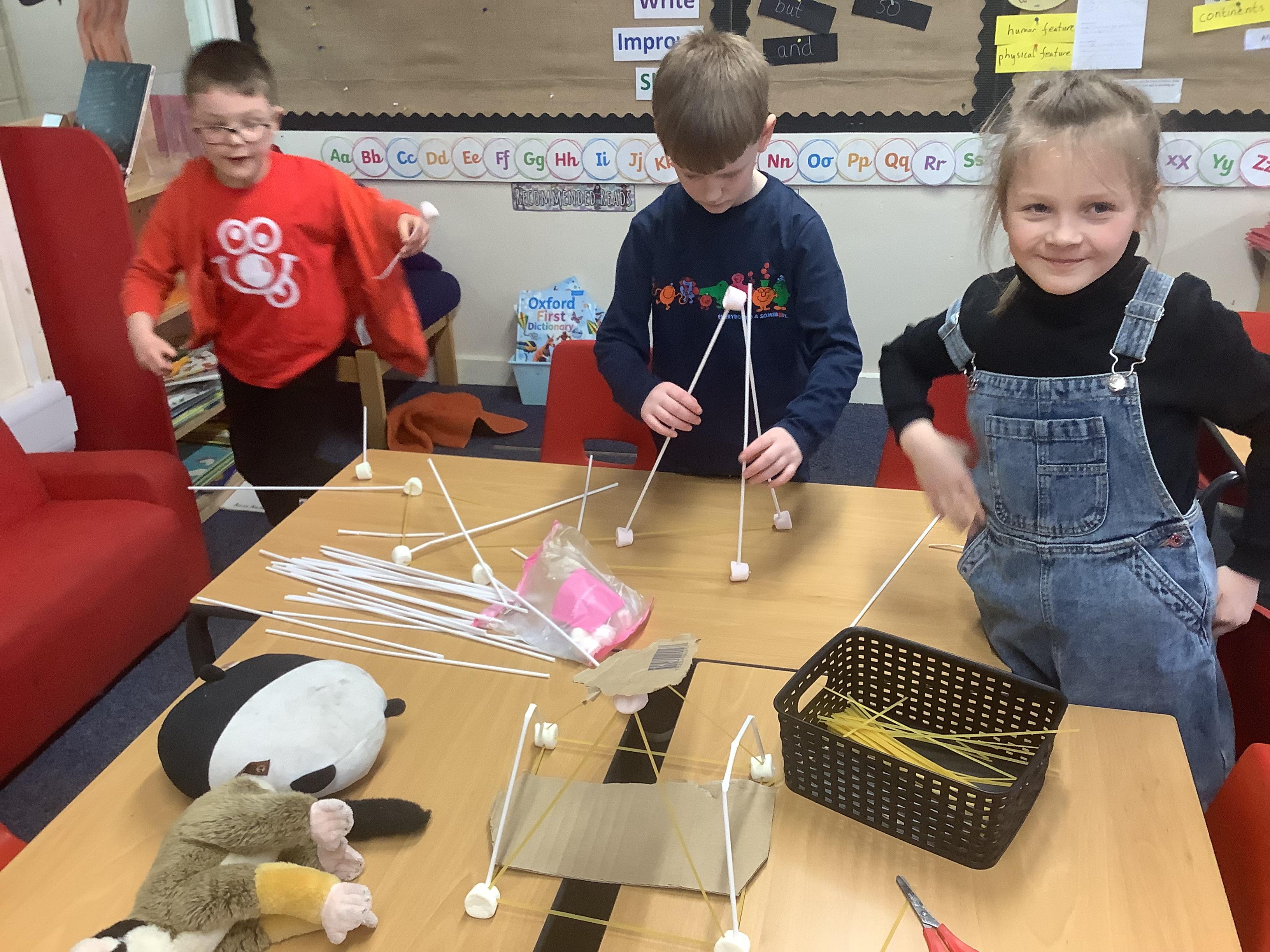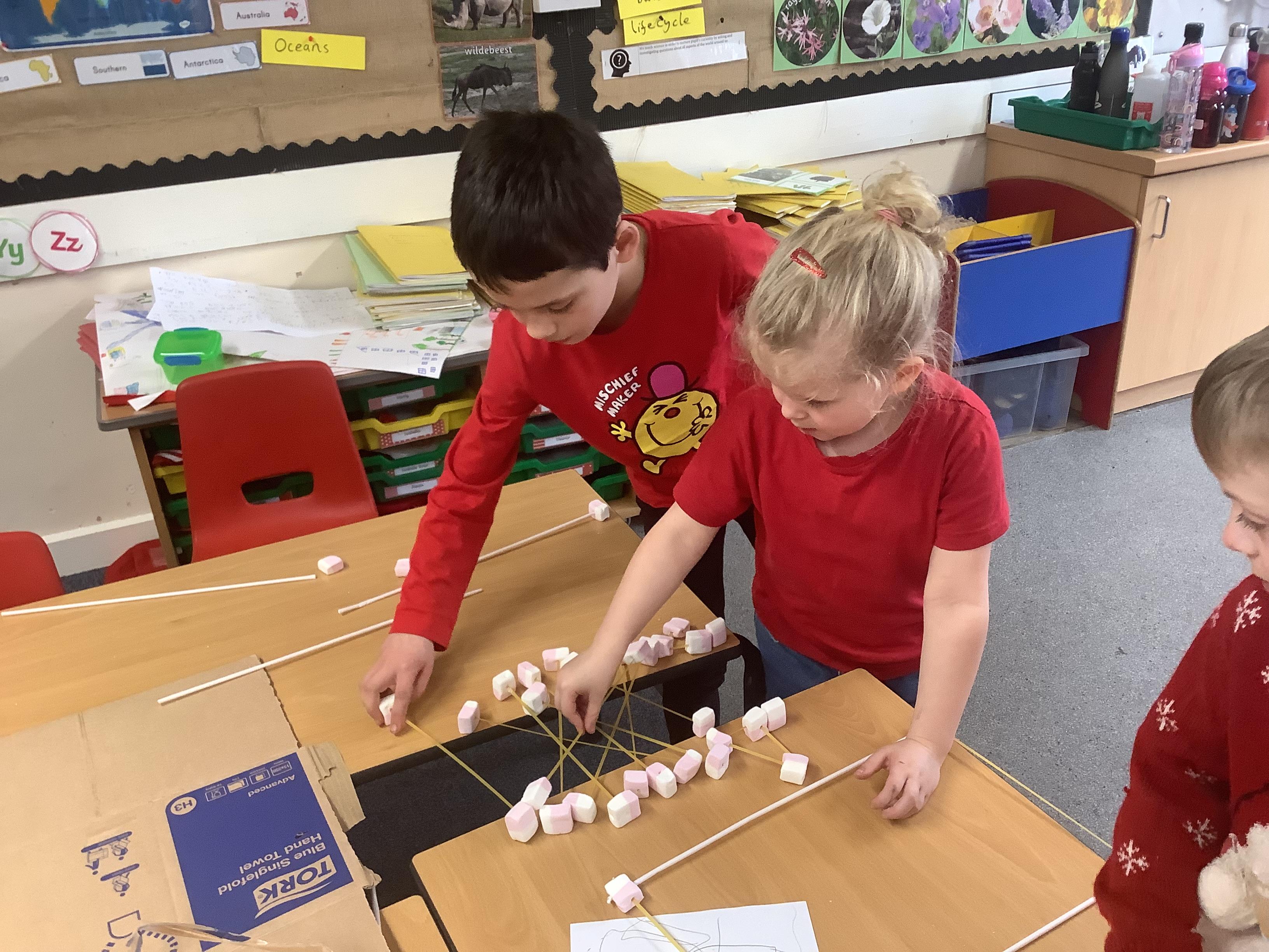 As it is British Science week we decided a challenge was in order. We had to create a bridge using marshmallows and spaghetti that would be strong enough to hold weights.