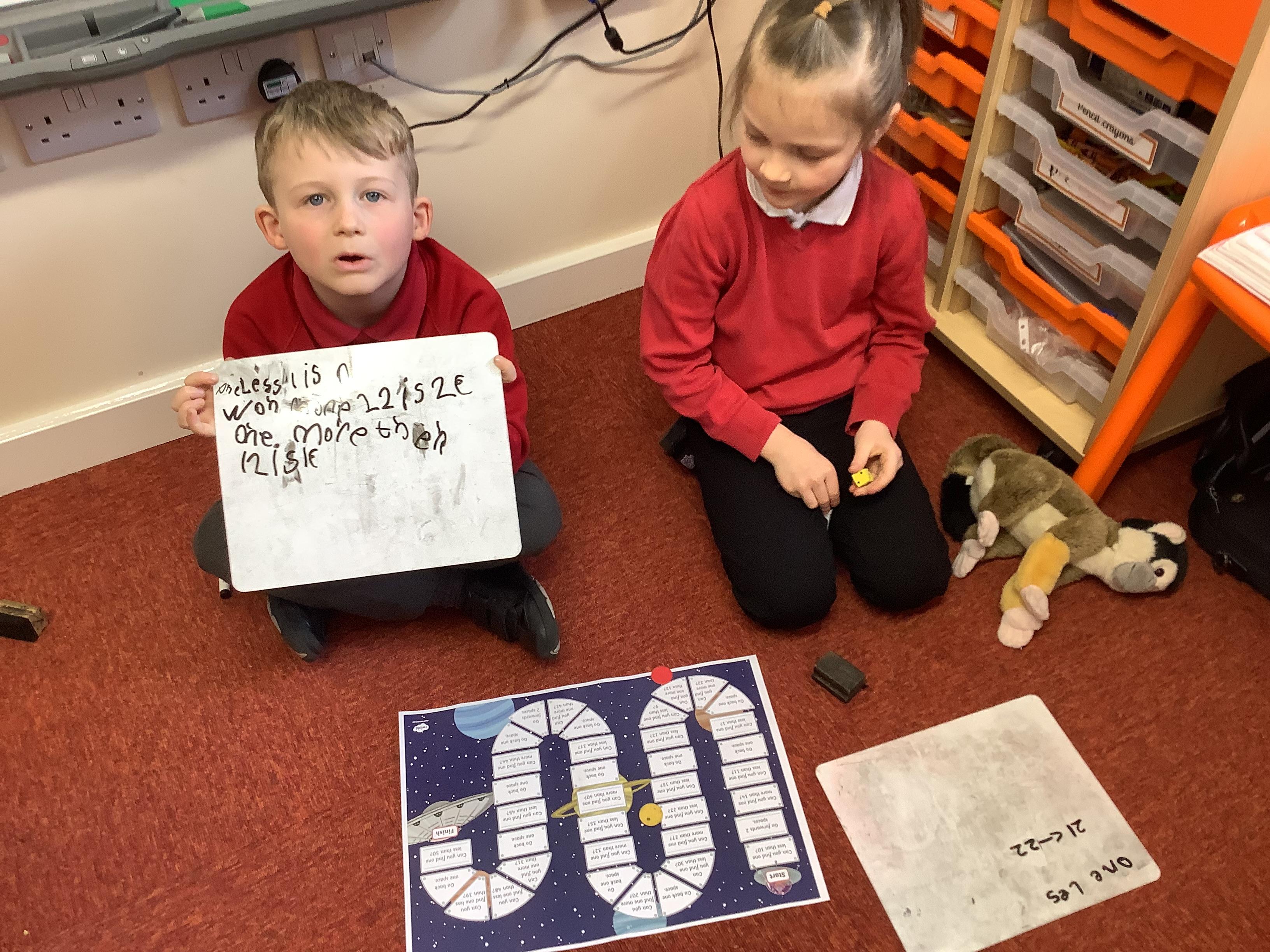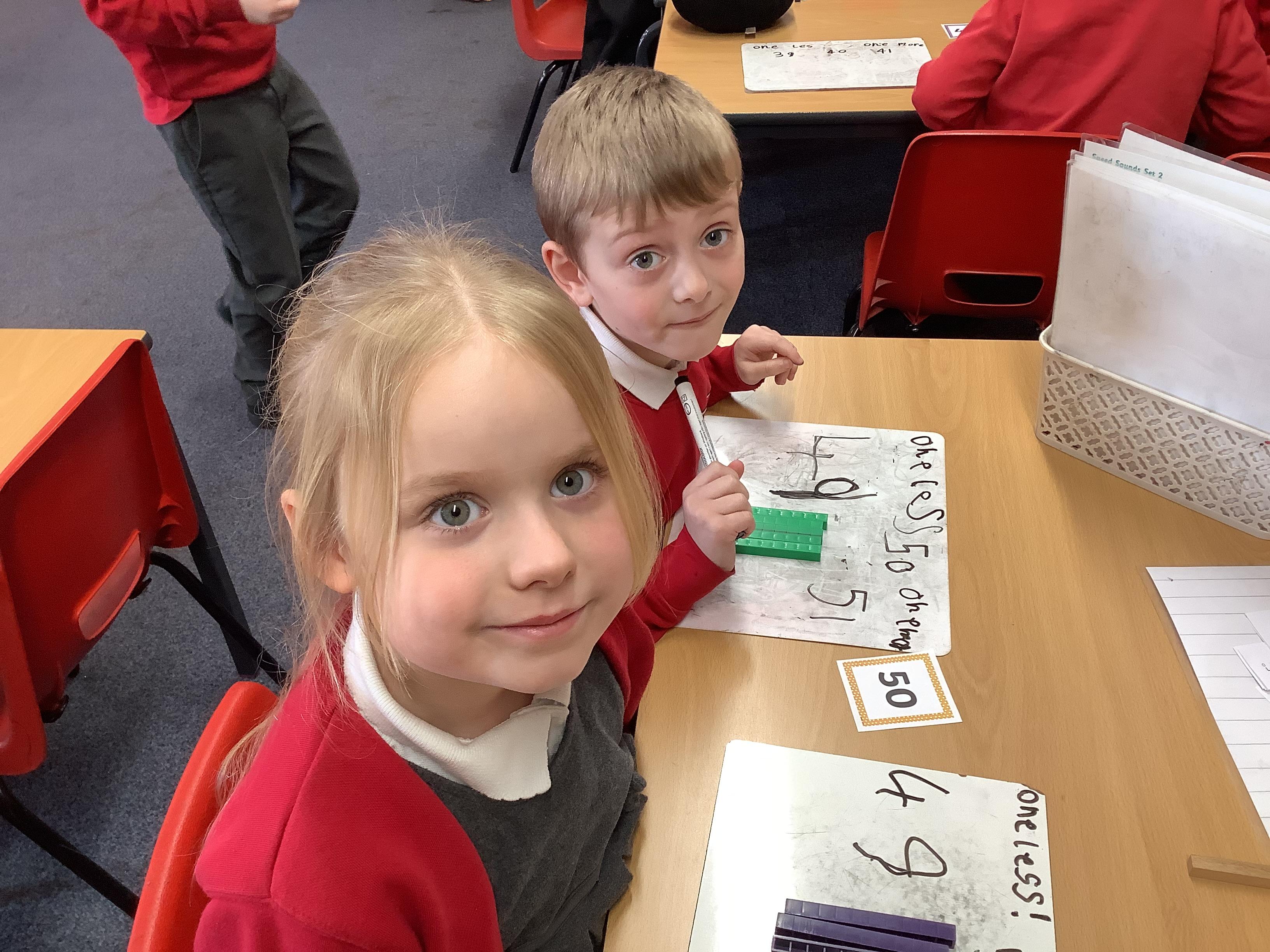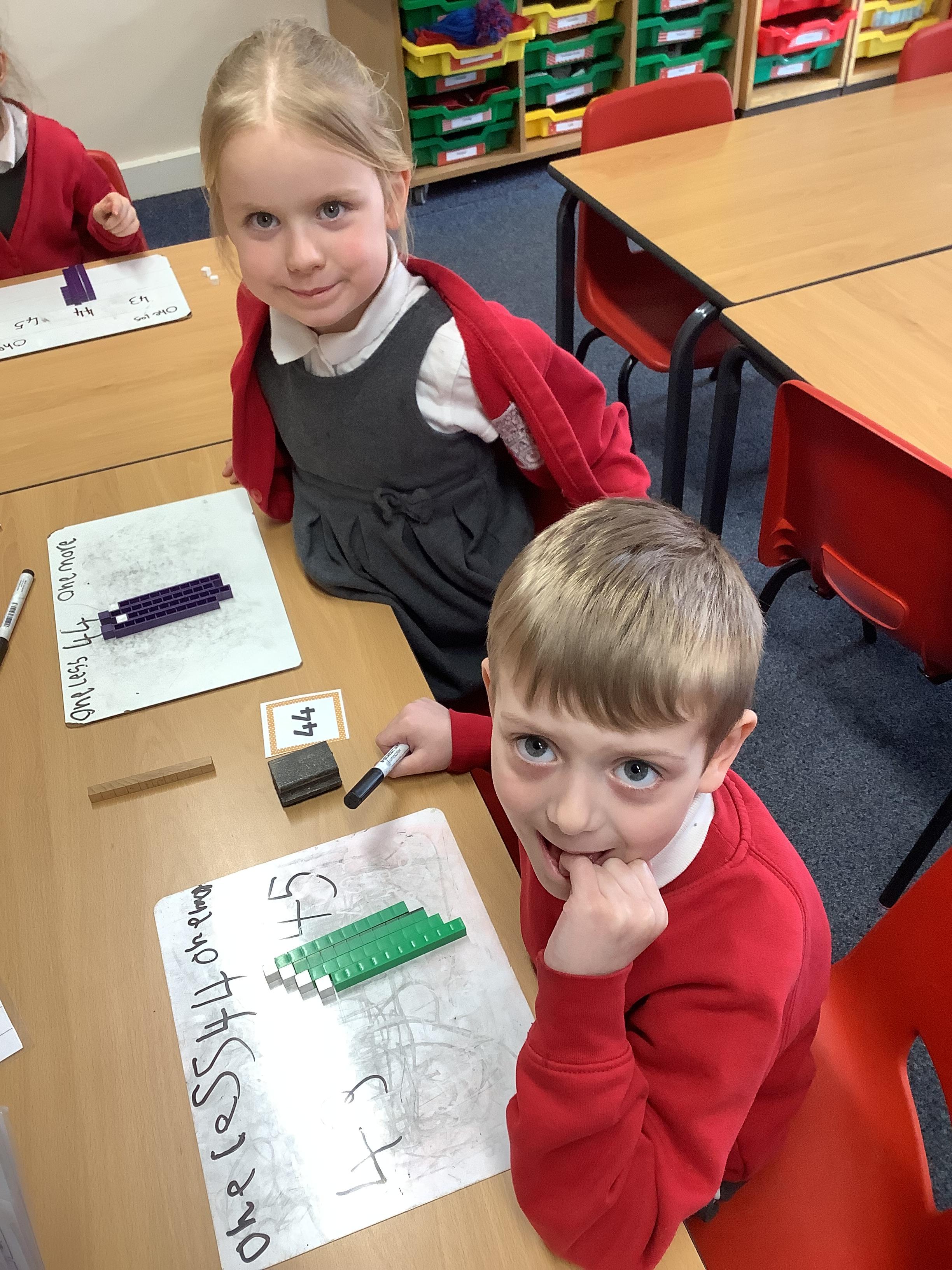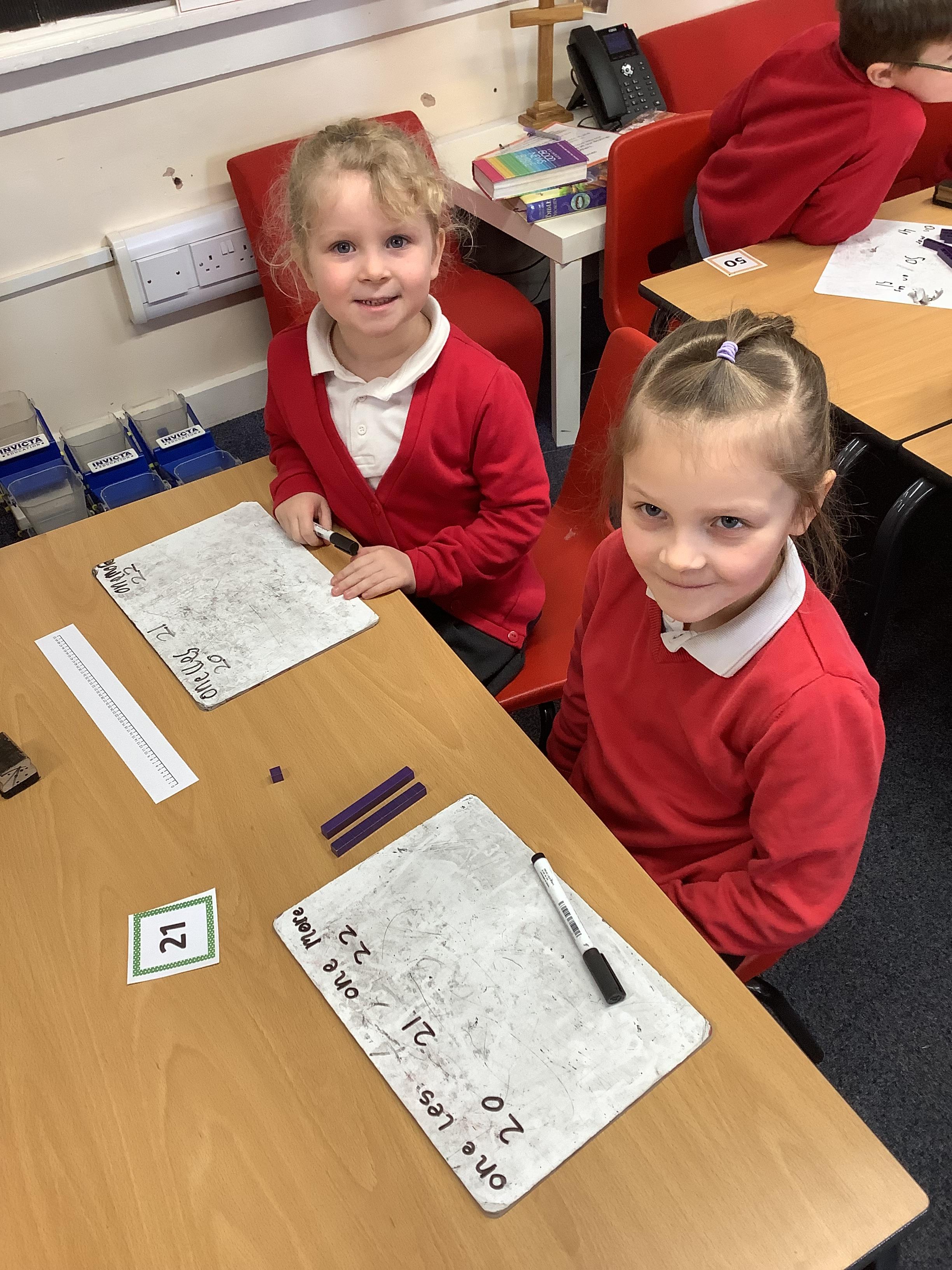 In year 1 maths we were finding one more and one less. We picked a number card and then built that number with tens and ones. We added one more and then took one away to find one less.