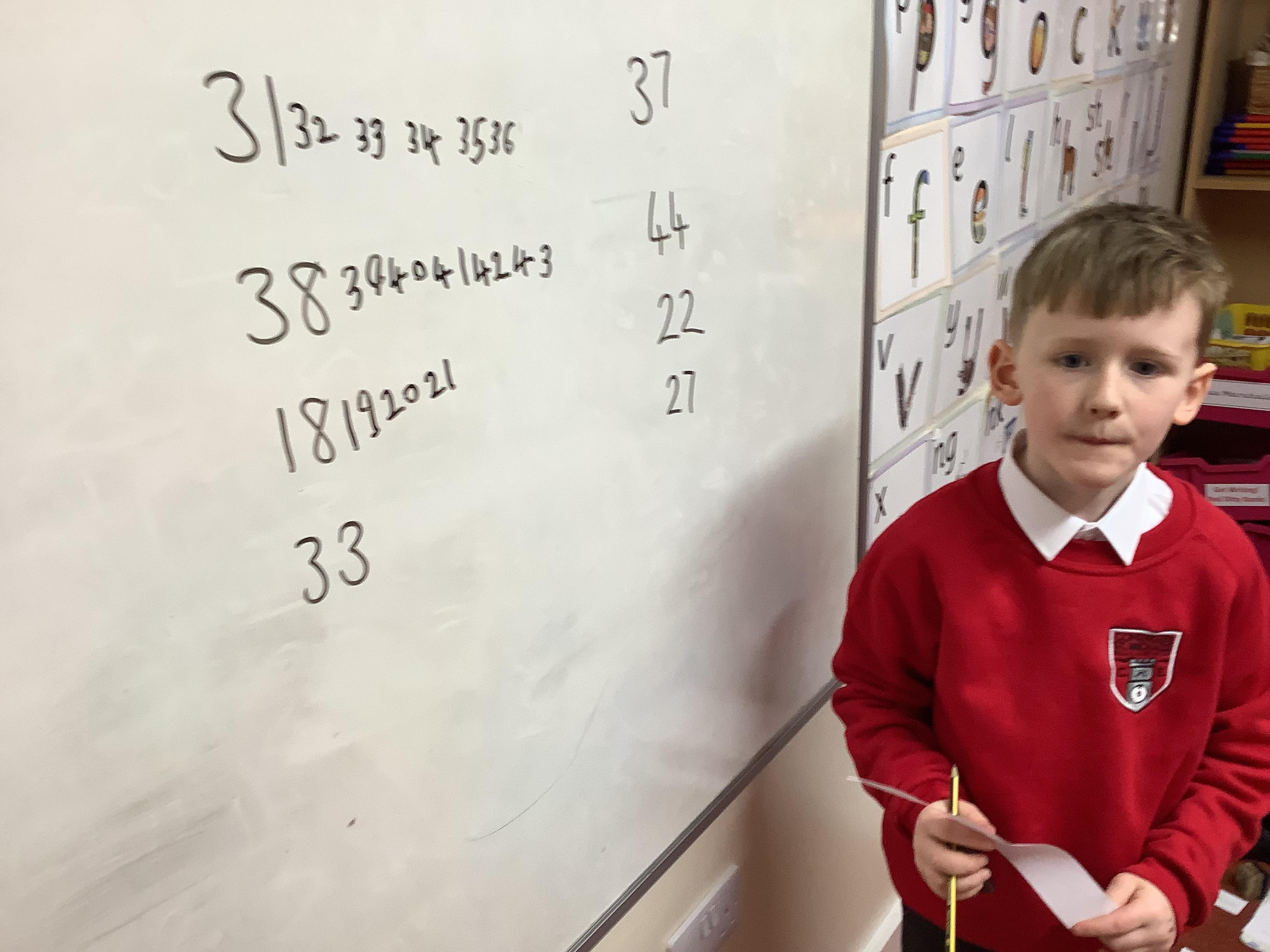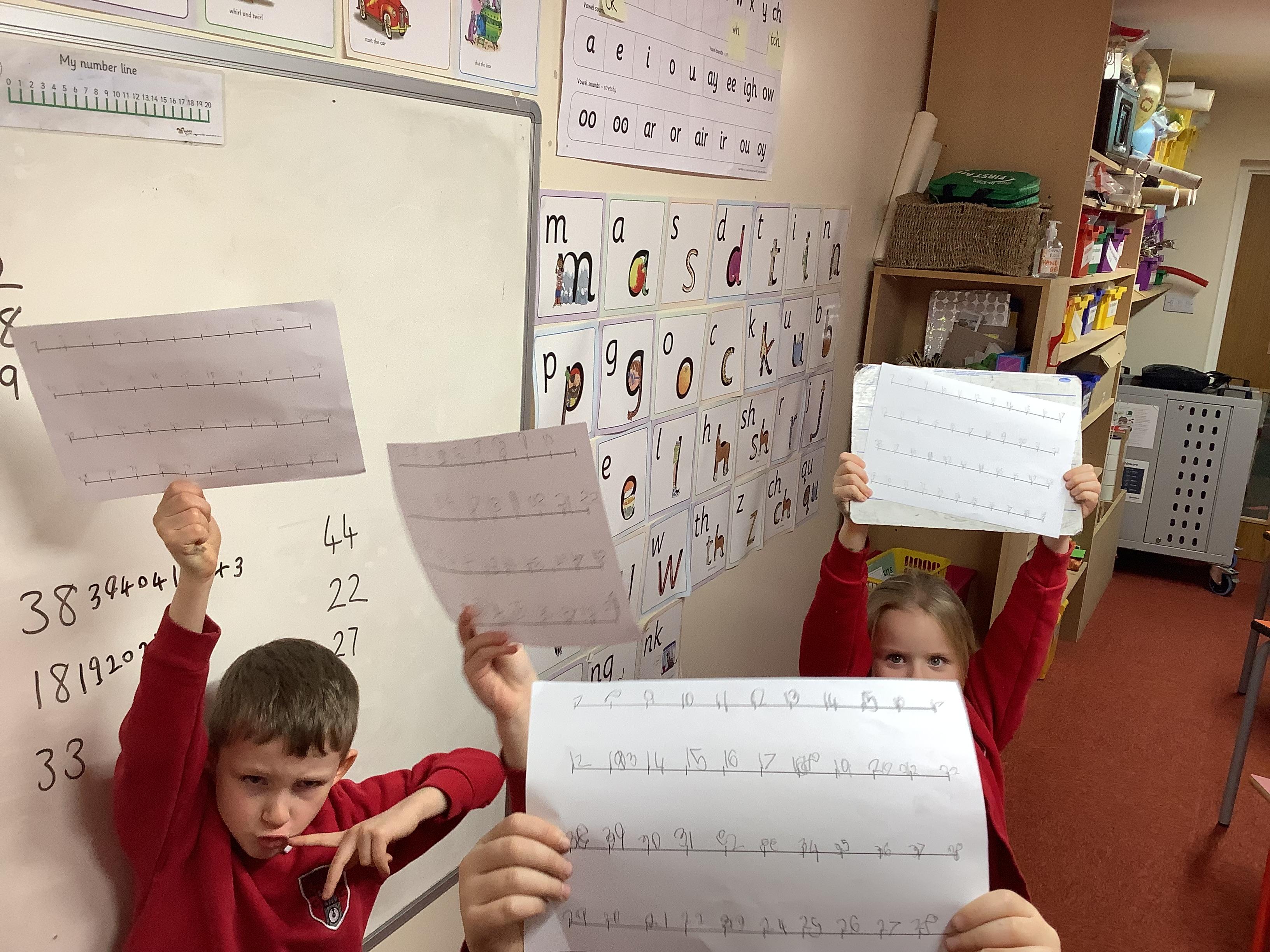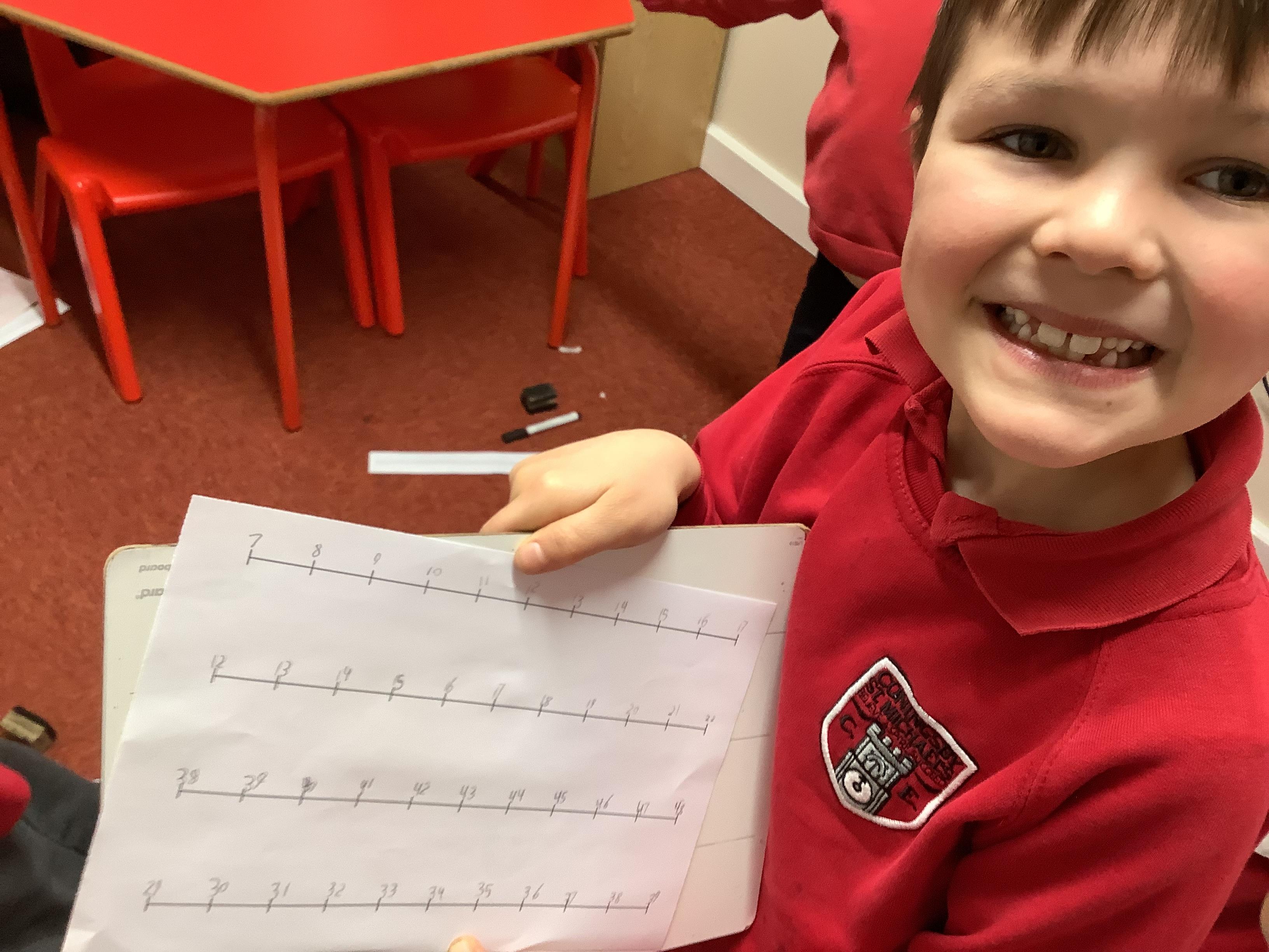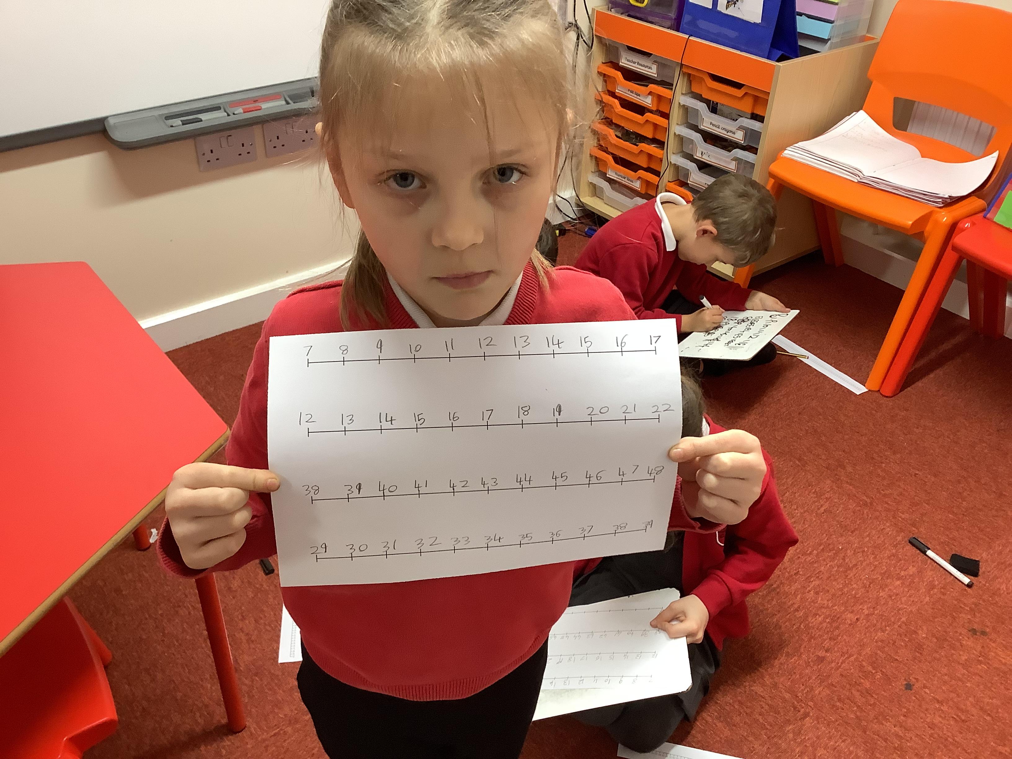 In year 1 maths children looked at number lines to 50. First children had to identify numbers on a number line and progressed to labelling number lines.