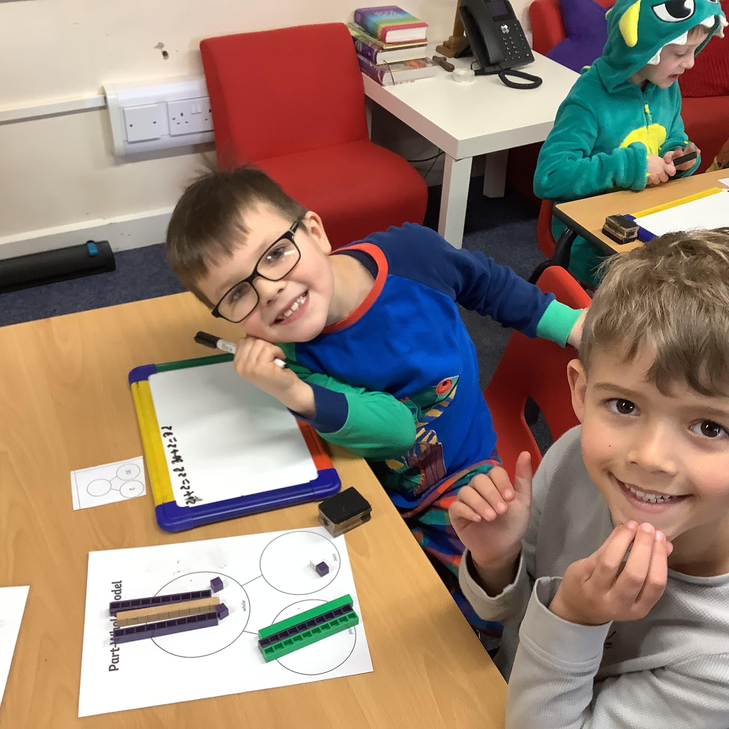 Year 1 in maths today, we have been partitioning numbers into tens and ones using part whole models to understand how they are made up.