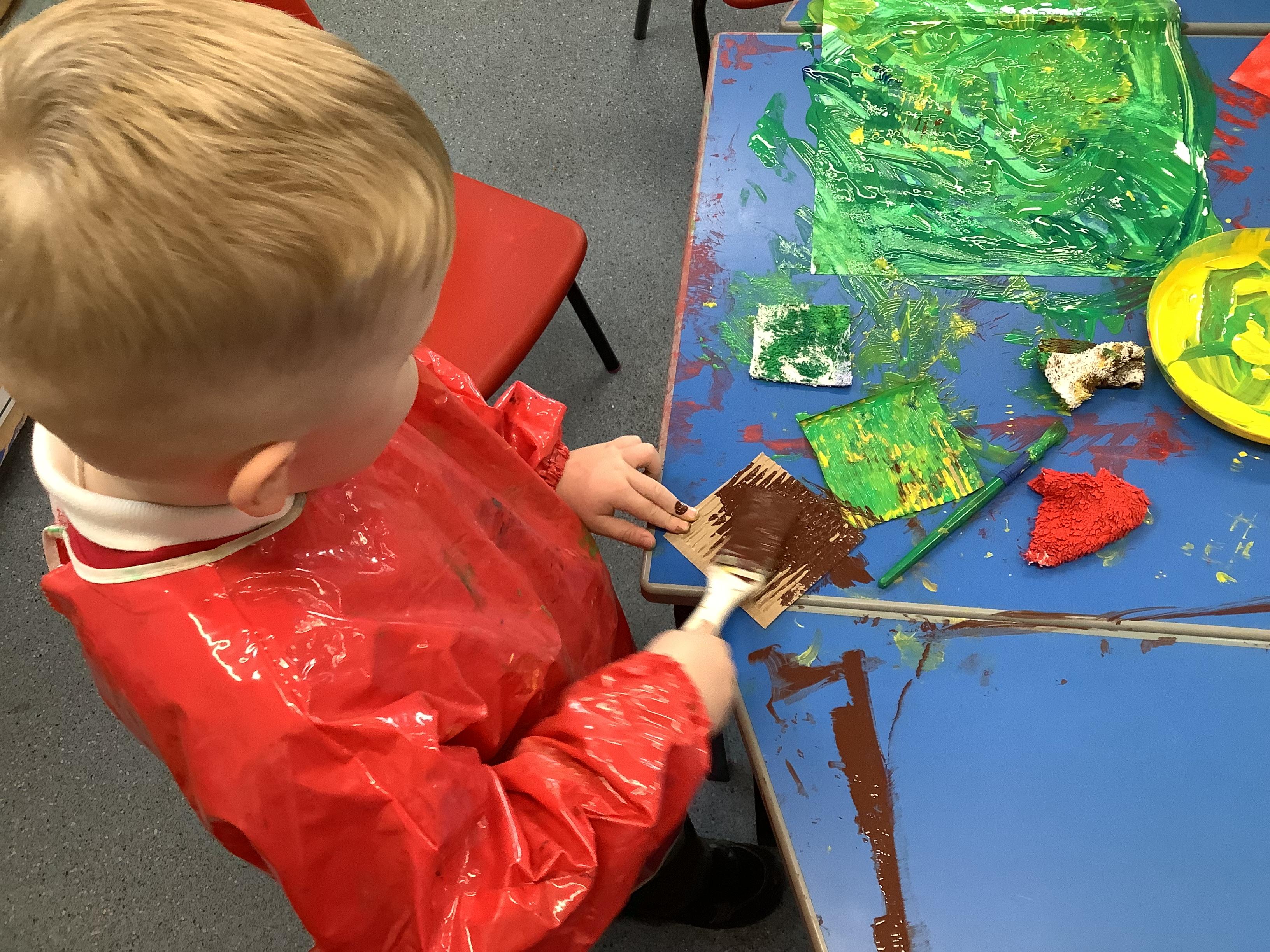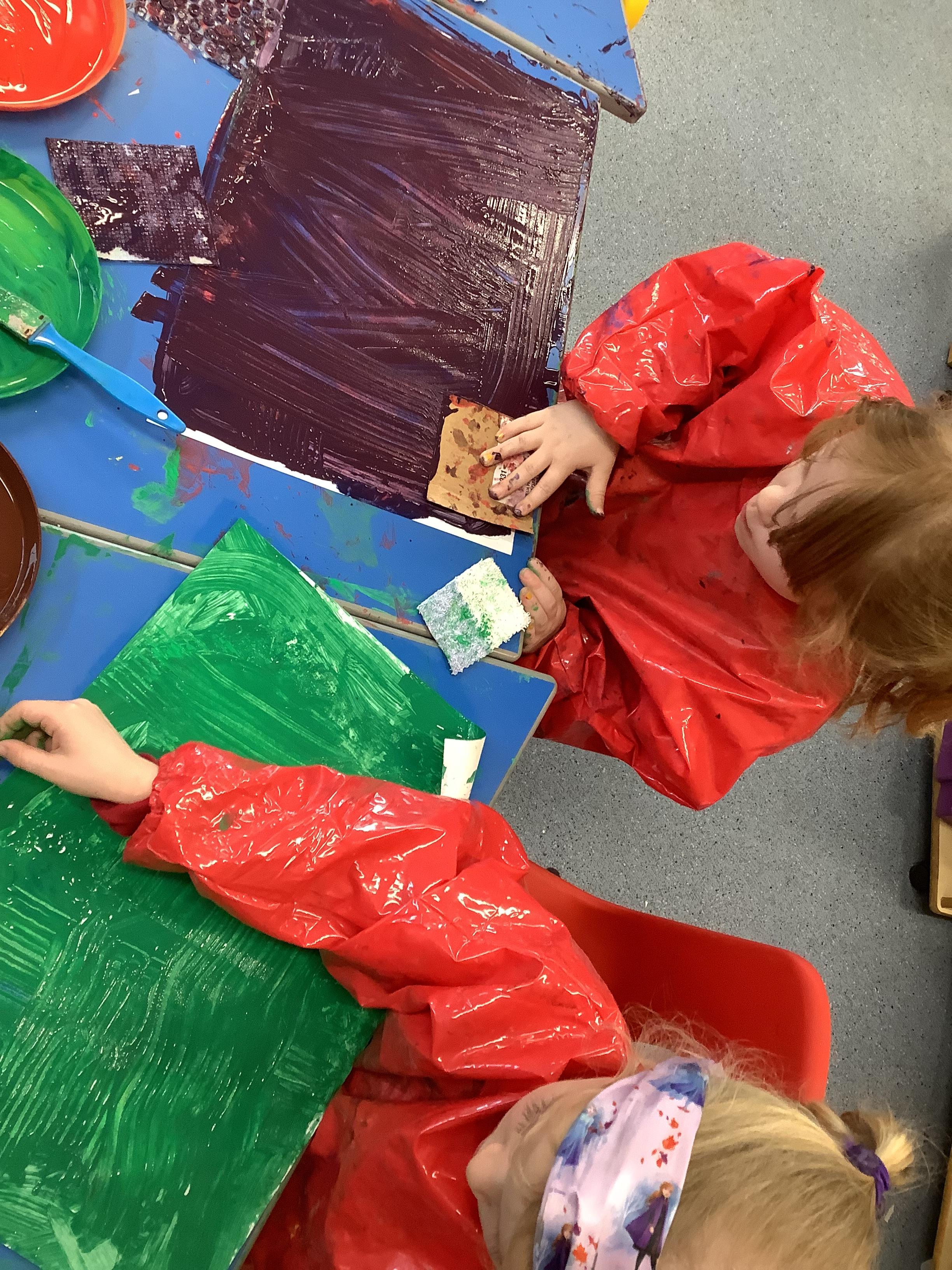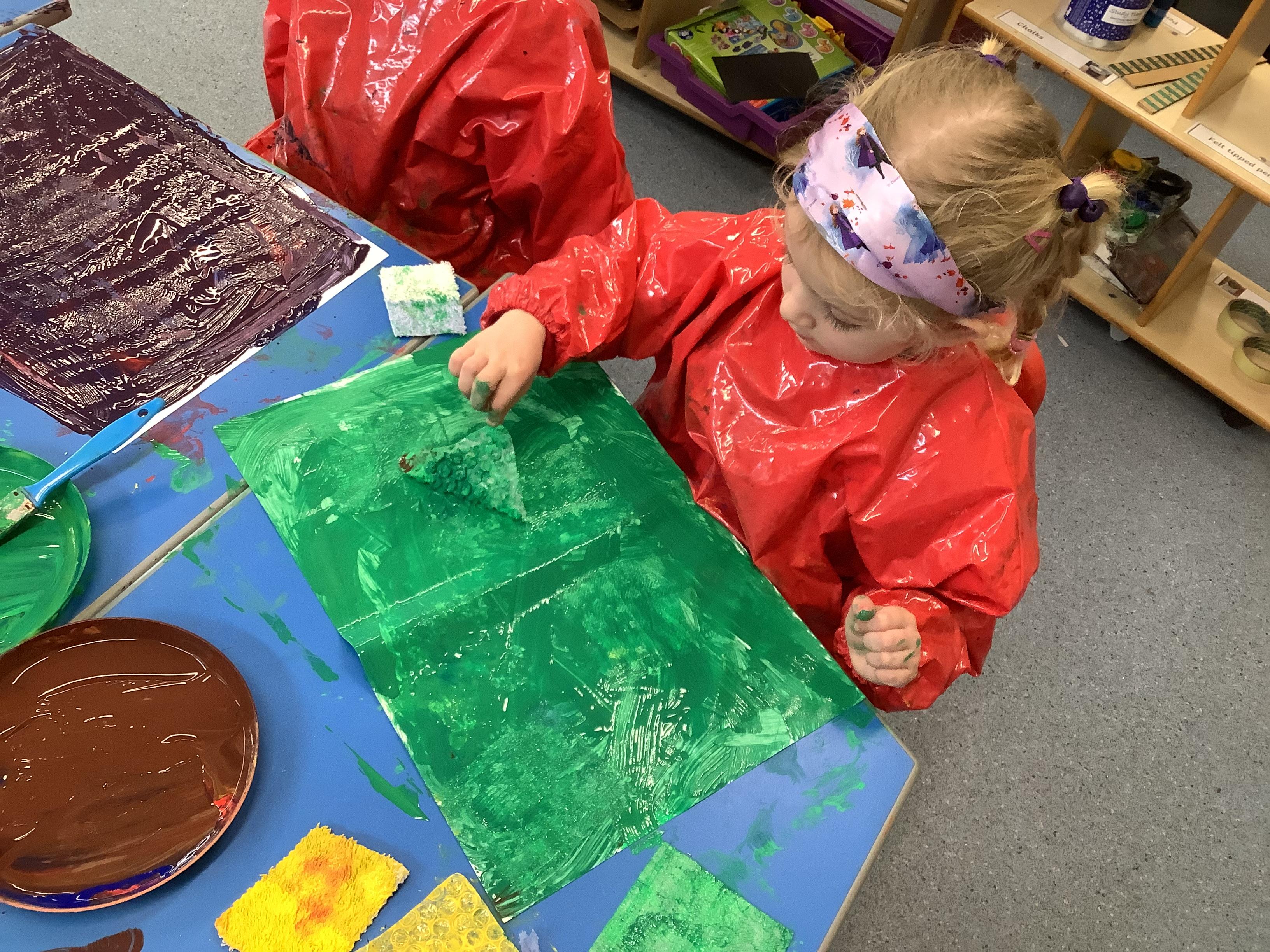 In Art, we have been exploring the work of Eric Carle. We have printed with various materials onto paint to make patterned paper.
