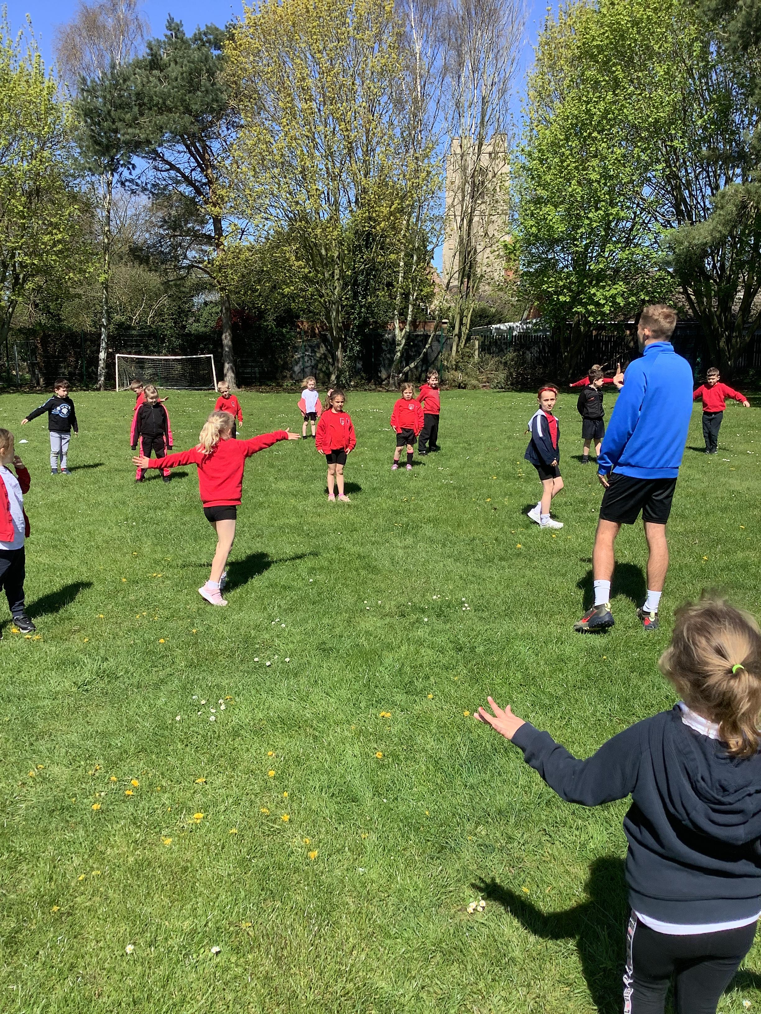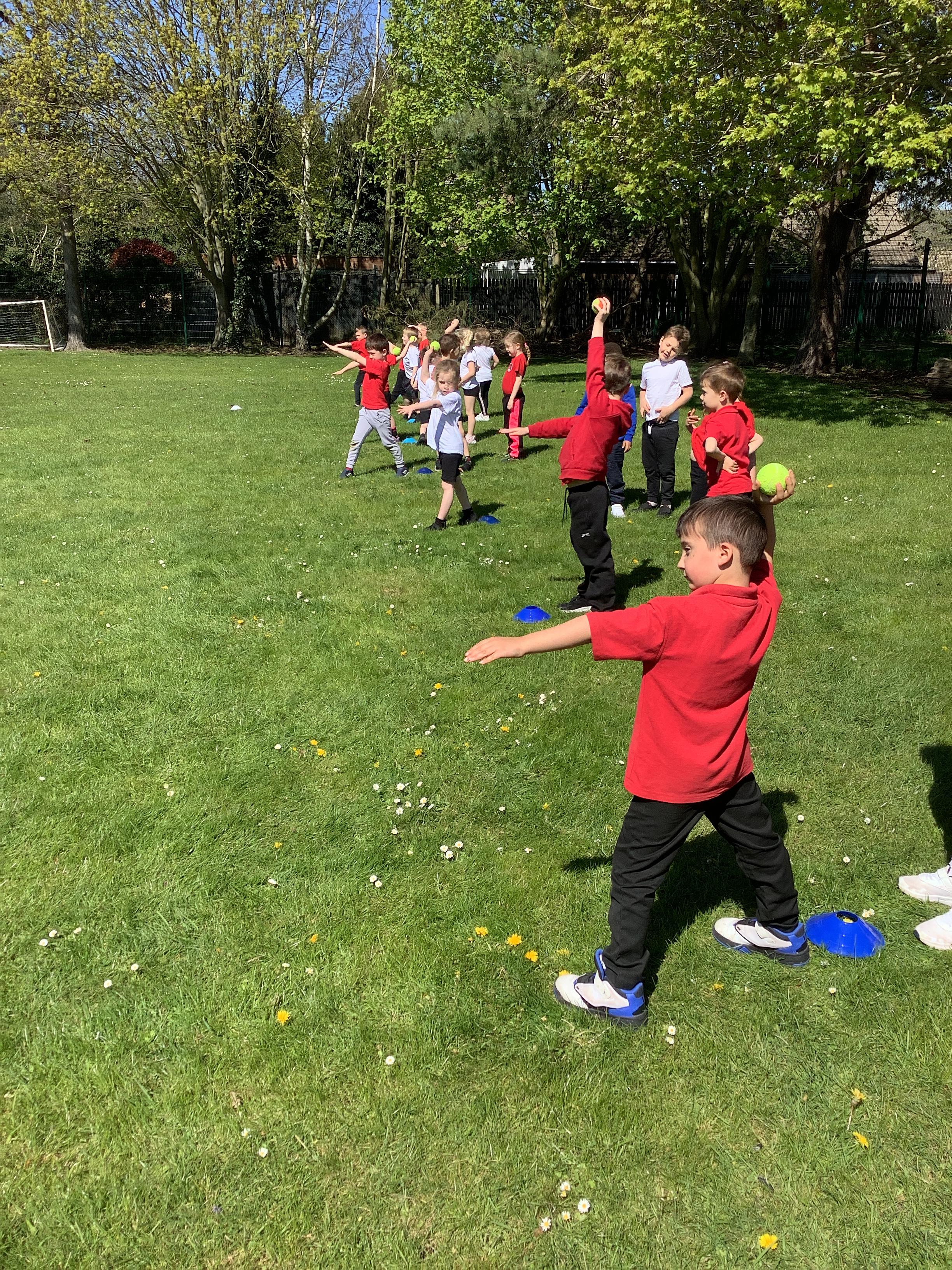In PE we had a JB coach called Mr Appleyard. He will be teaching us this term. He showed us how to throw underarm in a game called messy garden. Then we practised our overarm throw.