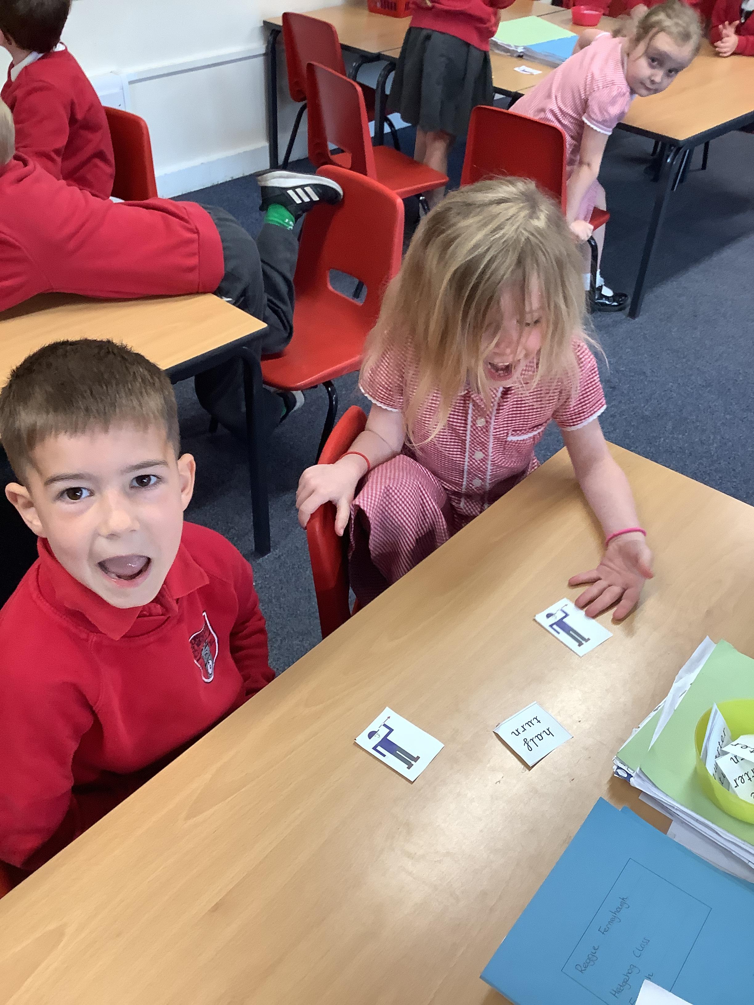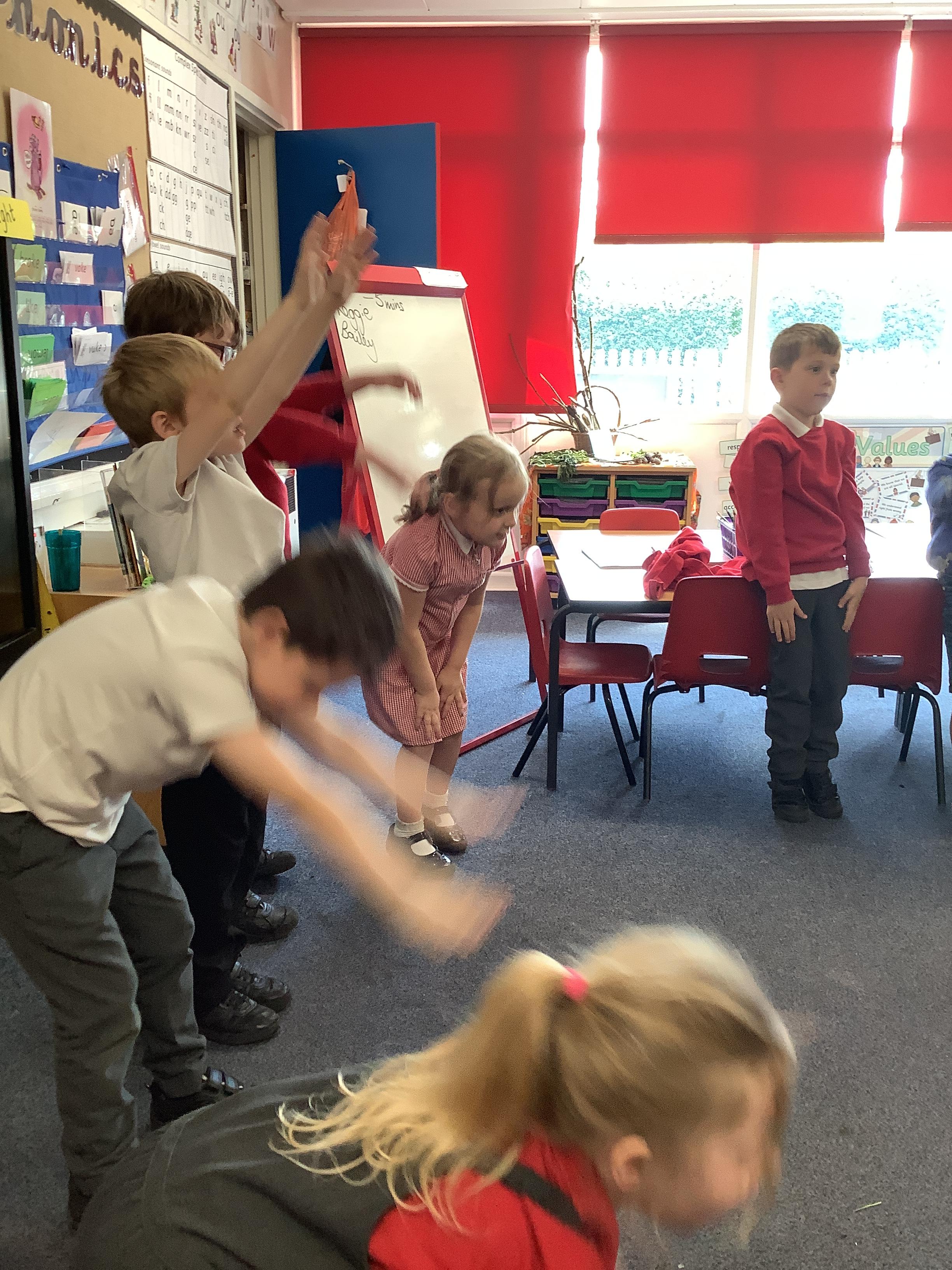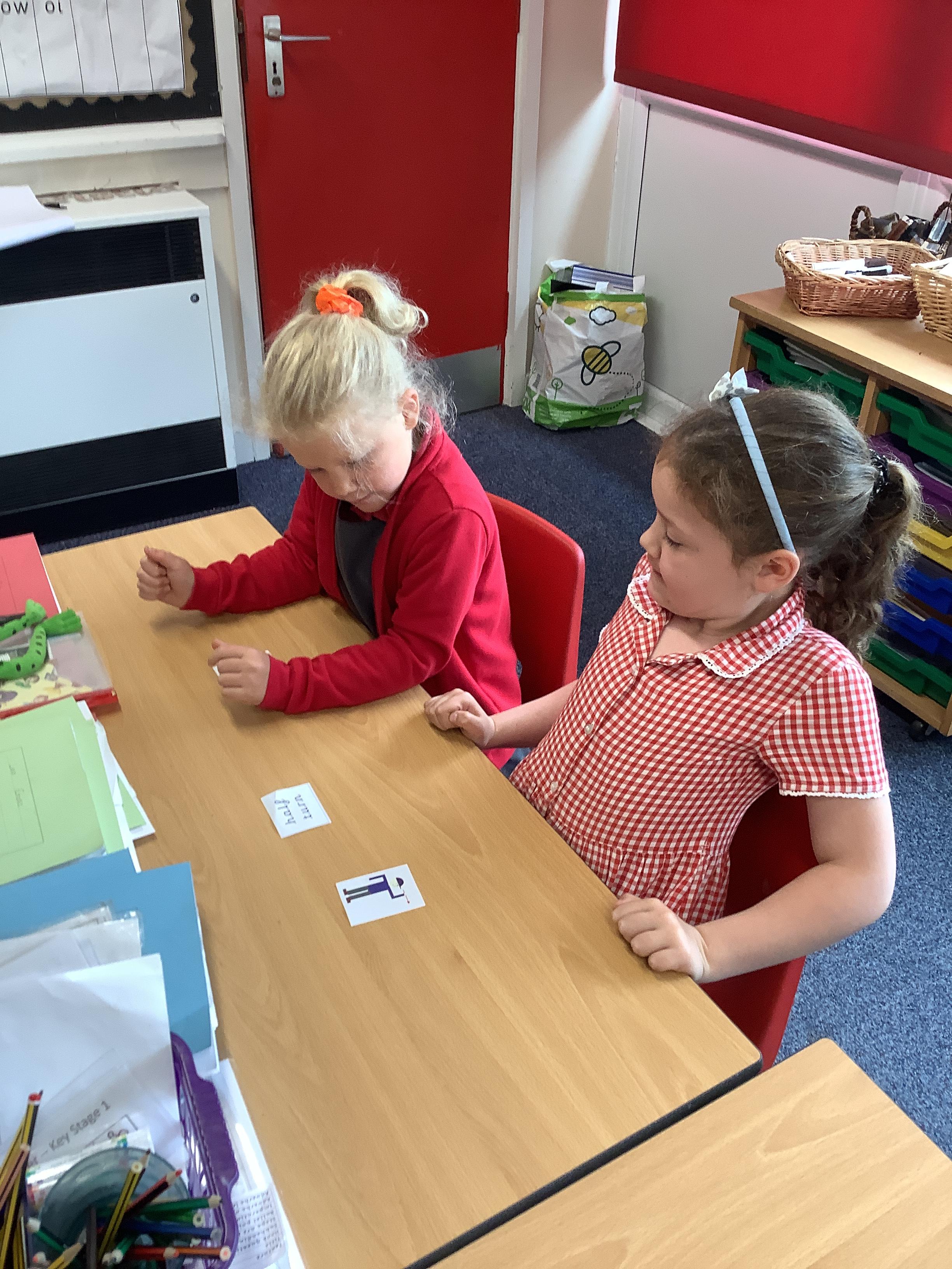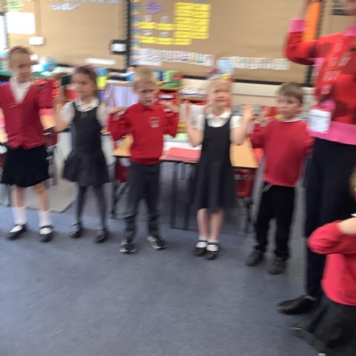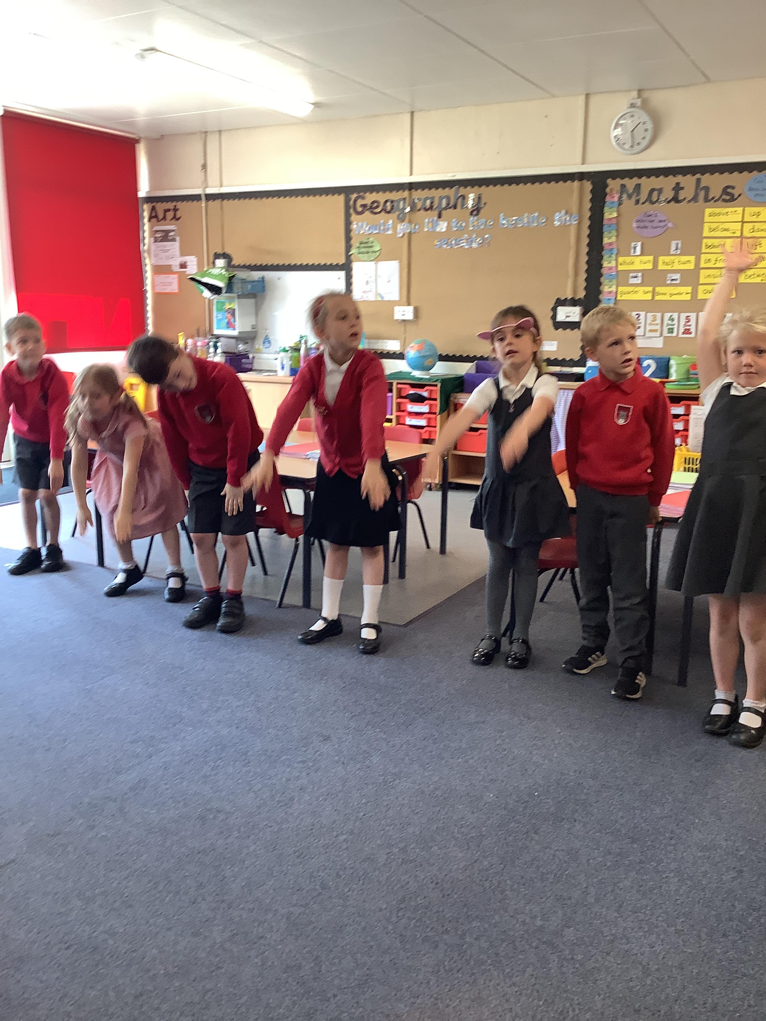 In Maths we each had a turning man that we used to practise a whole turn, half a turn, a quarter turn and a three quarter turn. We checked with our partners that we had made the turn correctly.