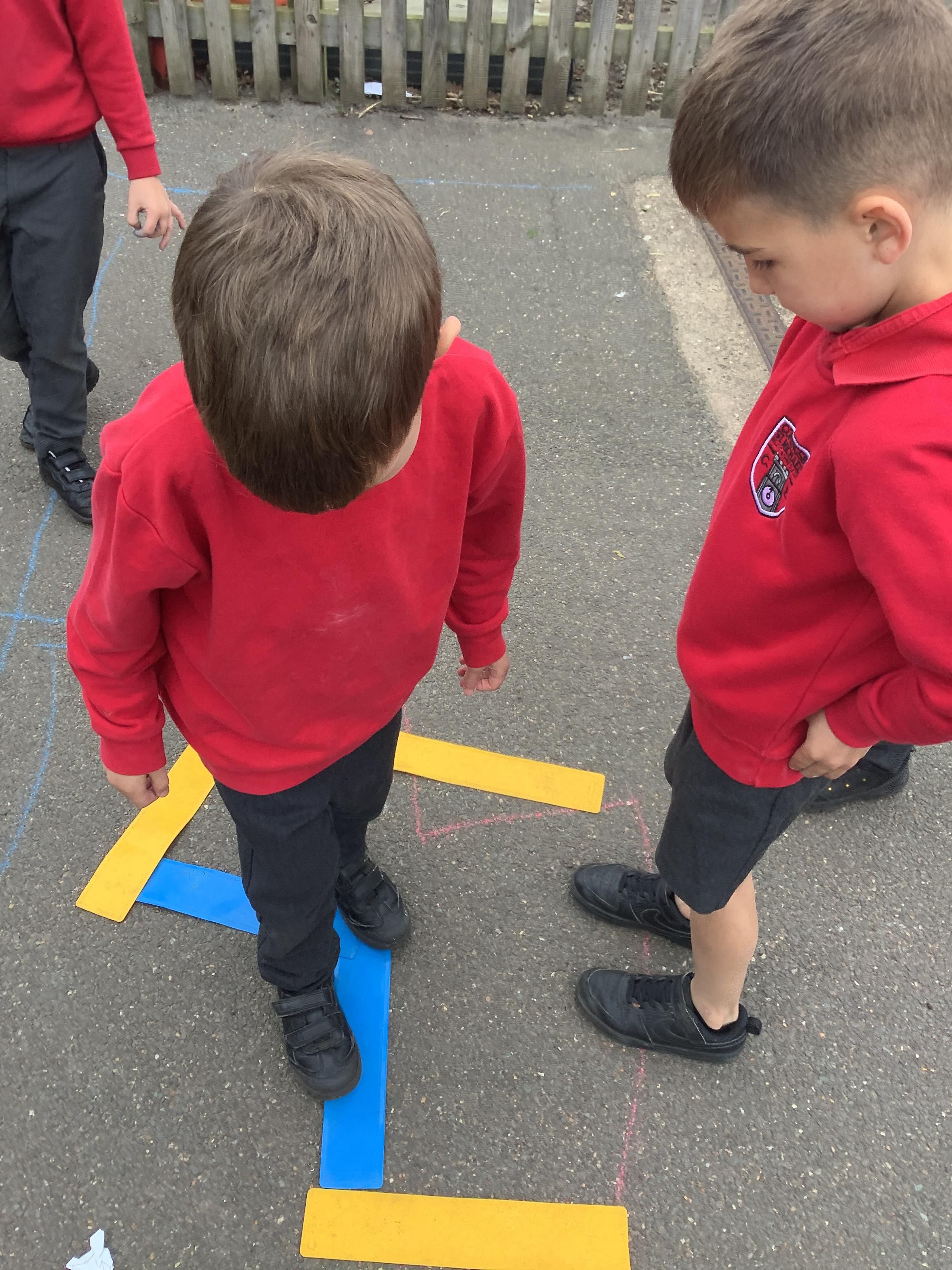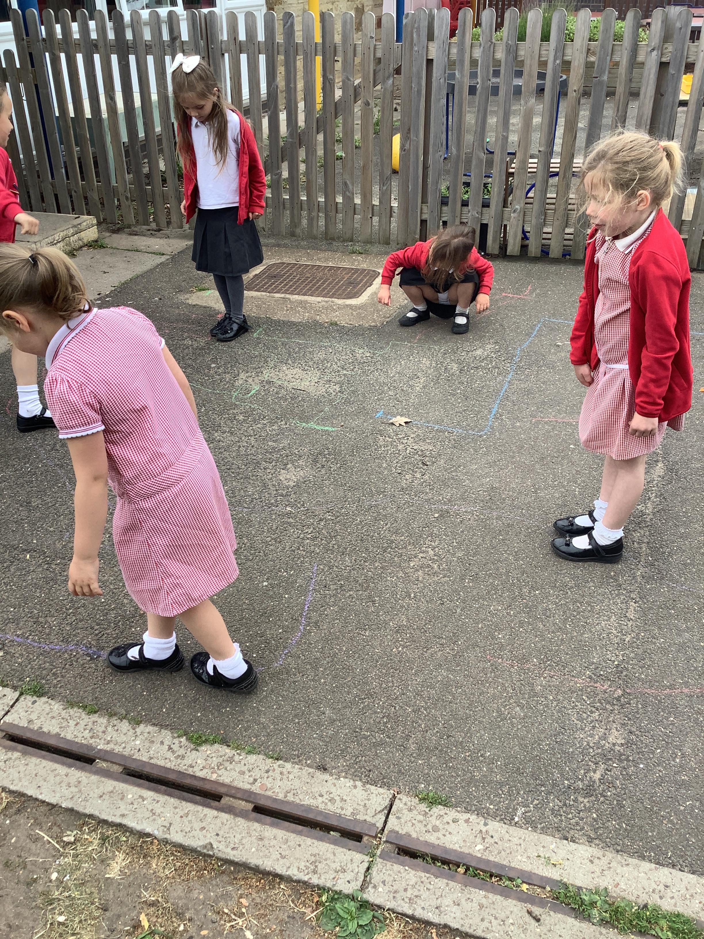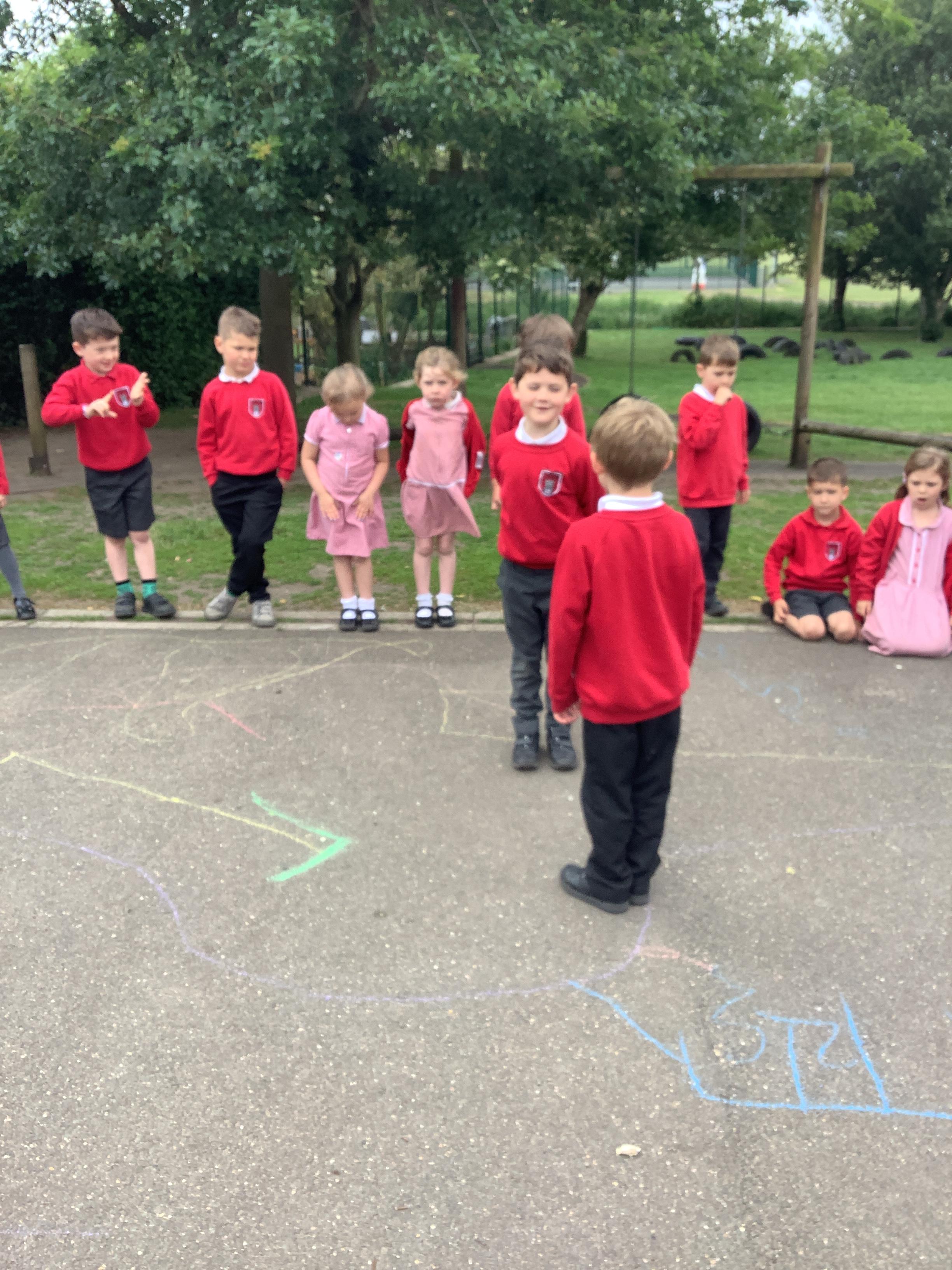 In maths we went outside and gave each other directions to go along our routes, we used the maths vocabulary right, left, forward, backwards, whole turn, half turn, quarter turn and three quarter turn. We did a brilliant job!