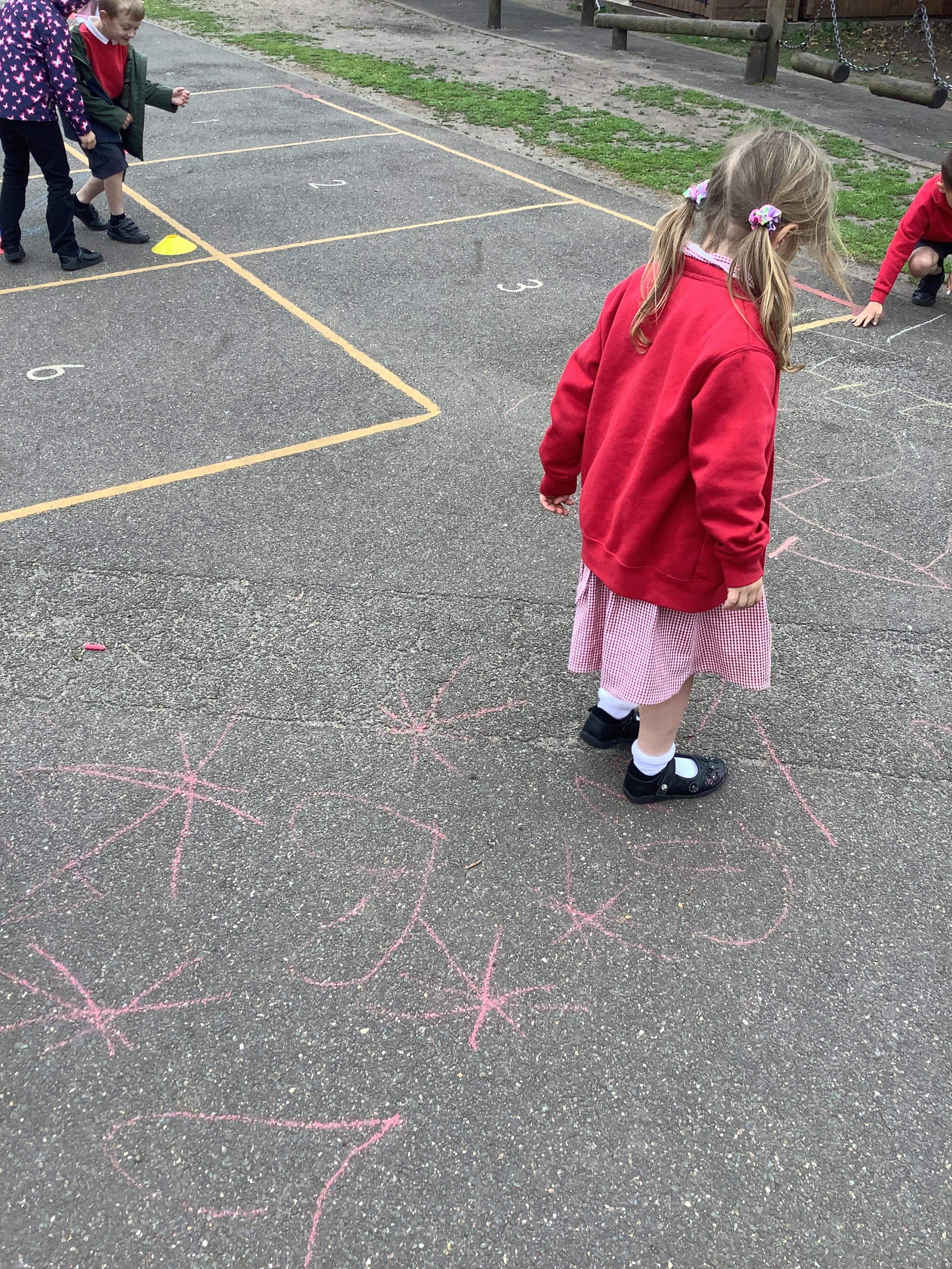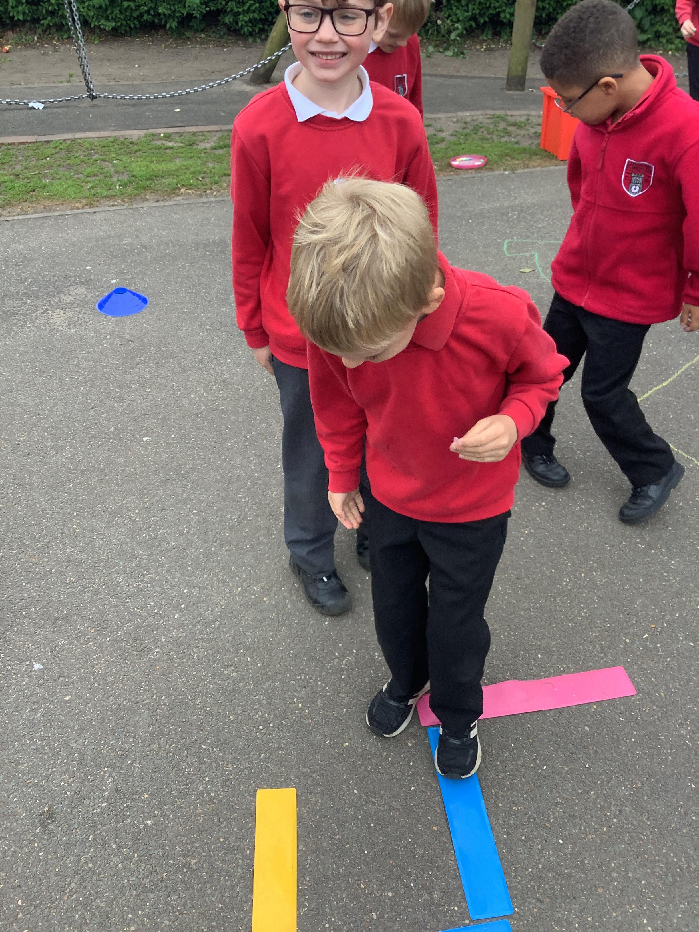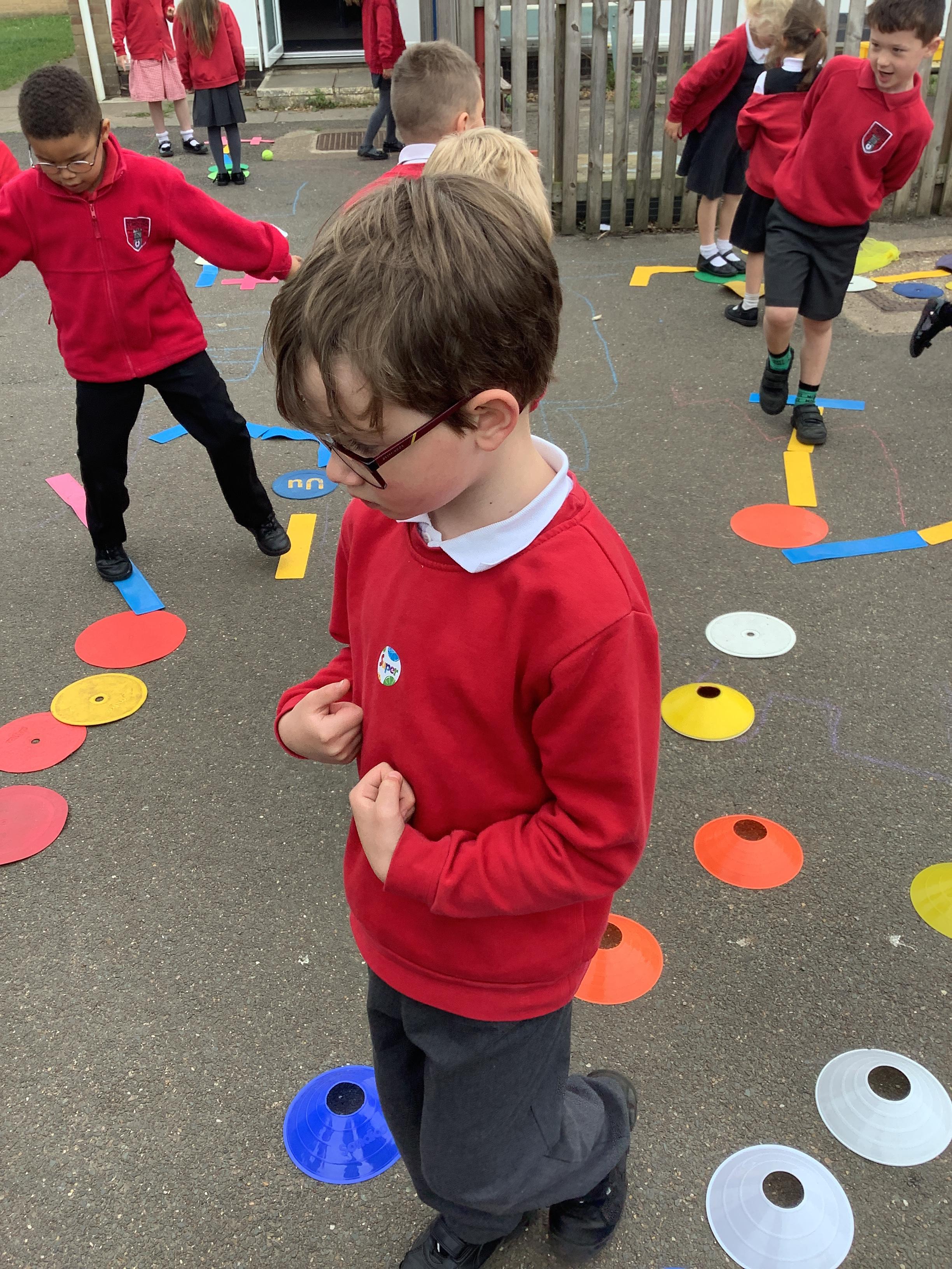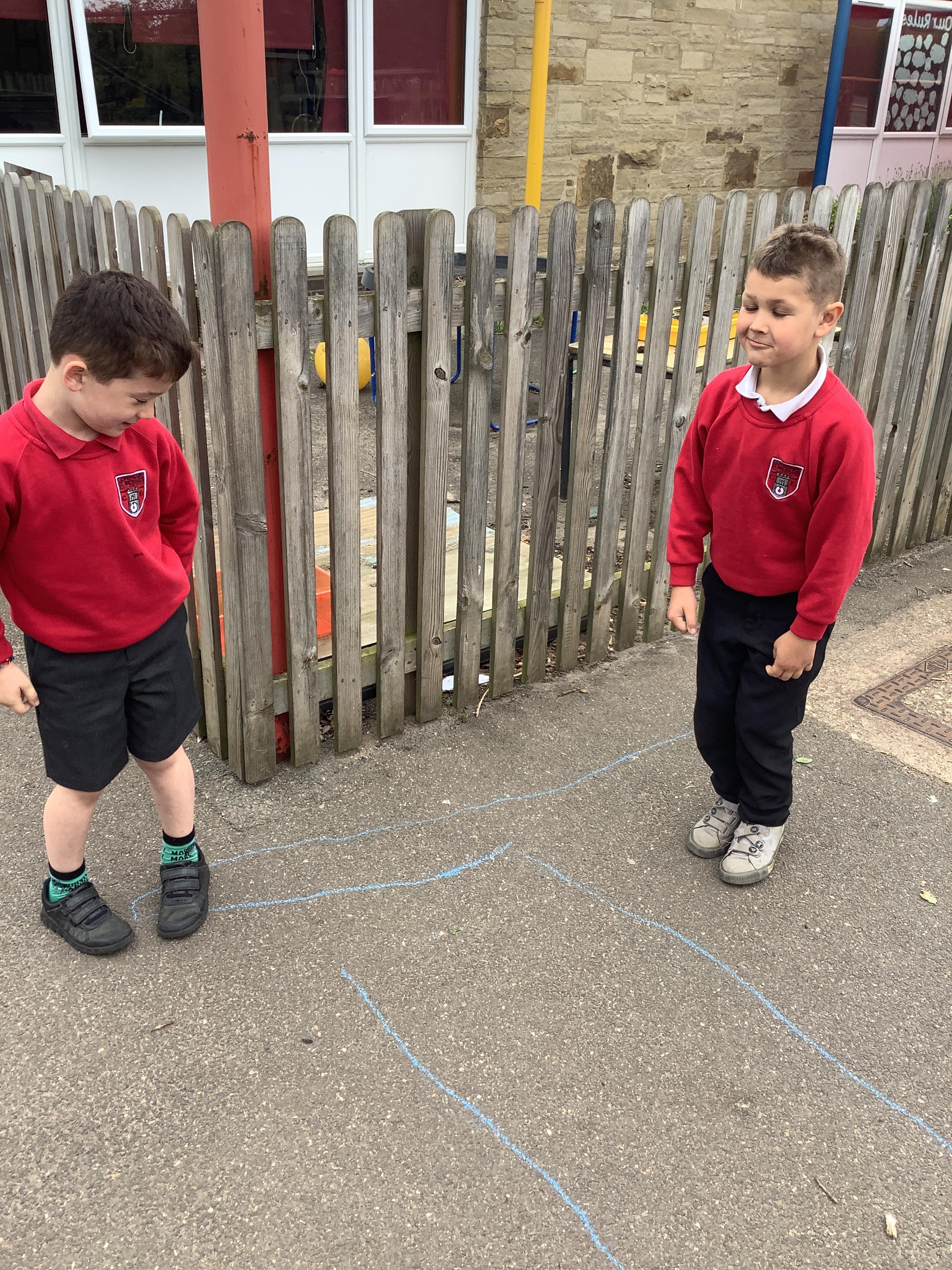 In maths we went outside and gave each other directions to go along our routes, we used the maths vocabulary right, left, forward, backwards, whole turn, half turn, quarter turn and three quarter turn. We did a brilliant job!