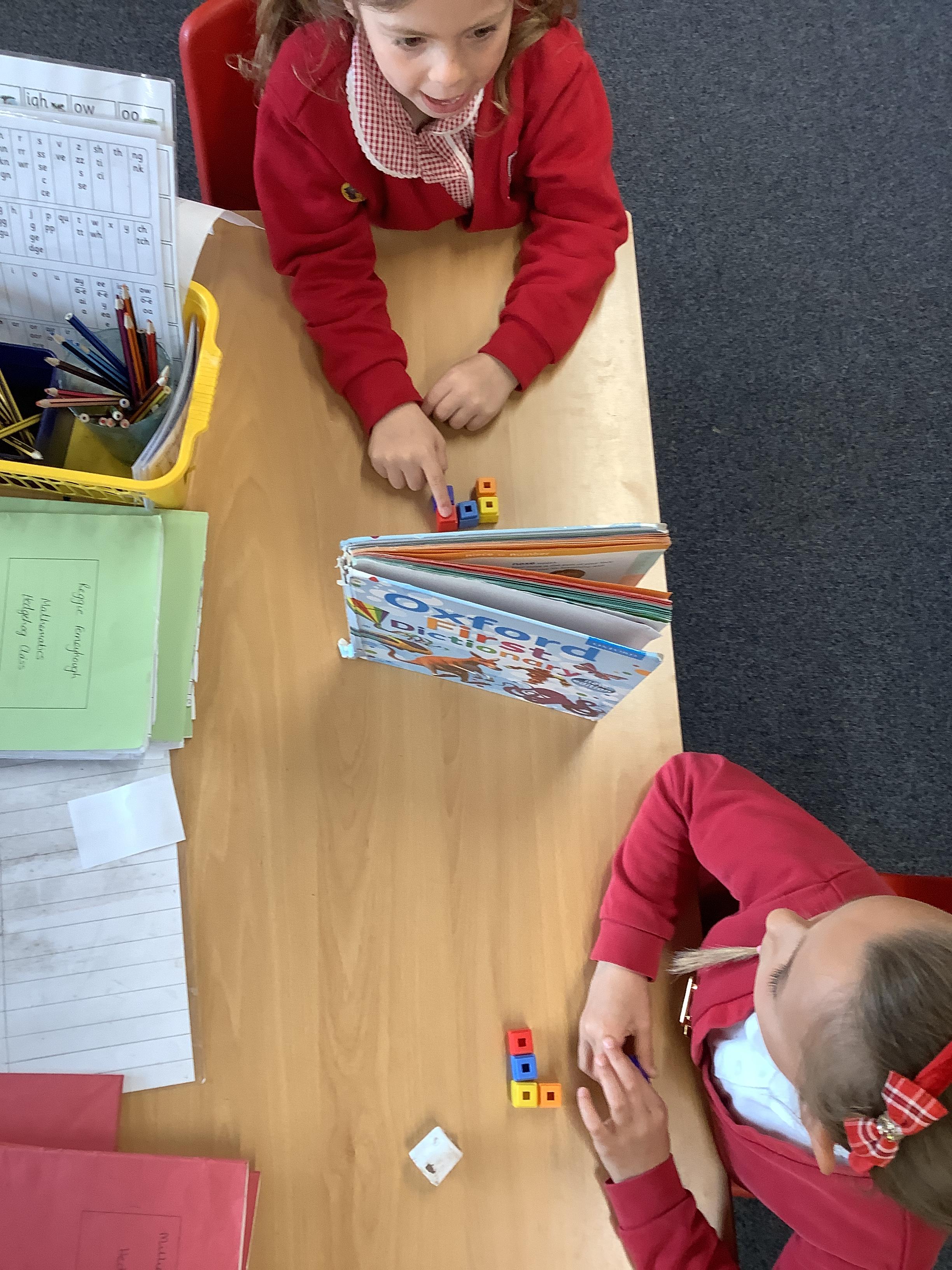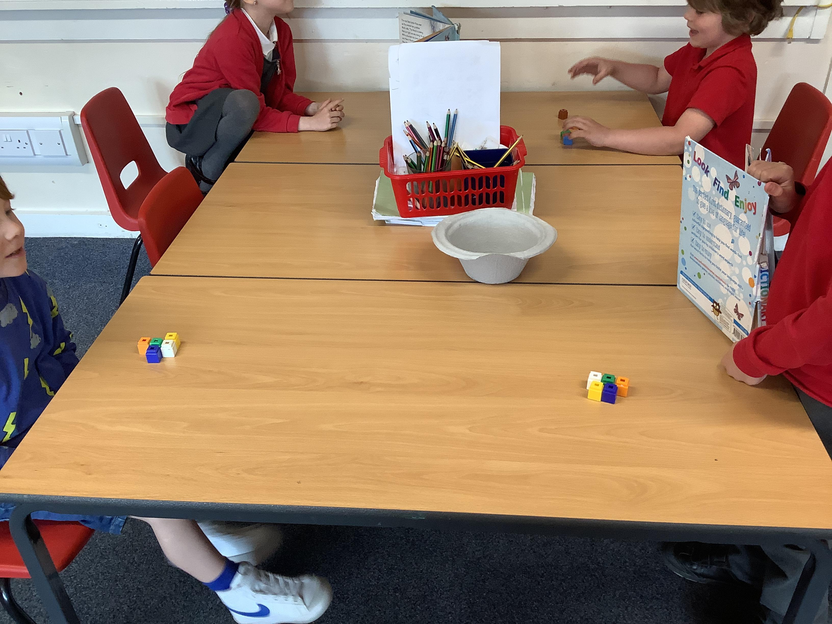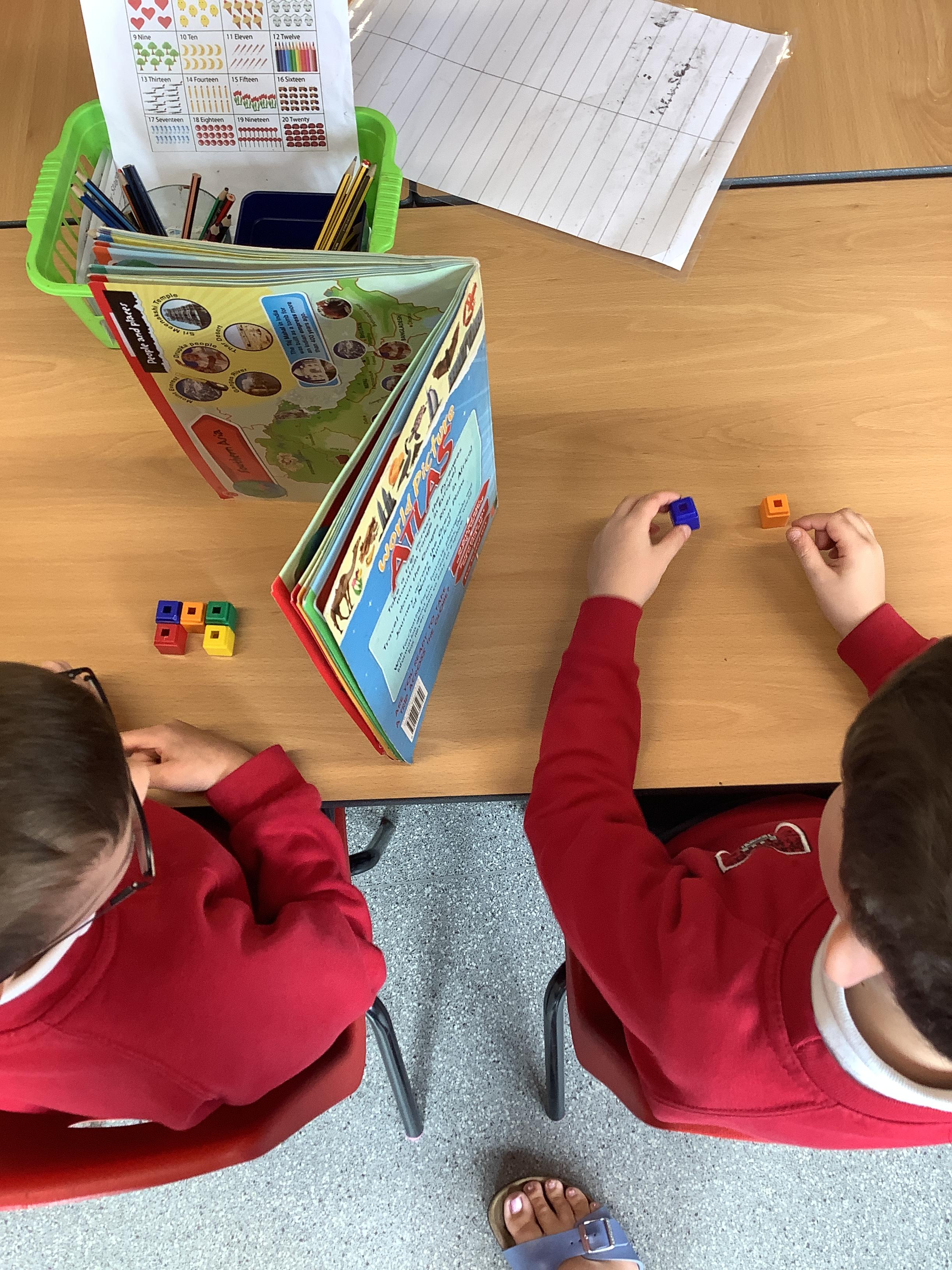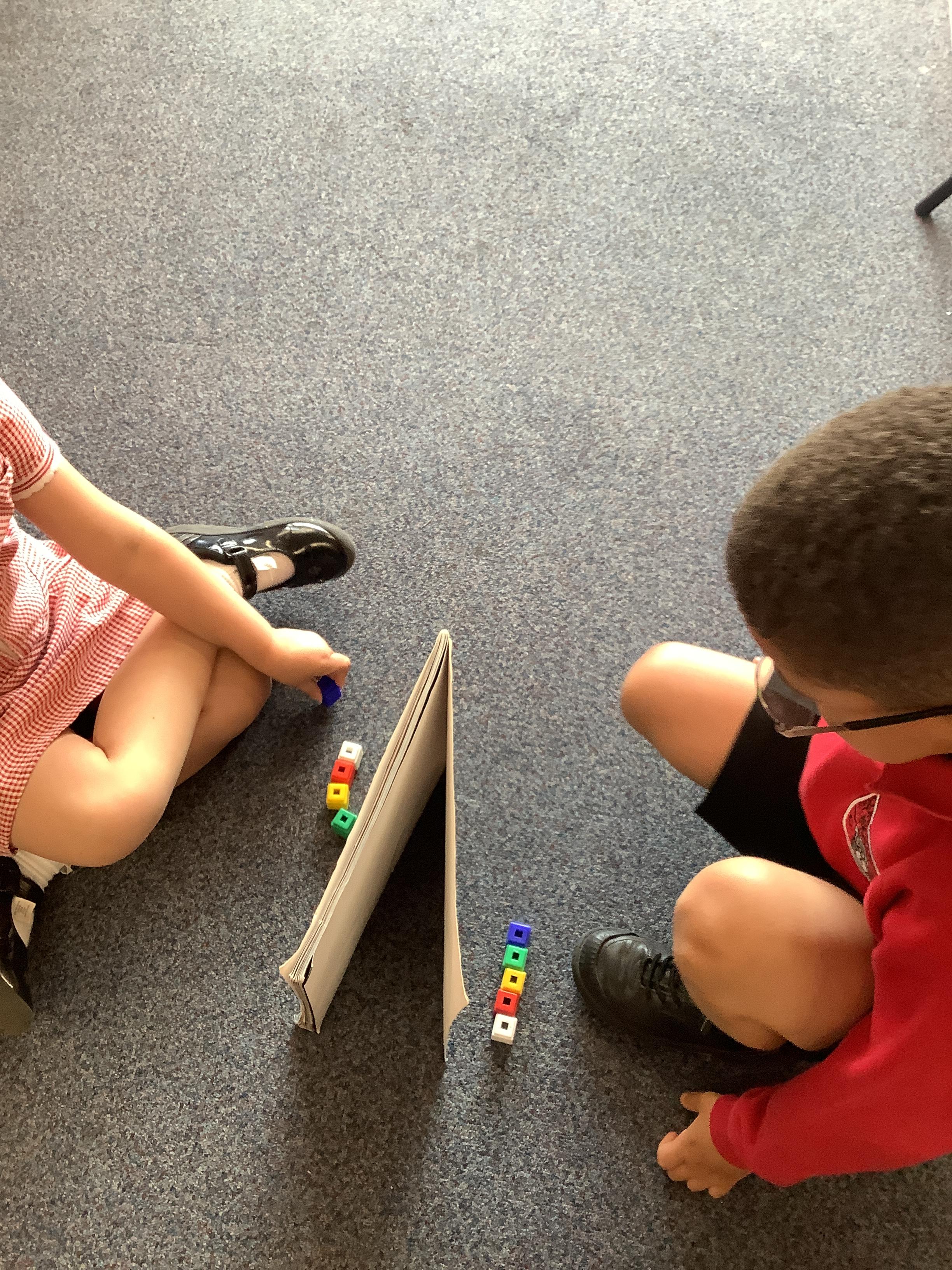 In Maths we are learning about position. We had to work with a partner and give them instructions on where to place their cubes to match our design. Our instructions and positional language was amazing!