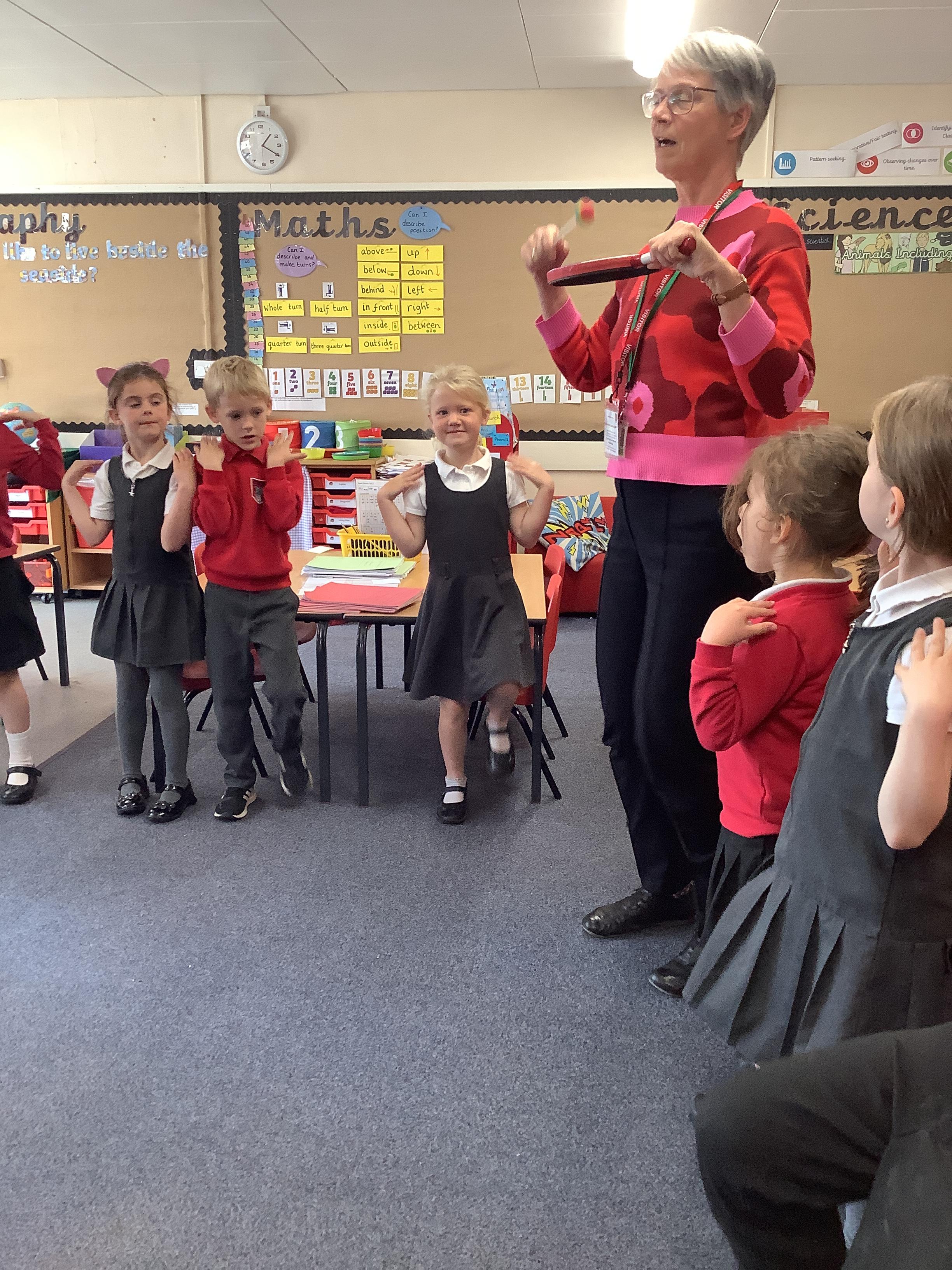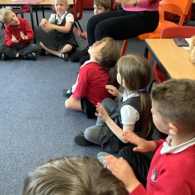 Our music this week was lead by a lady from Lincolnshire Music Service! We explore the pulse with a steady beat and the pitch as well as responding to a piece of music and learning new songs!