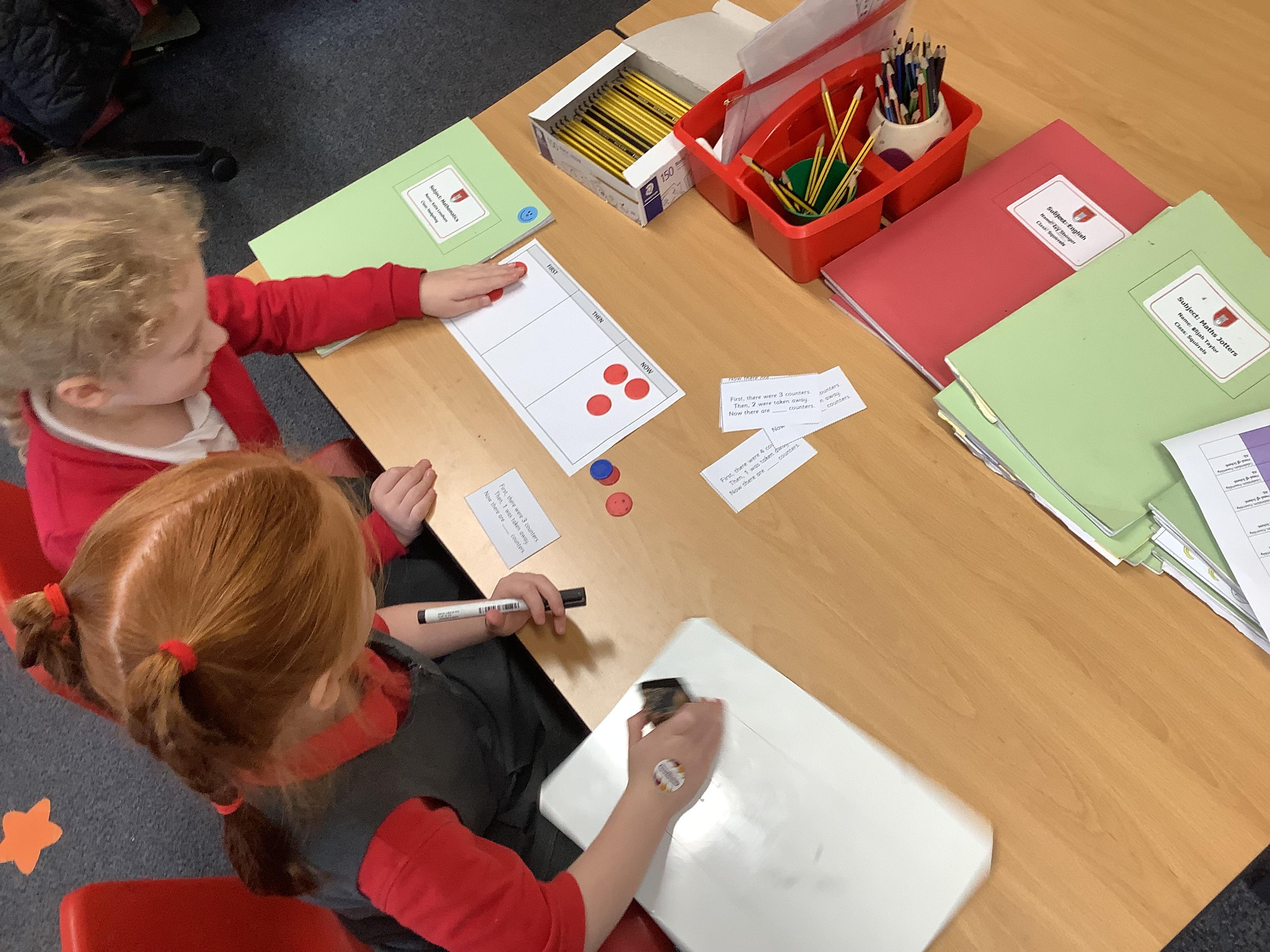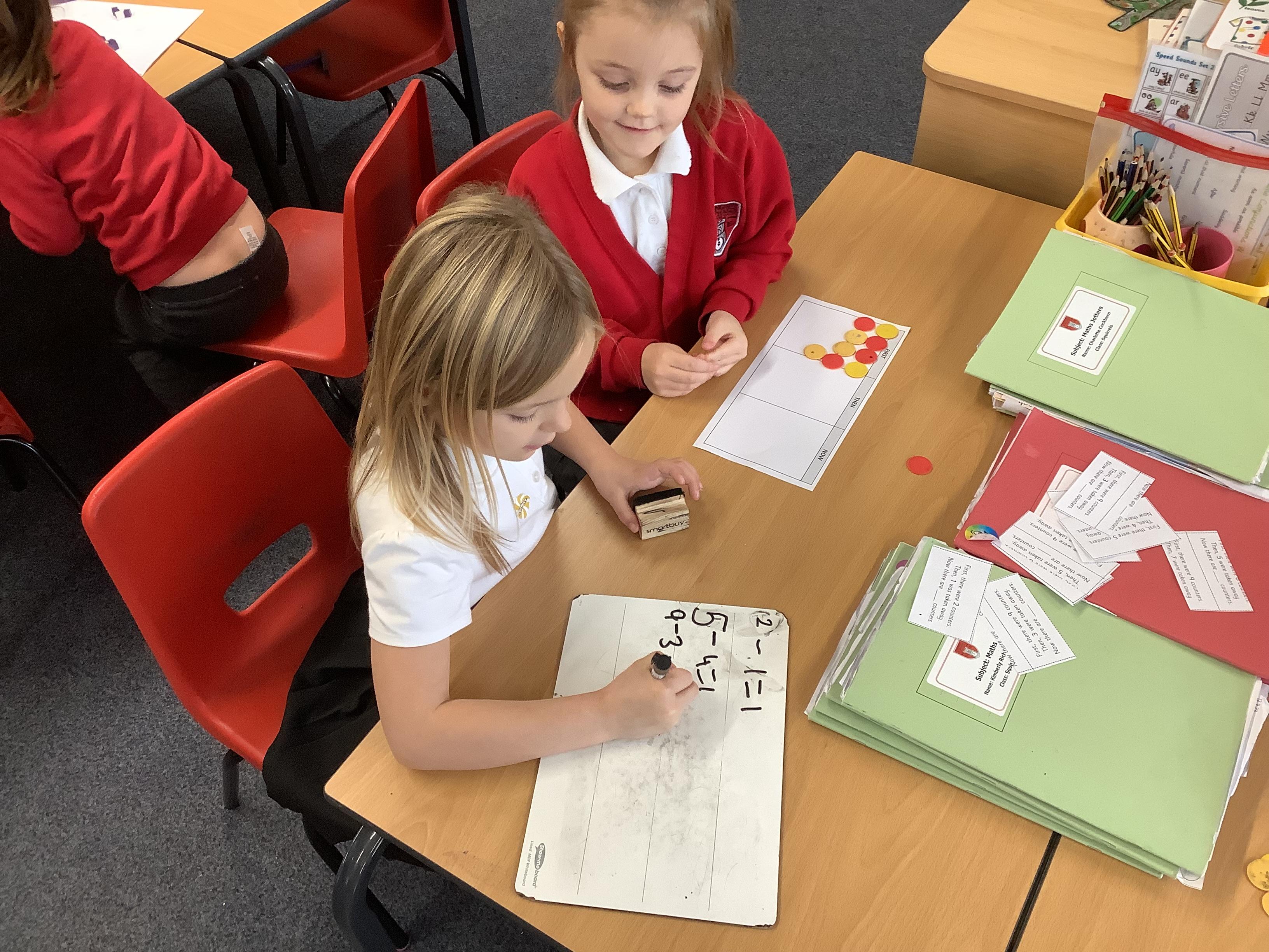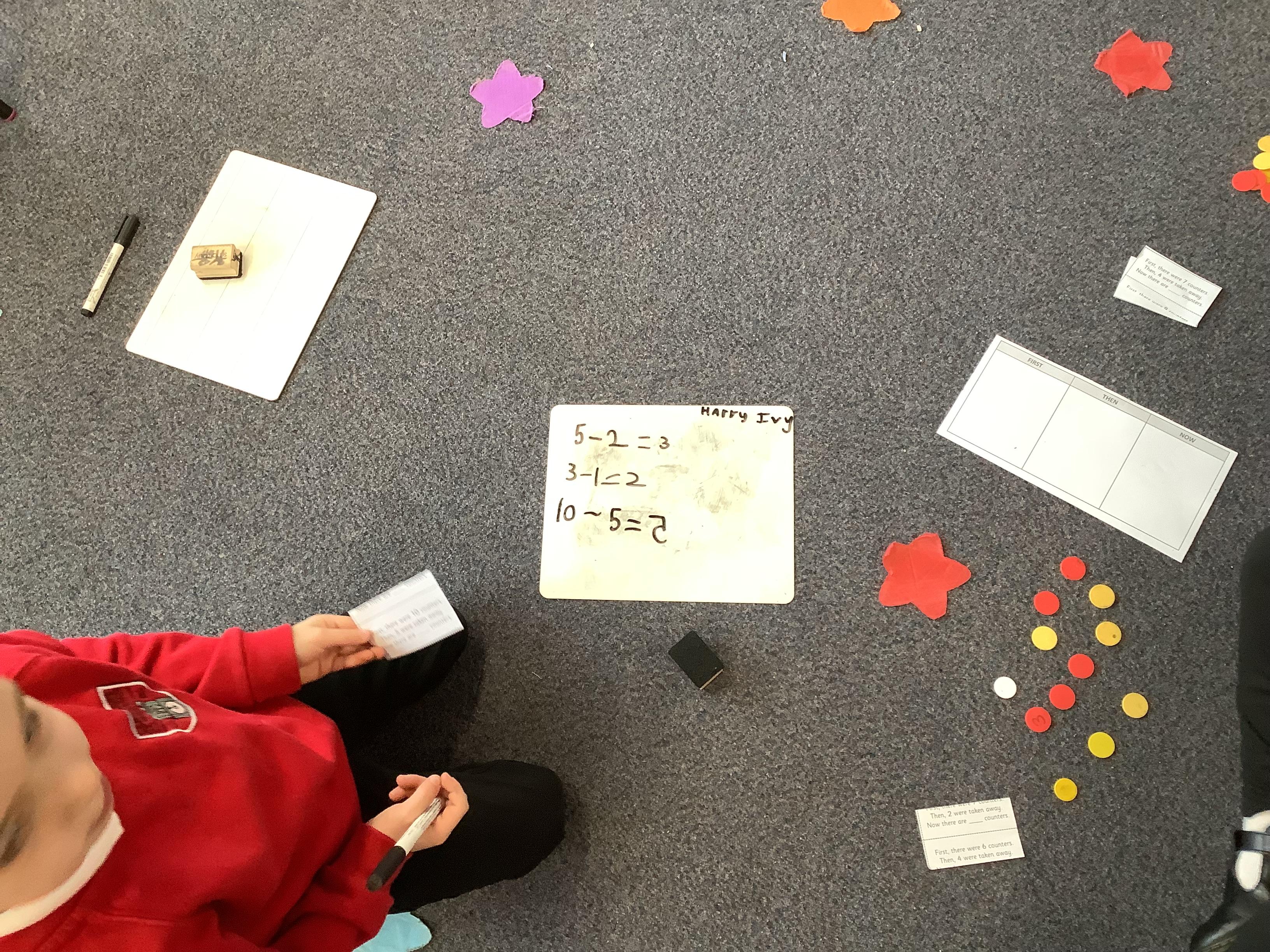 In Maths our Year 1 children were subtracting by taking away. We use a first, then, now grid to help us visualise what happens when we subtract.