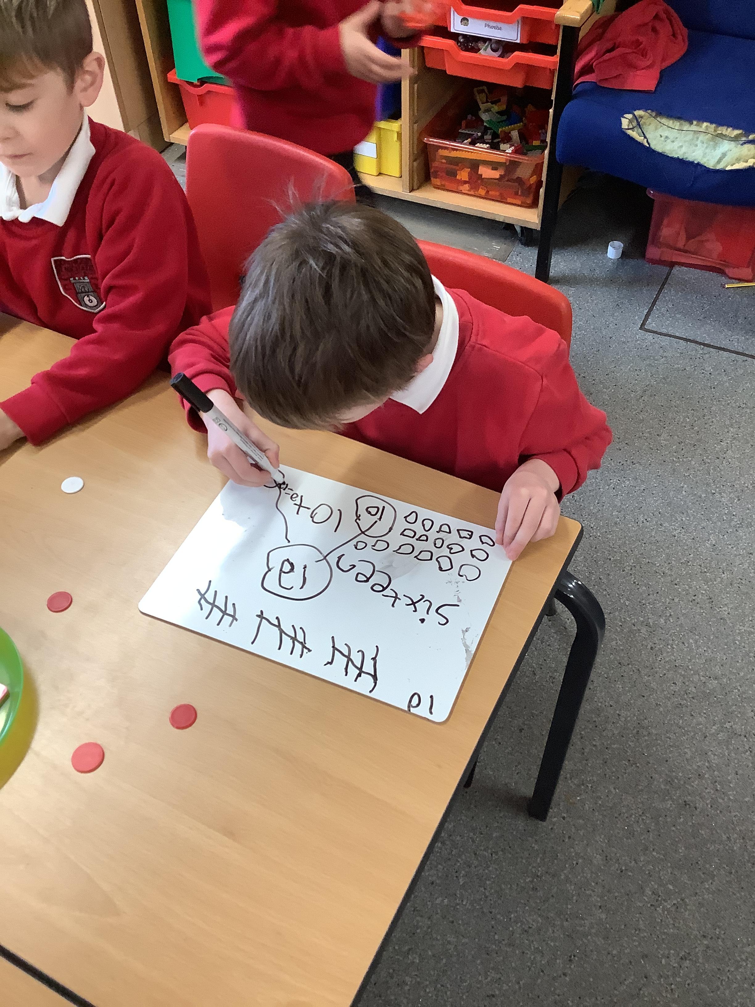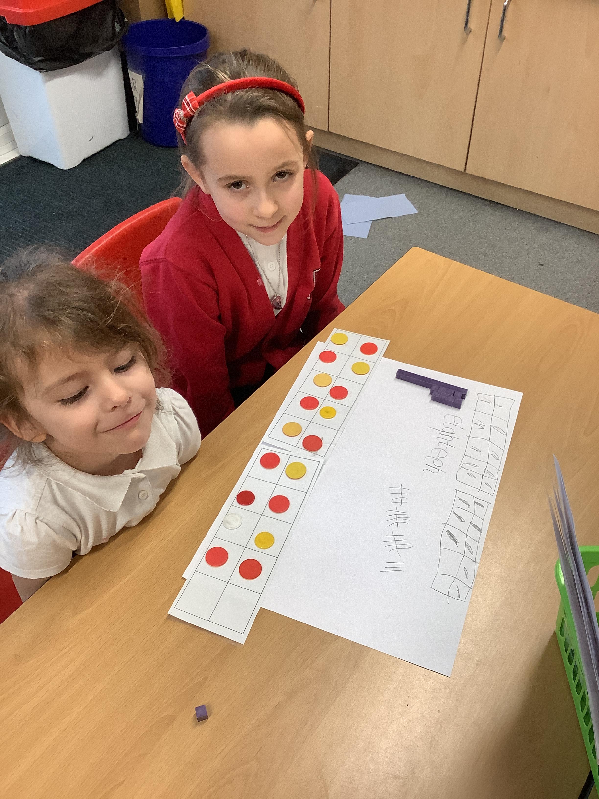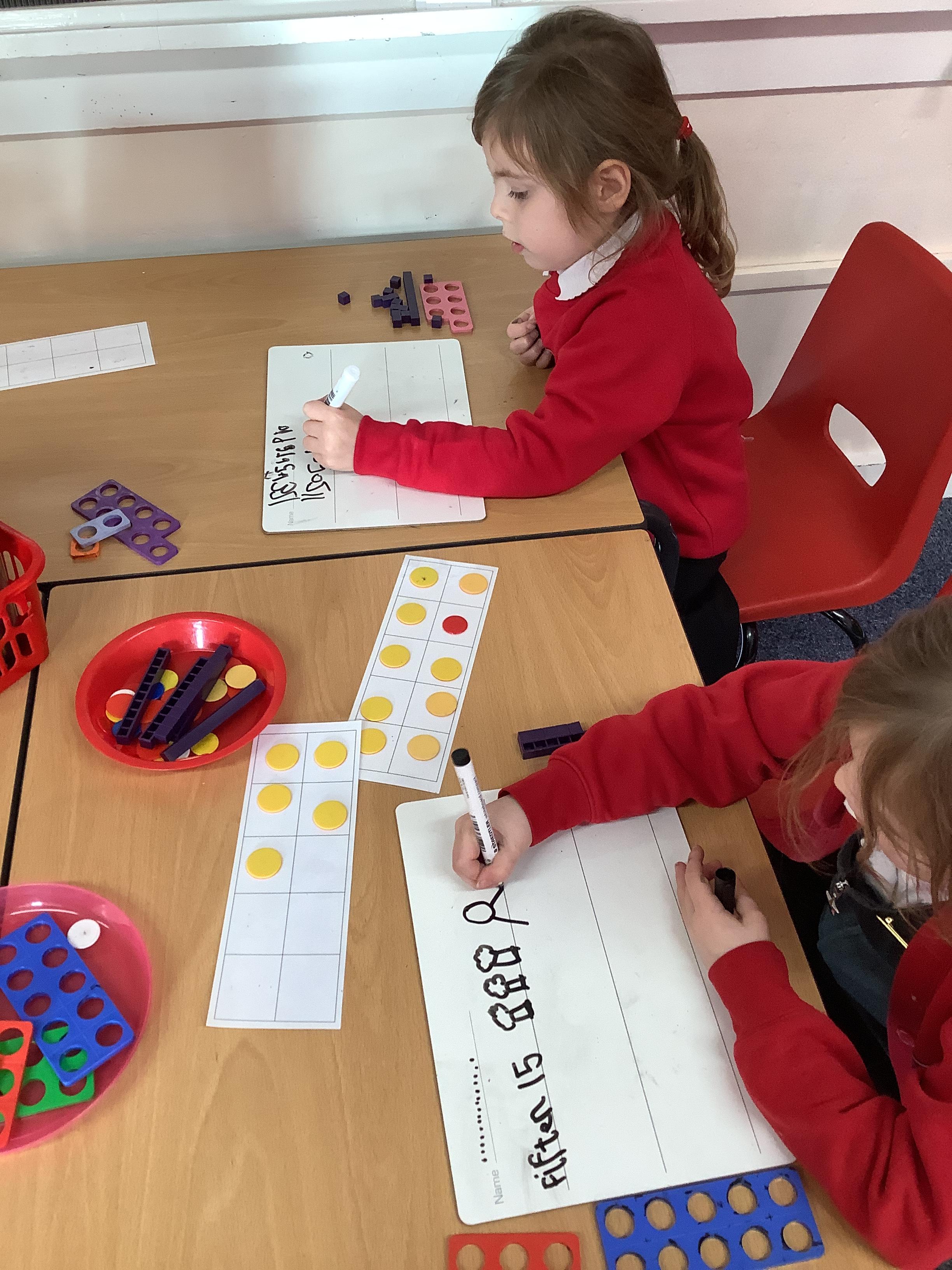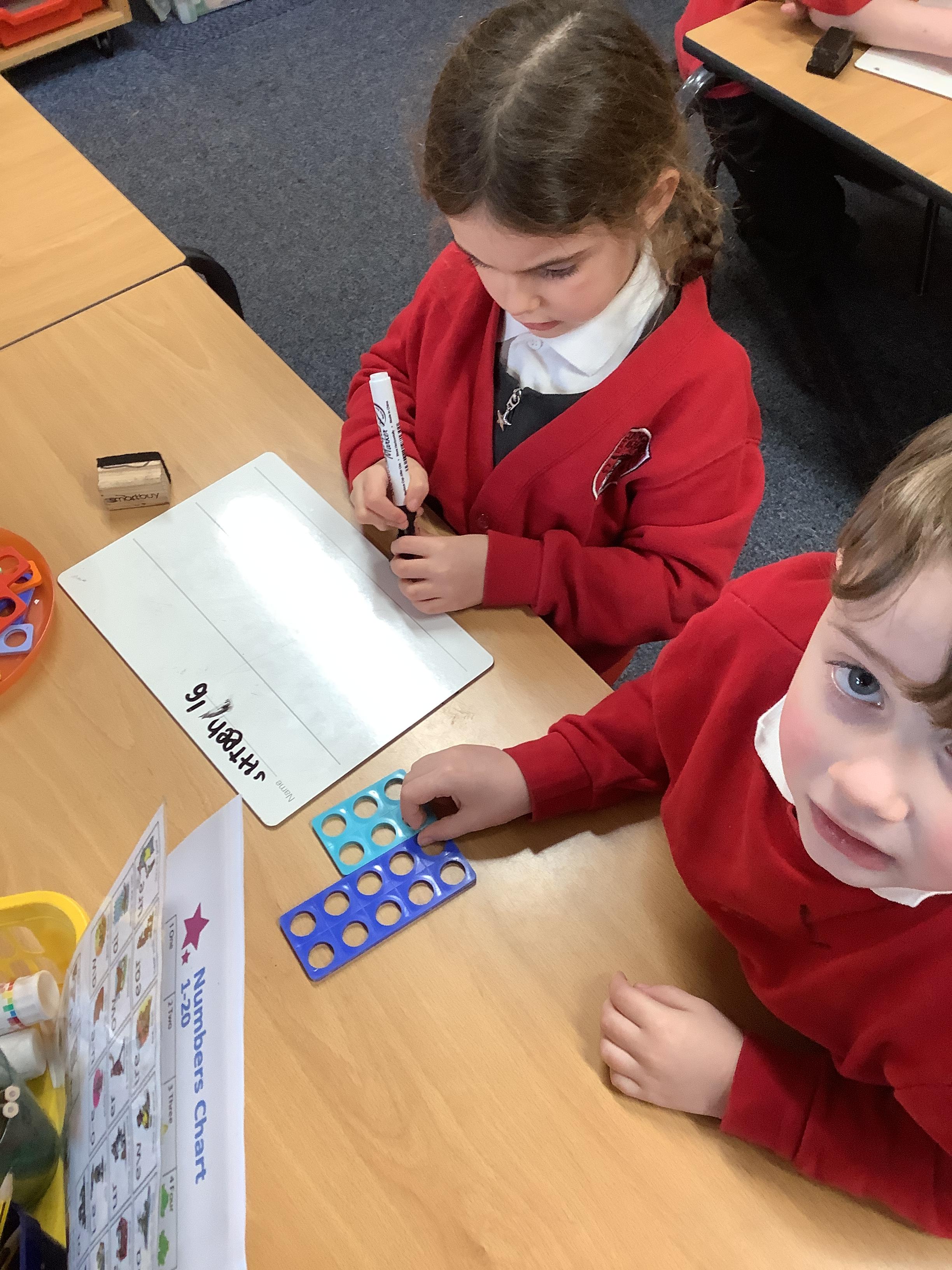 In our Maths lesson we looked at the number 20. We found out it has two tens. We built it and represented it in lots of different ways!