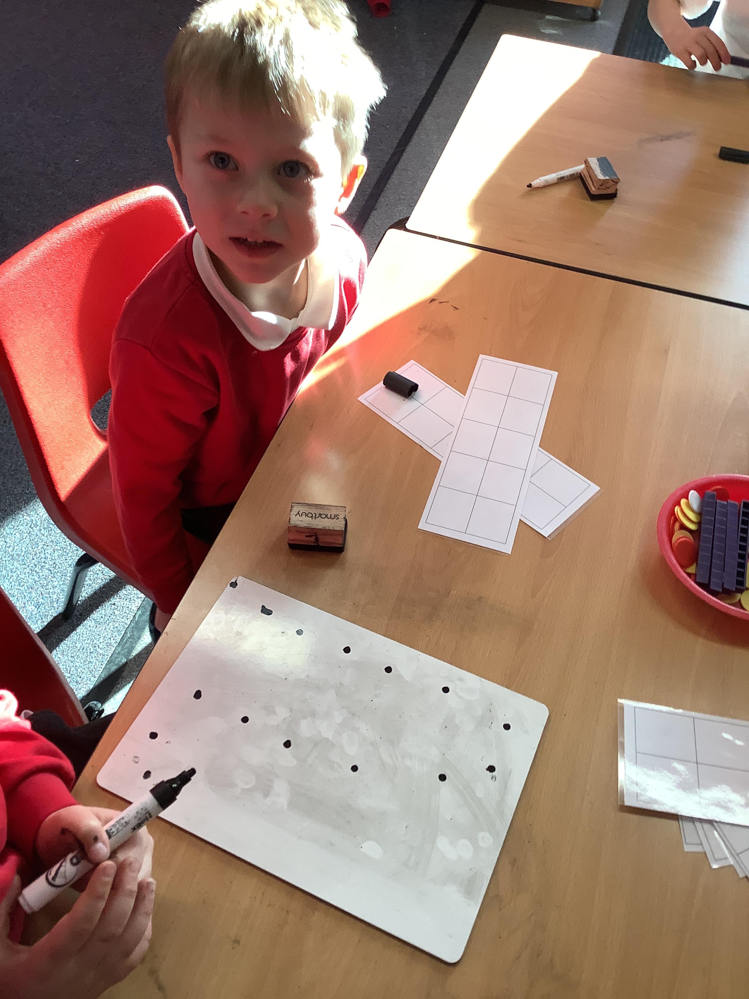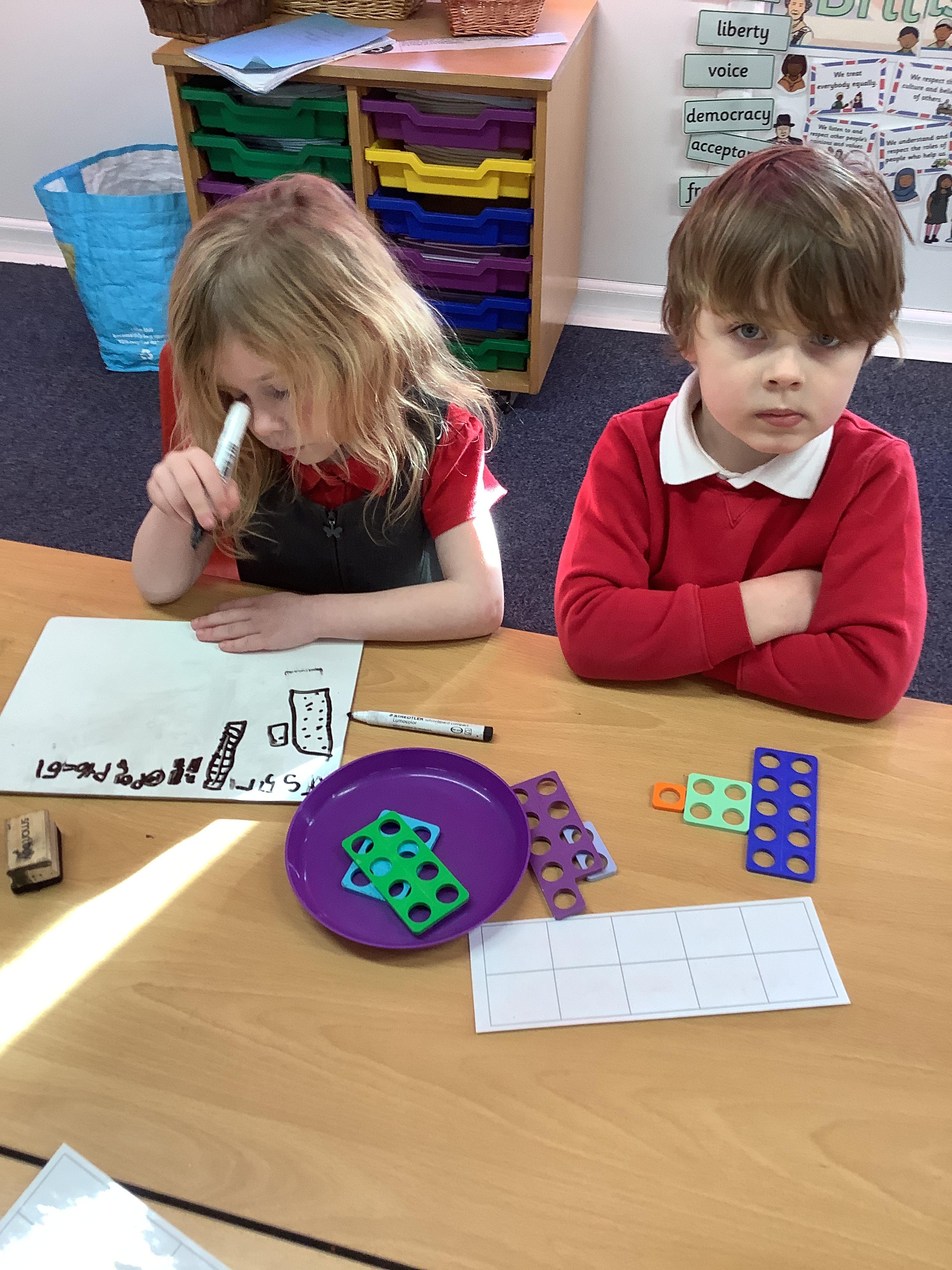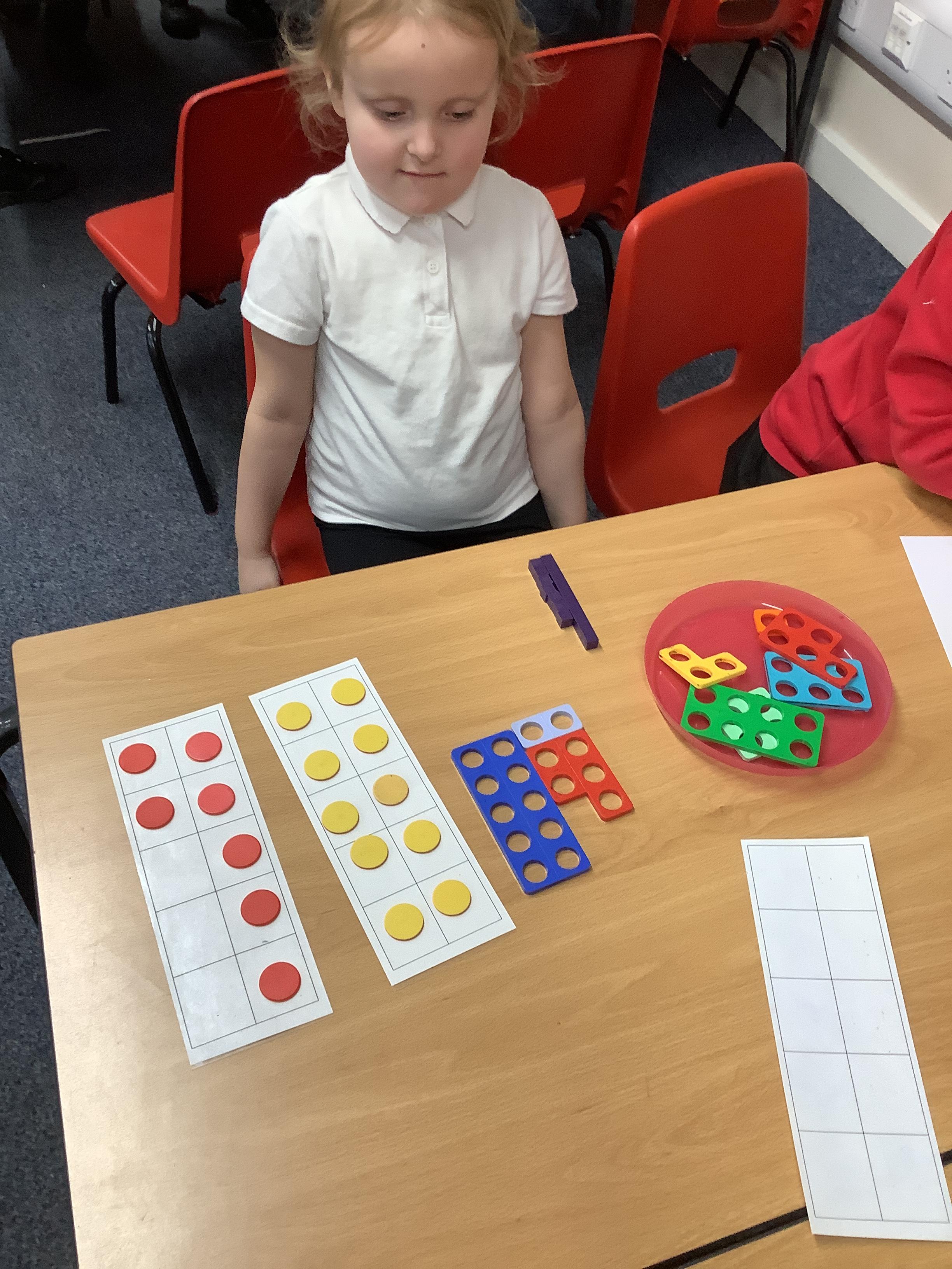 In our Maths lesson we looked at the number 20. We found out it has two tens. We built it and represented it in lots of different ways!