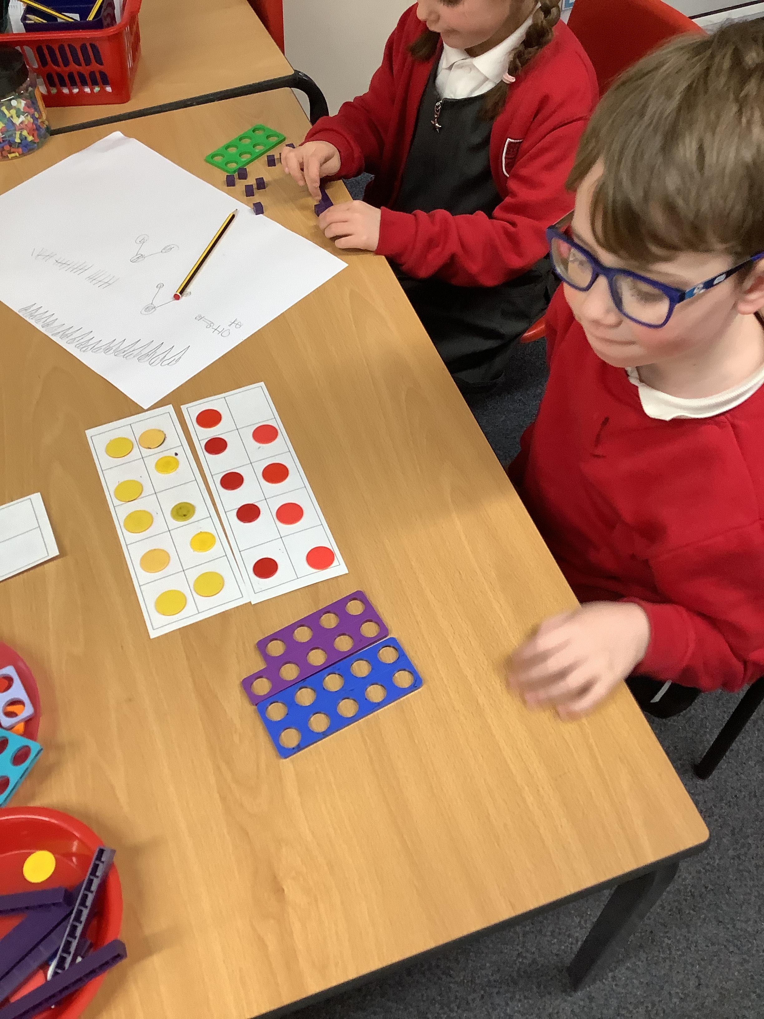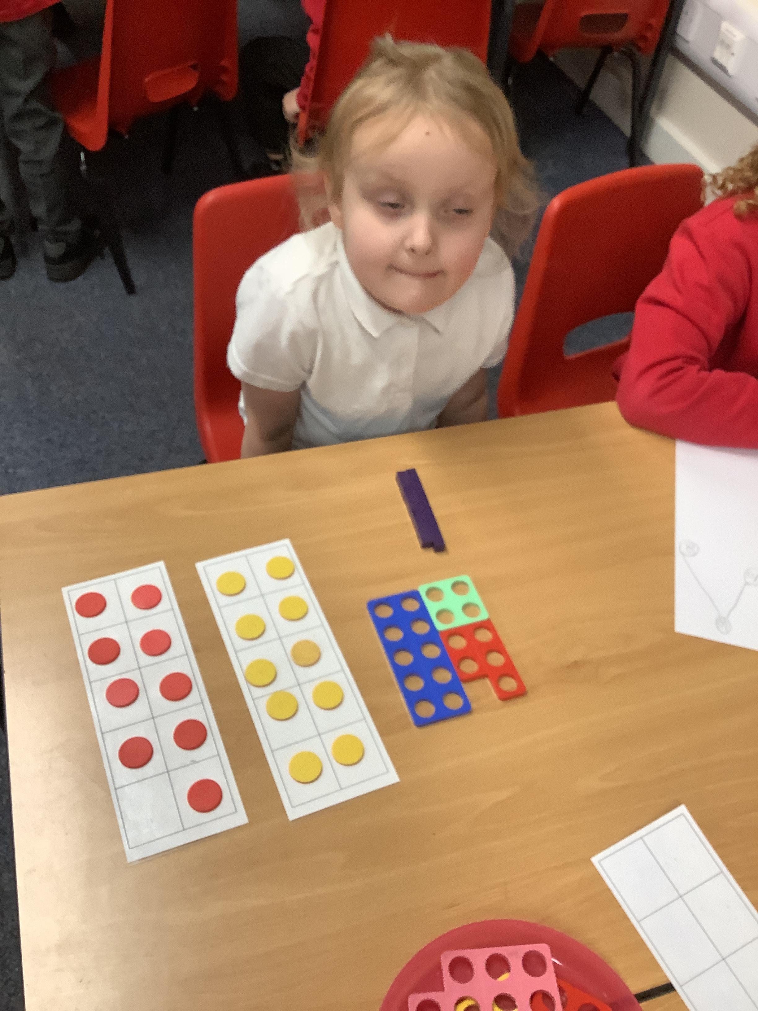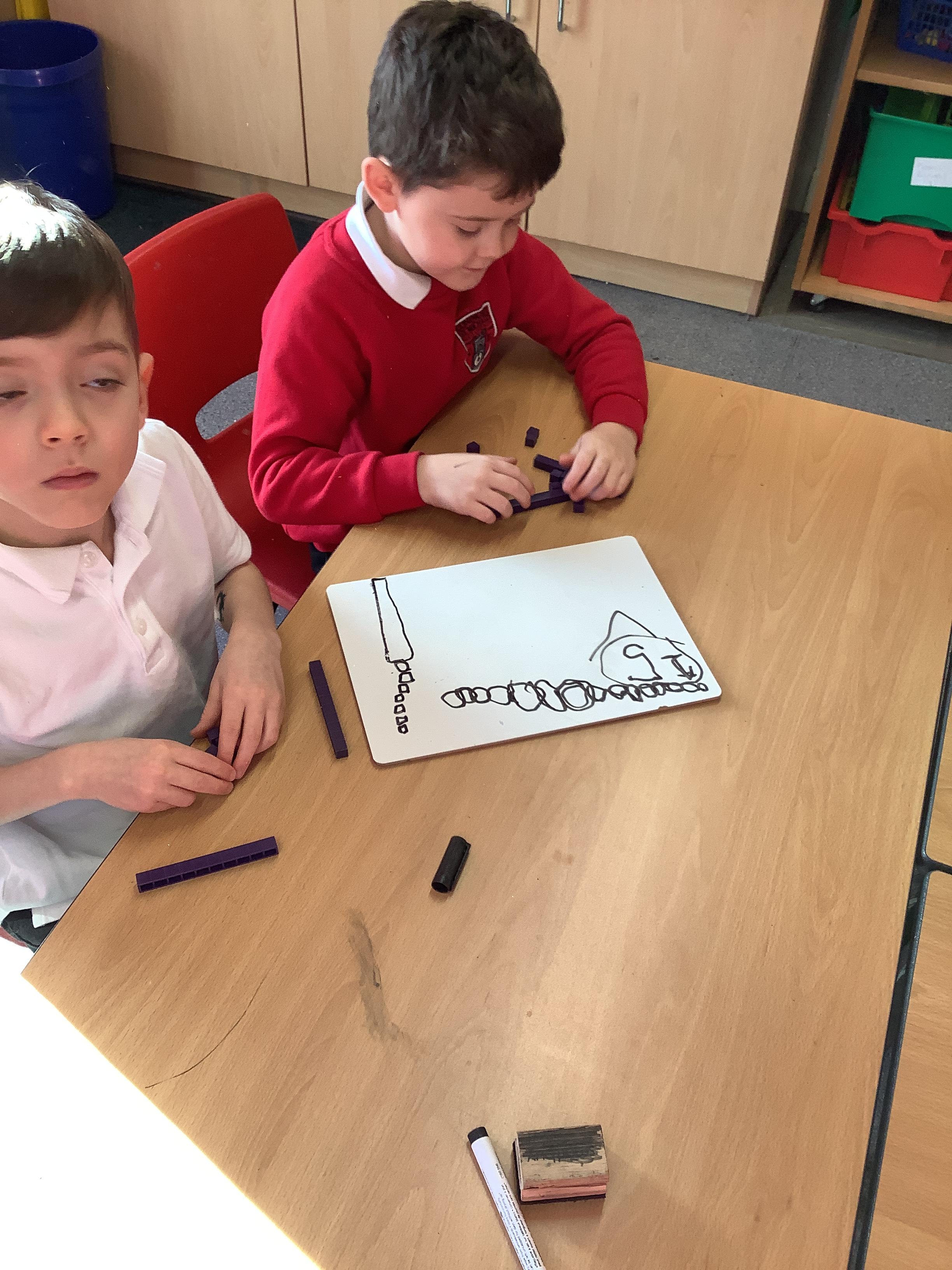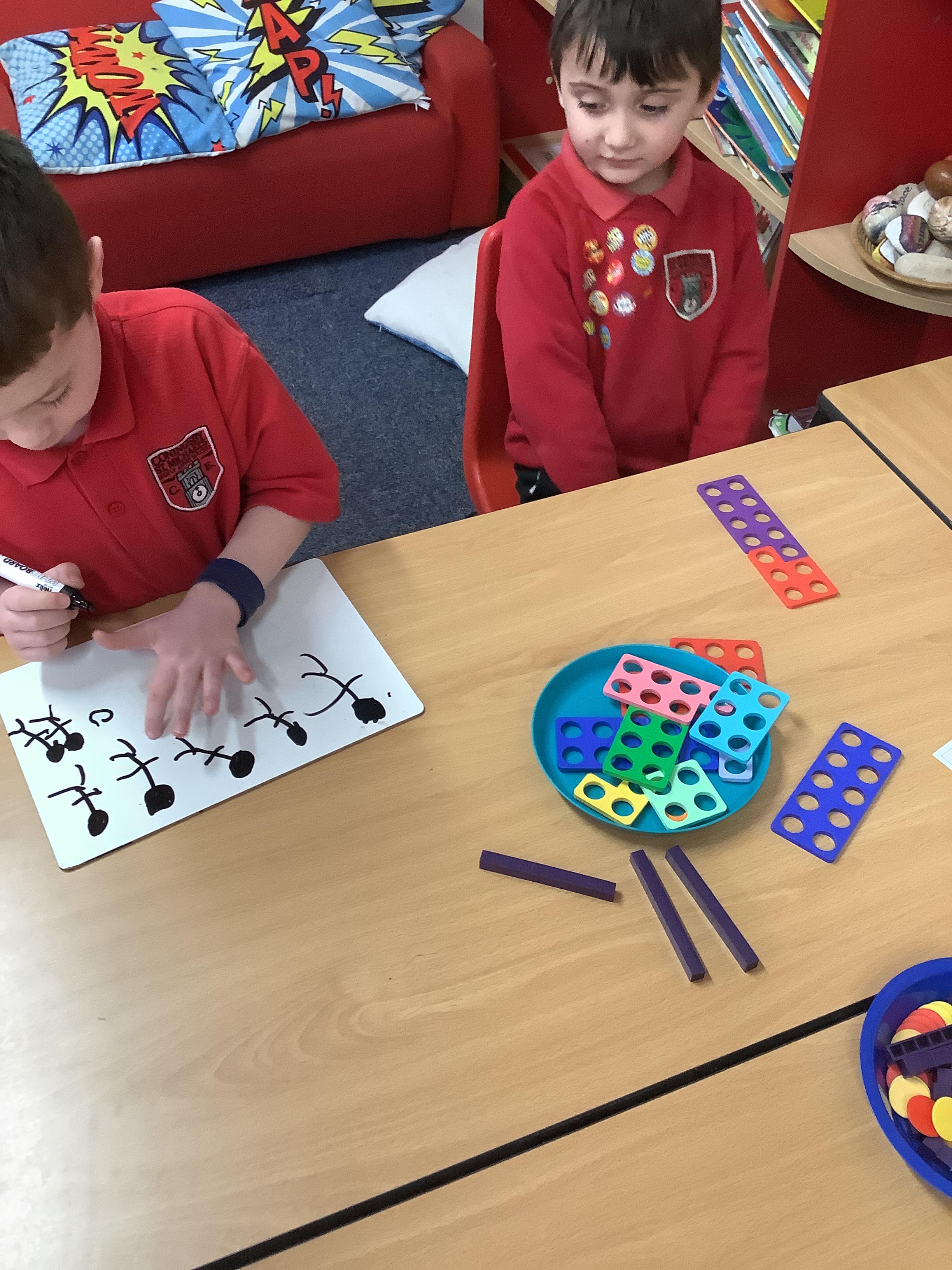 In our Maths lesson we looked at the number 20. We found out it has two tens. We built it and represented it in lots of different ways!