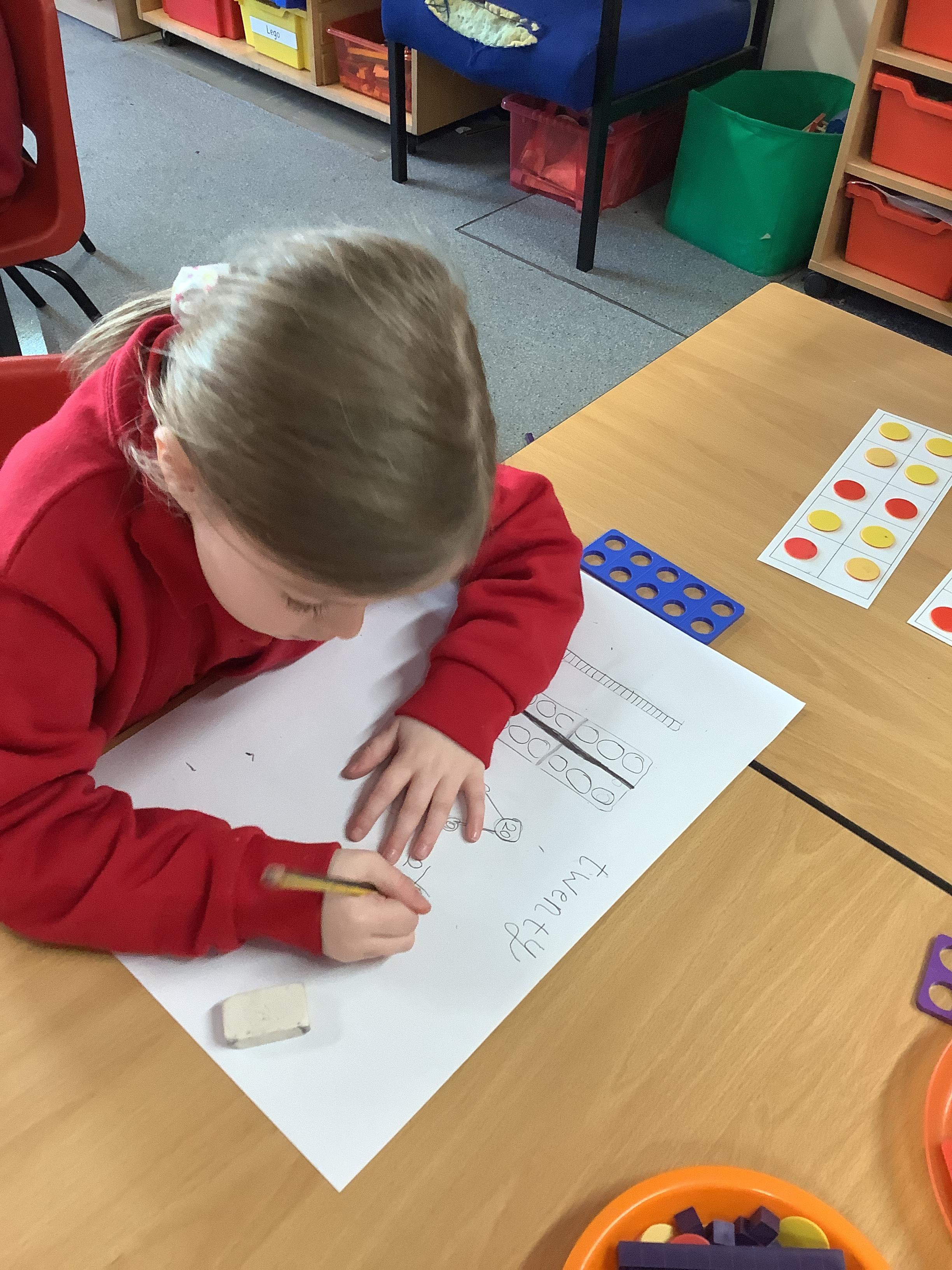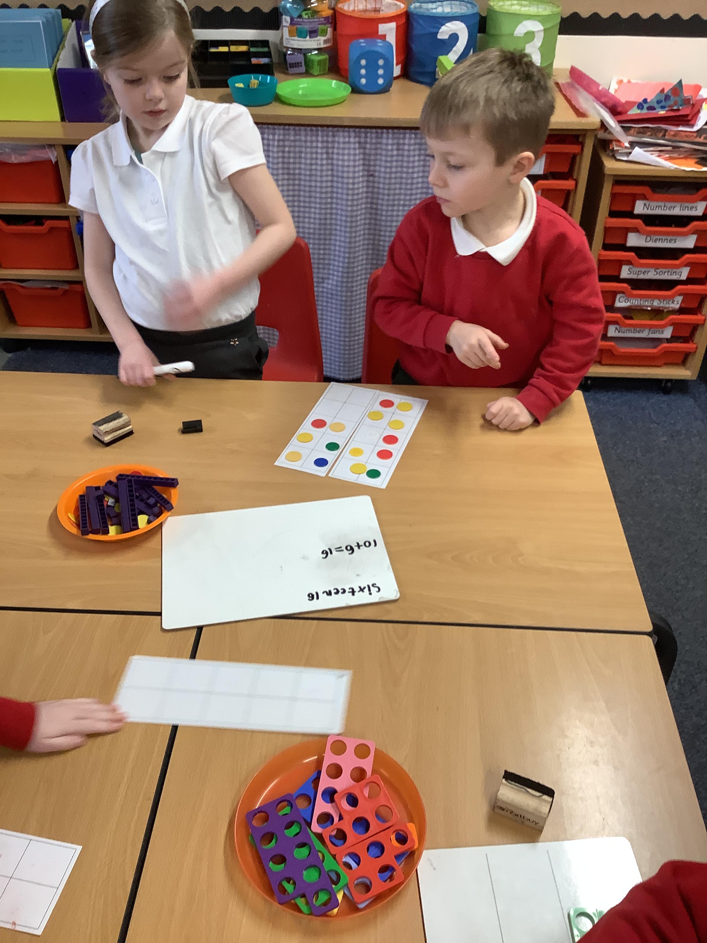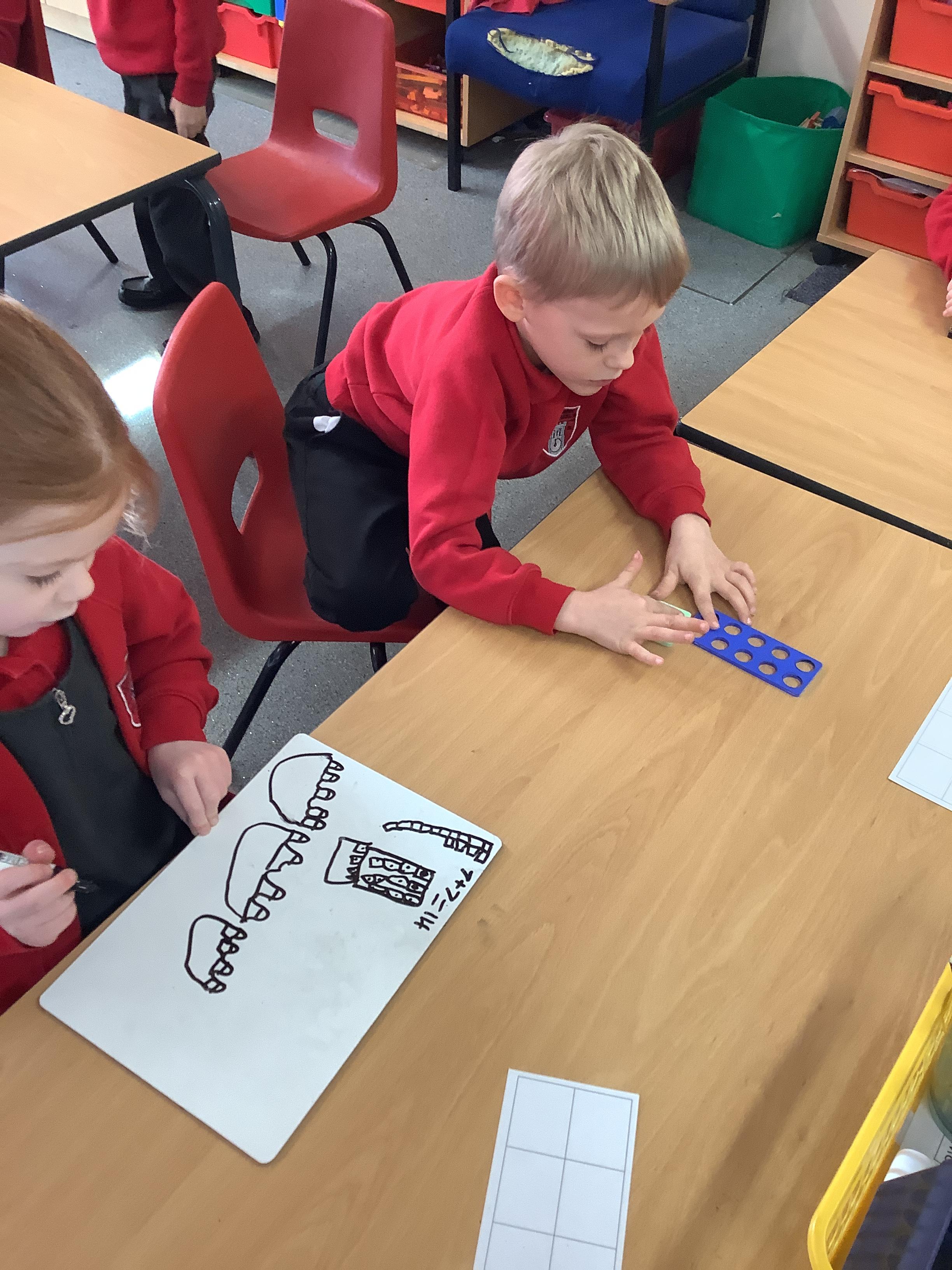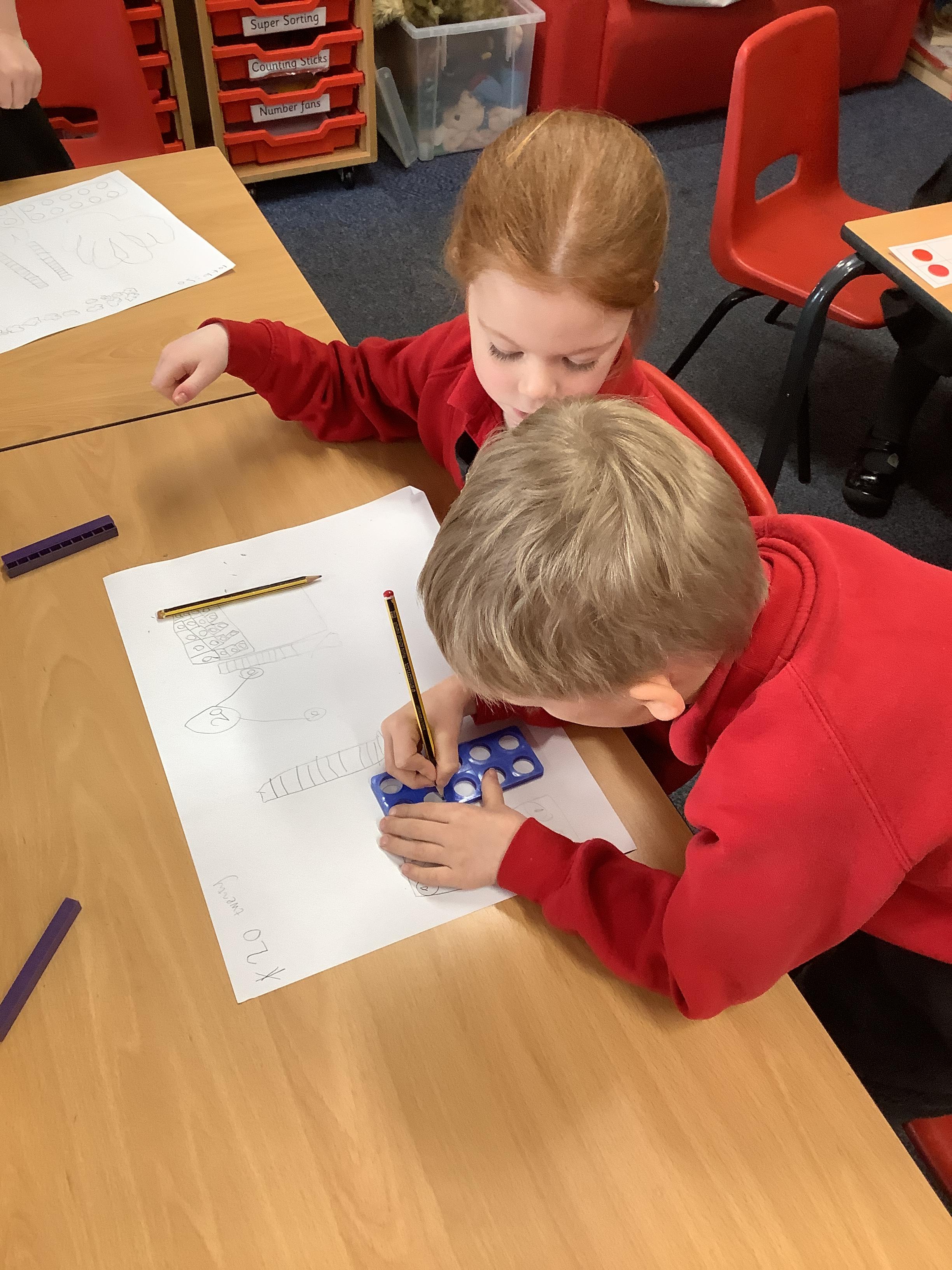 In Maths we built, drew and explored the numbers 14, 15 and 16. We worked with a partner who checked to see if we were correct! Great work Hedgehog class!