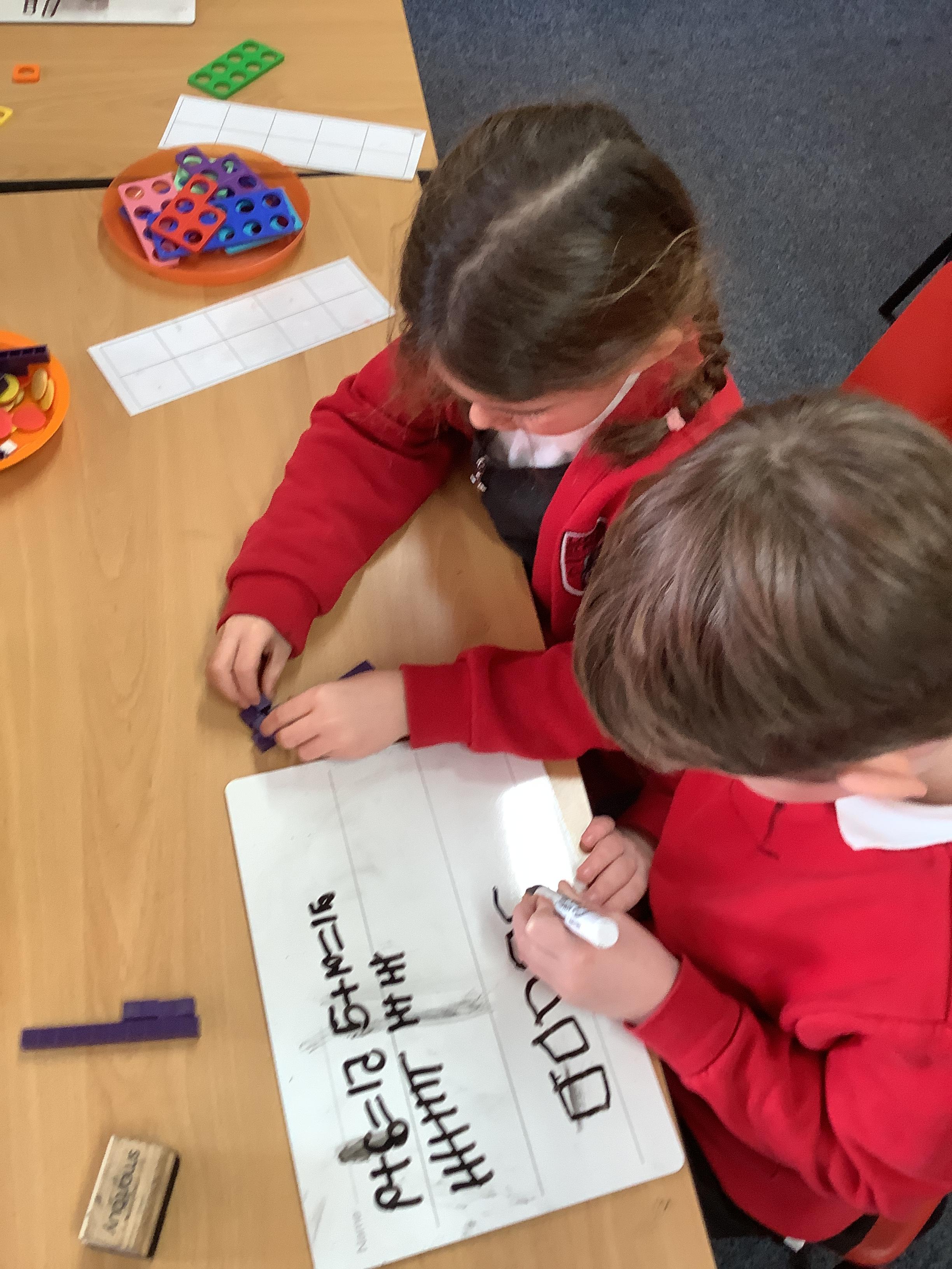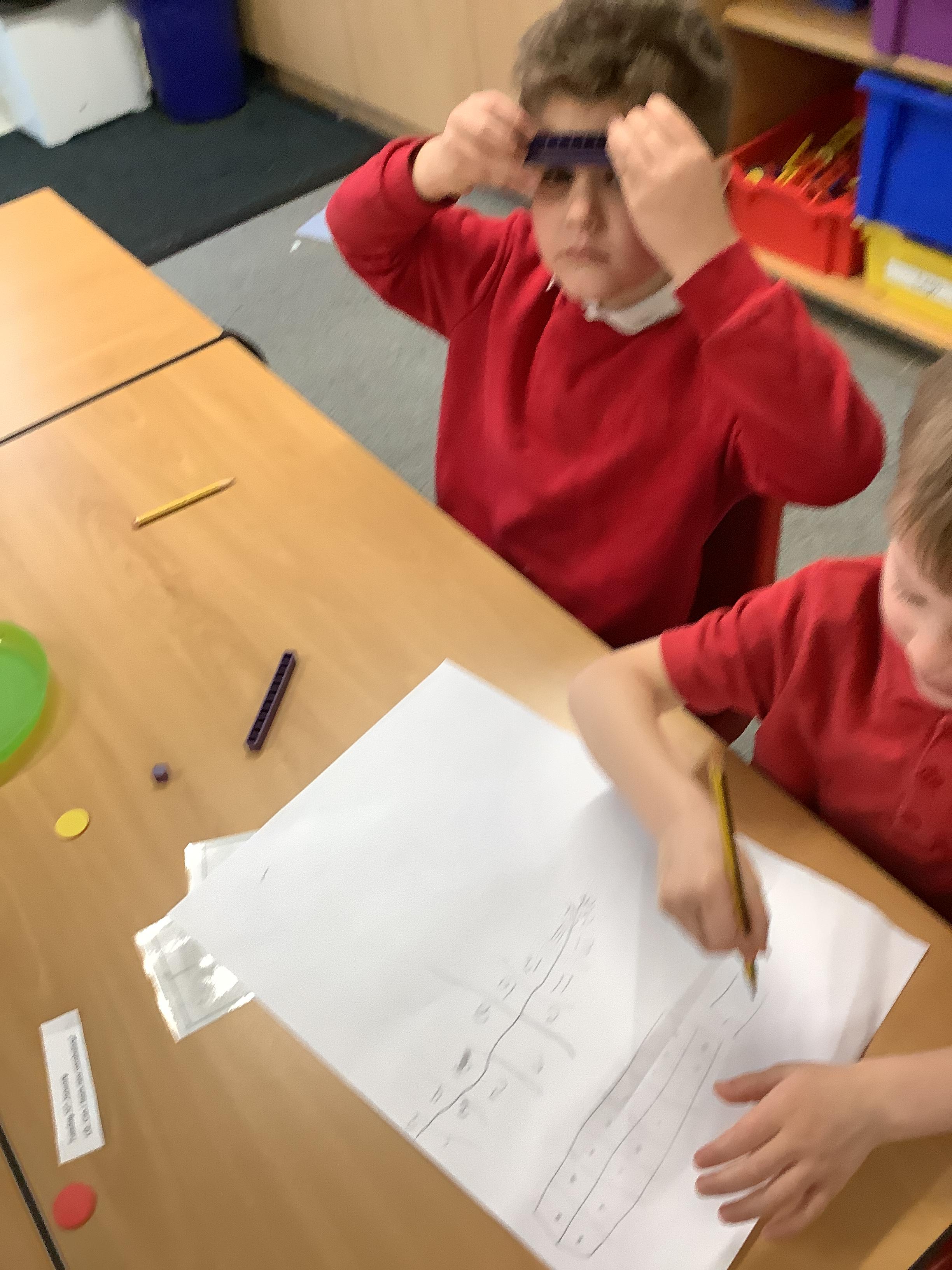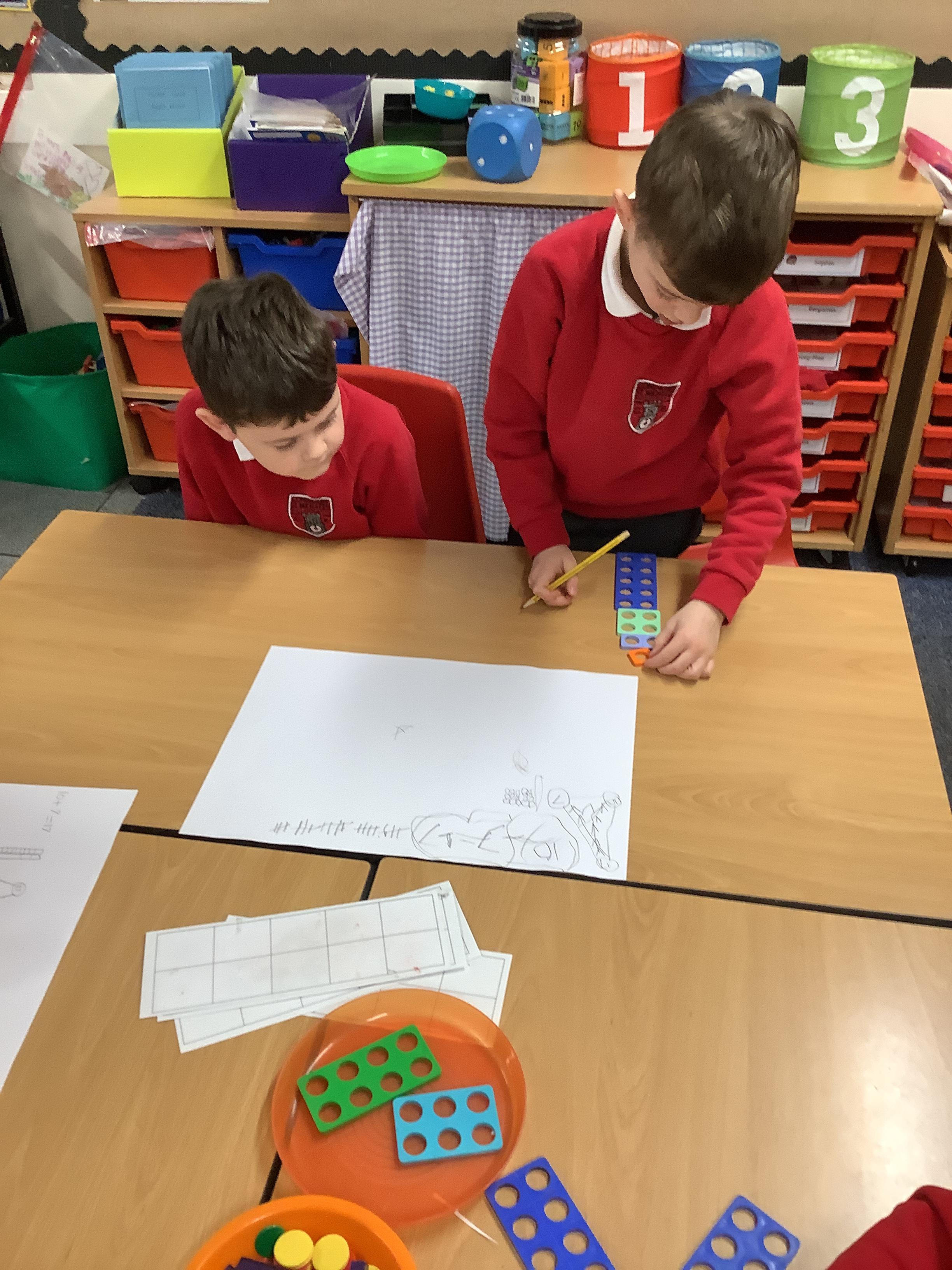 In Maths we built, drew and explored the numbers 14, 15 and 16. We worked with a partner who checked to see if we were correct! Great work Hedgehog class!