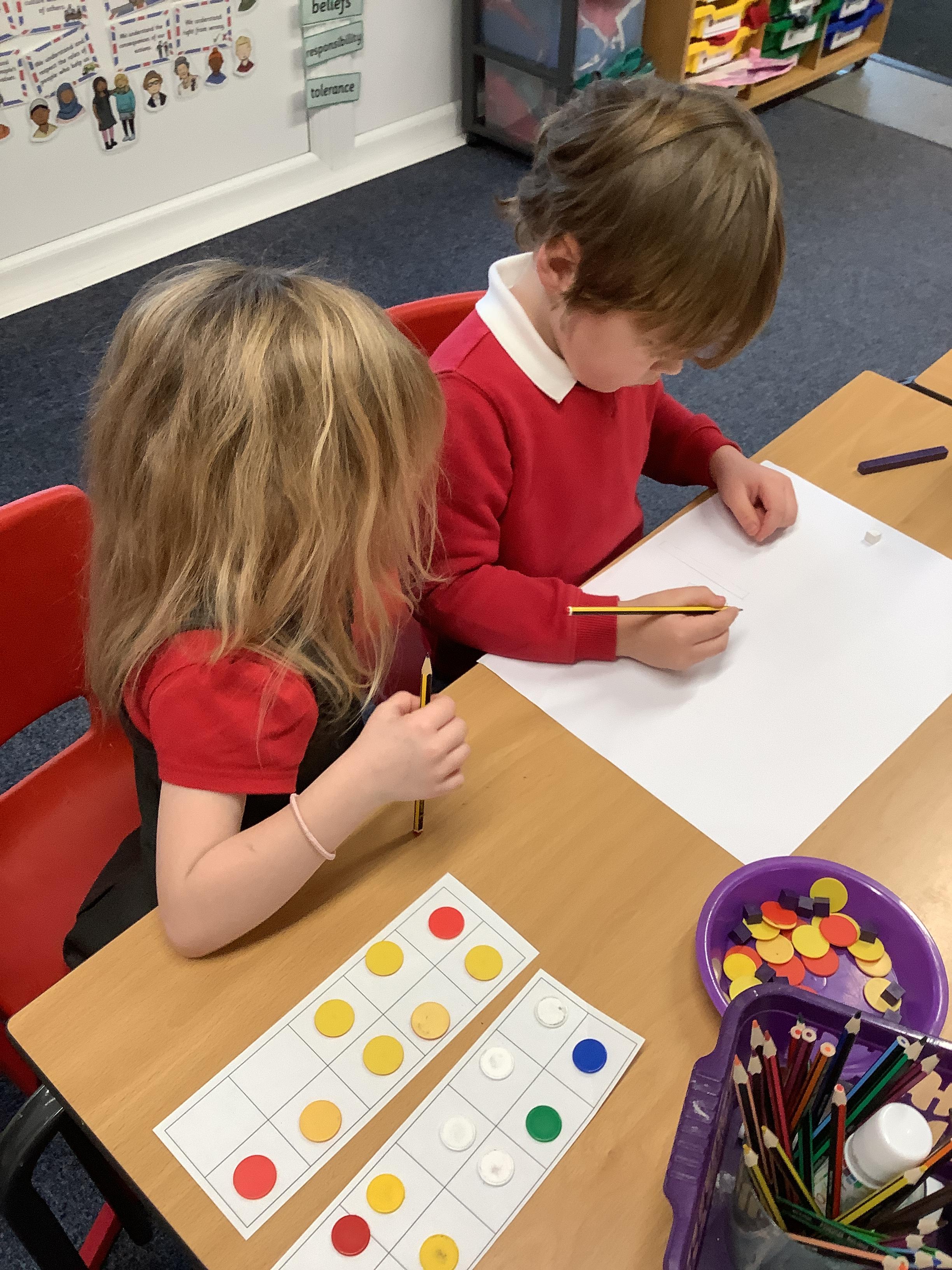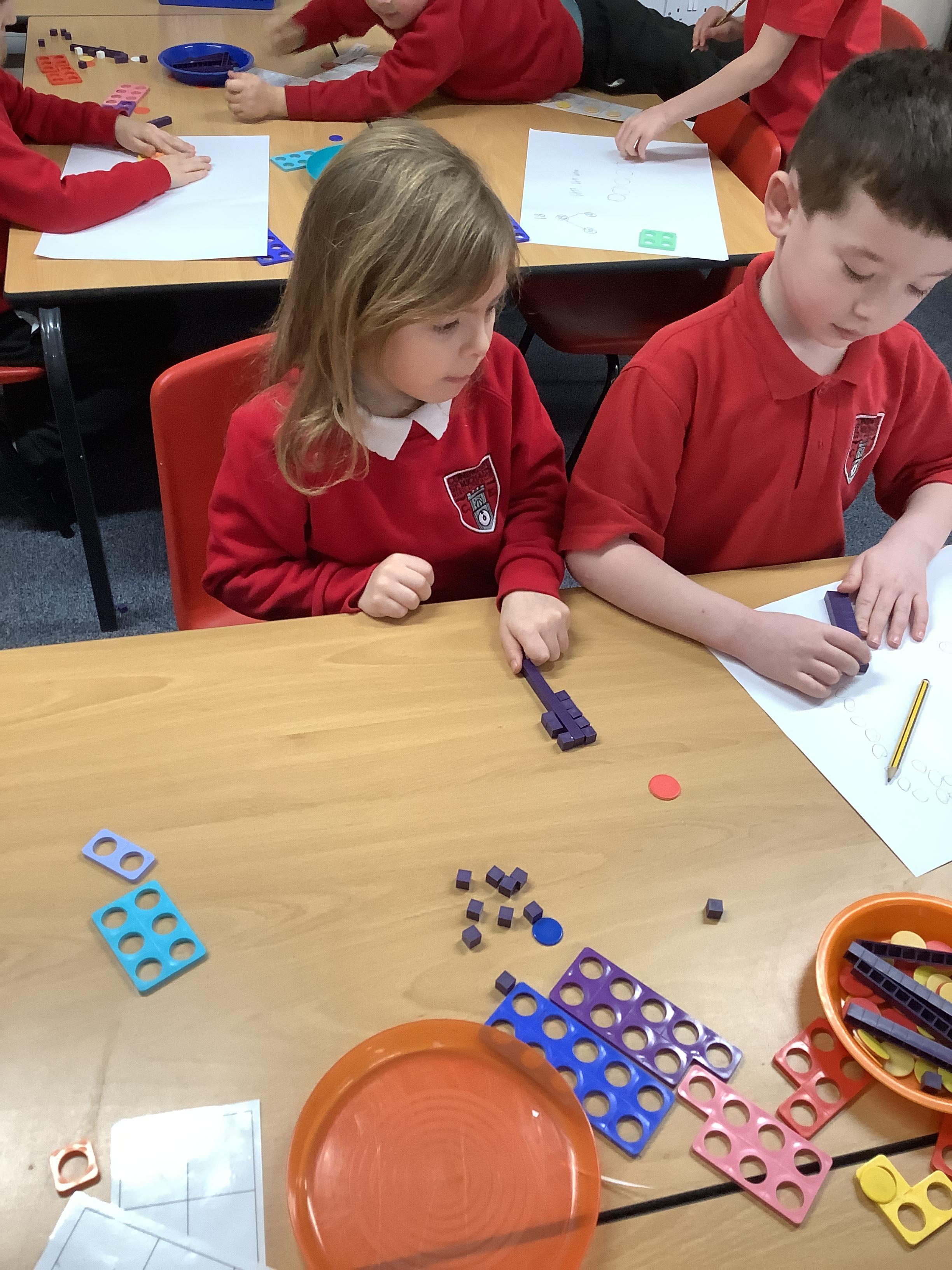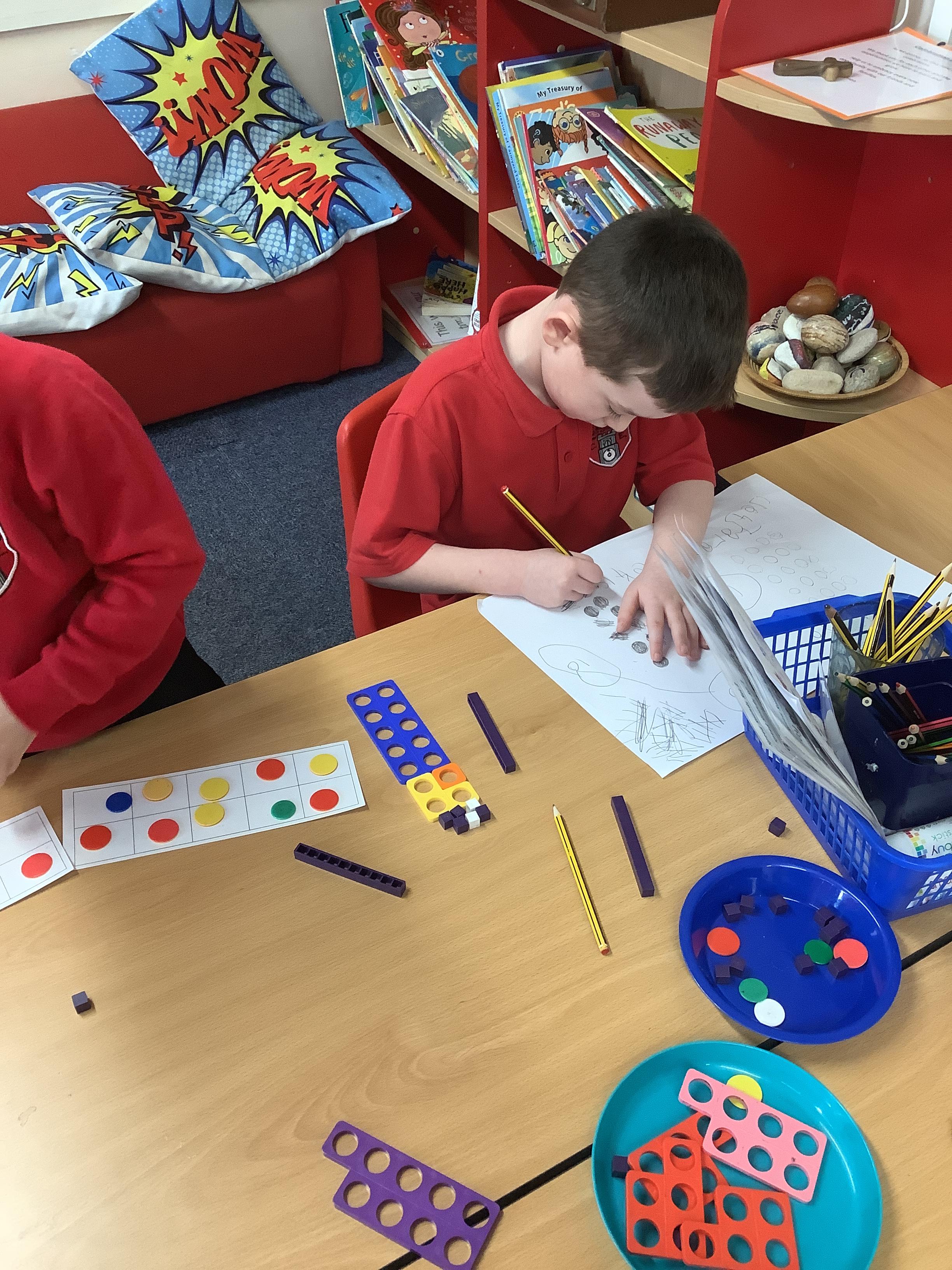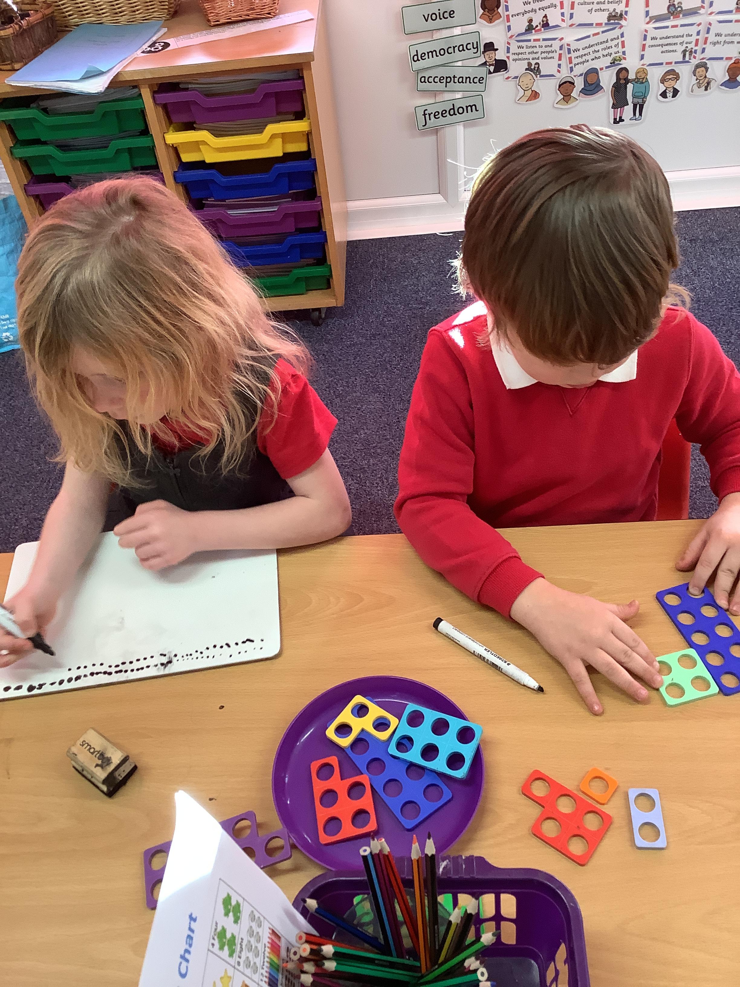 In Maths we built, drew and explored the numbers 14, 15 and 16. We worked with a partner who checked to see if we were correct! Great work Hedgehog class!
