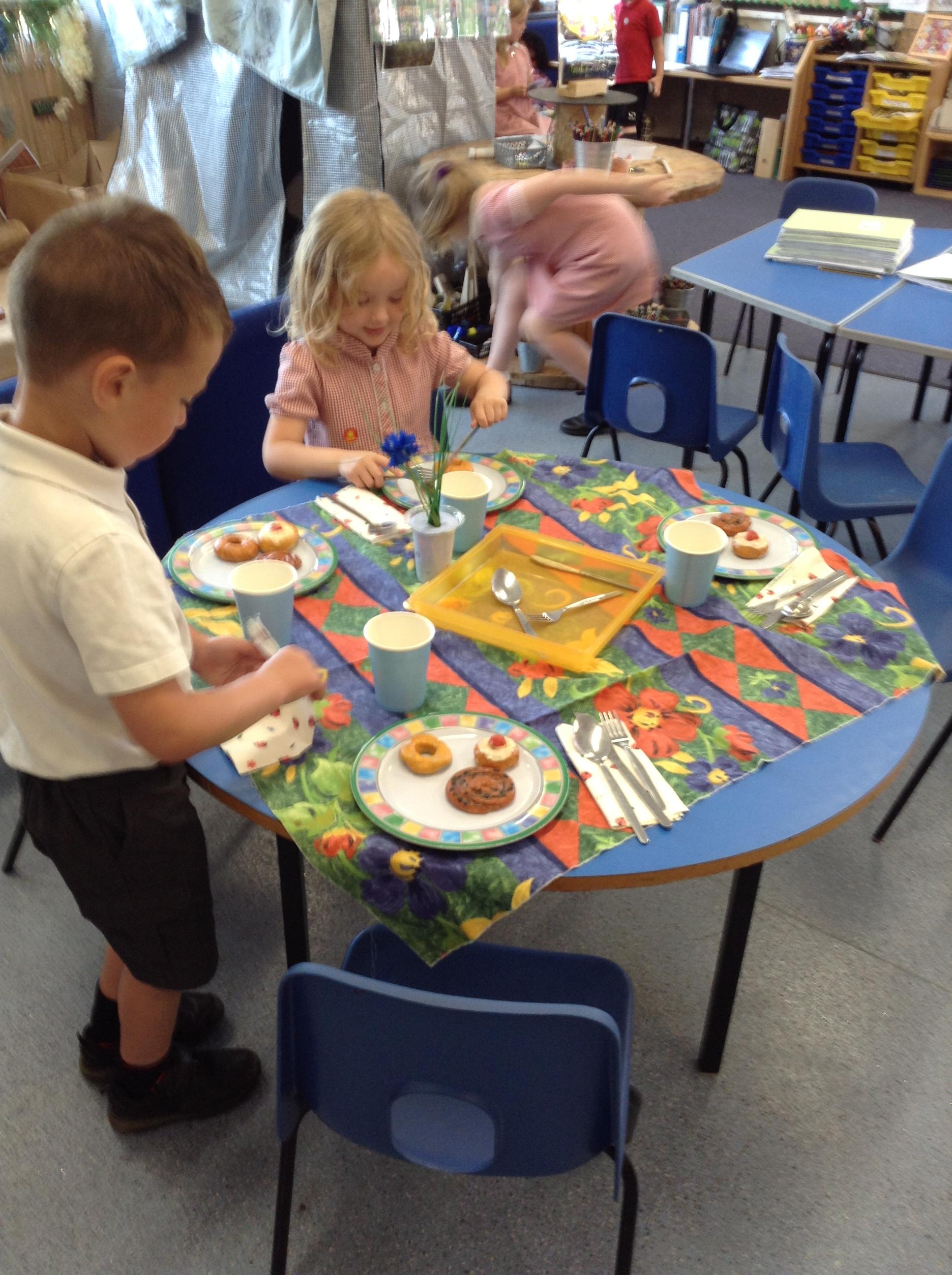 In maths this week we have been sharing different quantities between children and making sure we have equal groups. The children enjoyed setting a table for a picnic and sharing out the food.
