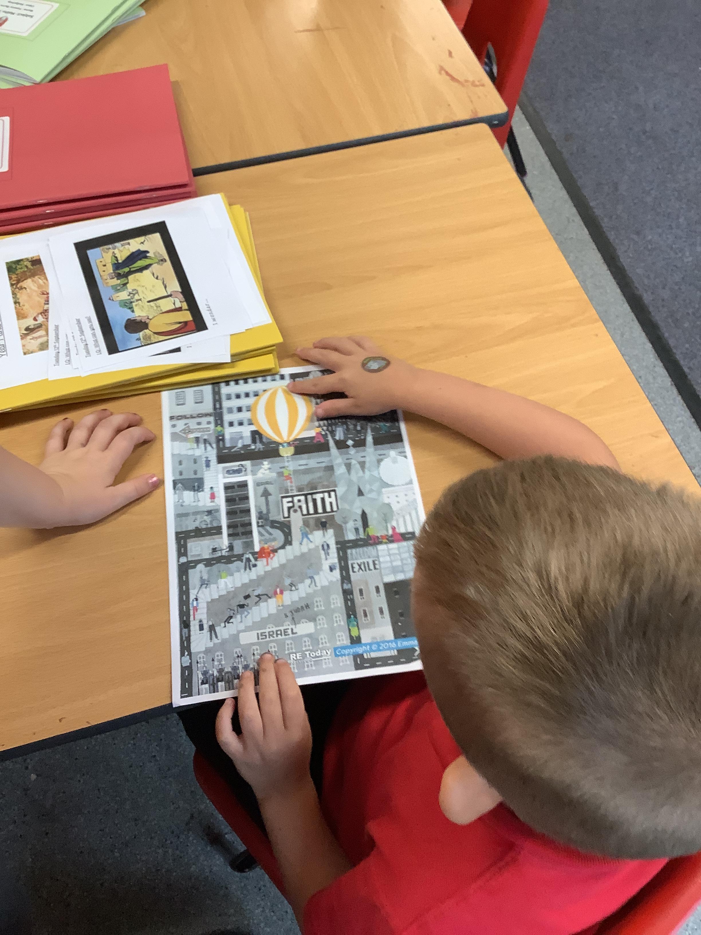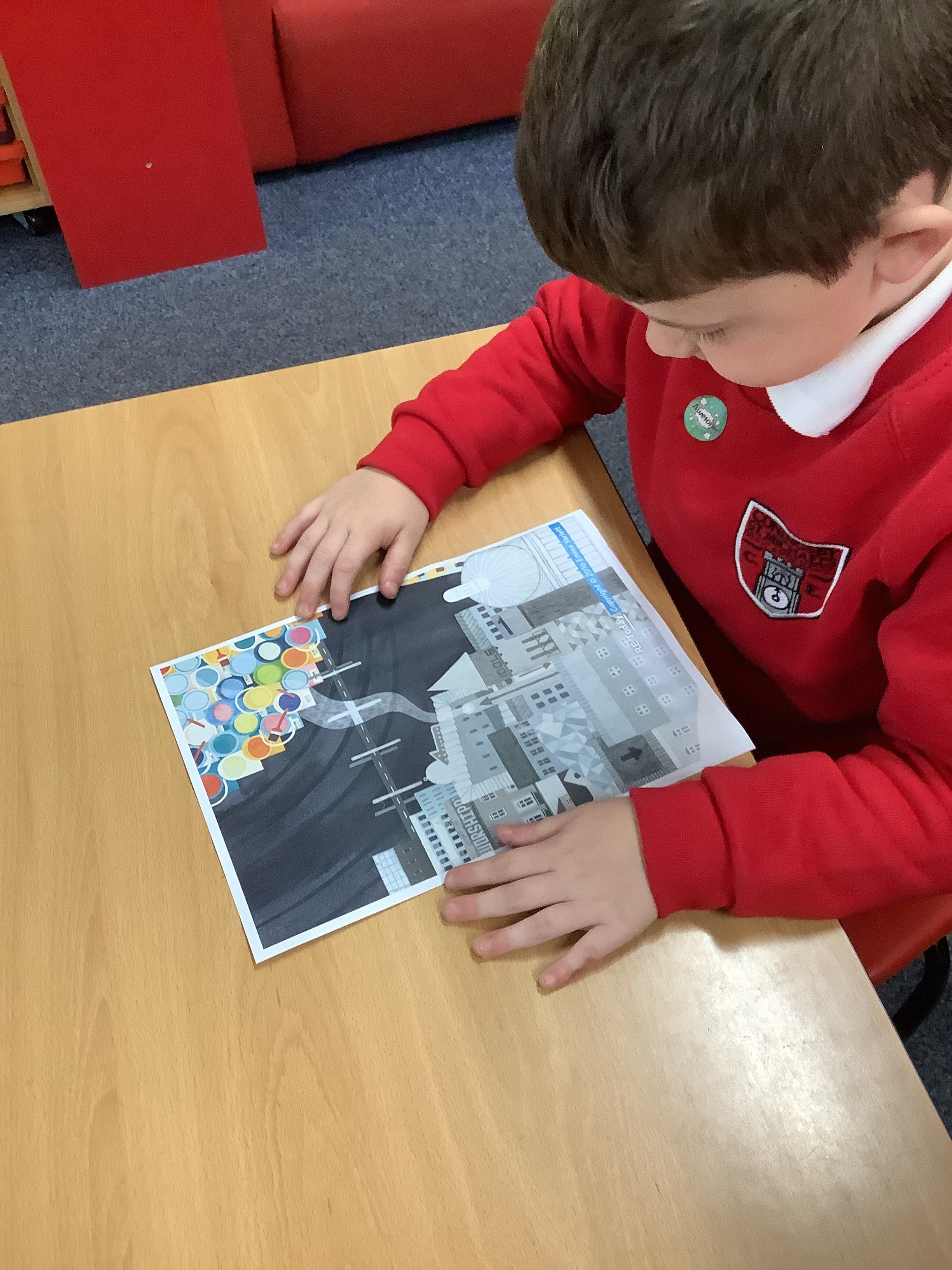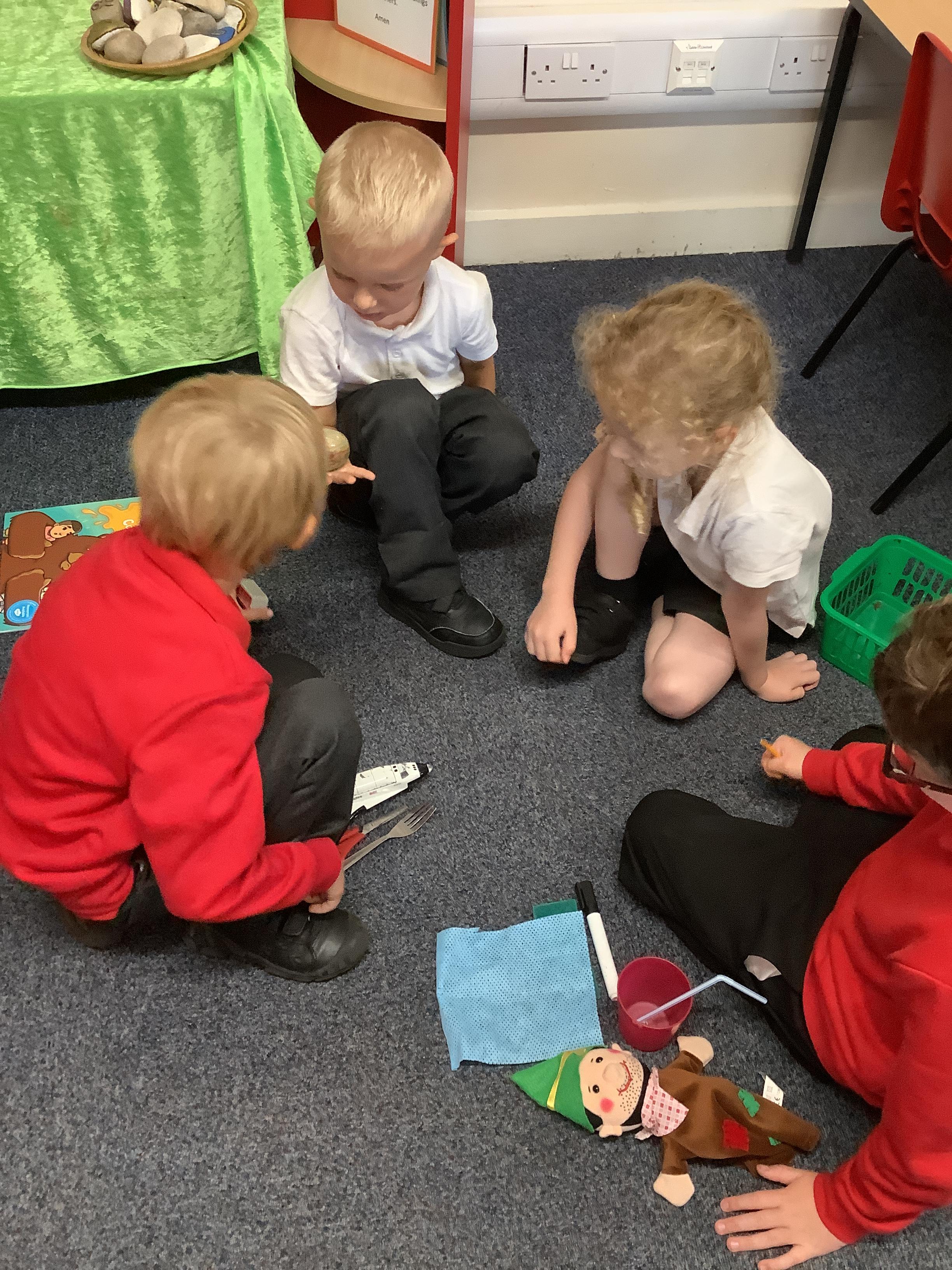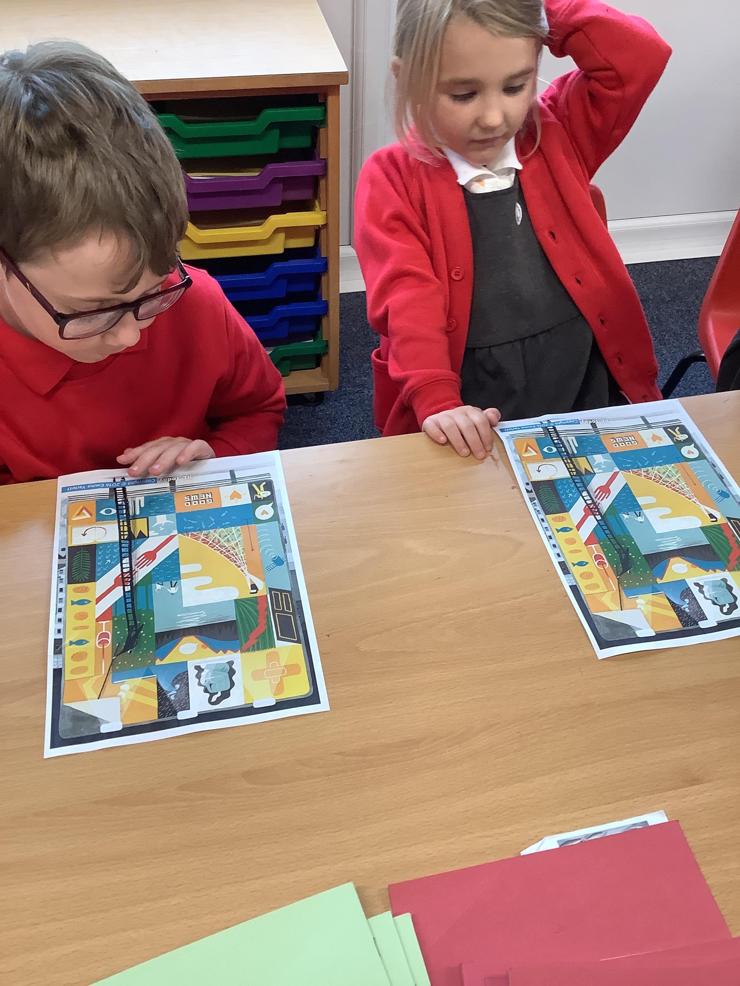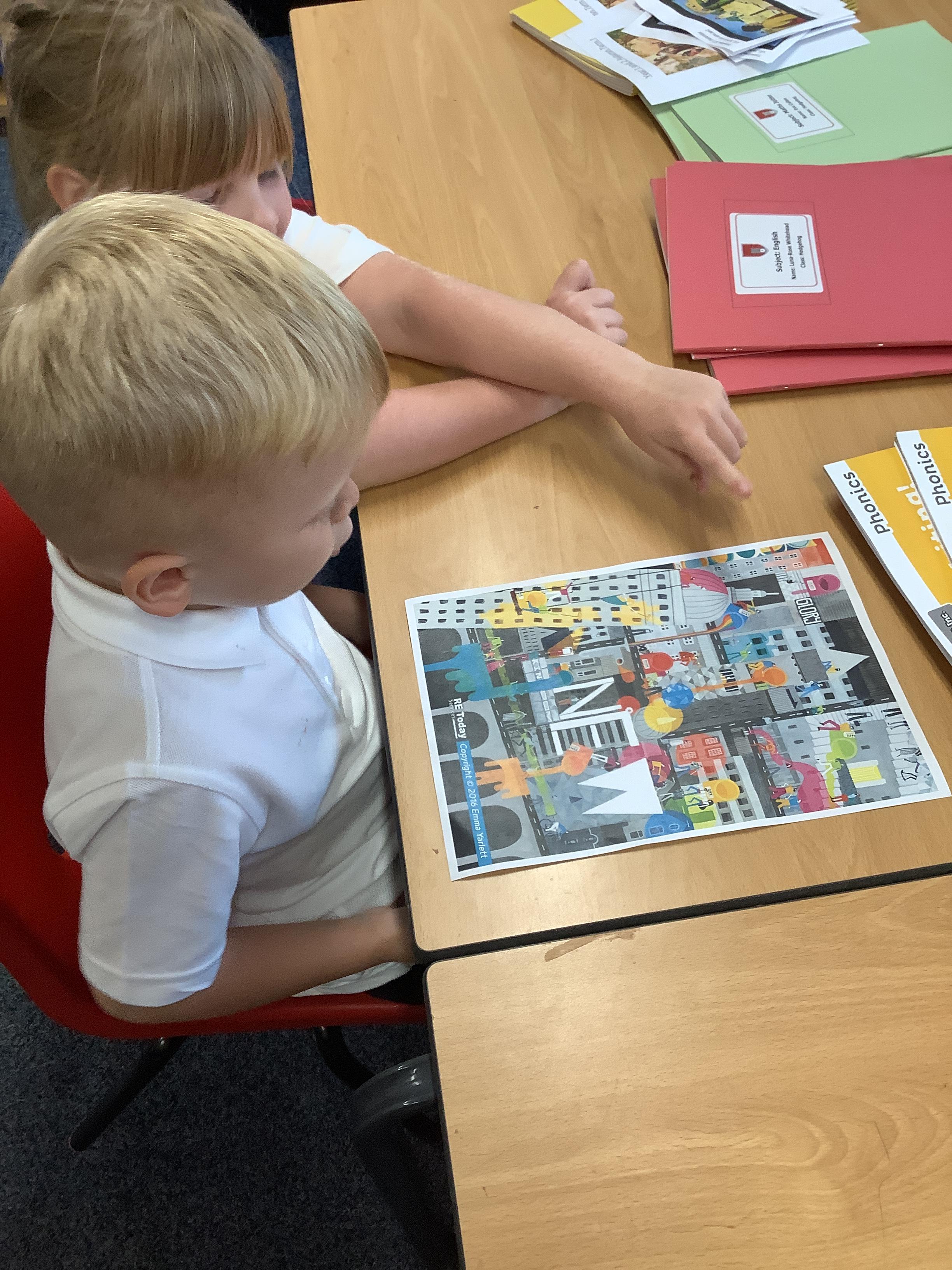RE this week was all about the big frieze, which we use to support our learning on Christianity. We were detectives and looked for clues about the bible in the pictures. We then looked at a picture from The Parable of the Prodigal son. We talked about what we thought was happening in the picture and why.