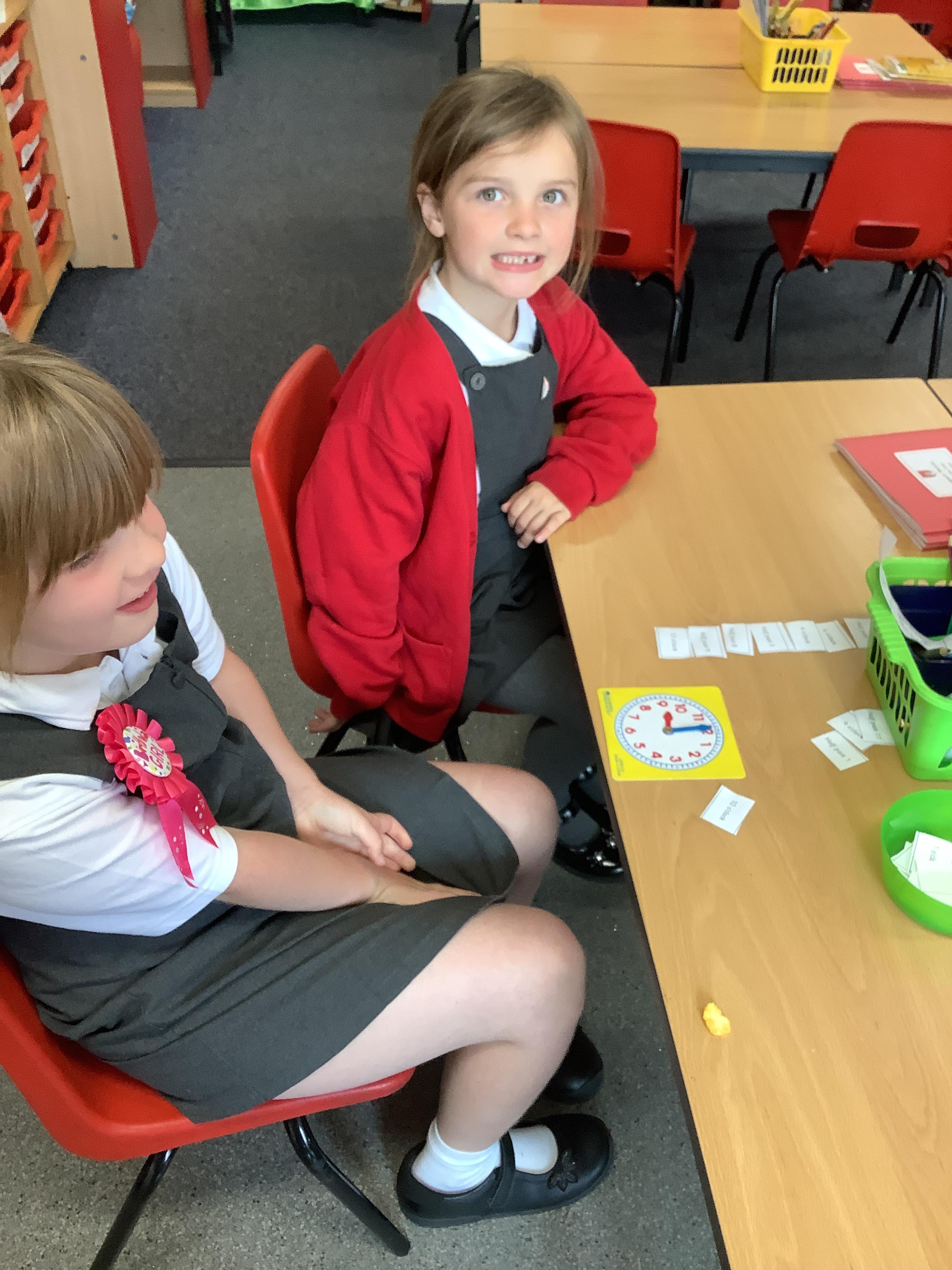 In Maths our Year 1 children were busy testing each other on setting the time to o'clock. Our Year 2 children have been busy finding quarter past and quarter to.