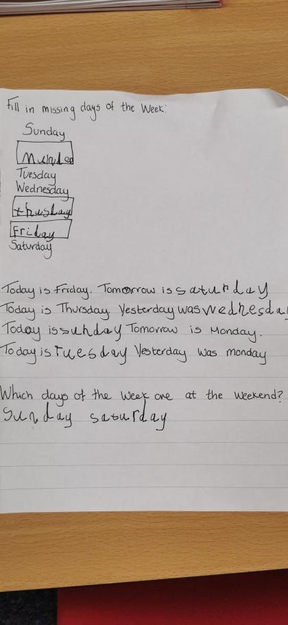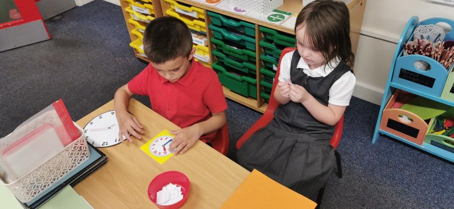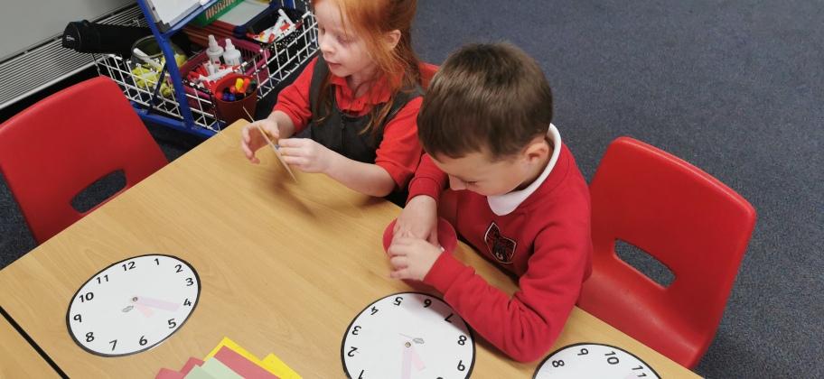 The children have been working super hard this week in maths, learning to tell the time to O clock and half past, as well as quarter to and quarter past.