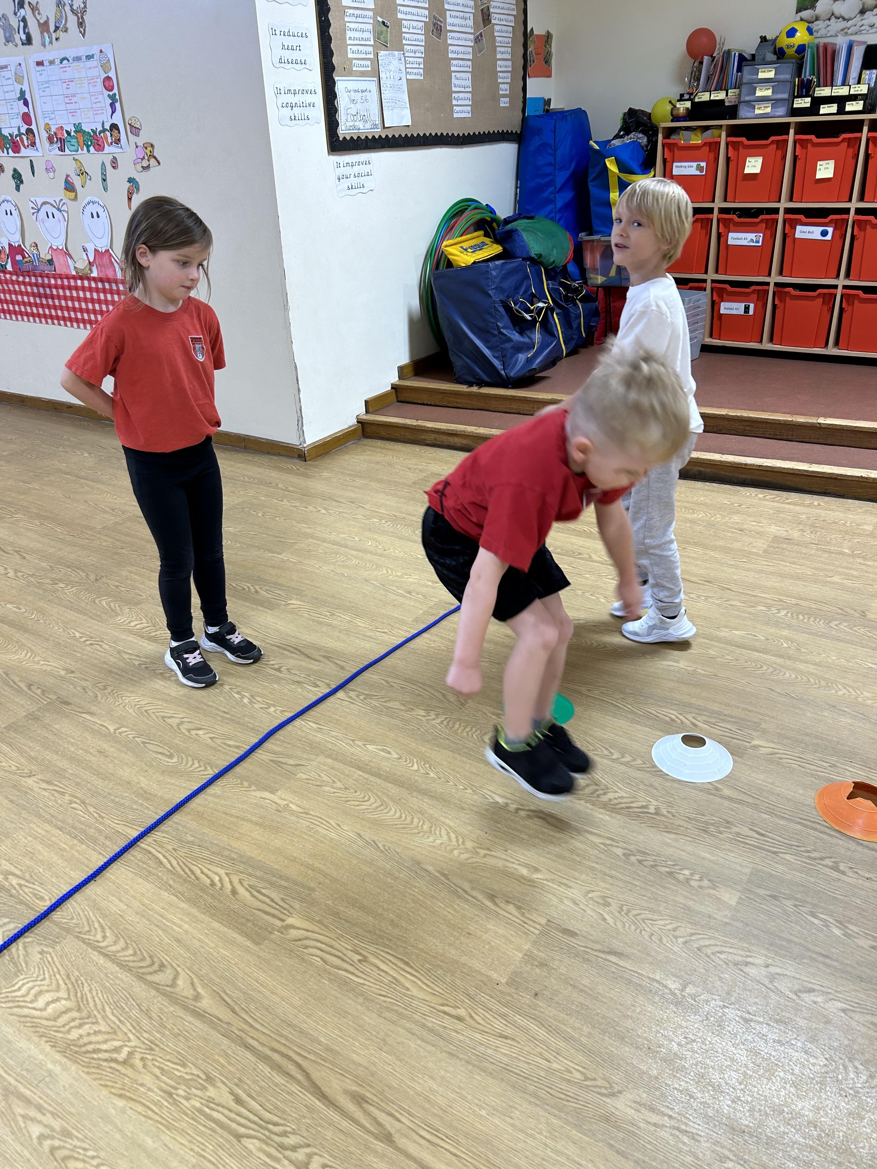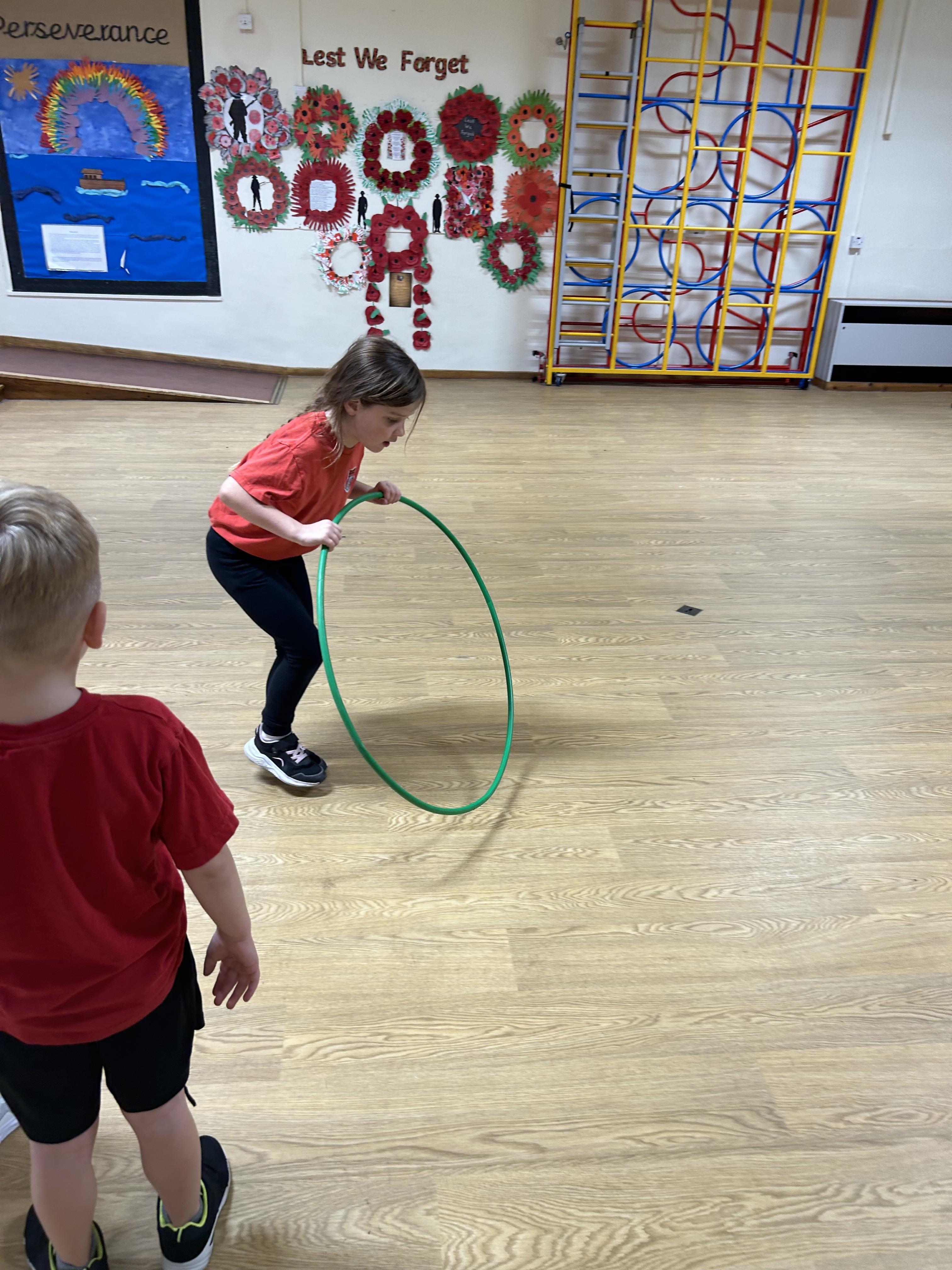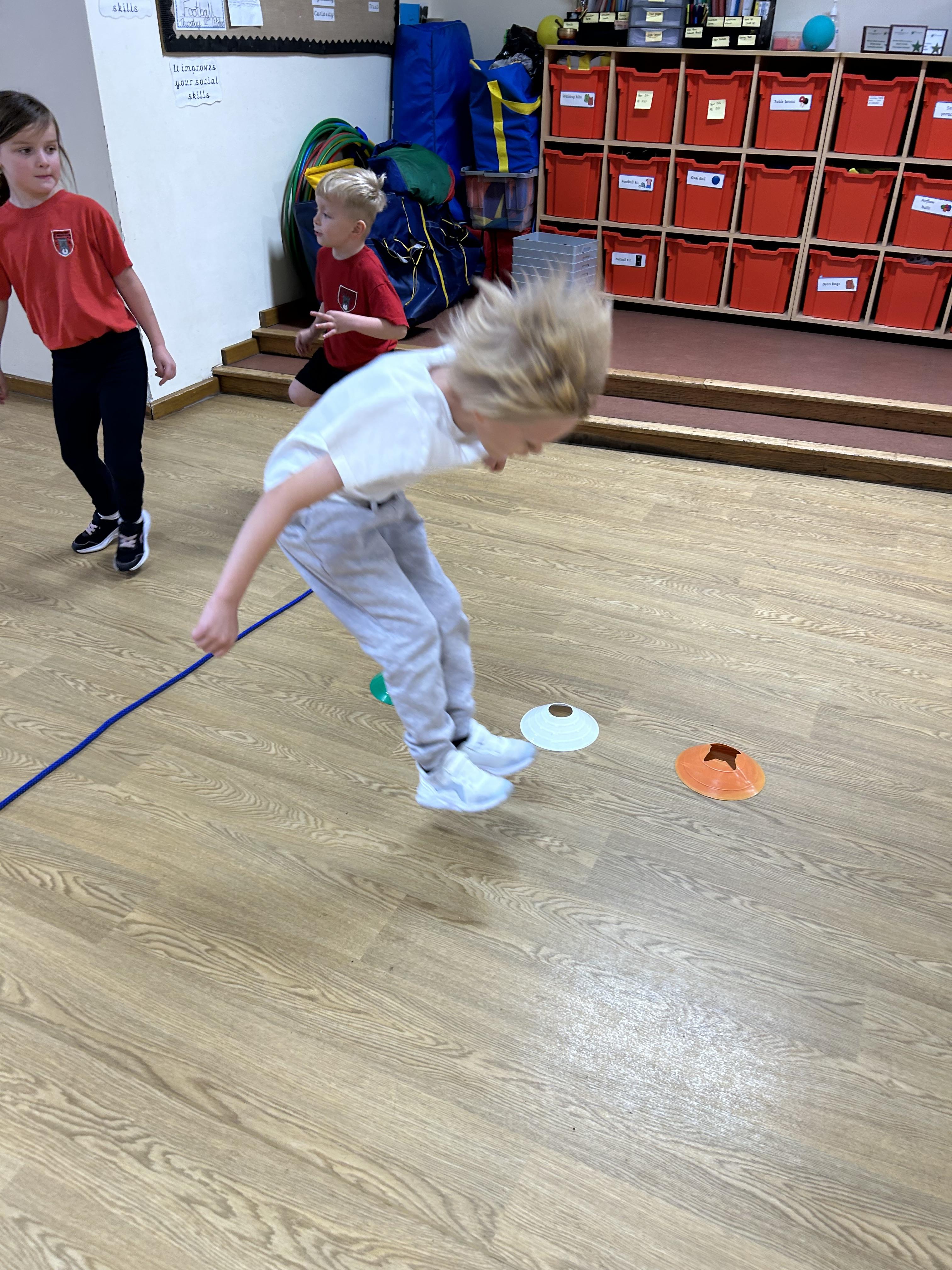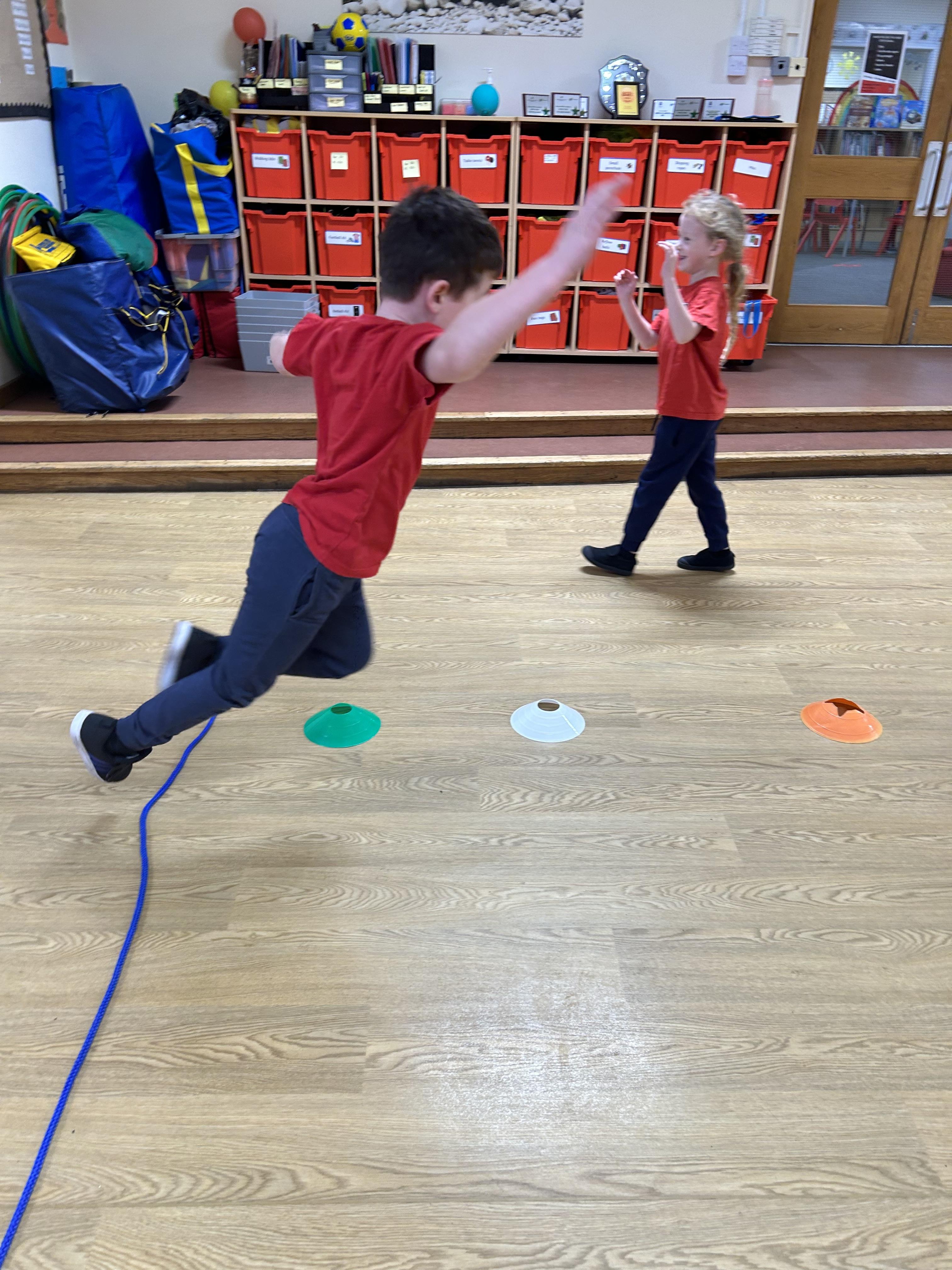 This week in athletics we looked at different ways of jumping, skipping and throwing. We had to jump high, jump from two feet to two feet, leap from one foot to one foot, chest throw from a seated position and skip with a hoop. We all mastered new skills.