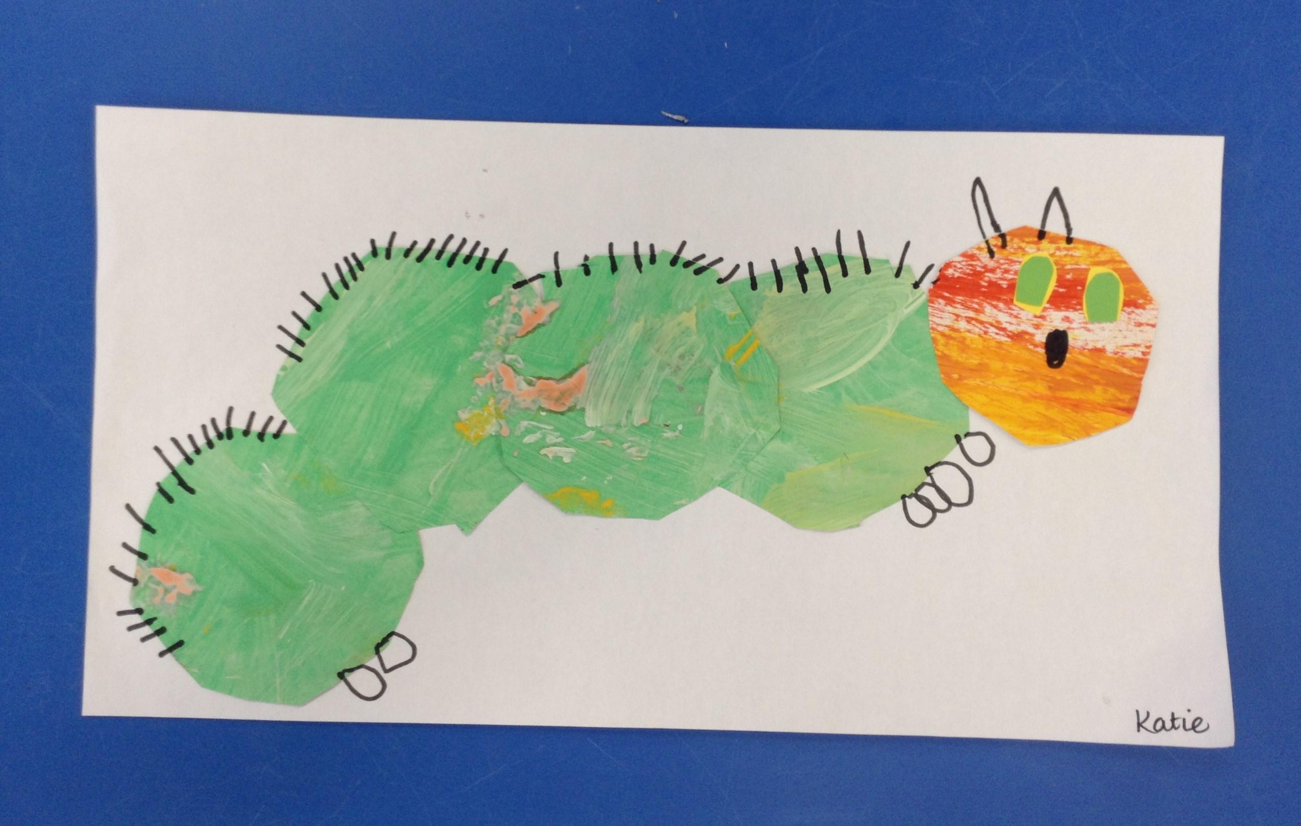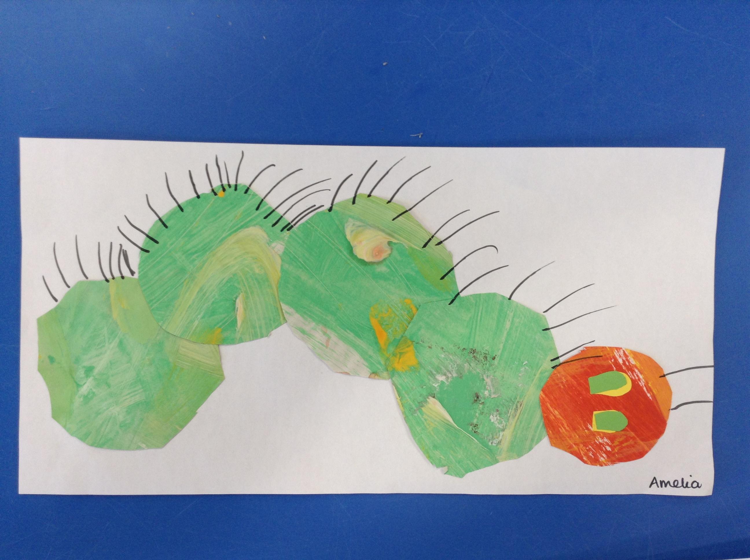 This week we have been reading the story The Very Hungry Caterpillar. The children enjoyed using the storysack of the story to investigate what was happening in the story. The children made their own hungry caterpillar books and wrote about the foods the caterpillar ate.