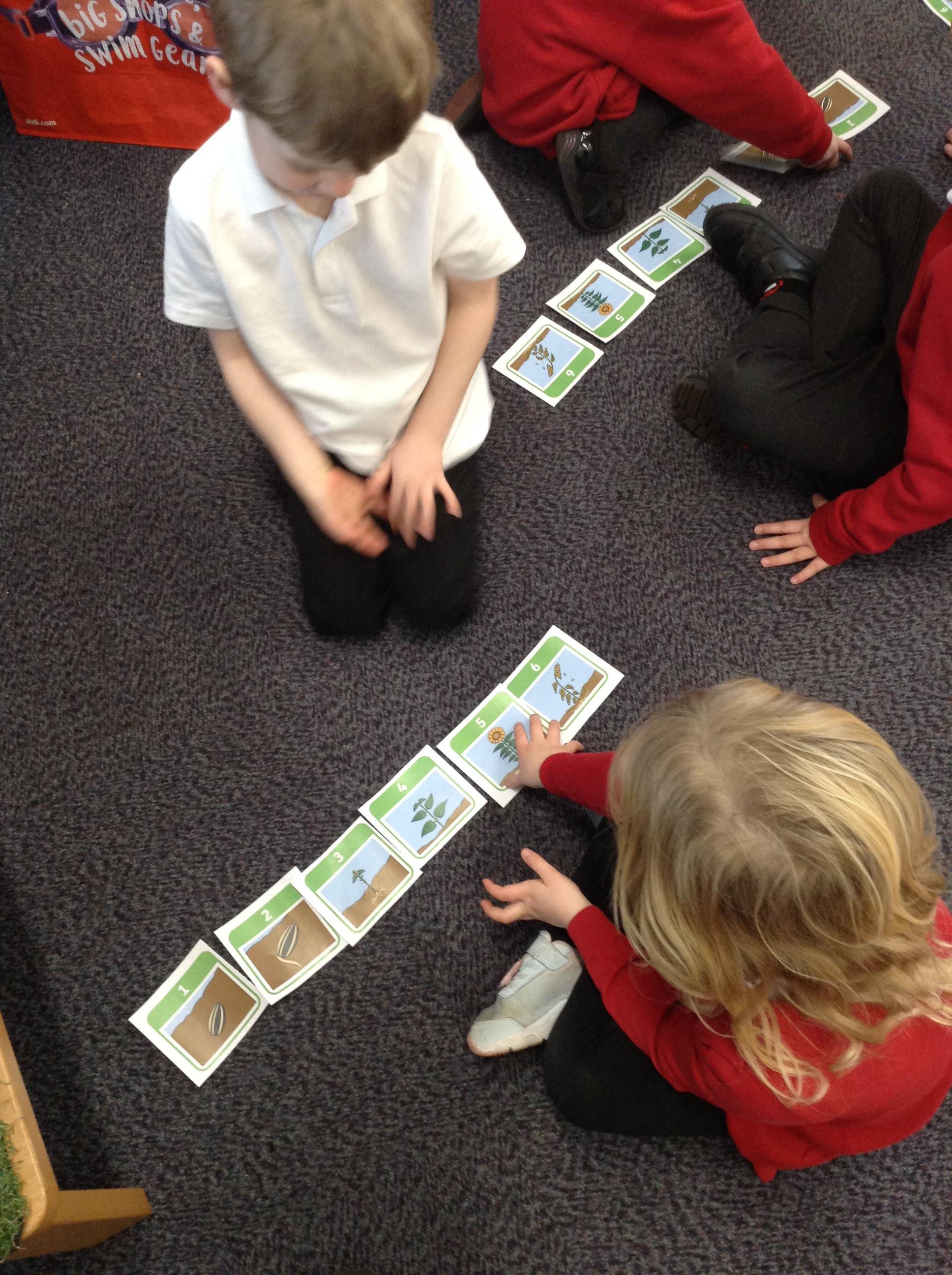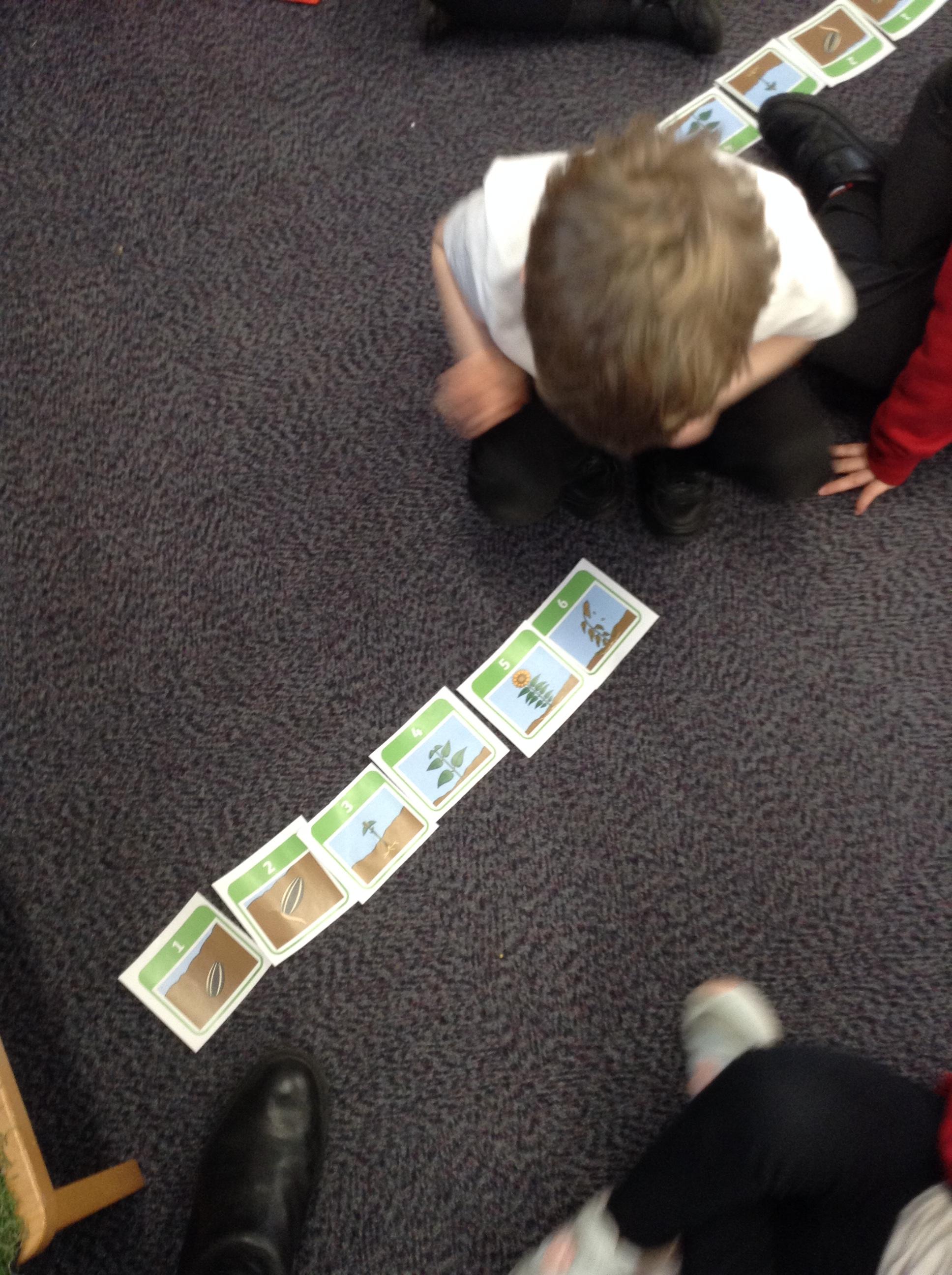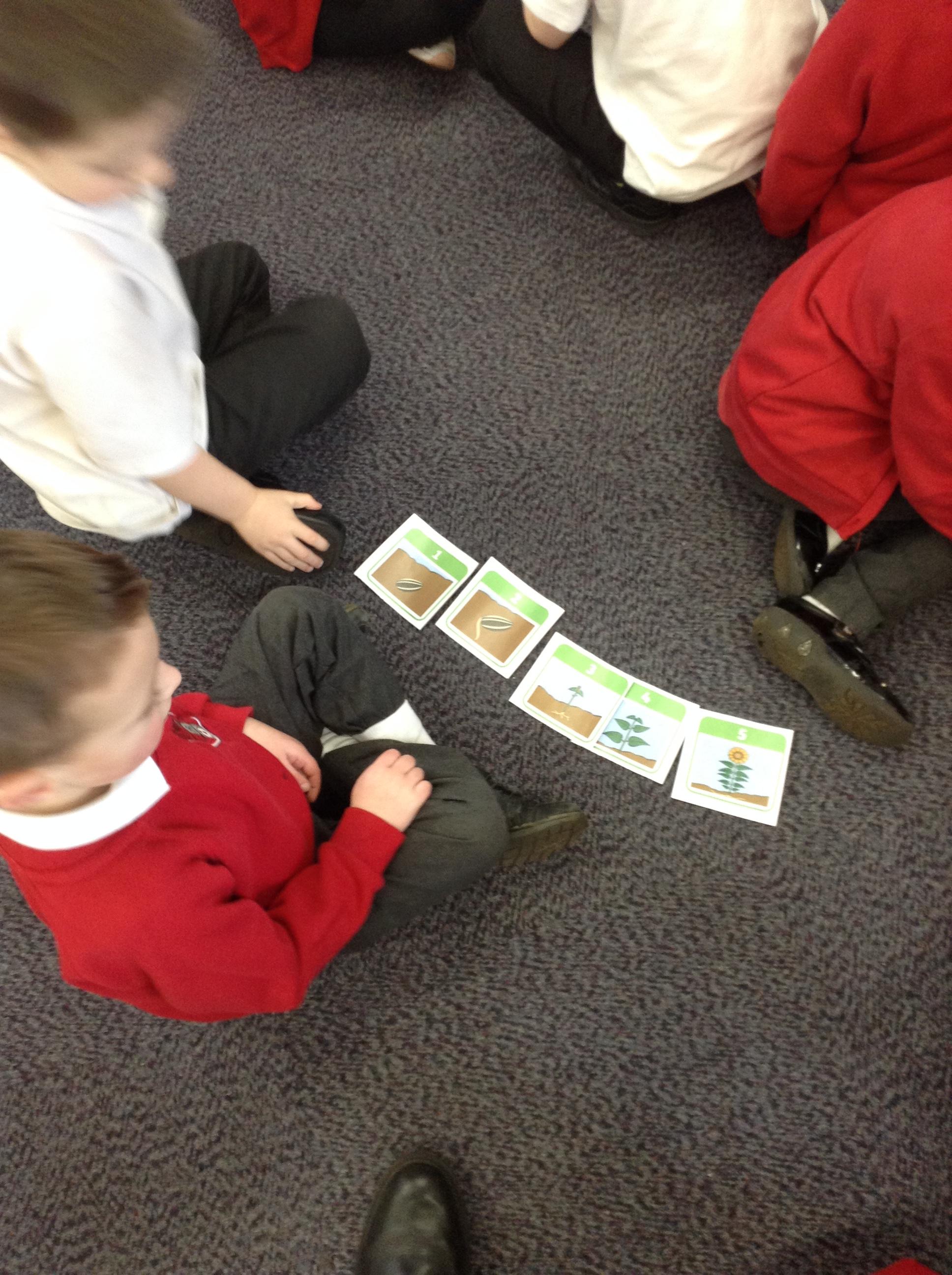 In science this week we have been looking at what a plant needs to grow. We have been looking at the seeds we planted last week and making sure we give them everything they need in order to grow. We then worked with a partner to sequence the pictures of the sunflower growing and talked about what was happening.