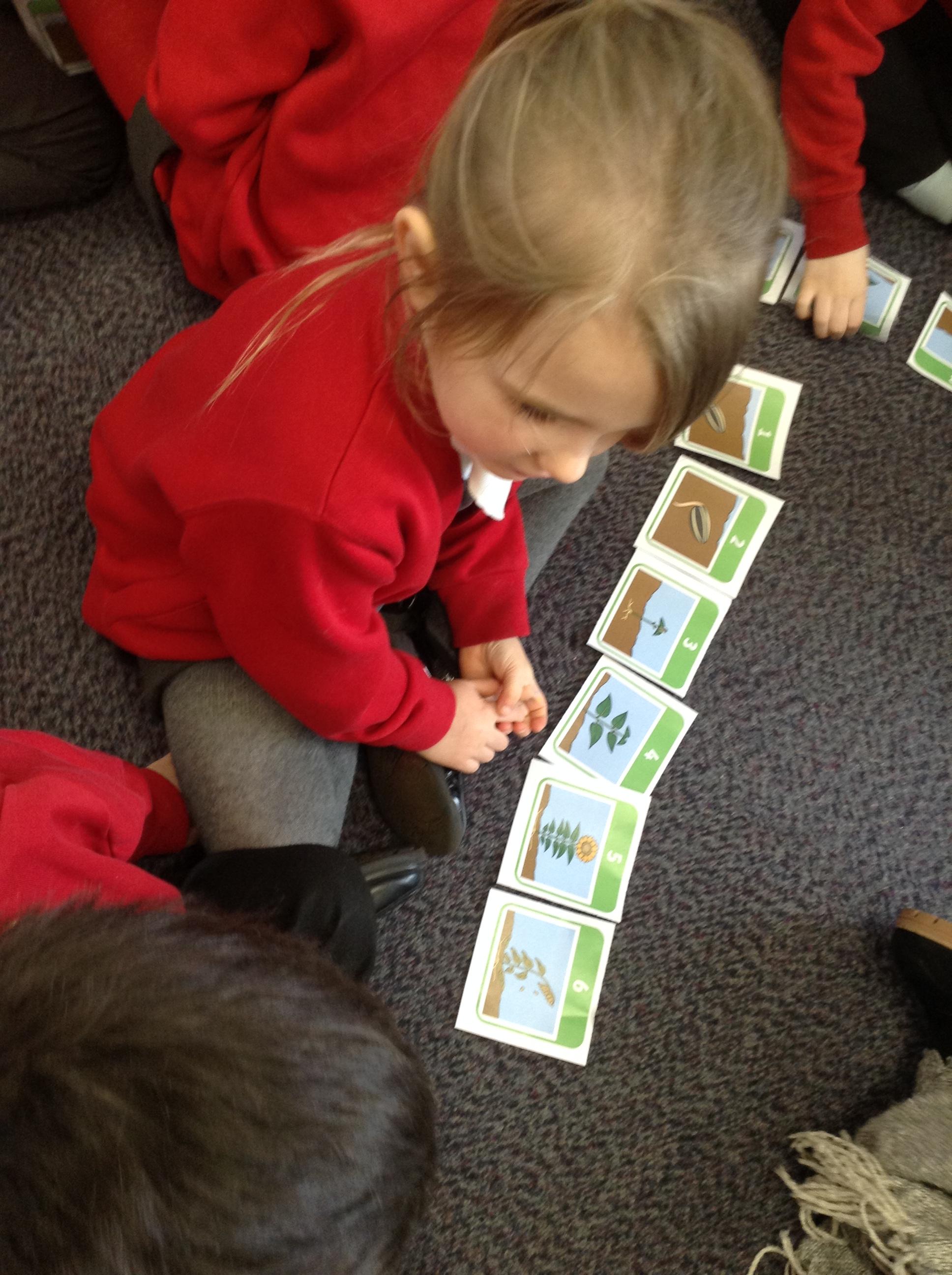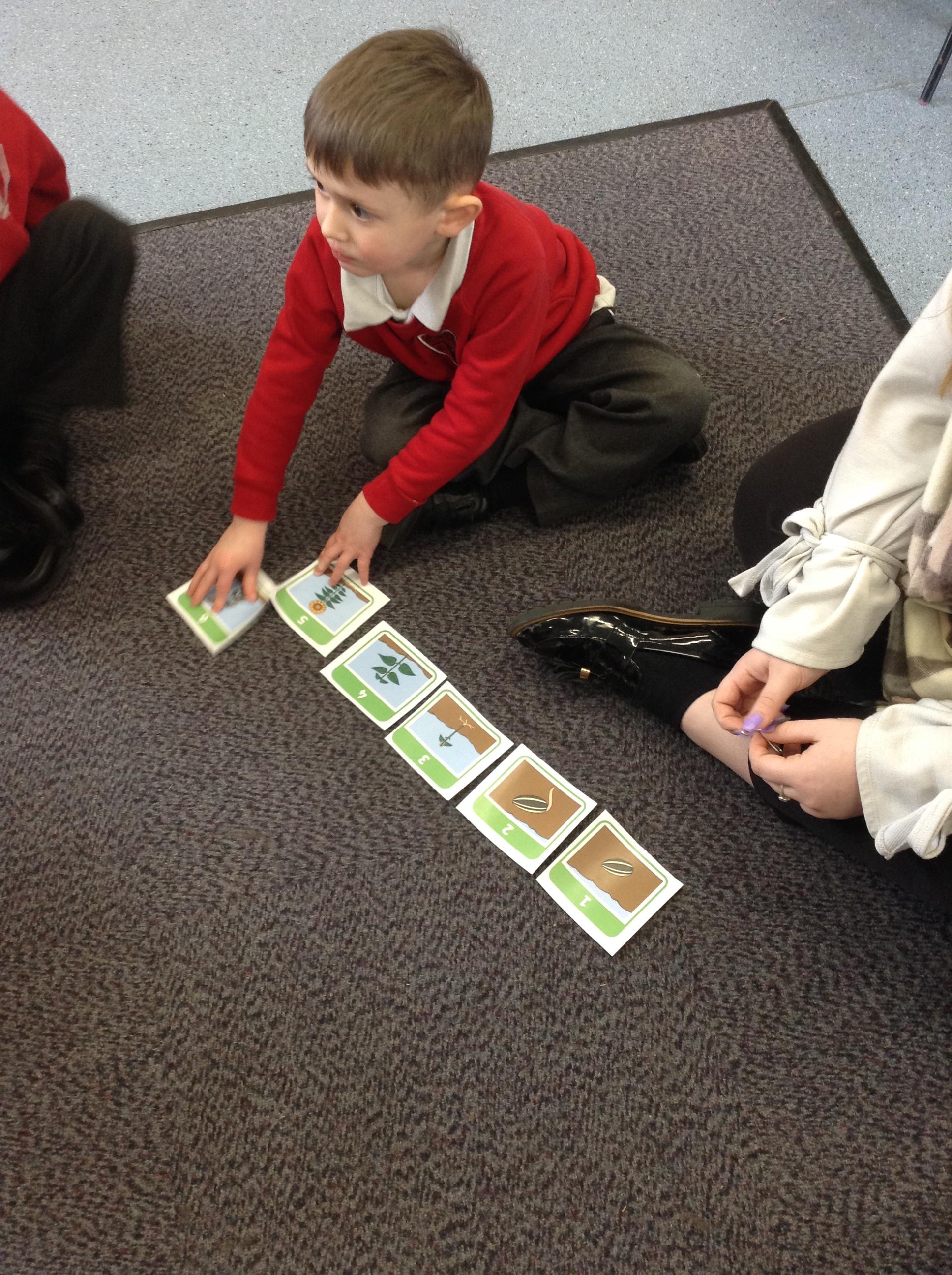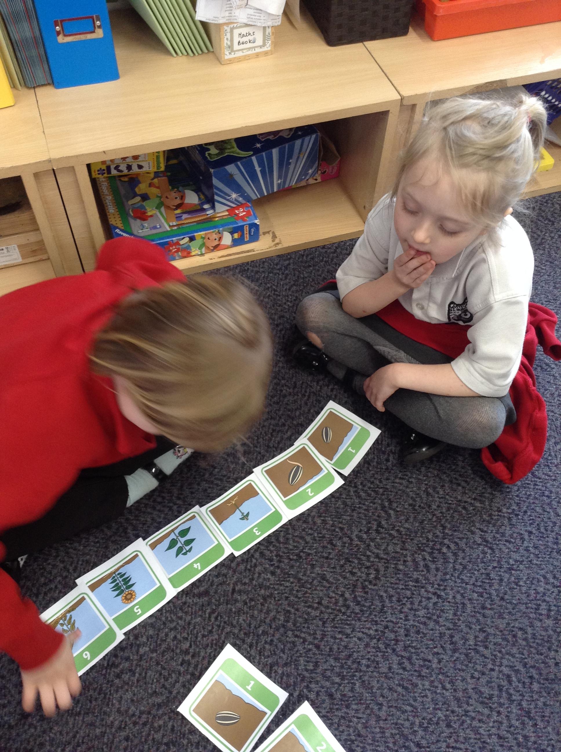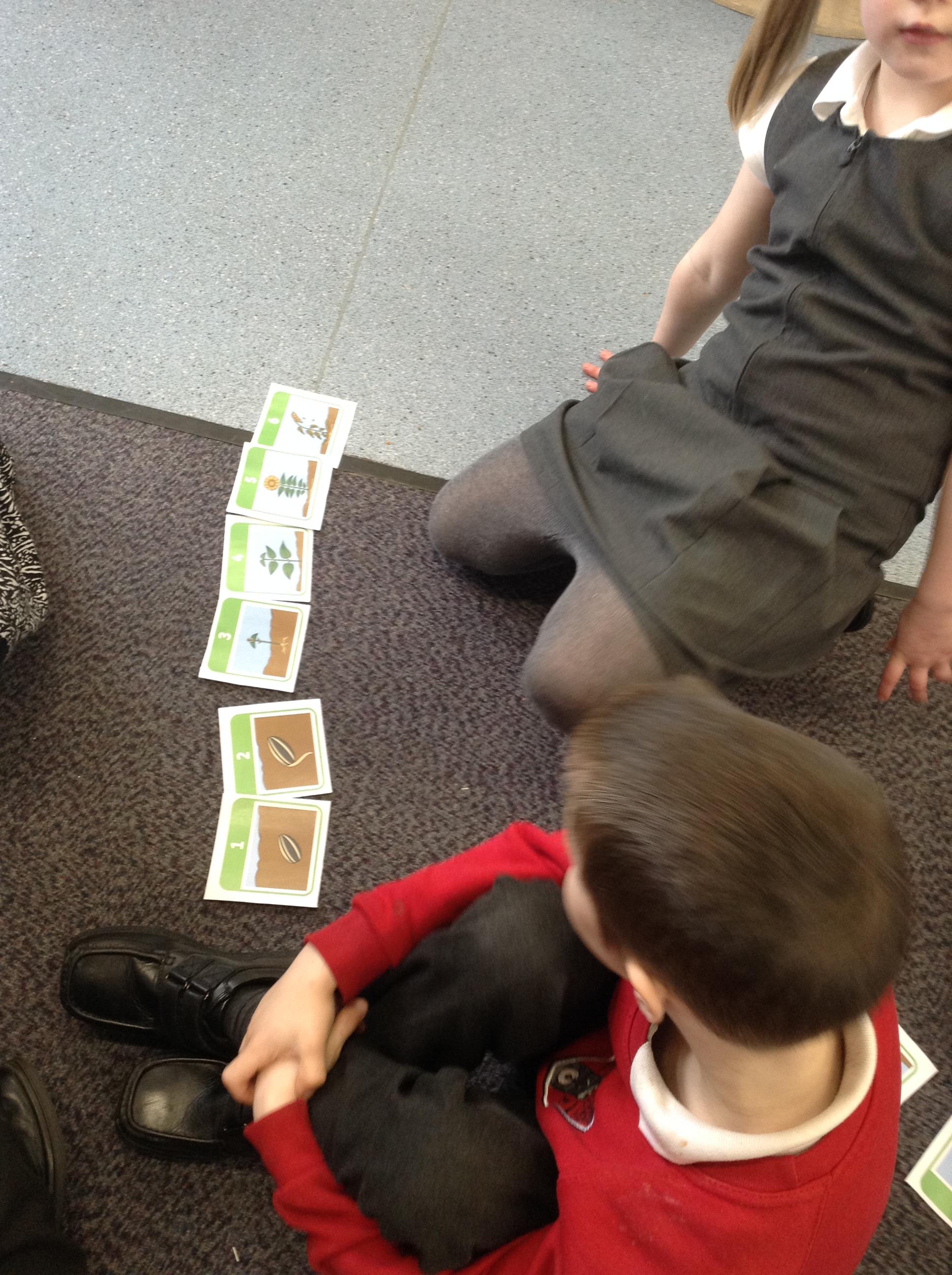 In science this week we have been looking at what a plant needs to grow. We have been looking at the seeds we planted last week and making sure we give them everything they need in order to grow. We then worked with a partner to sequence the pictures of the sunflower growing and talked about what was happening.