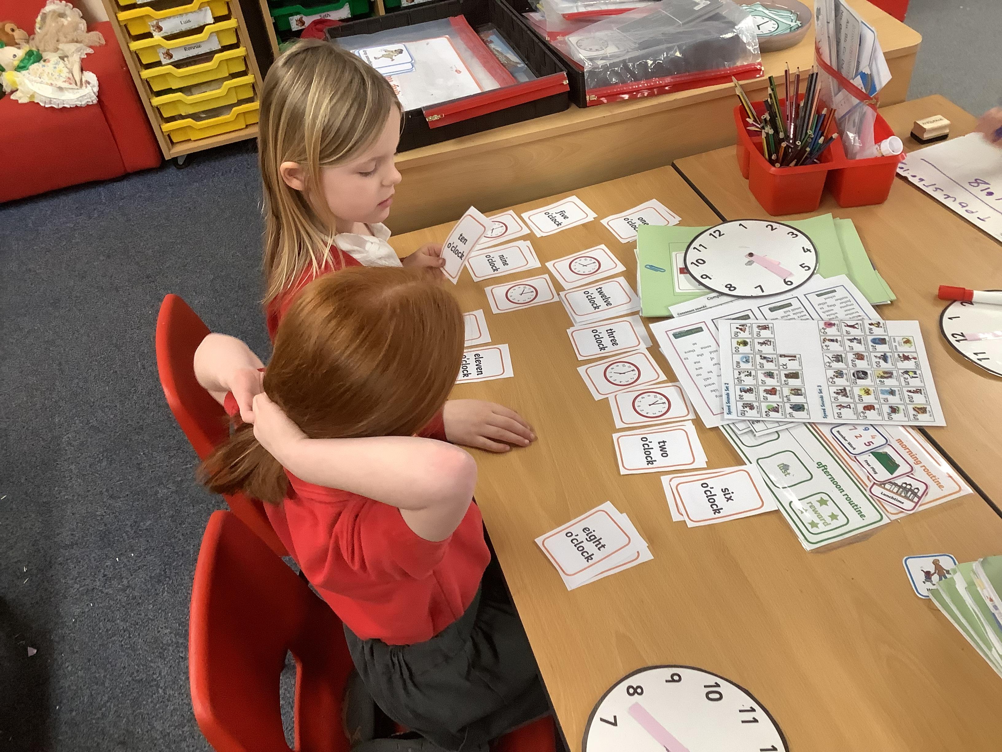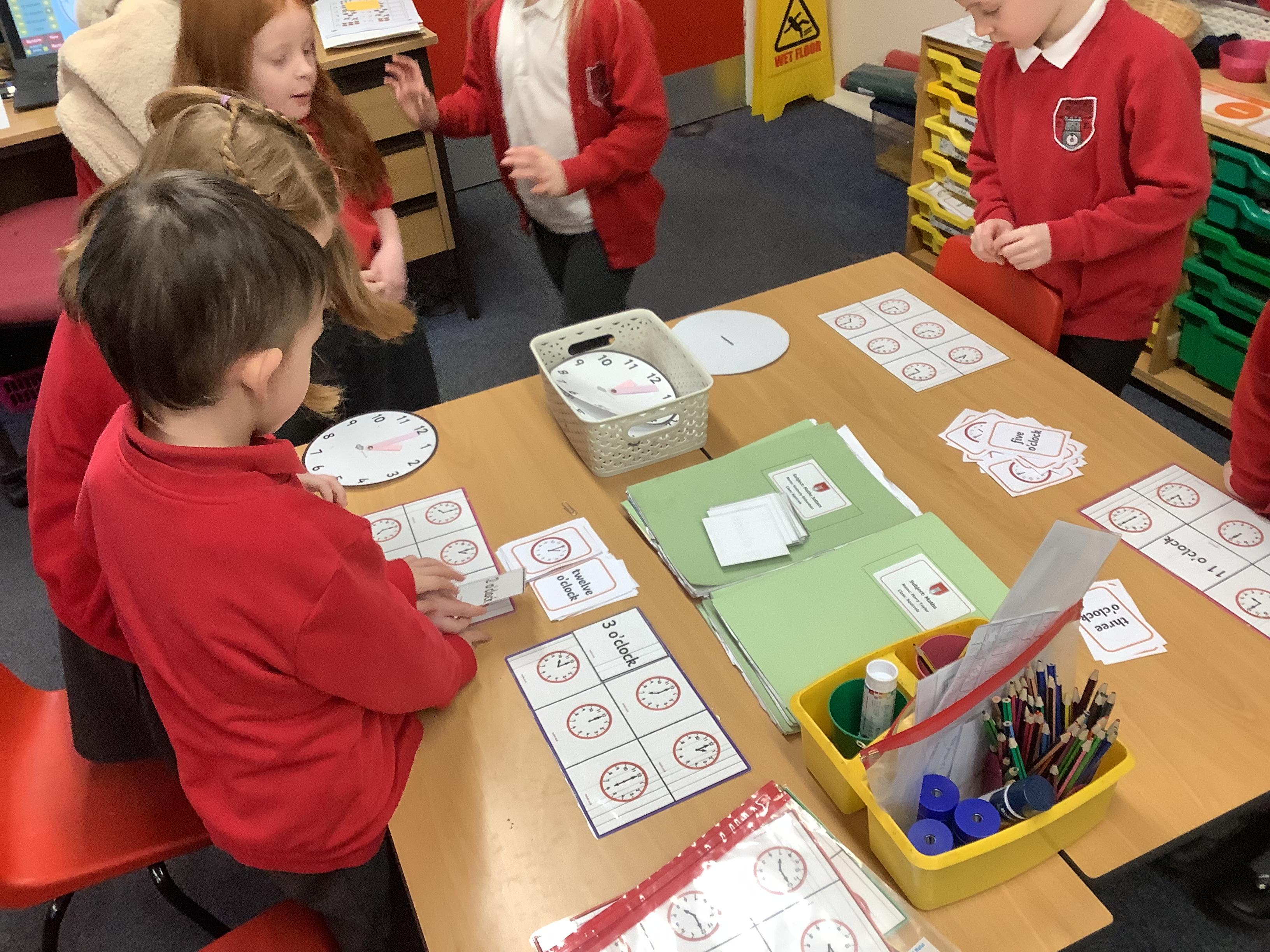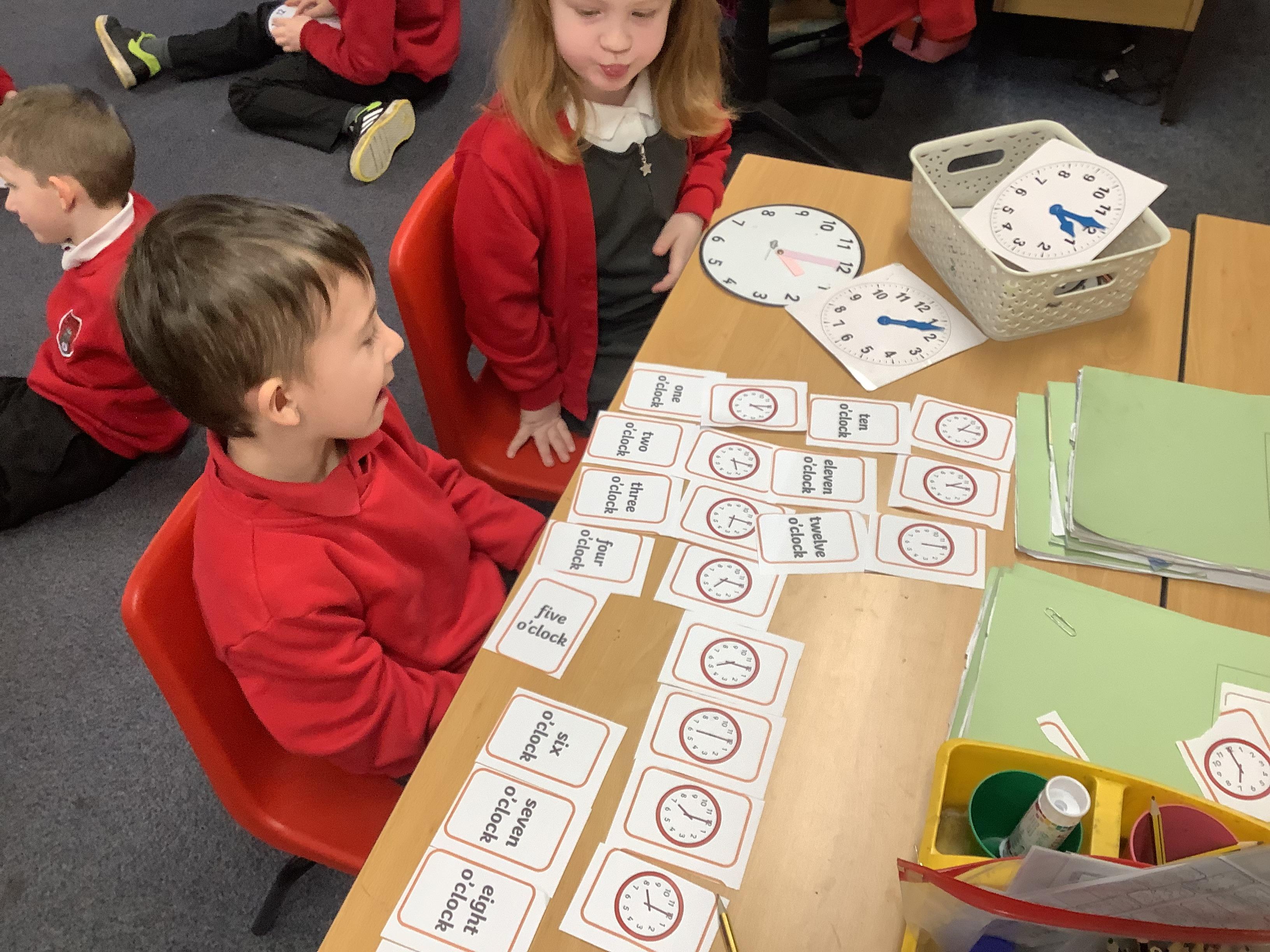 In Maths this week, Year 1 children have been recalling the days of the week and the months of the year. We have then moved onto telling the time to O'clock. Year 2 children have been telling the time to O'clock, half past, quarter past and quarter to.