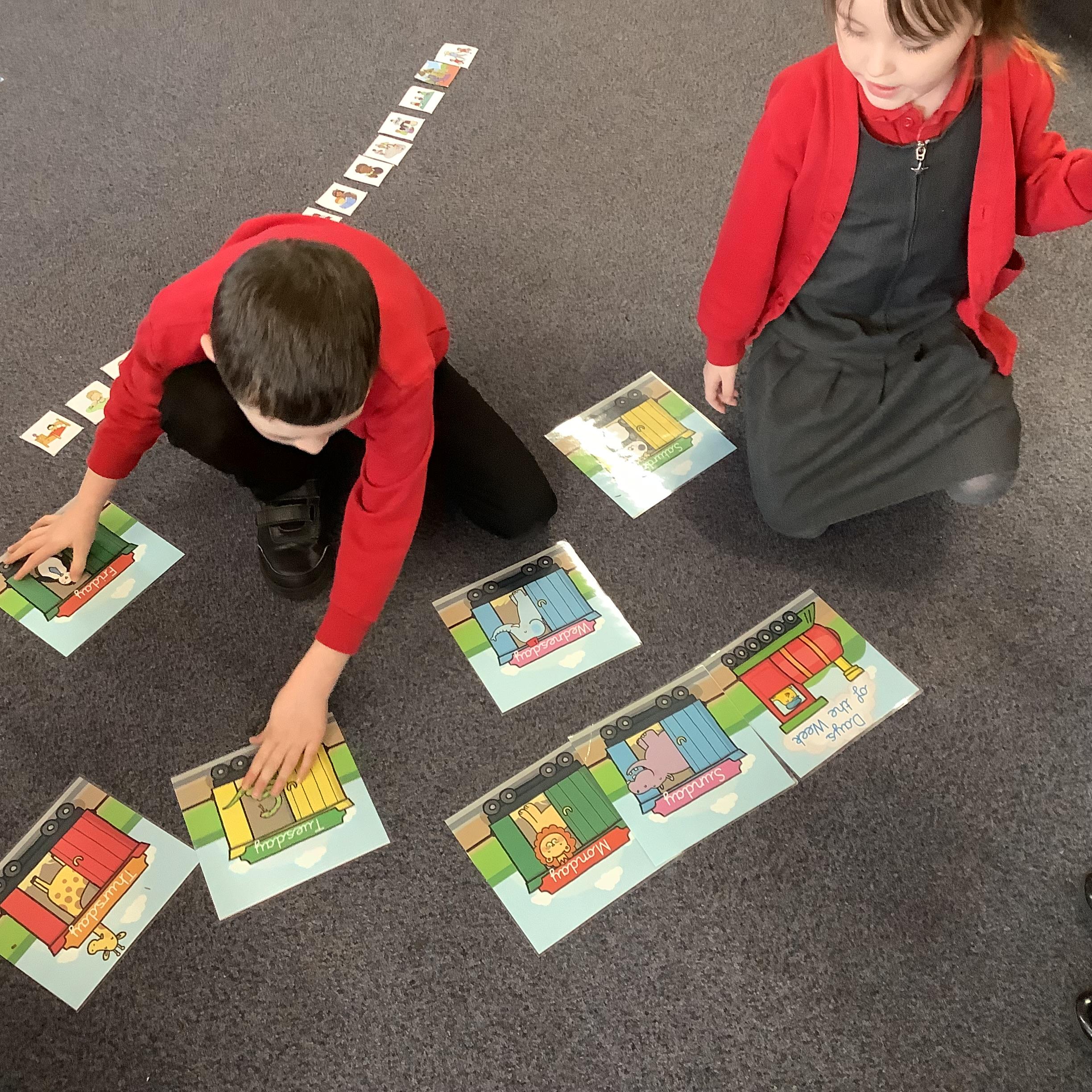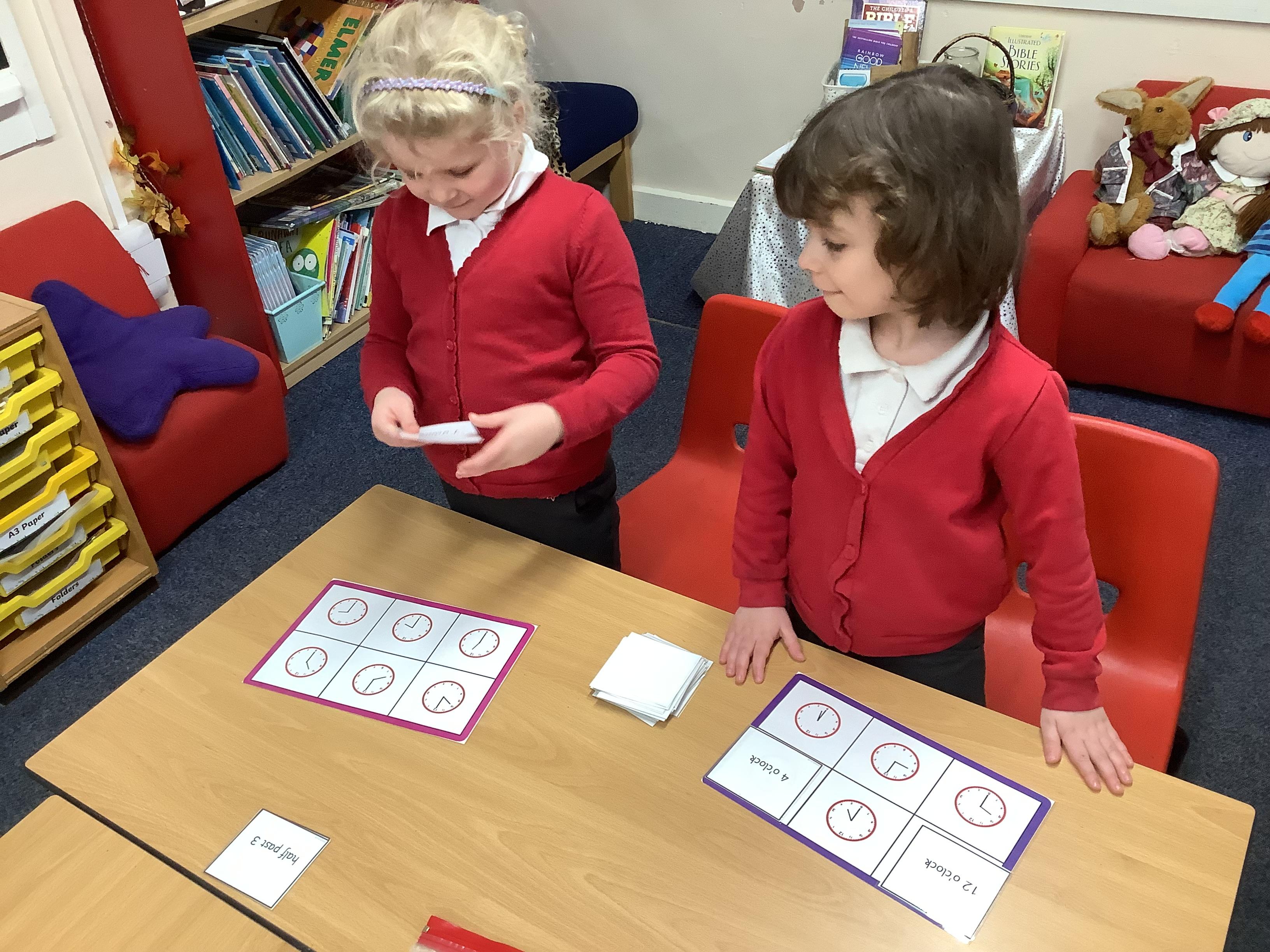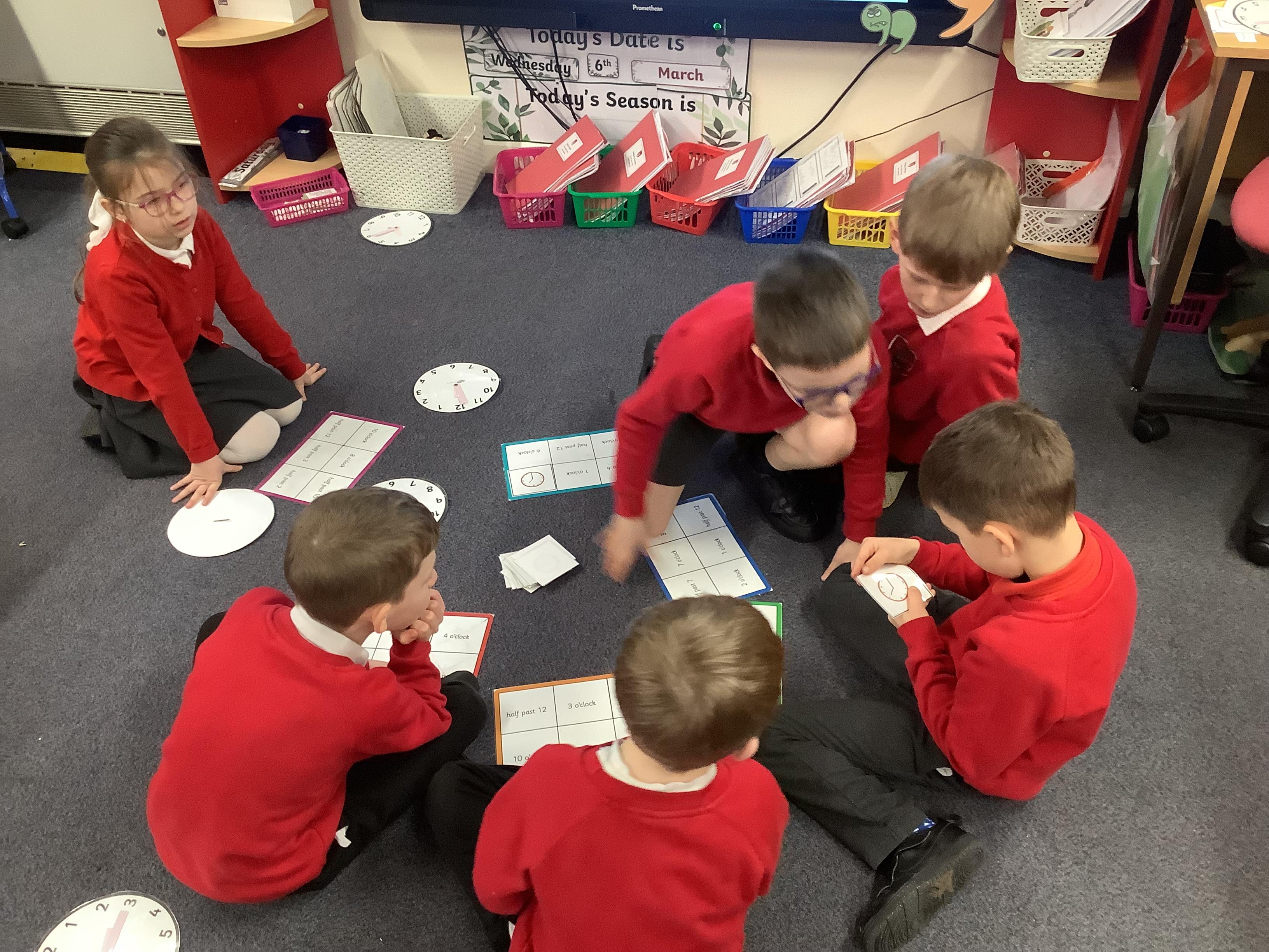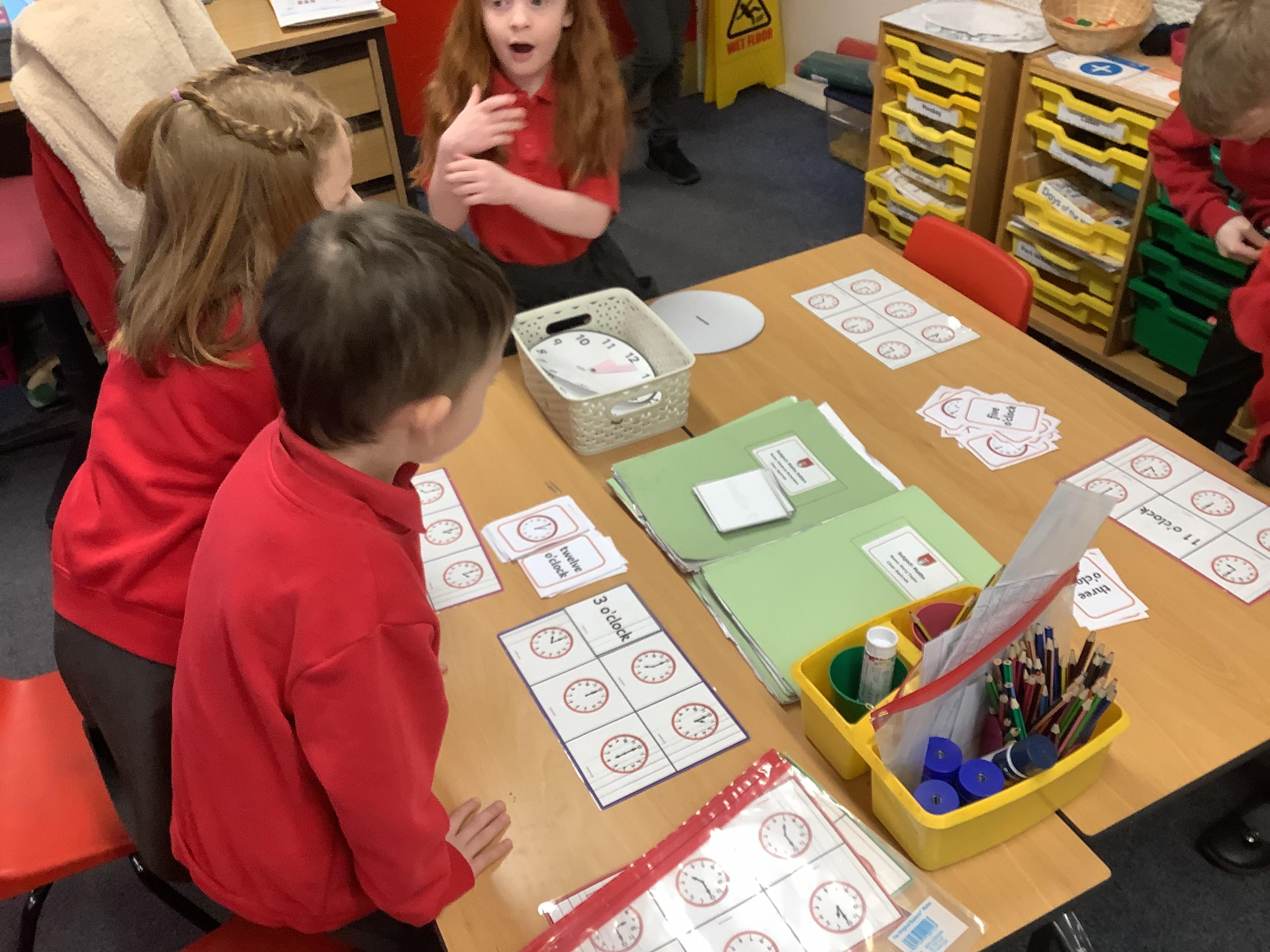 In Maths this week, Year 1 children have been recalling the days of the week and the months of the year. We have then moved onto telling the time to O'clock. Year 2 children have been telling the time to O'clock, half past, quarter past and quarter to.