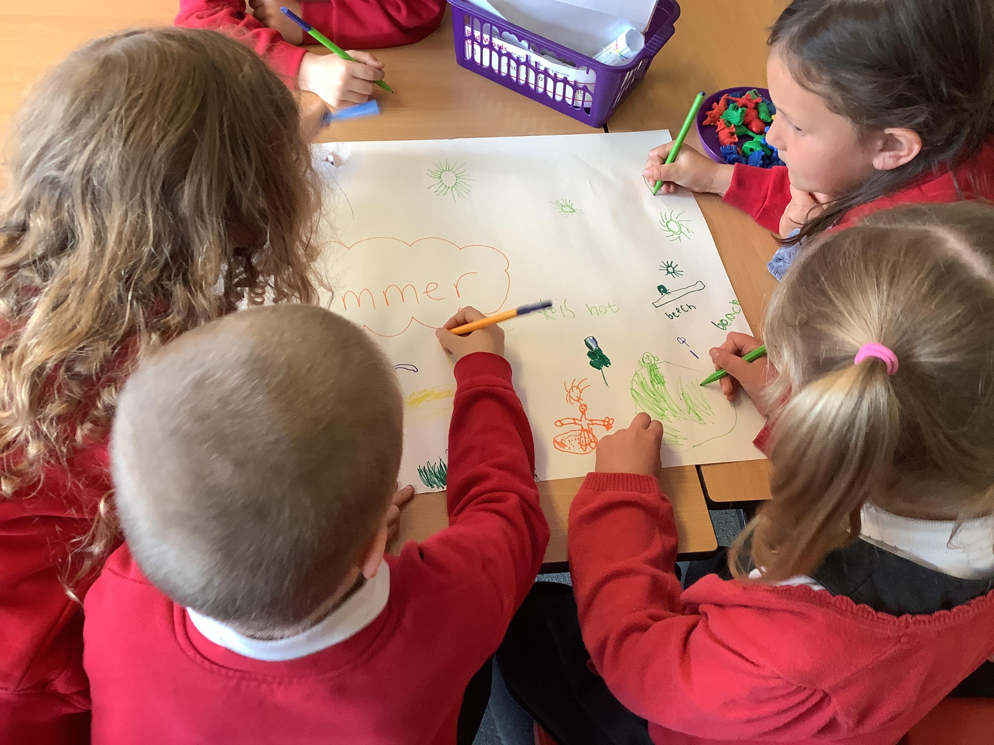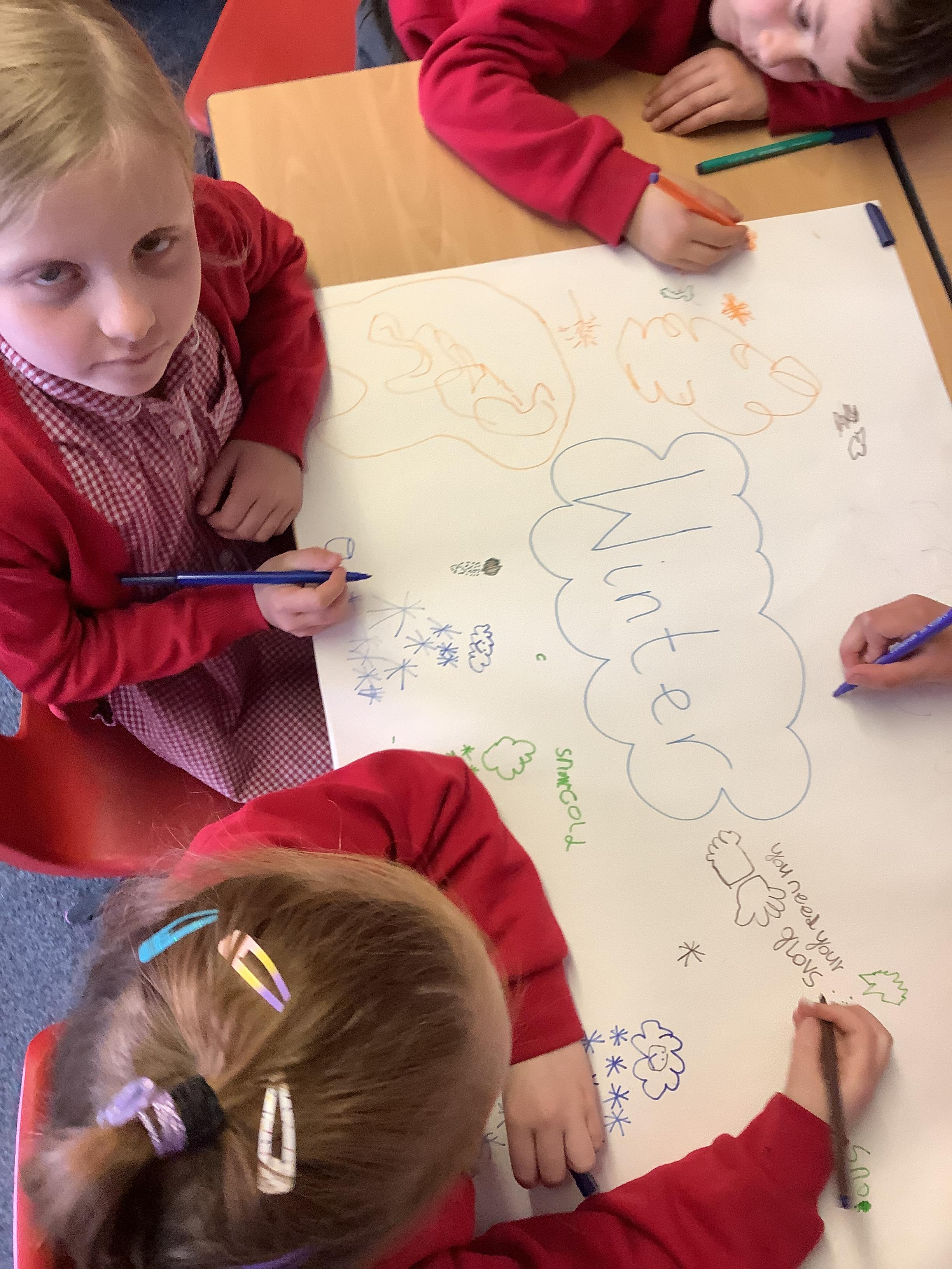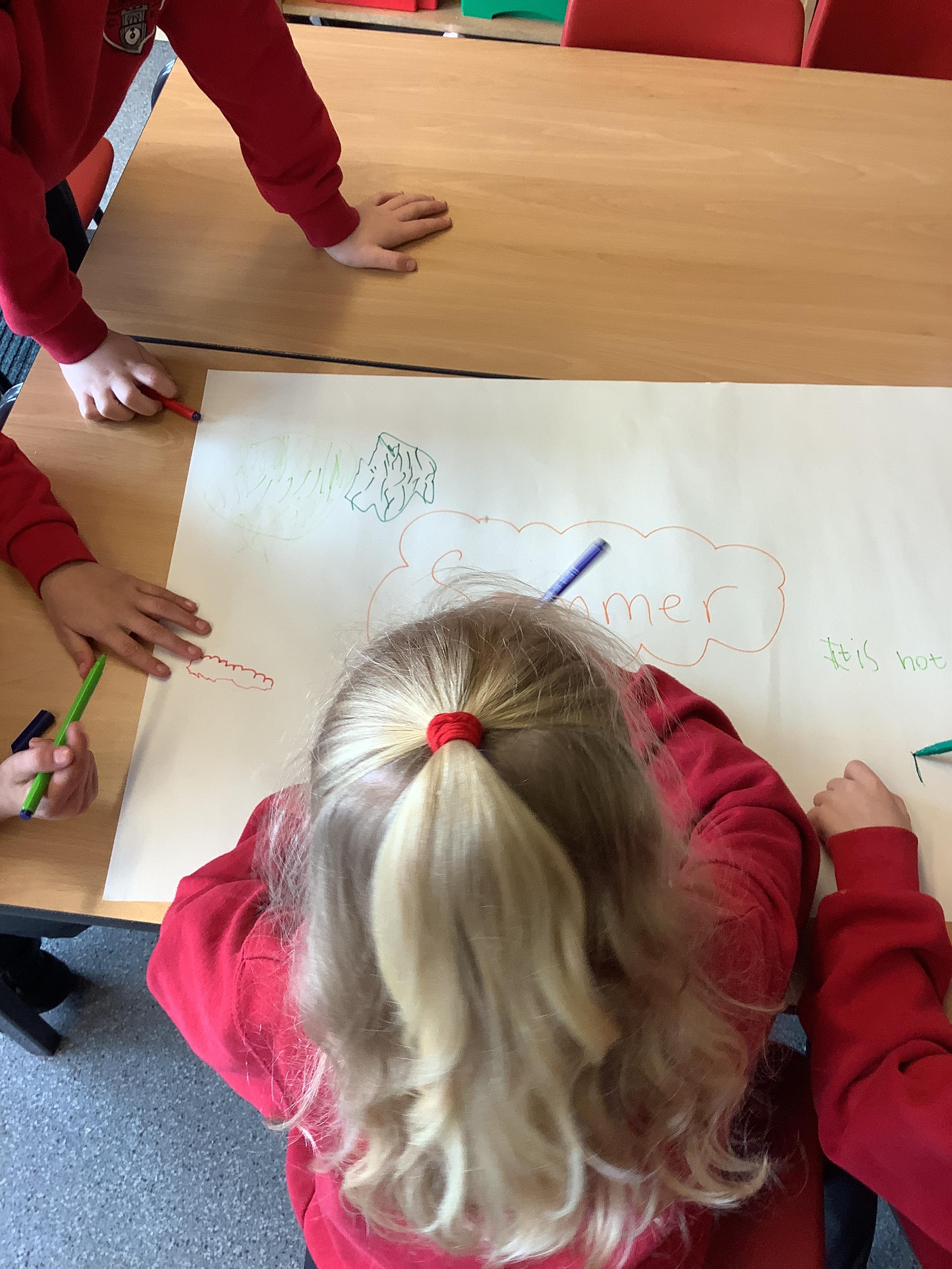 In Science we explored each season, talking about what we can do in each season and what happens in each season. We looked at the weather for each season too. We worked in groups and all had a turn to discuss each season.