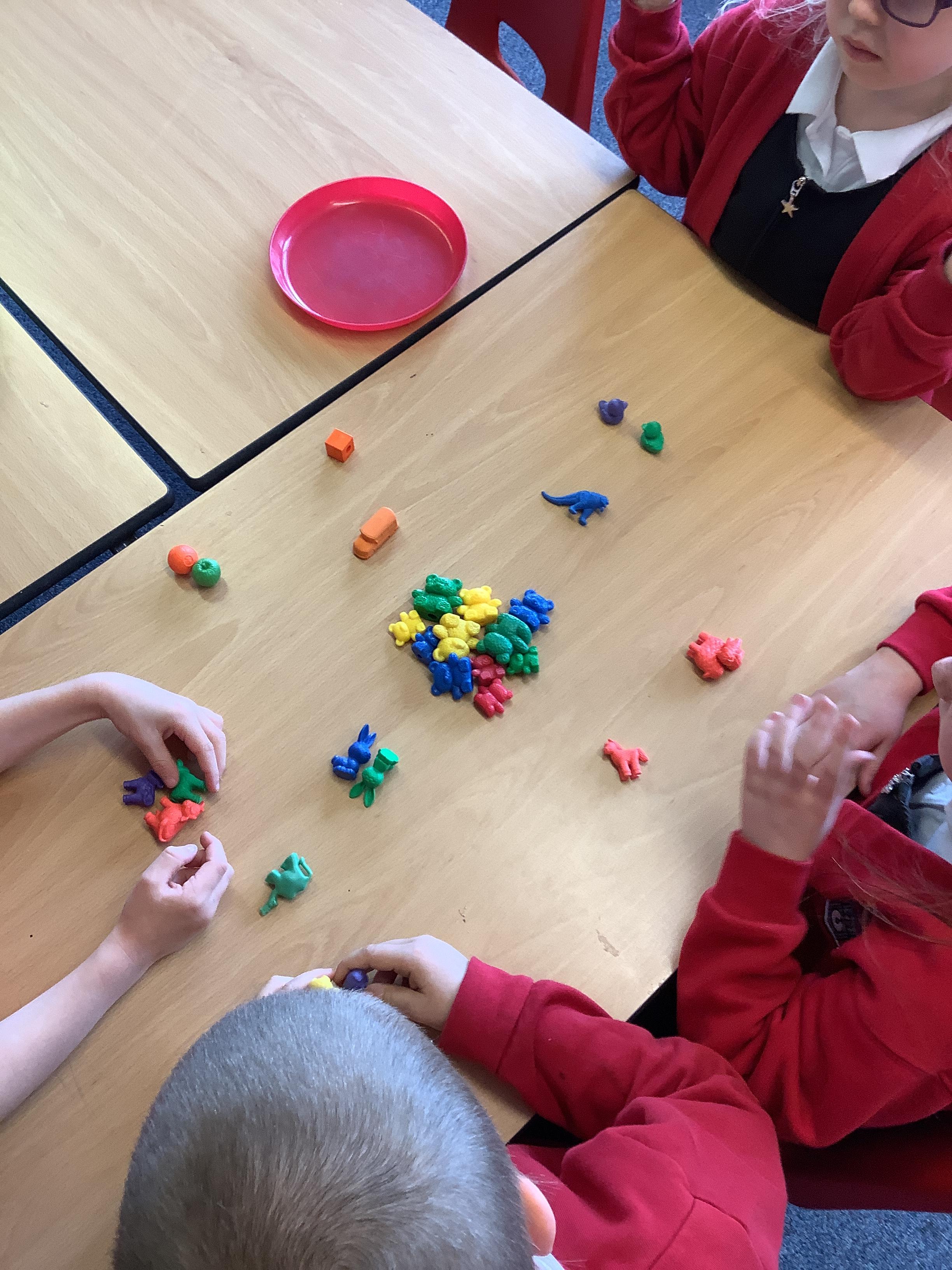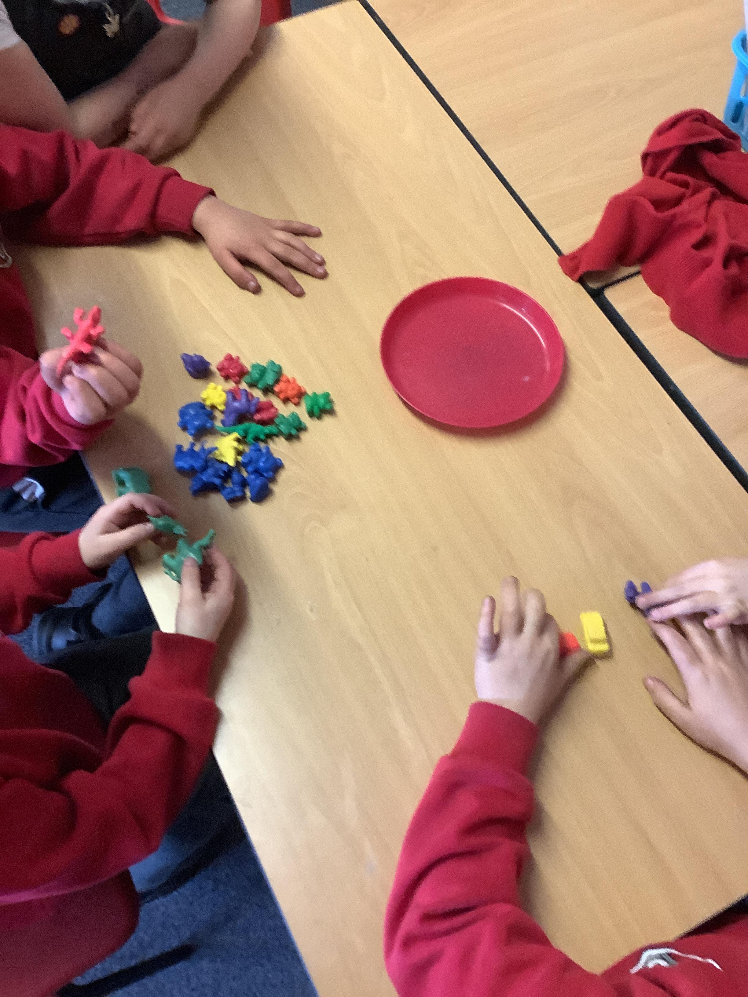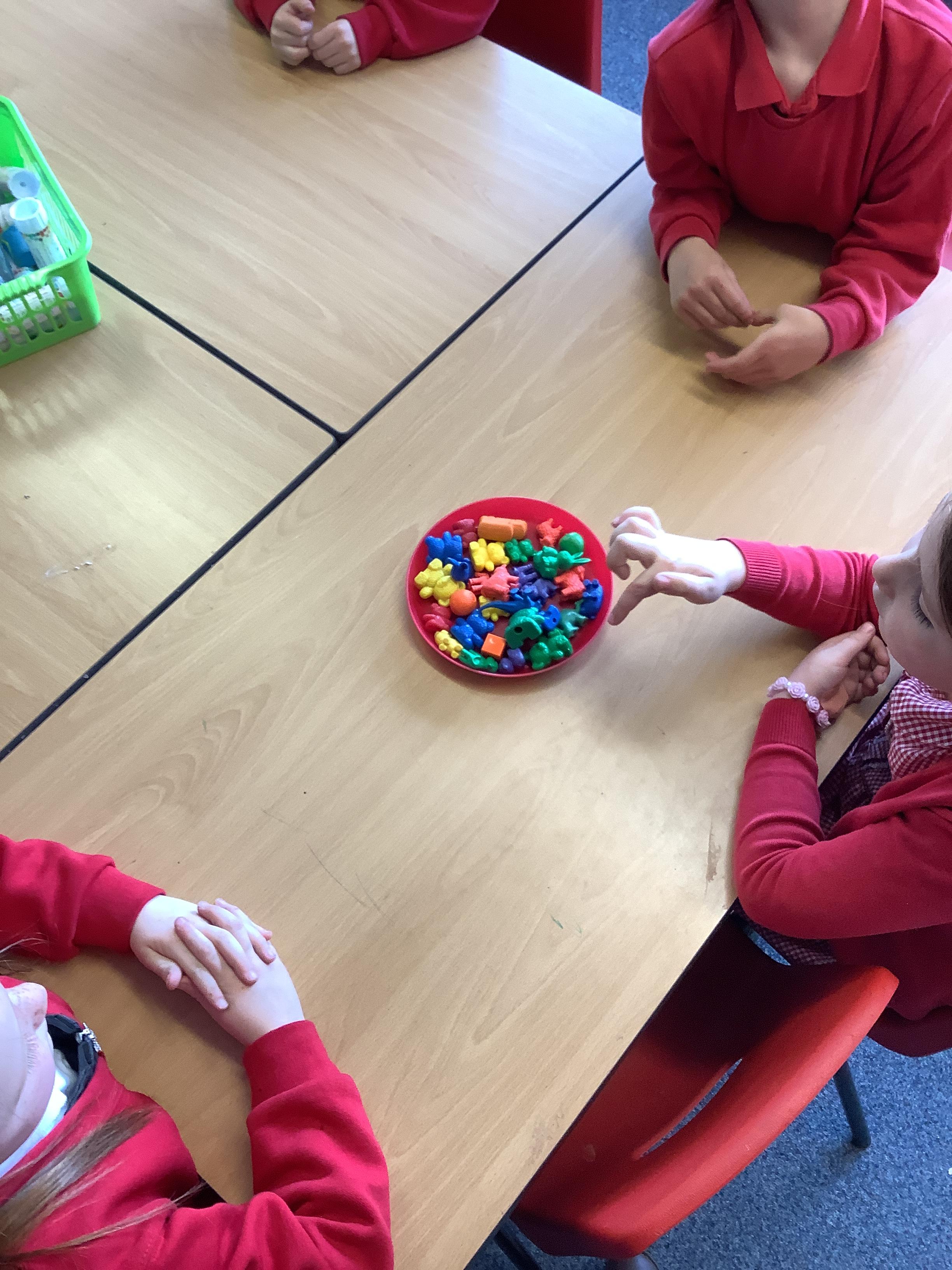 In computing we explored grouping and counting. We weren't allowed to touch a dish of objects to count them and we couldn't agree on how many altogether. Then we grouped them, so of us grouped by colour and some of us grouped by type. This made it much easier to count the objects.