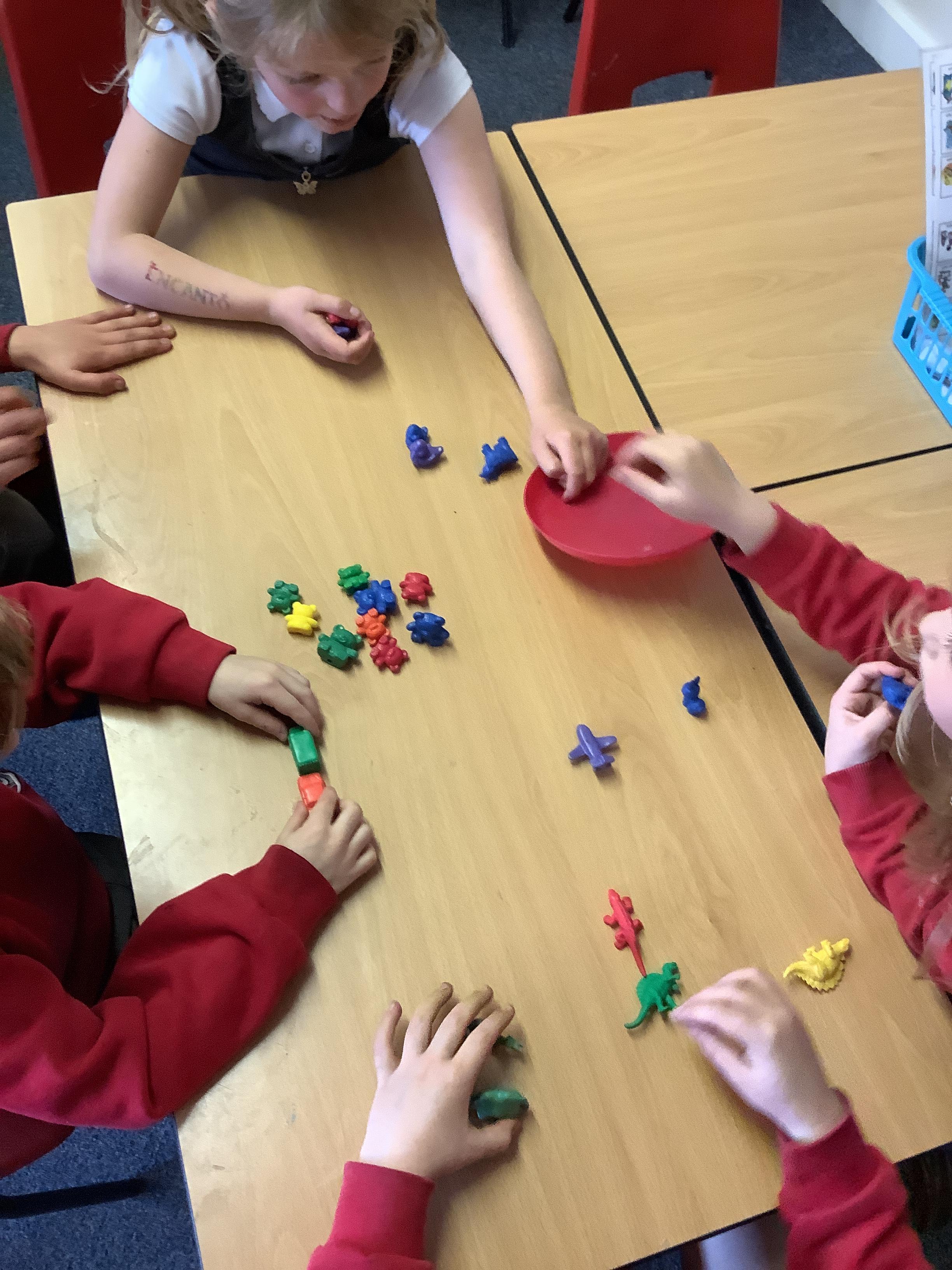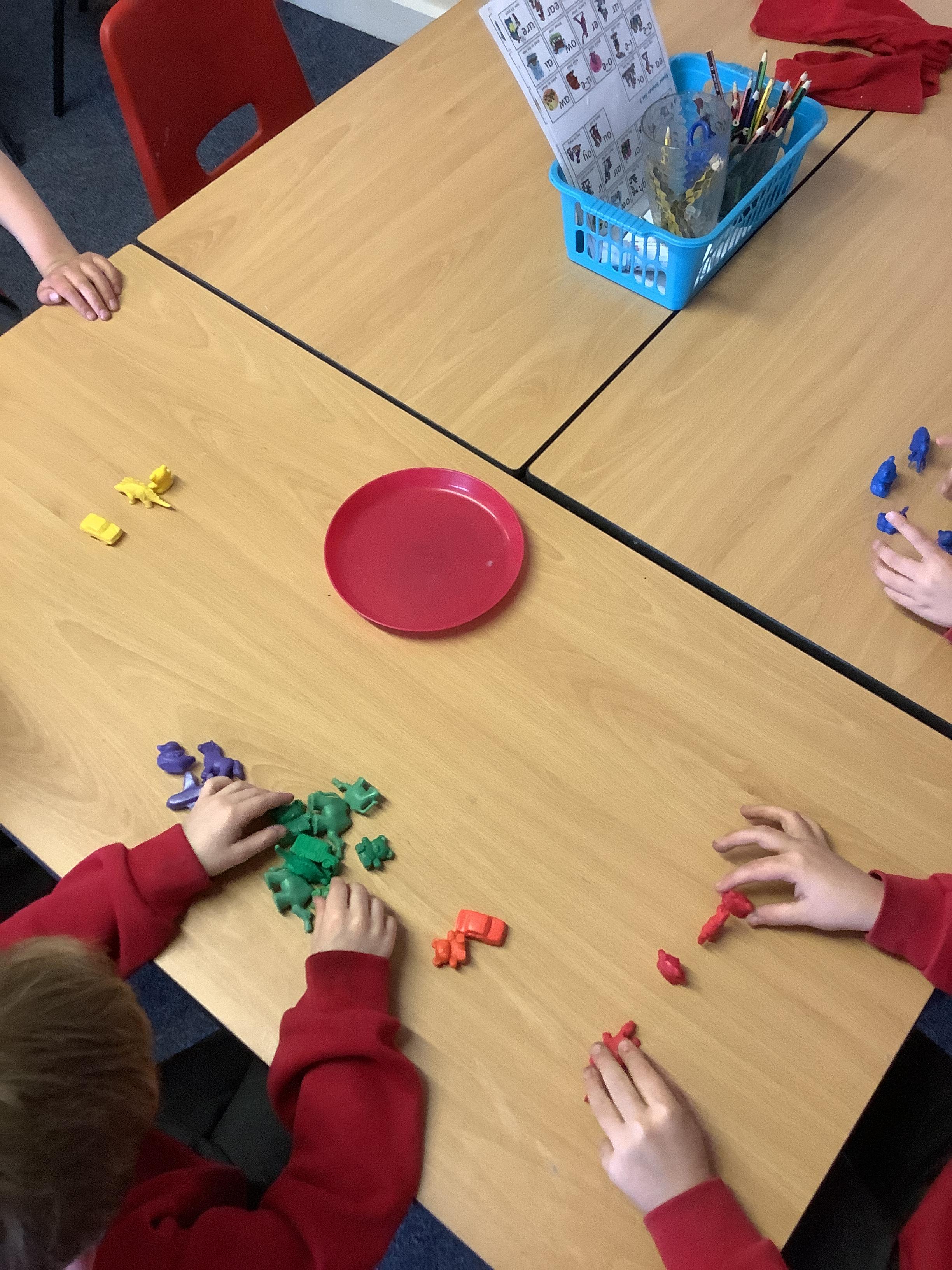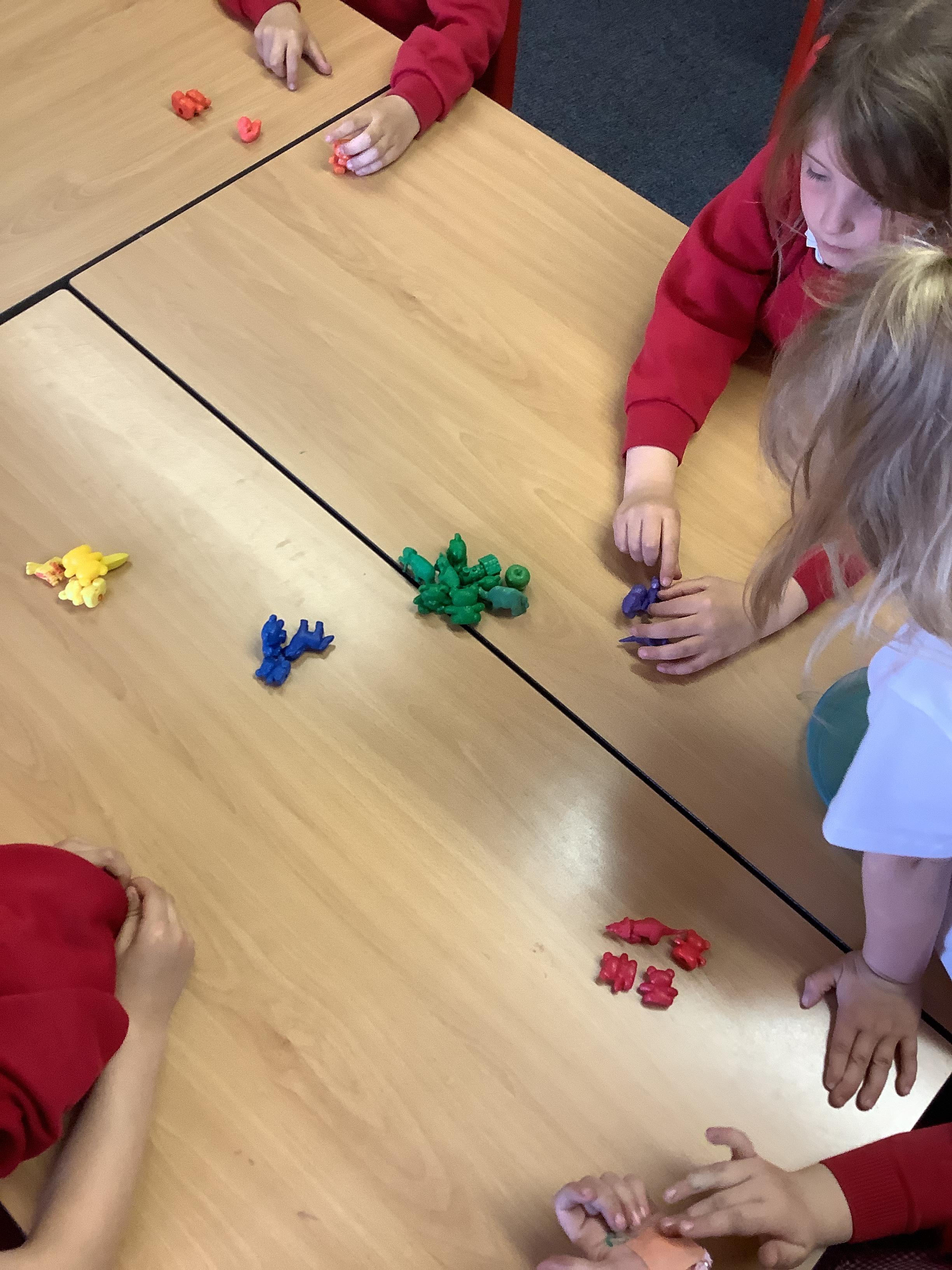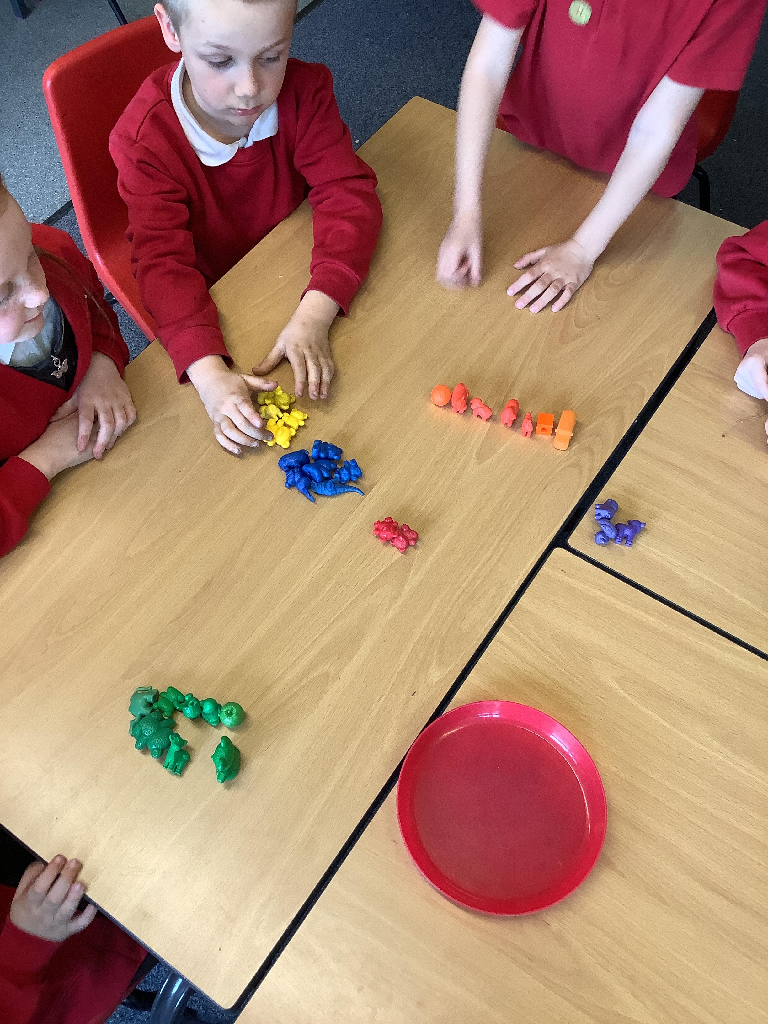 In computing we explored grouping and counting. We weren't allowed to touch a dish of objects to count them and we couldn't agree on how many altogether. Then we grouped them, so of us grouped by colour and some of us grouped by type. This made it much easier to count the objects.