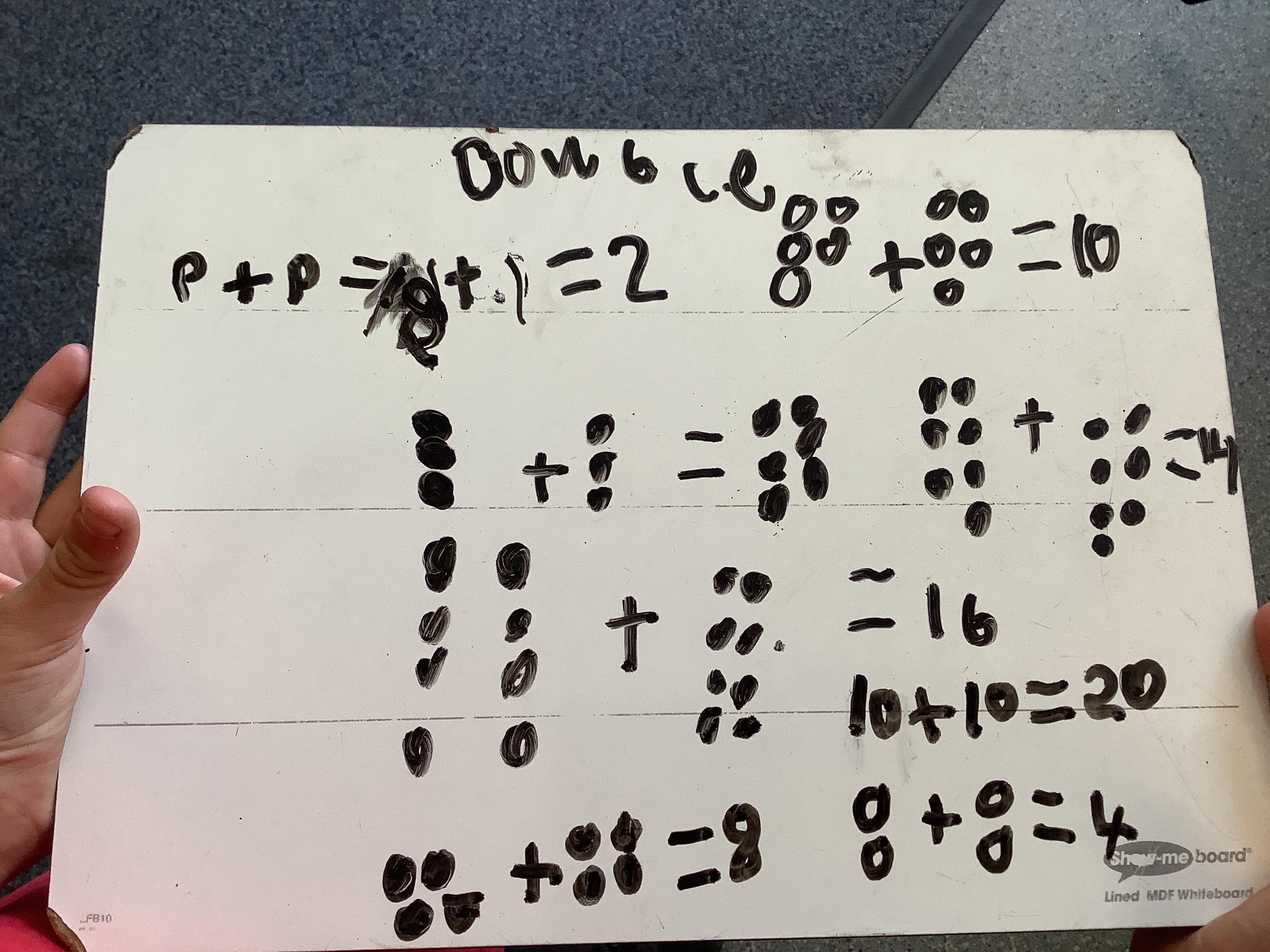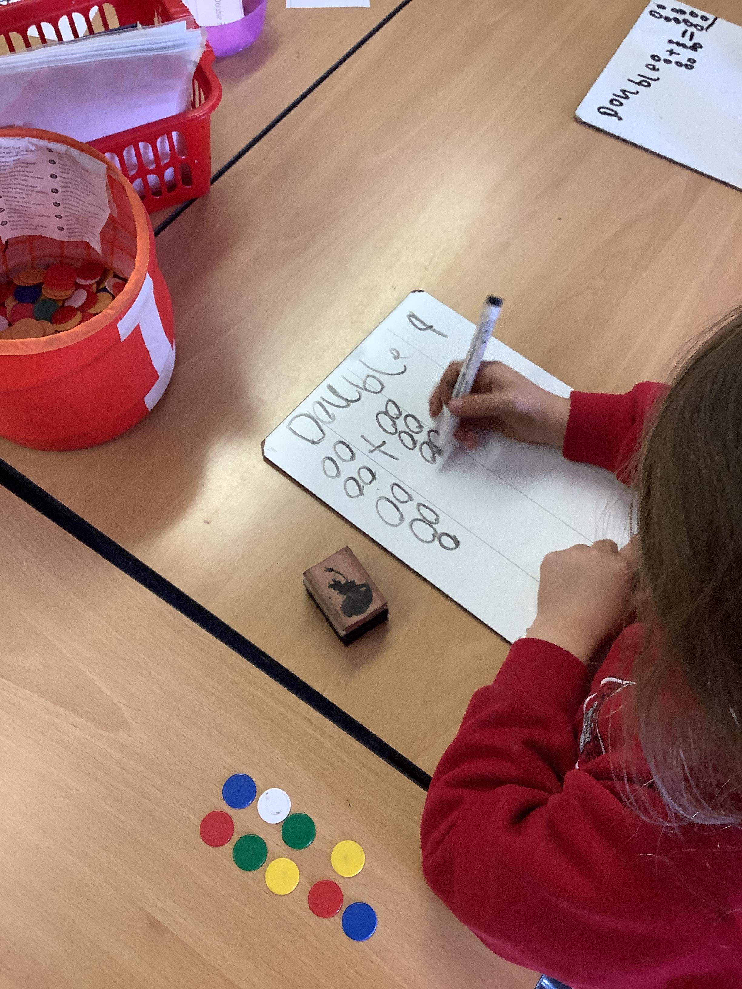 In Maths we have started to look at doubling numbers to 20. Today we used practical equipment to find our doubles.