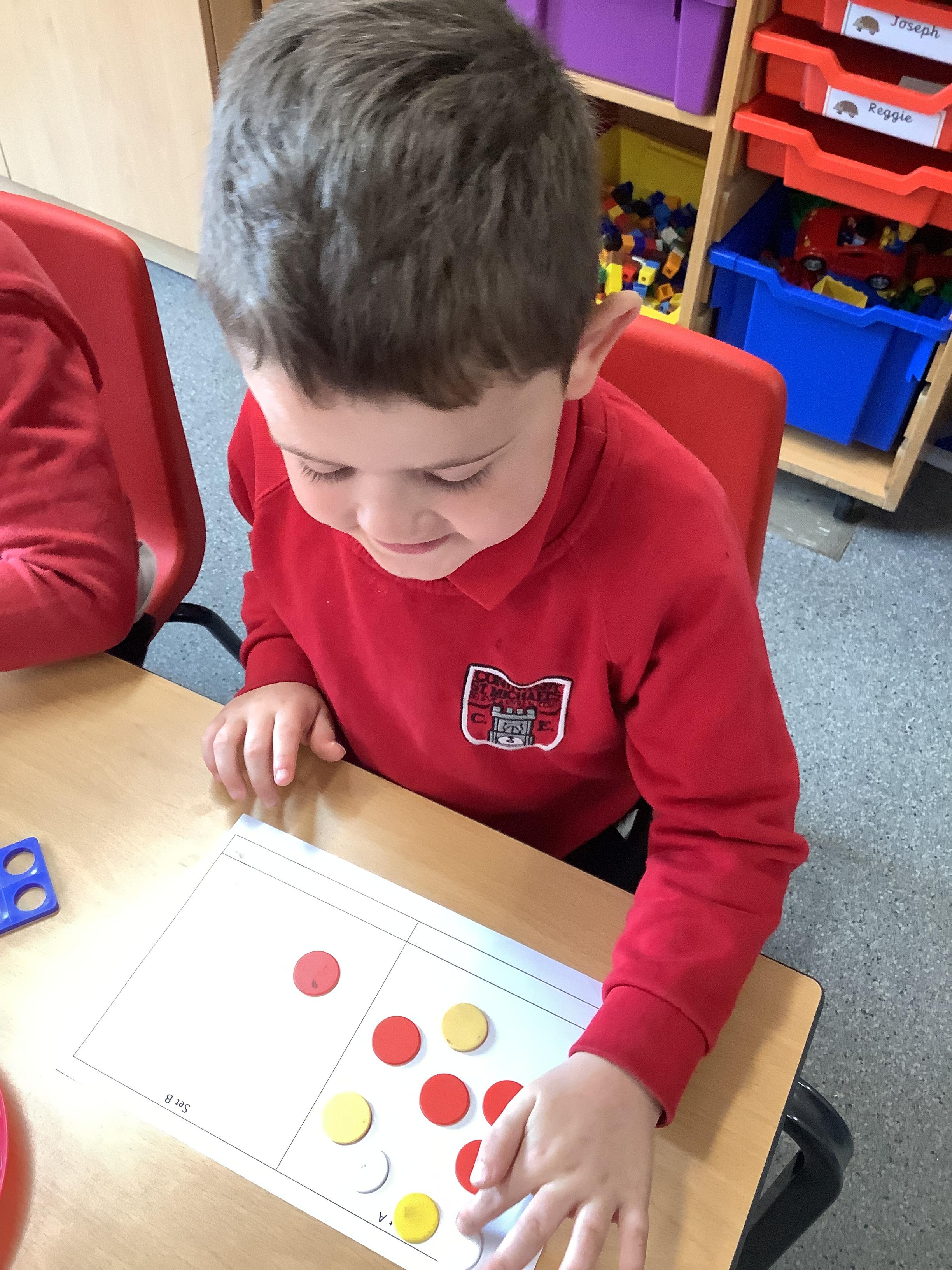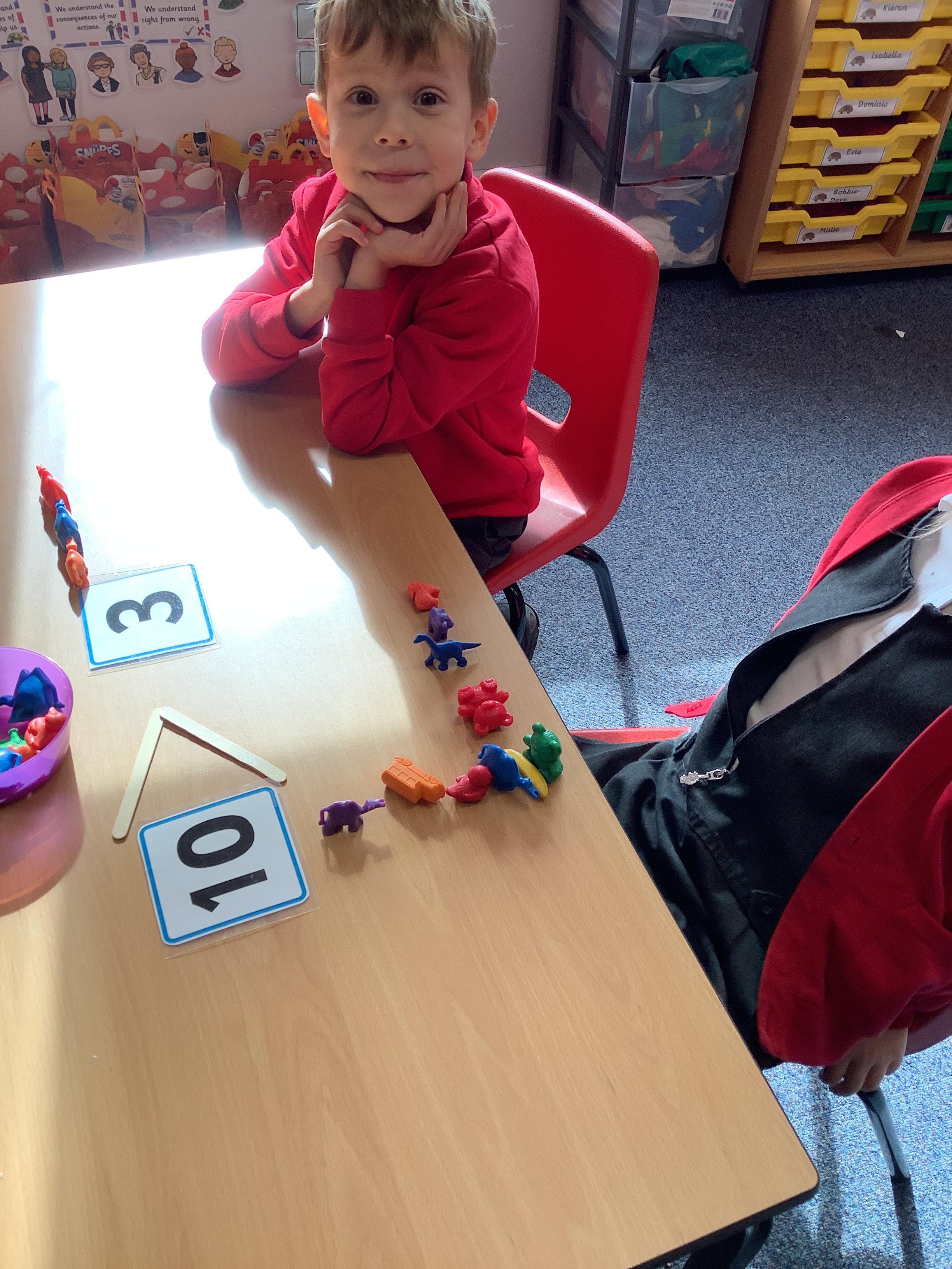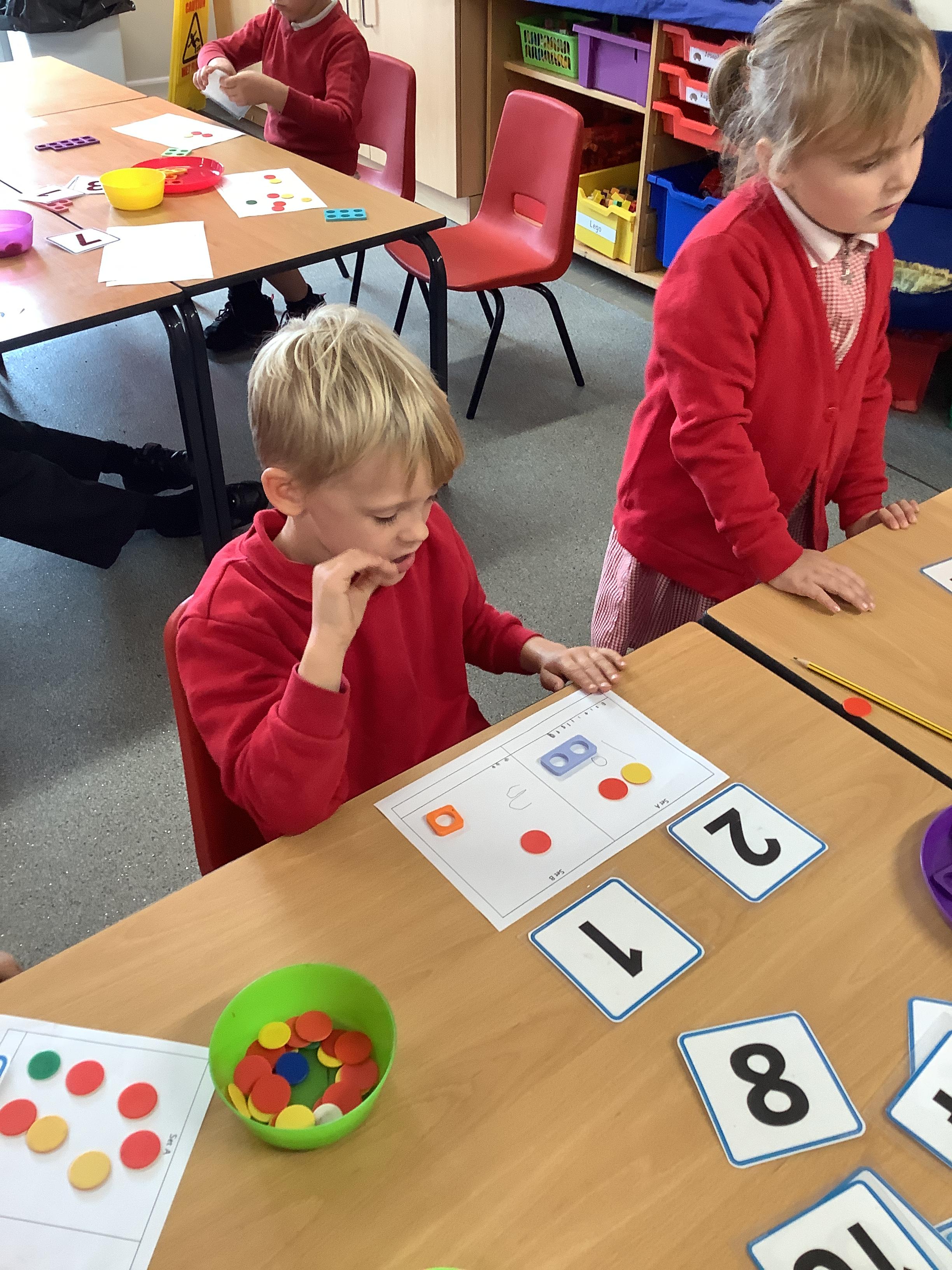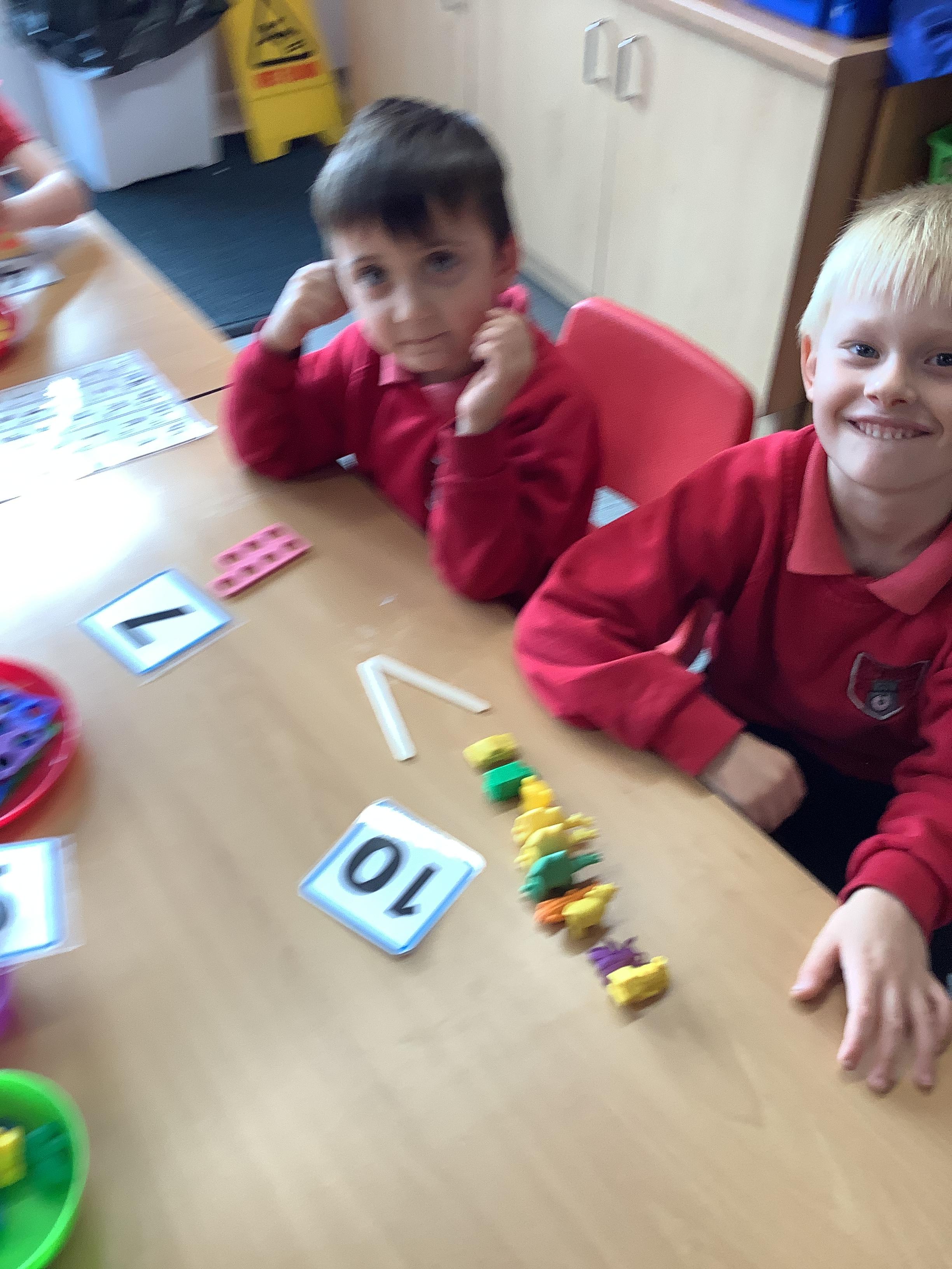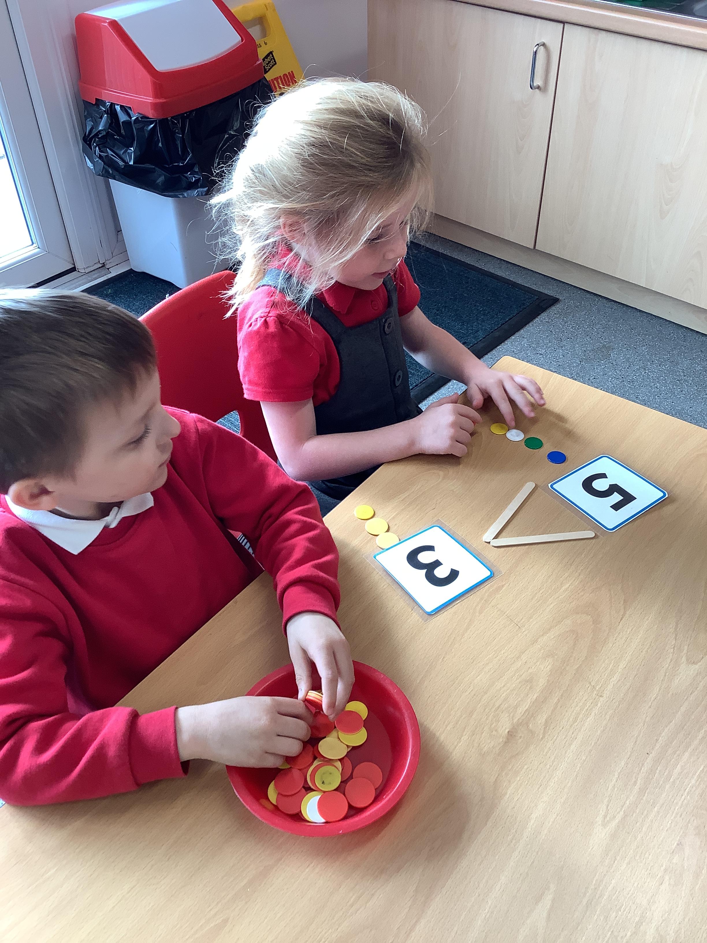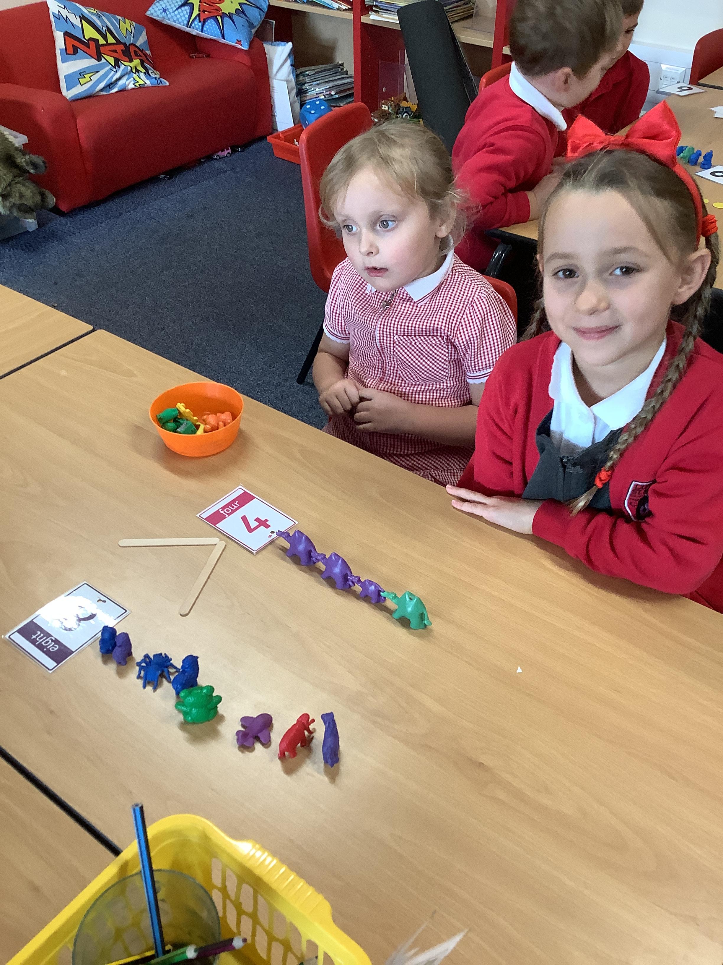 In maths we compared numbers. We used counters and pictures to check which numbers were greater than and less than.