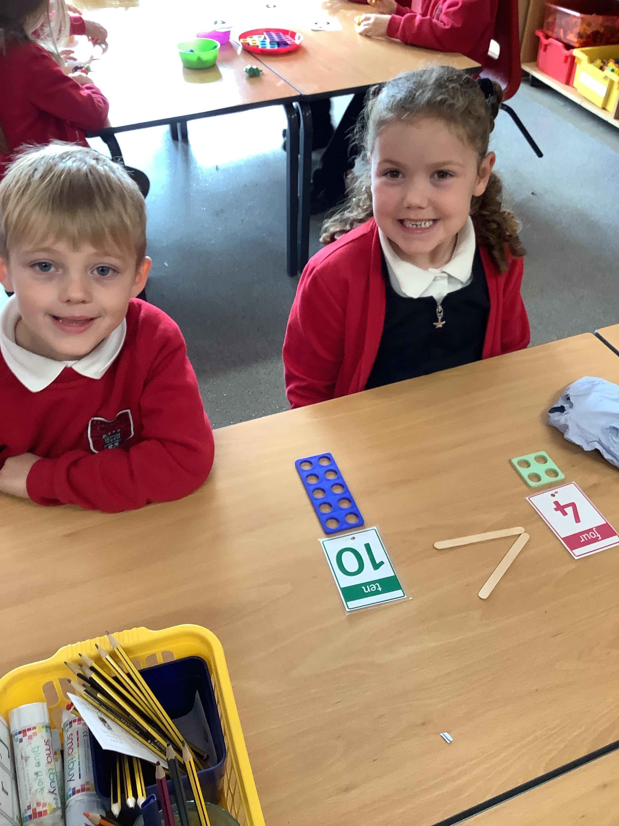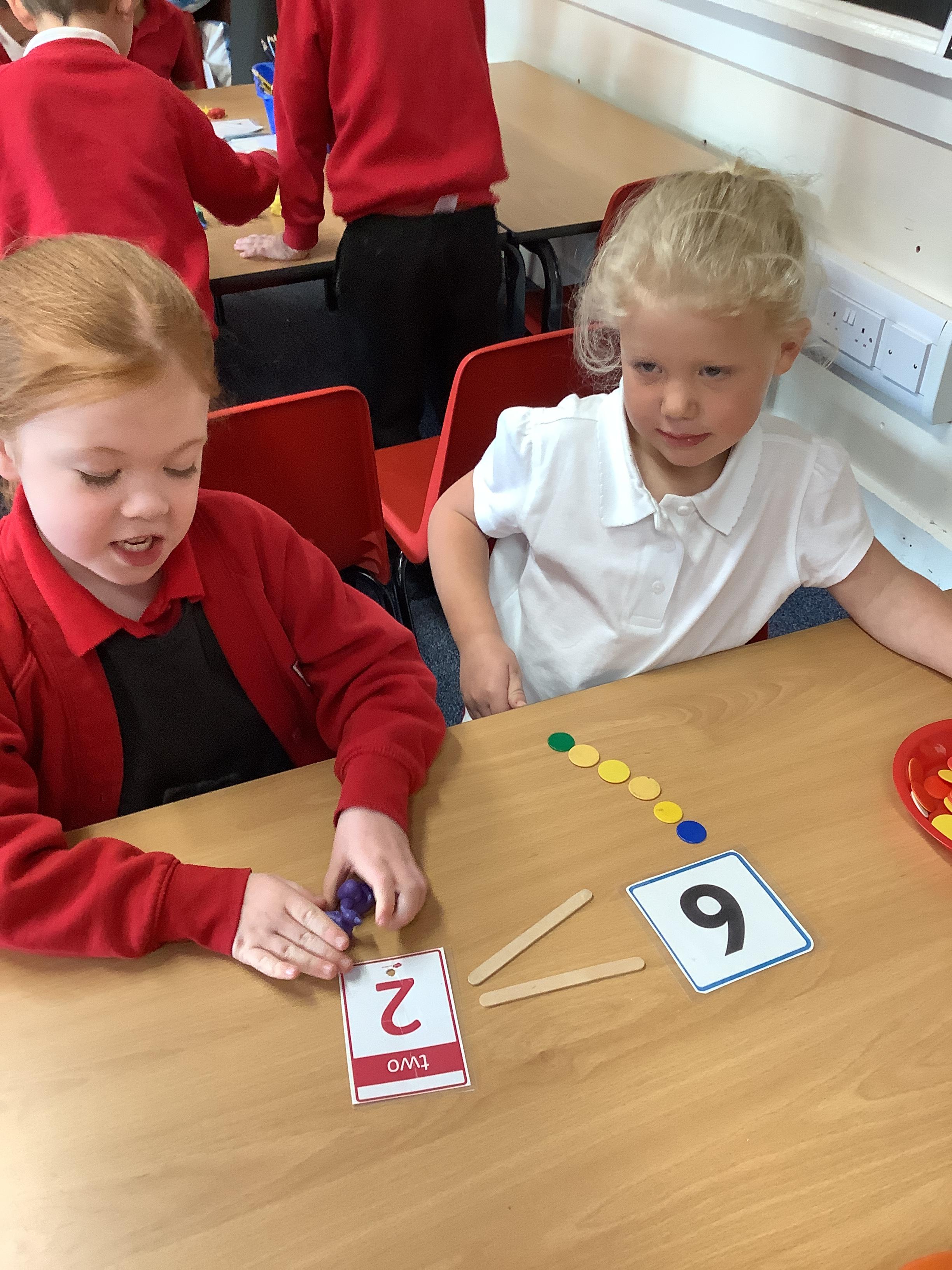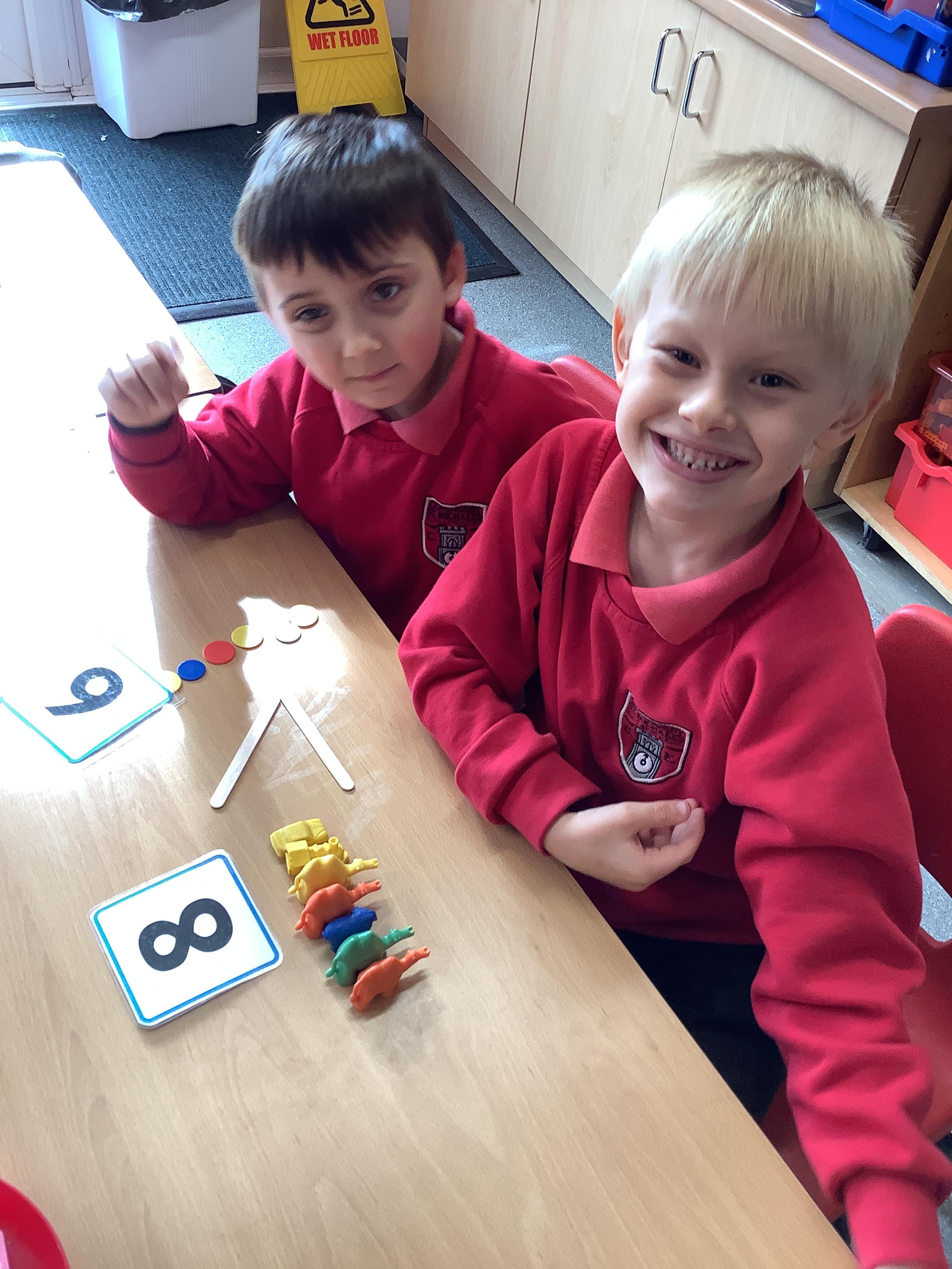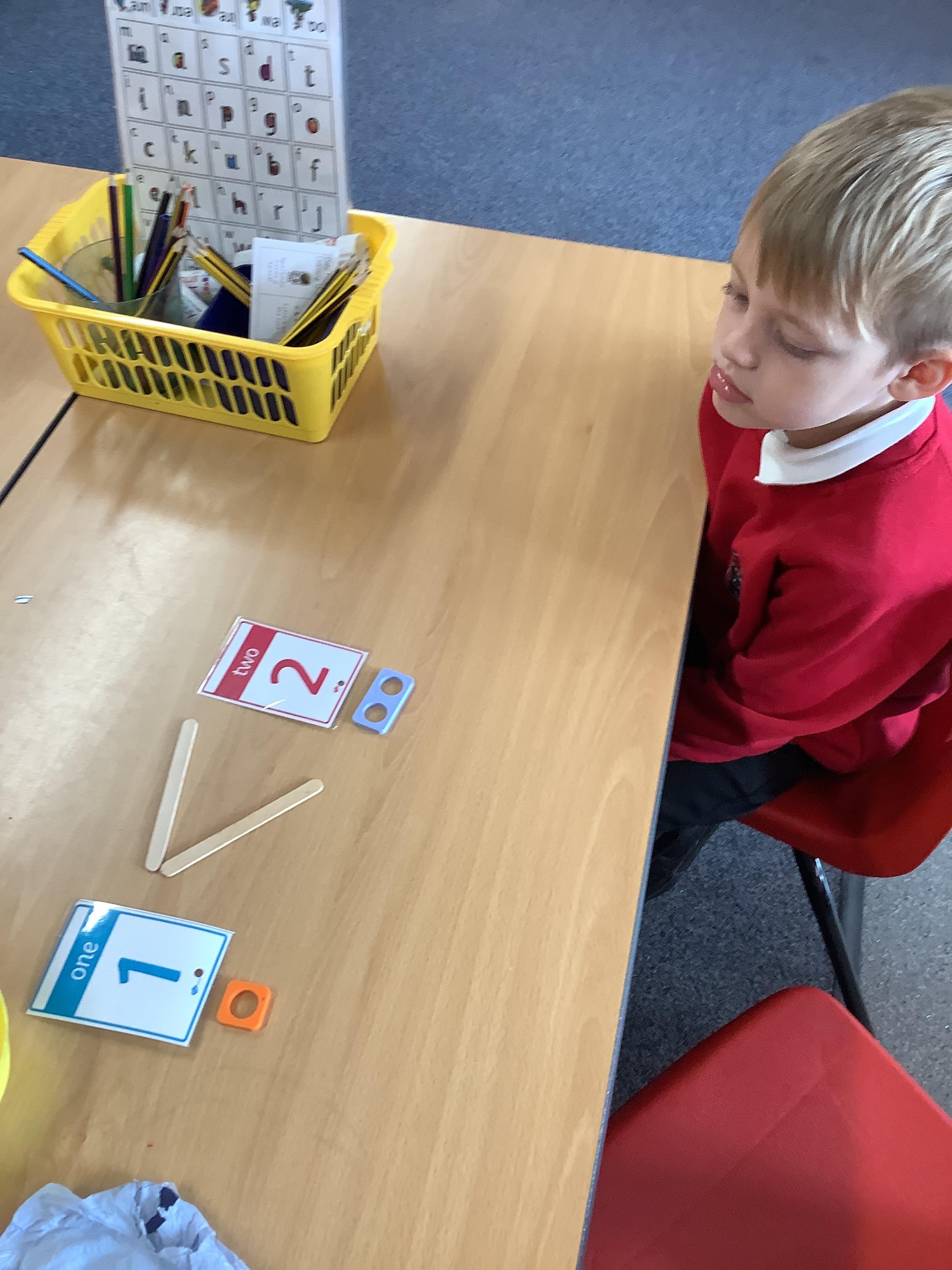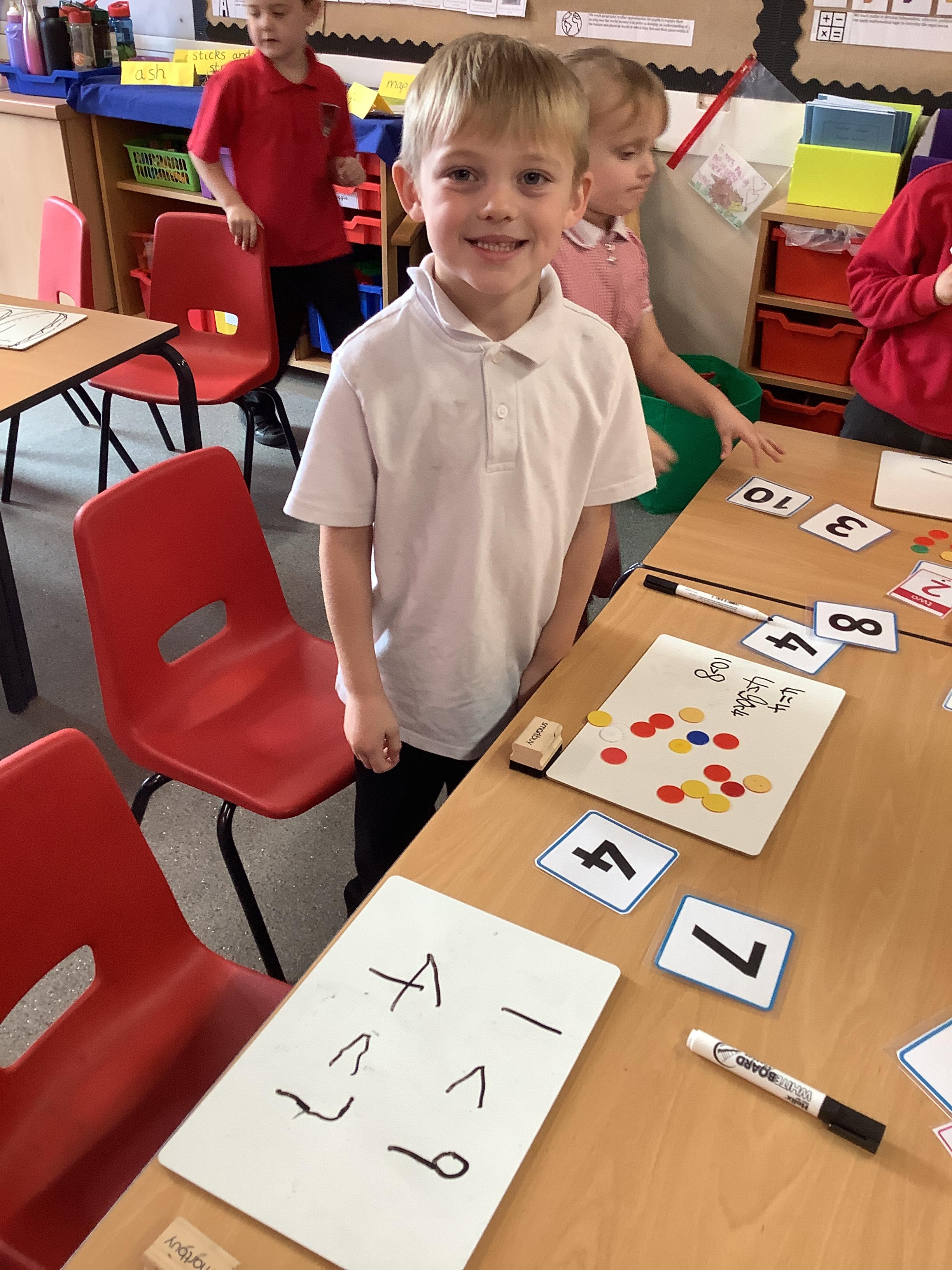 In maths we compared numbers. We used counters and pictures to check which numbers were greater than and less than.