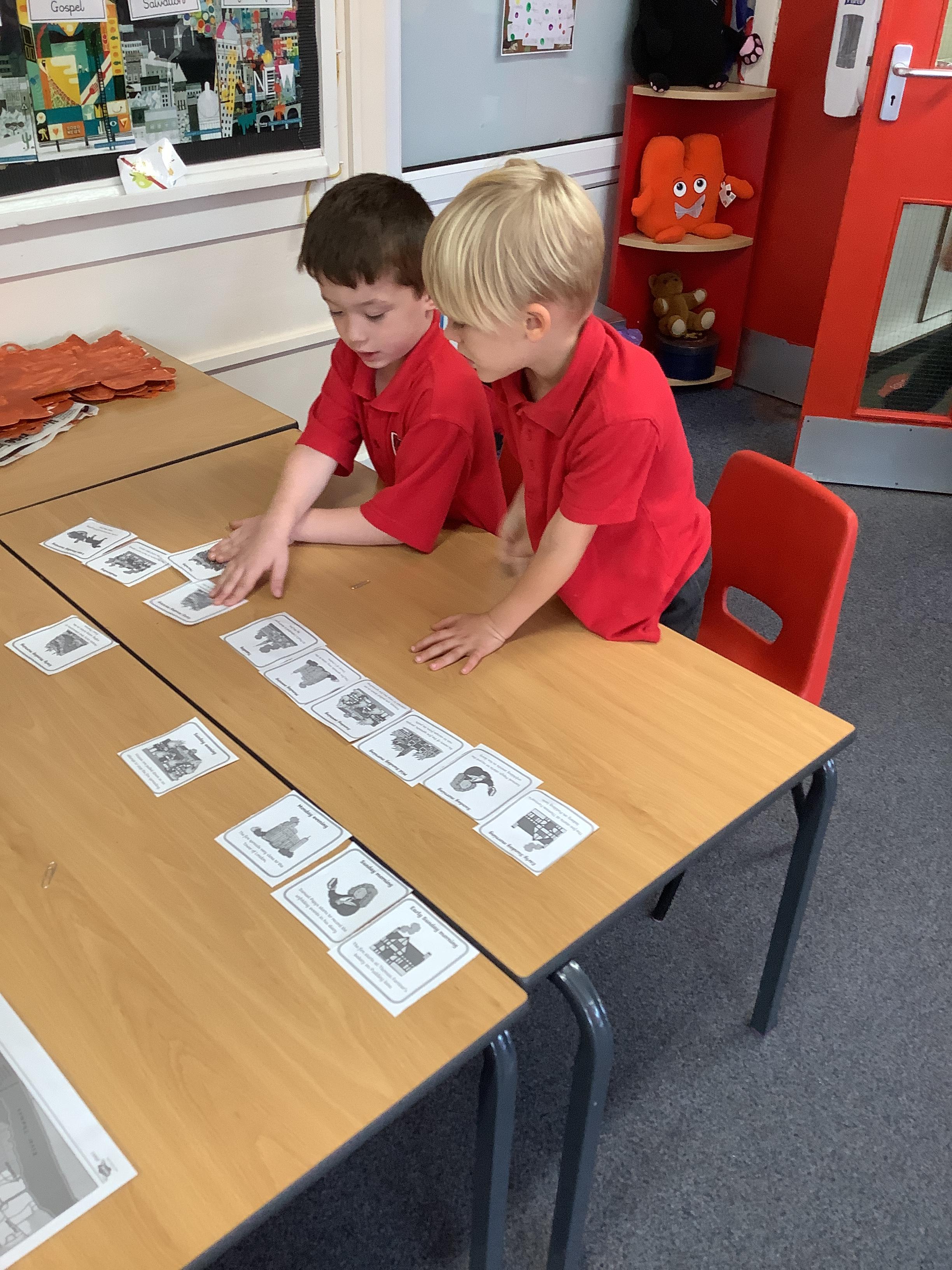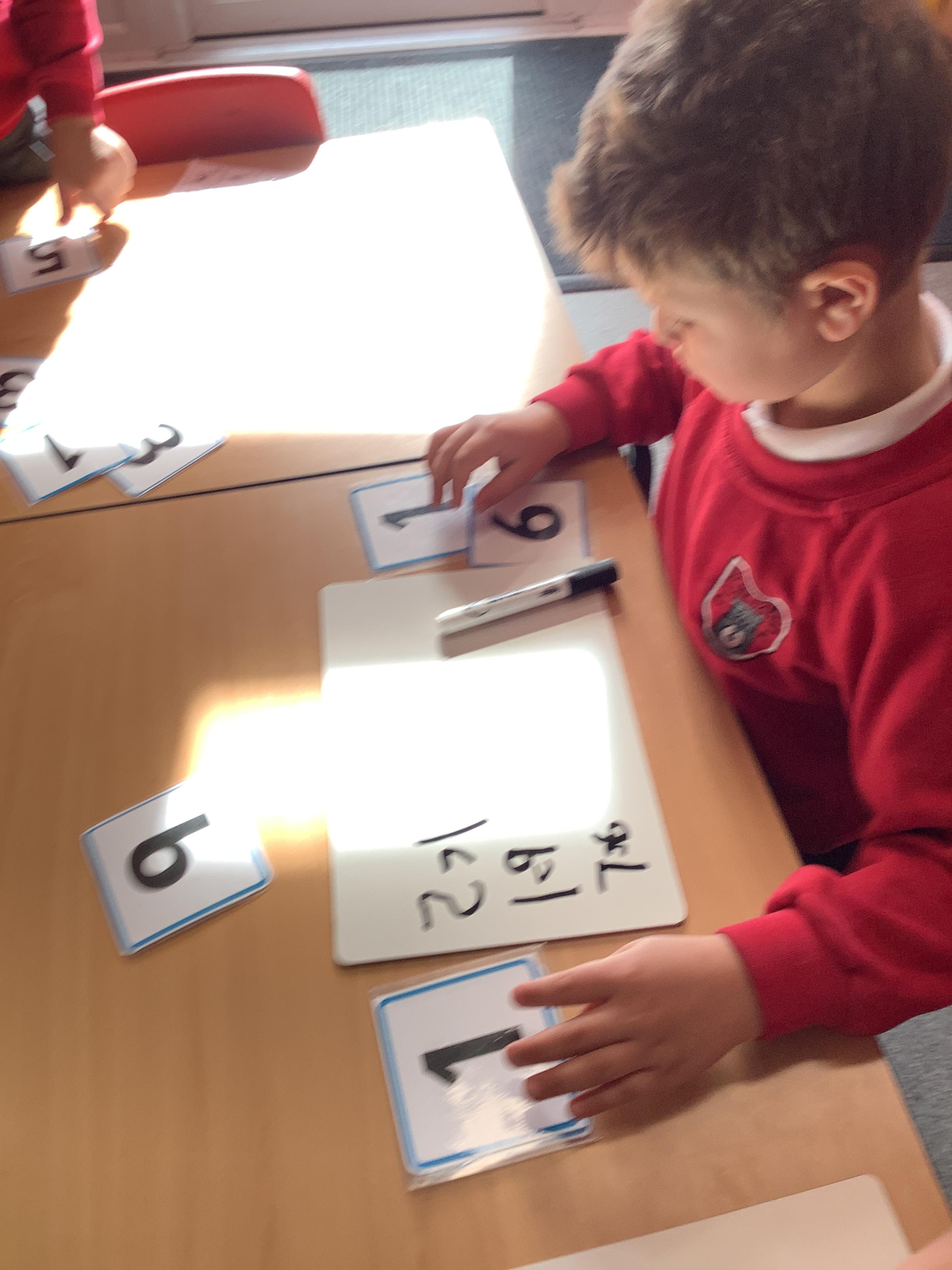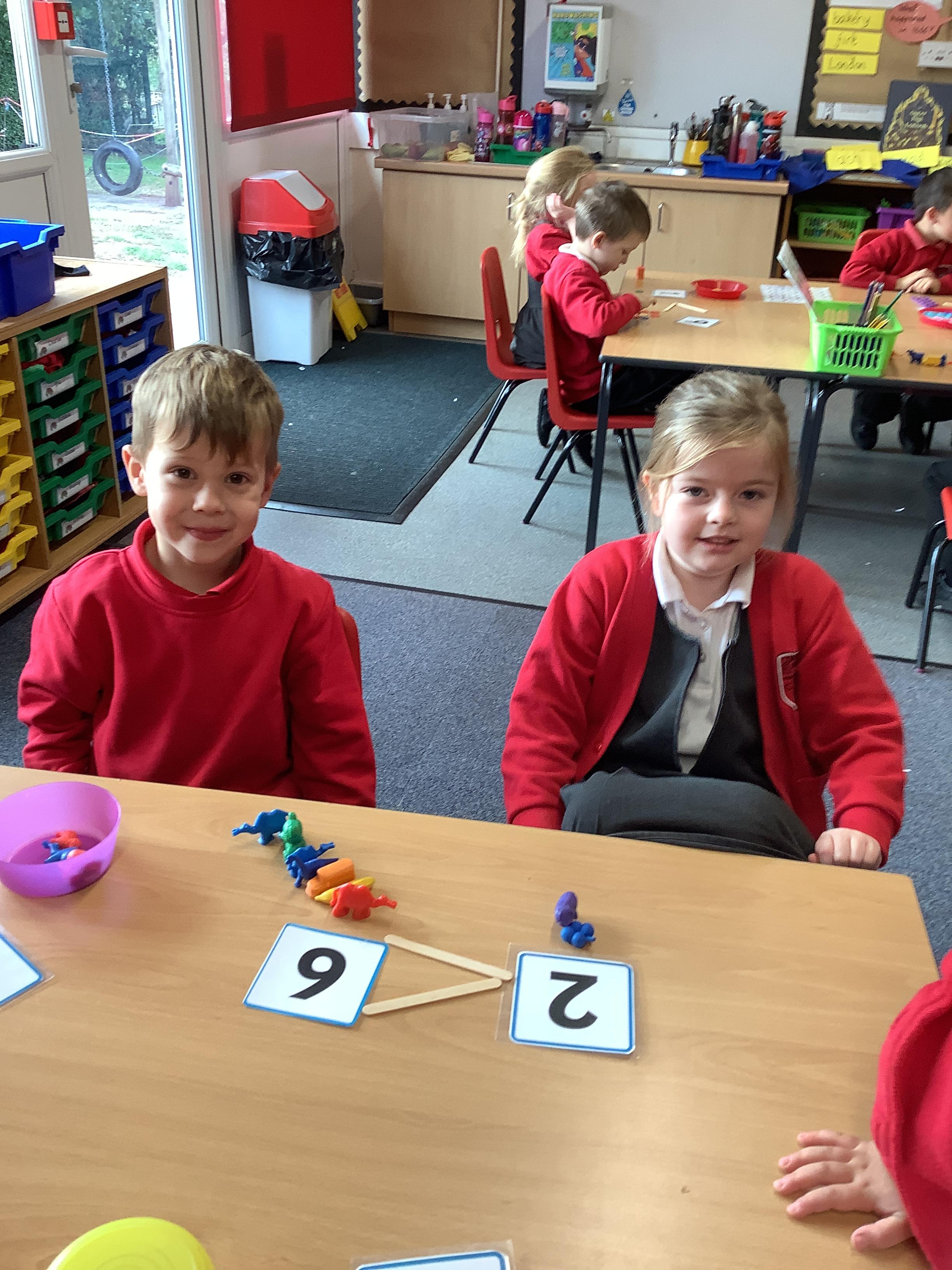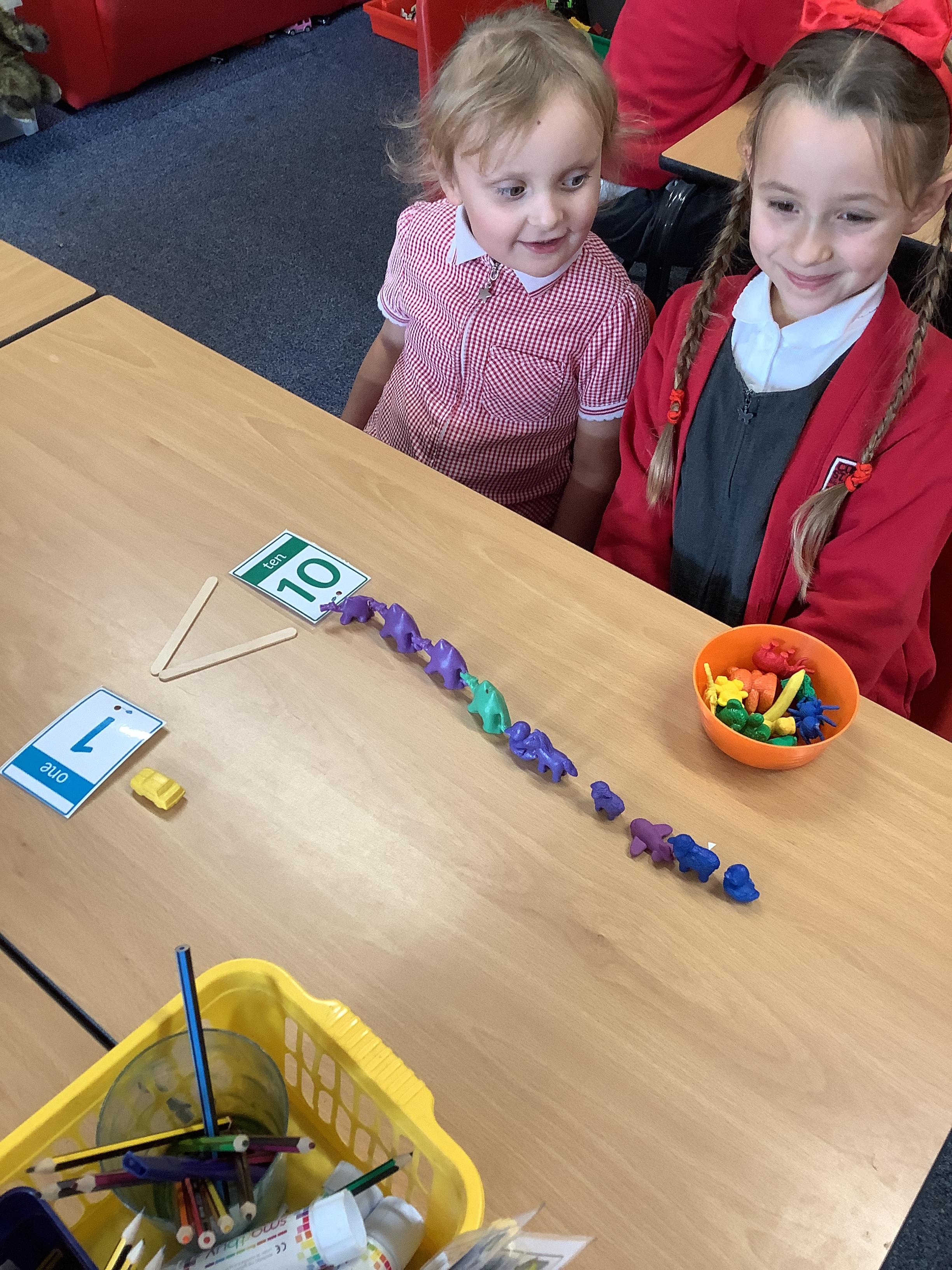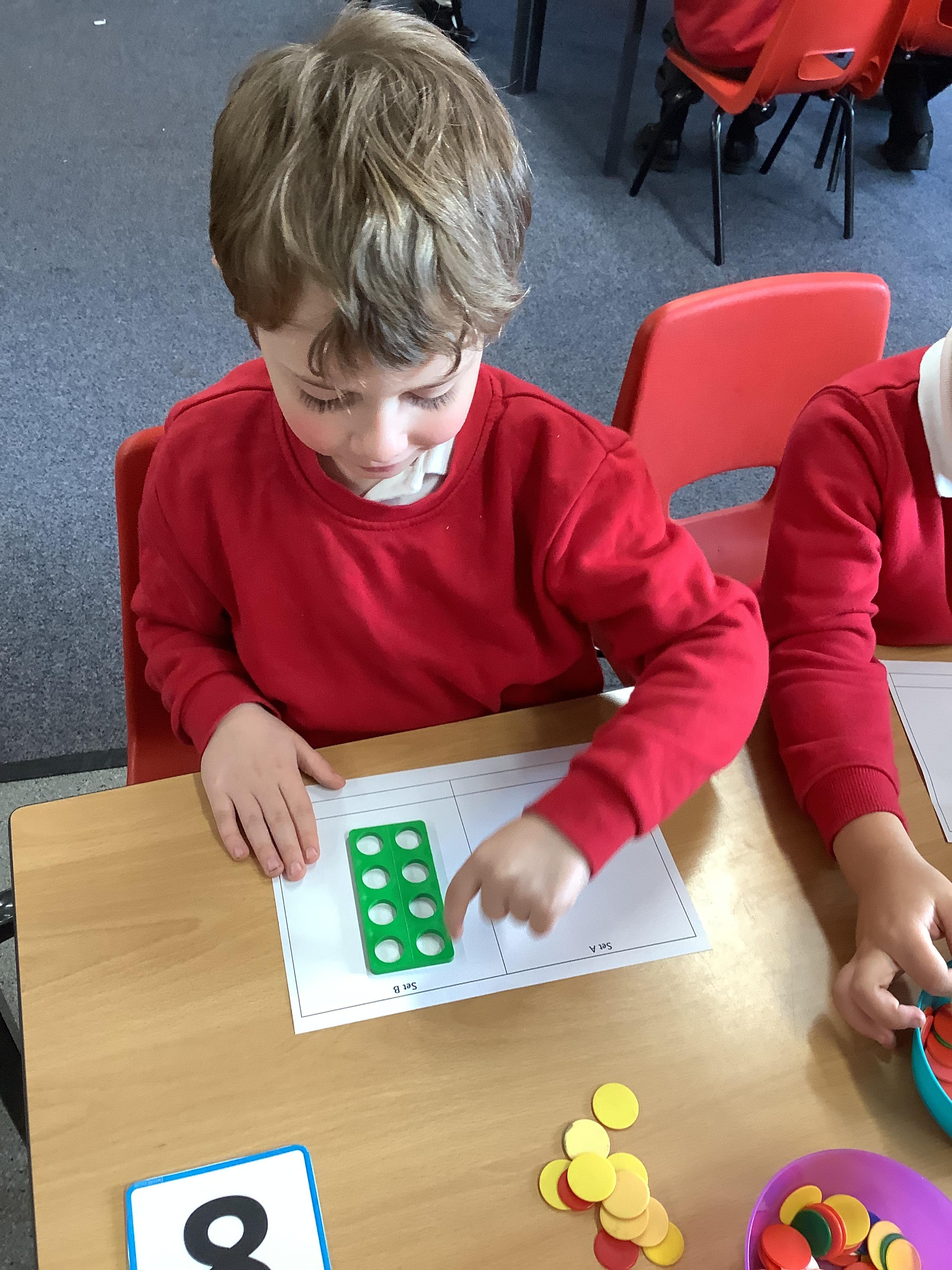 In maths we compared numbers. We used counters and pictures to check which numbers were greater than and less than.