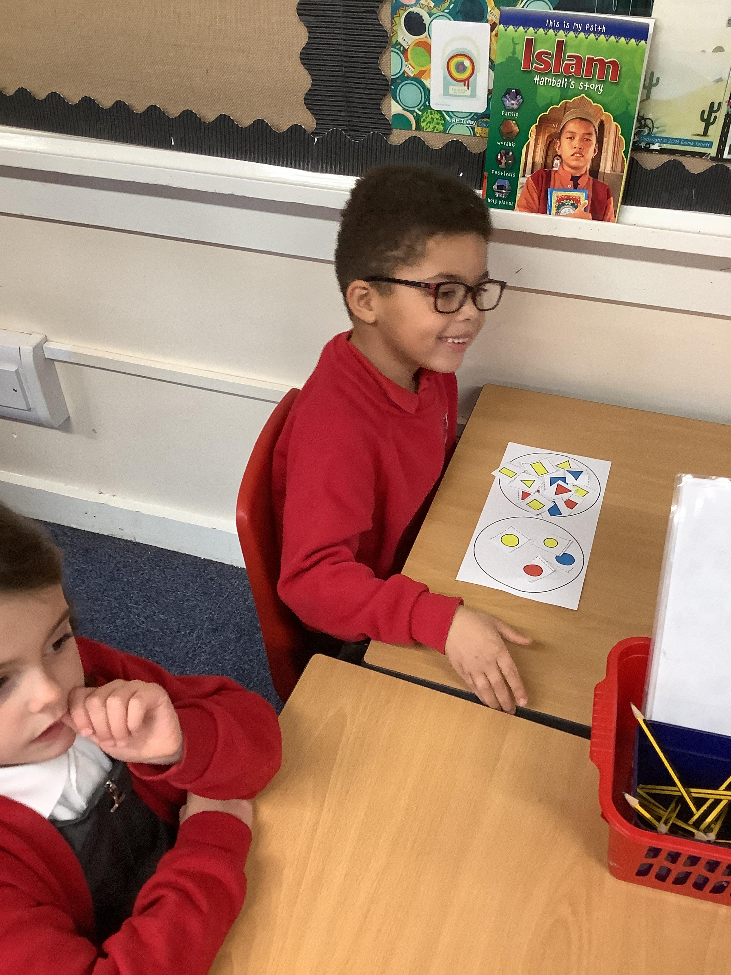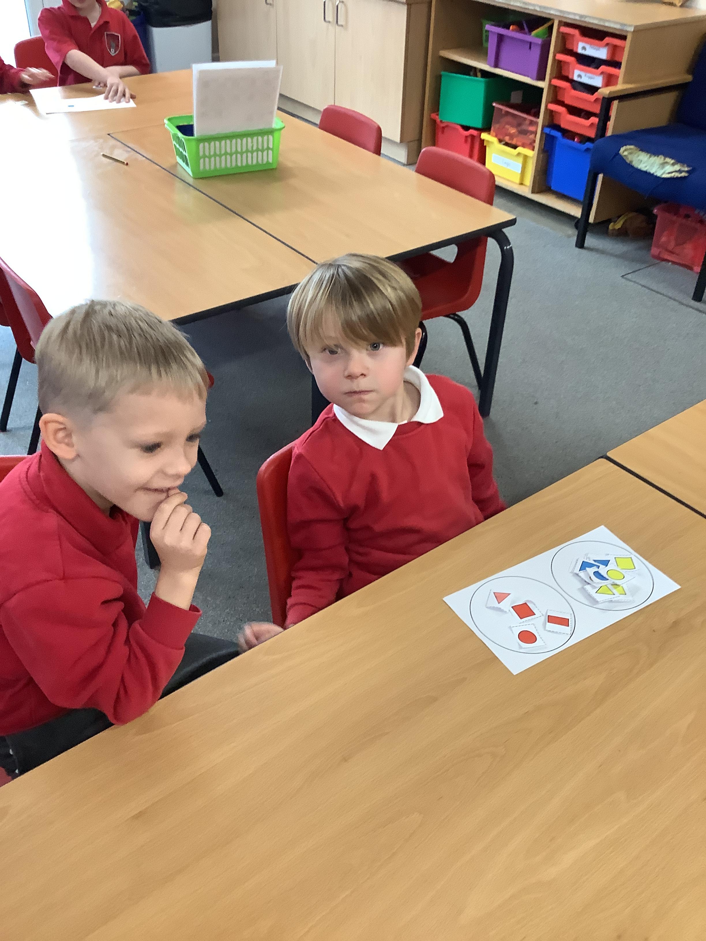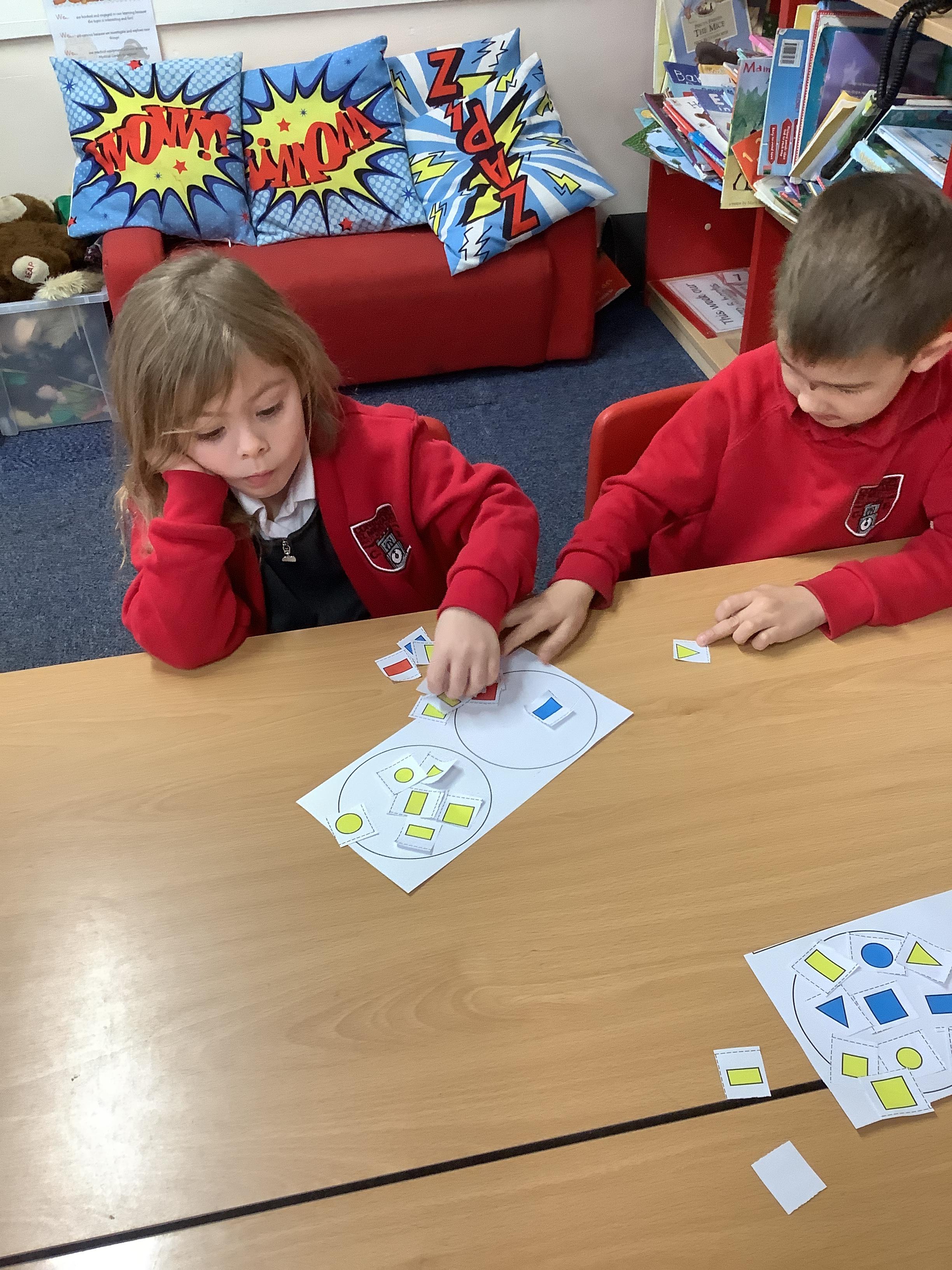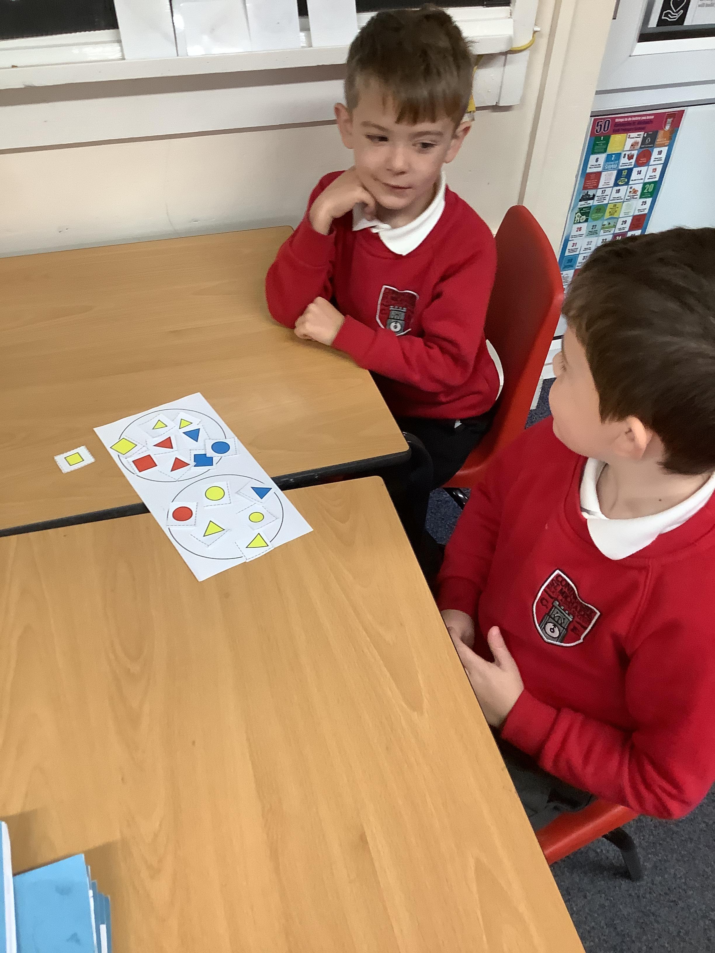In Maths we sorted 2D shapes and explained to our partner how we had sorted them.