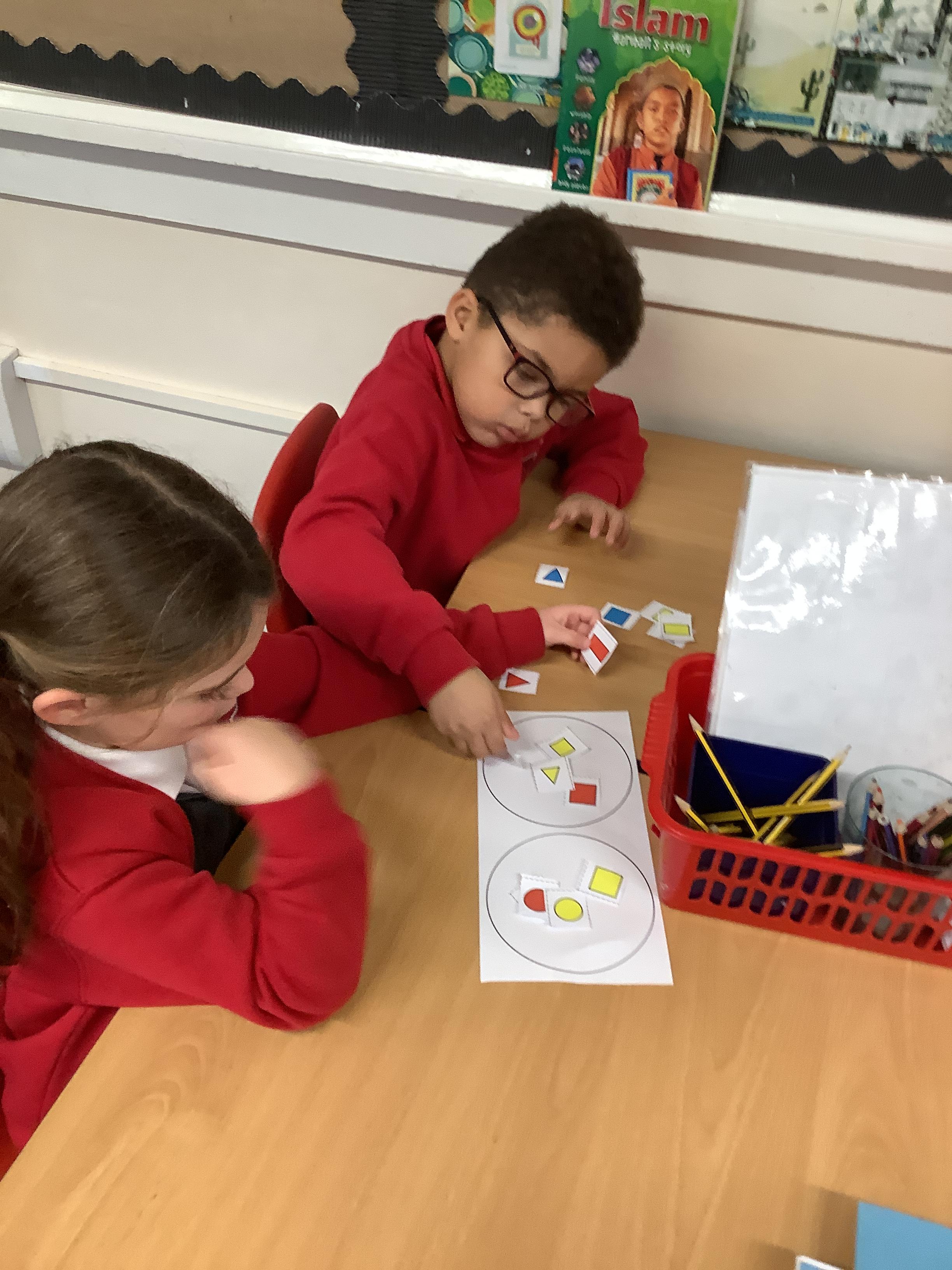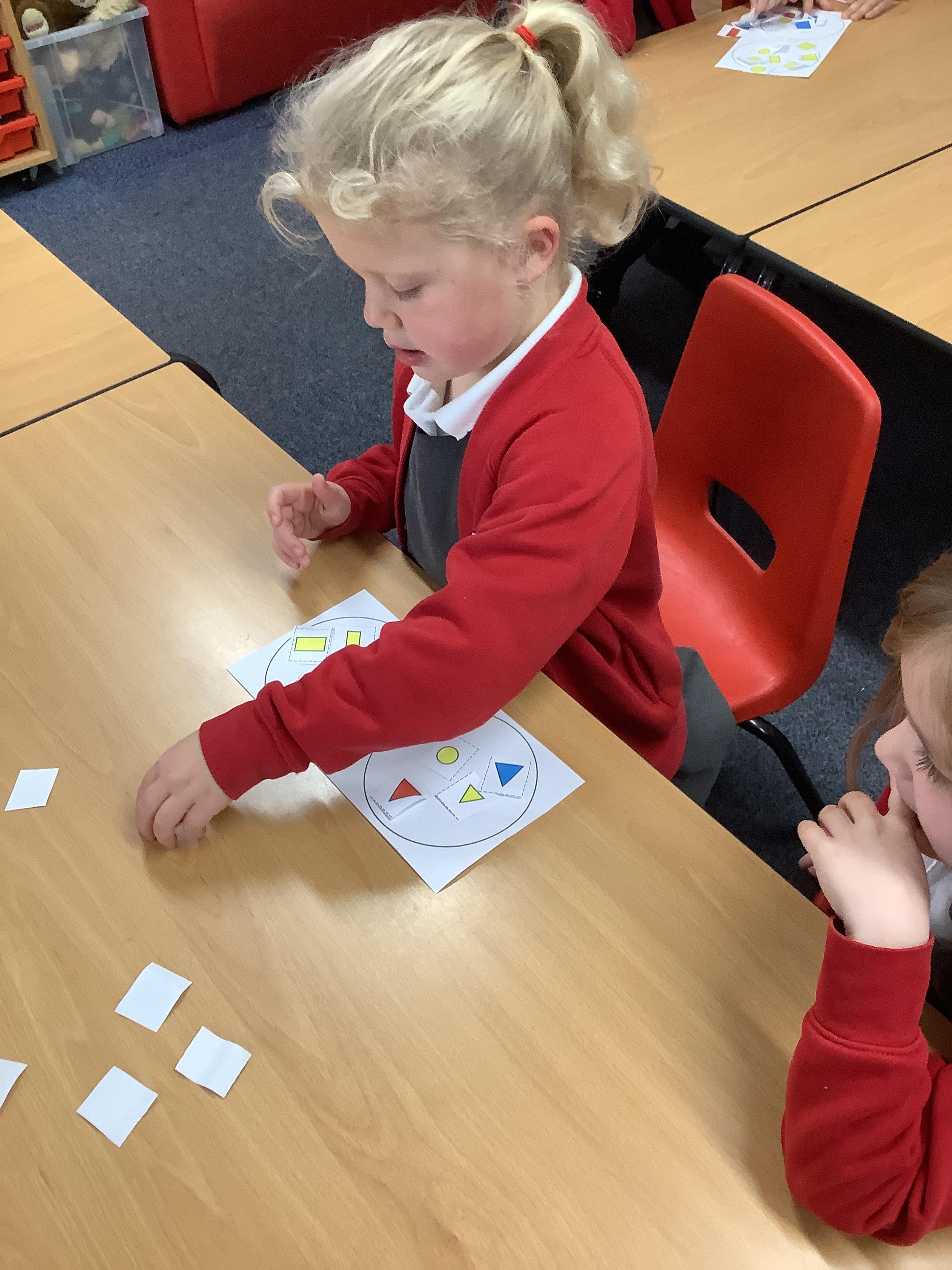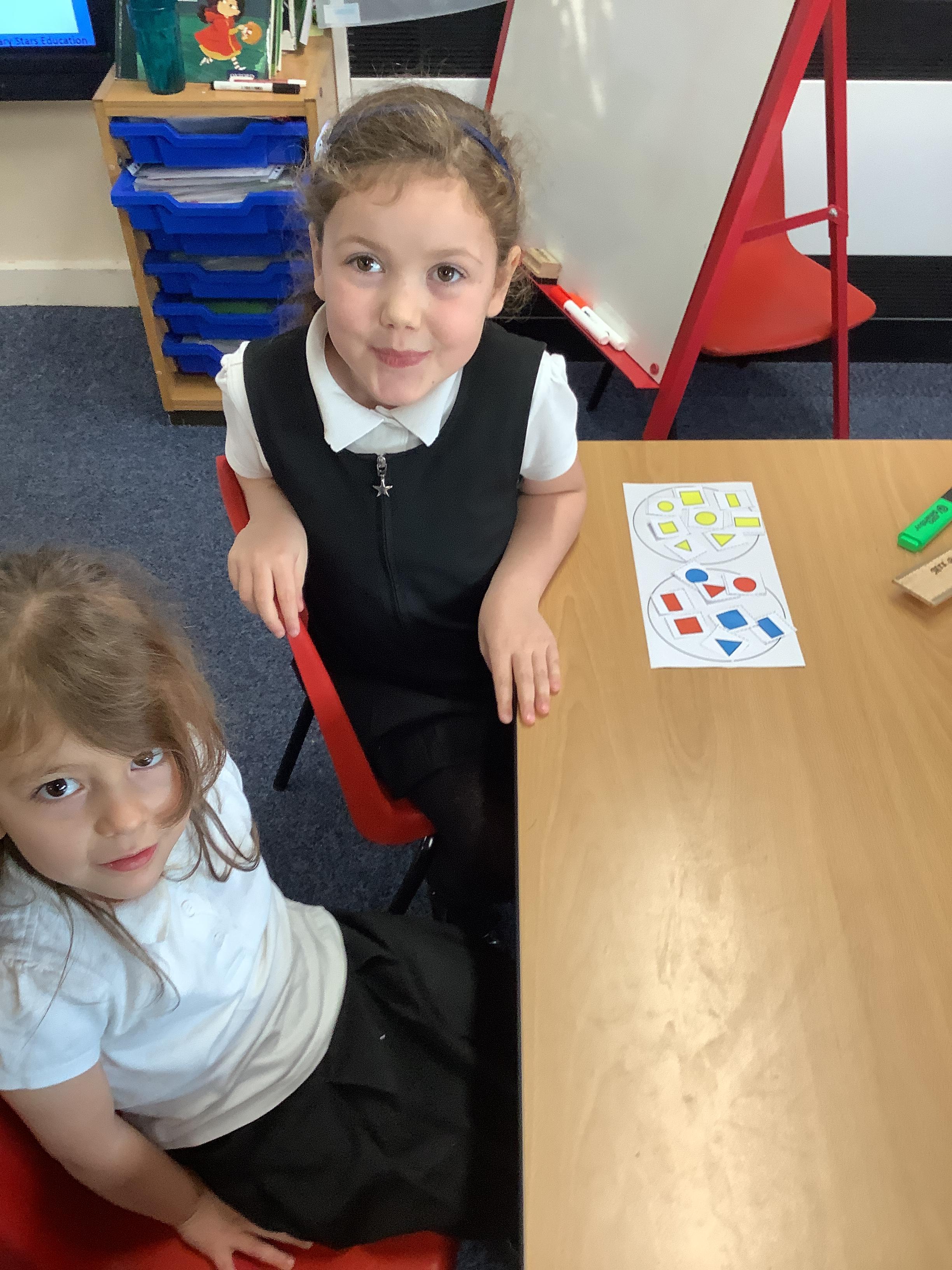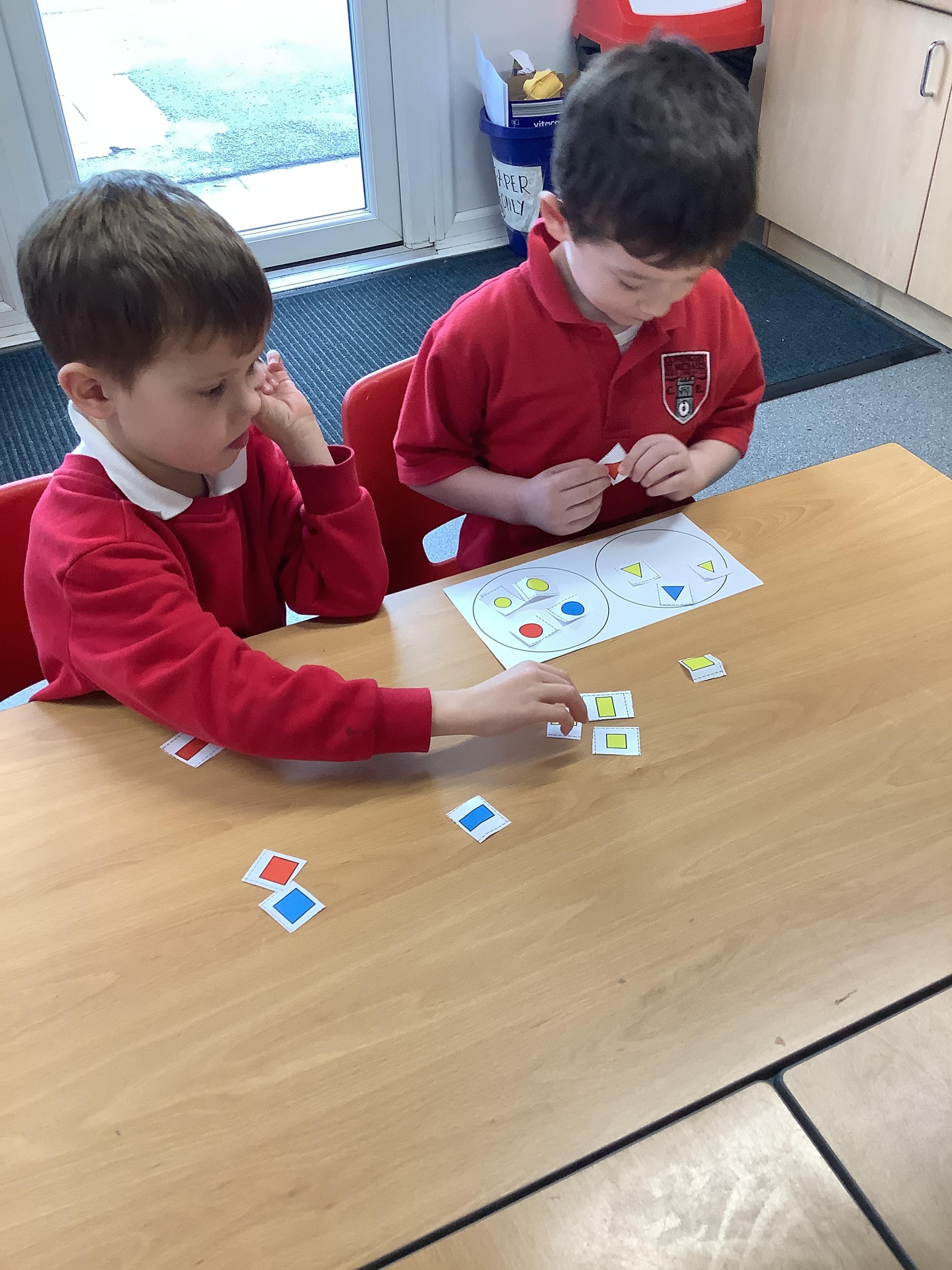 In Maths we sorted 2D shapes and explained to our partner how we had sorted them.