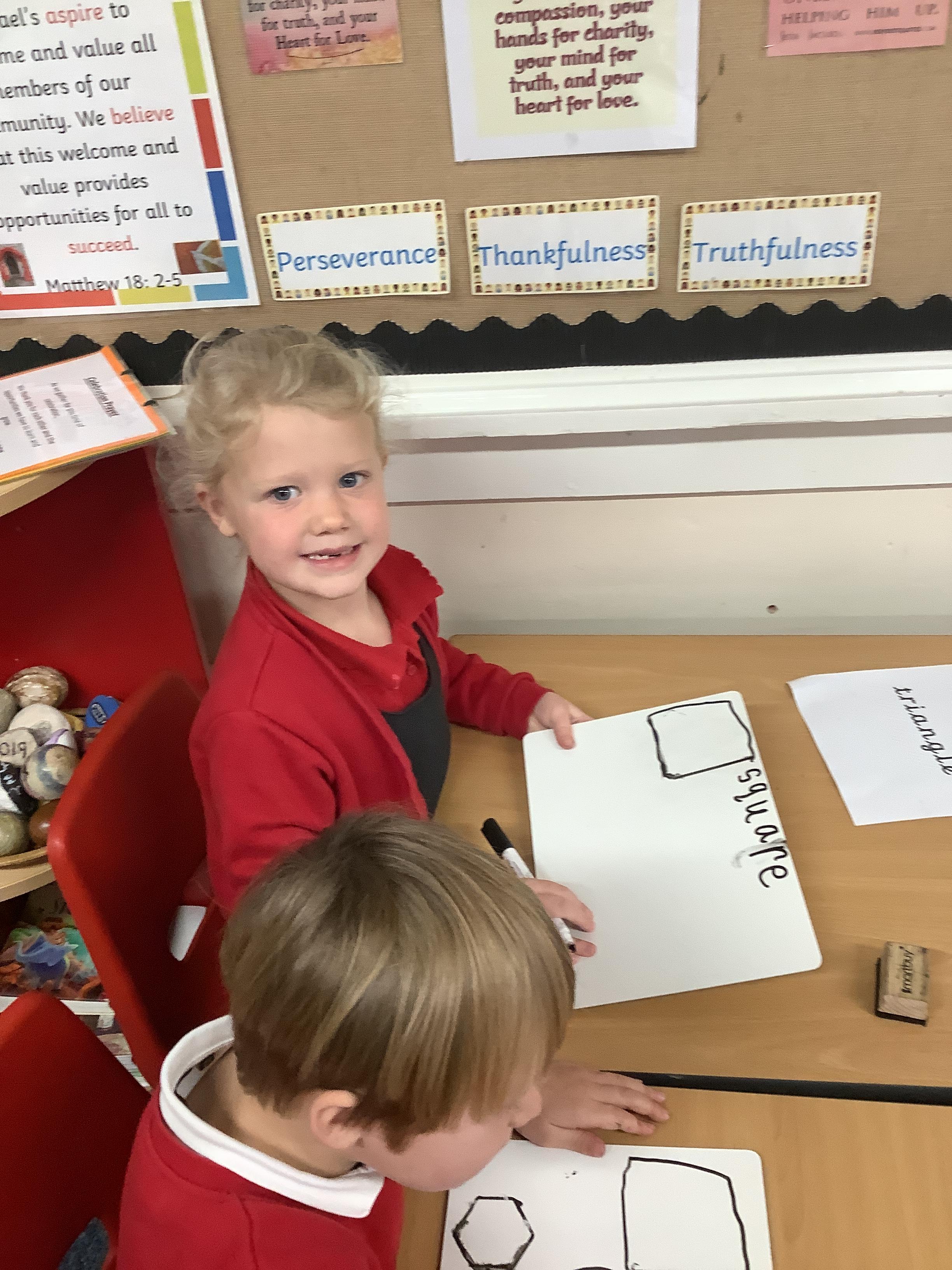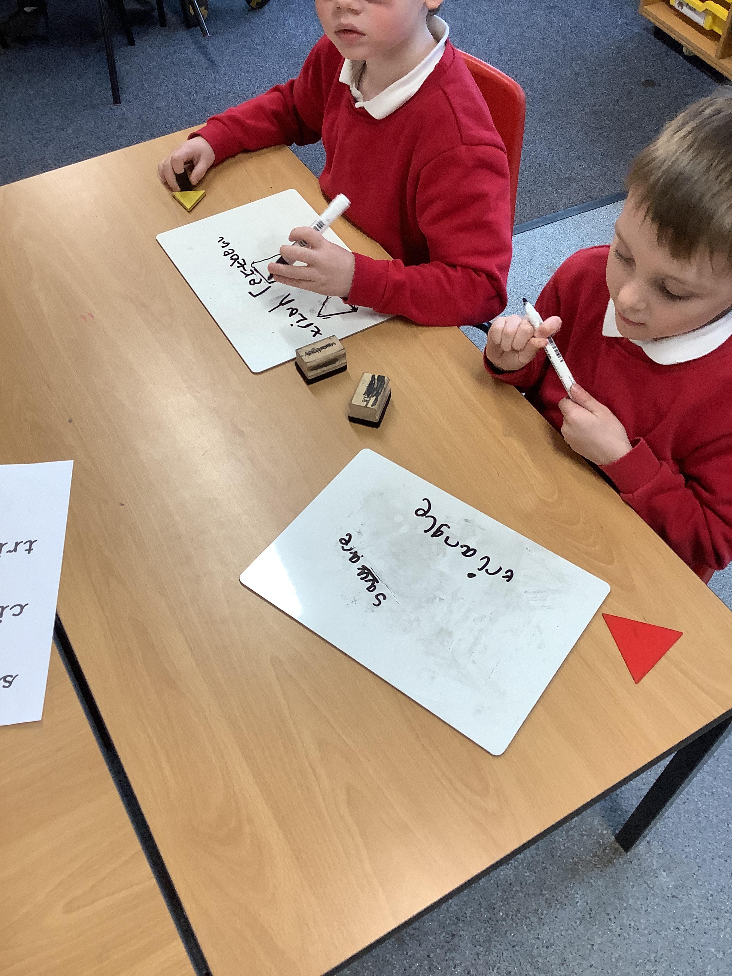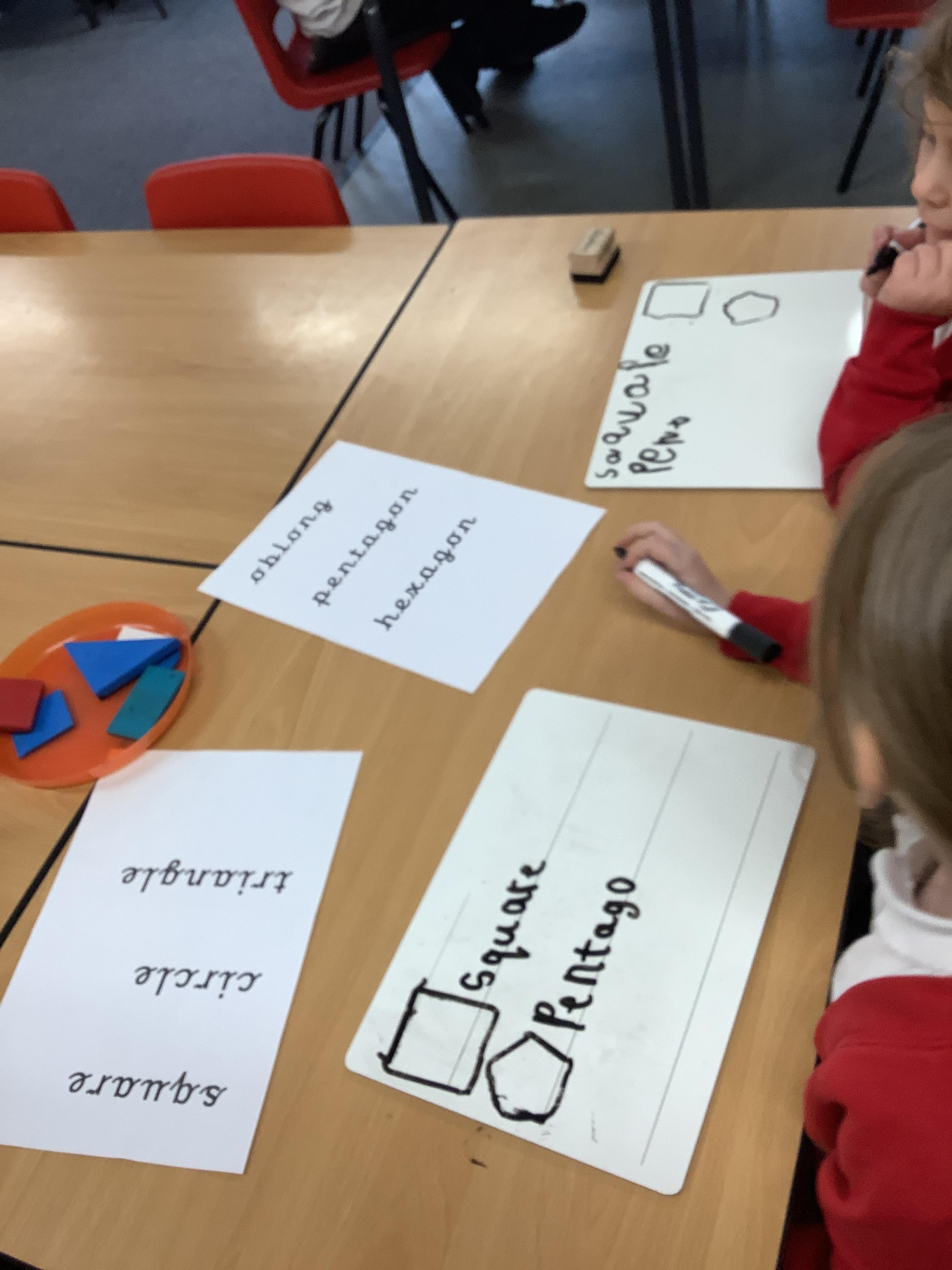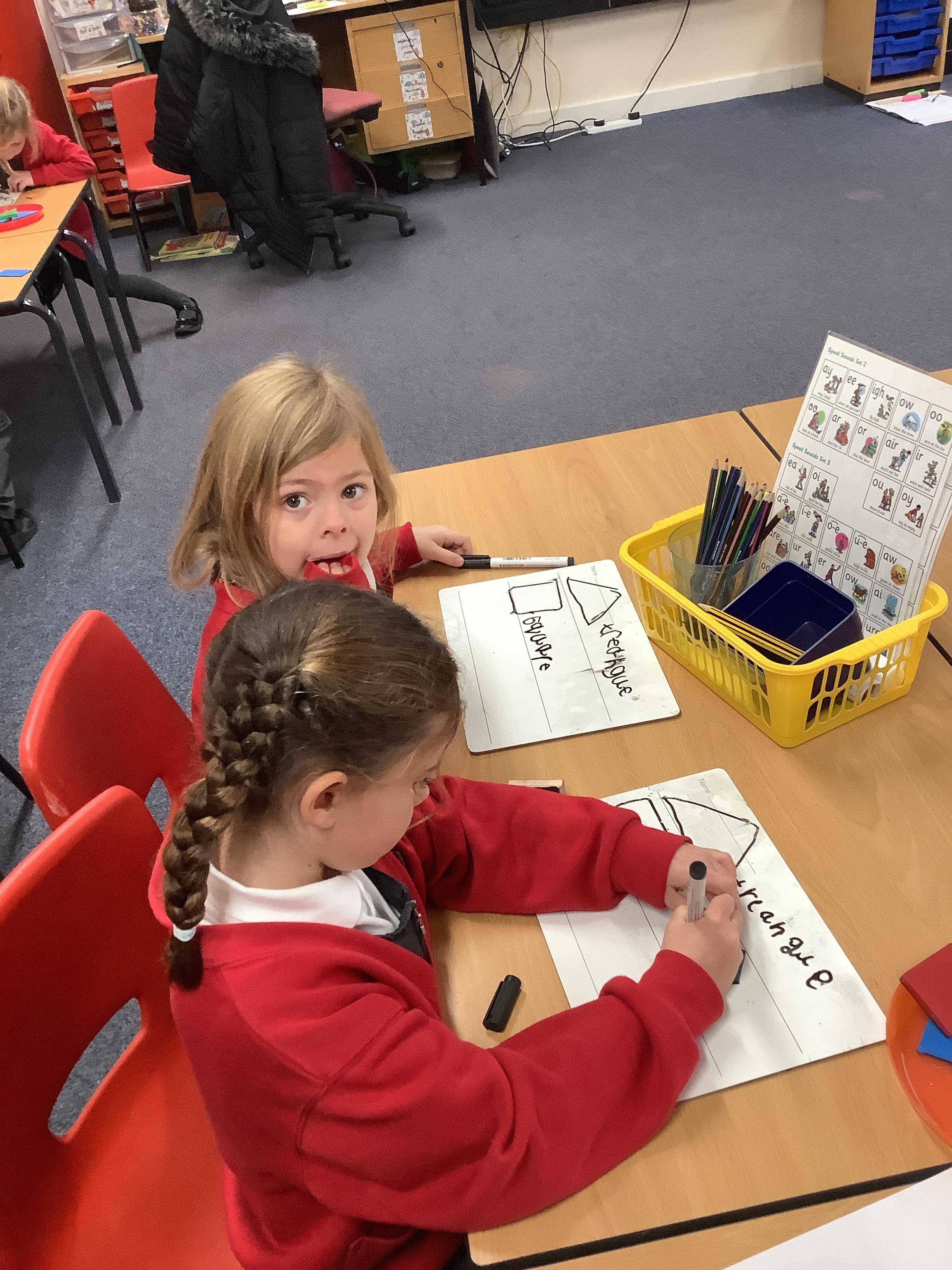 In Maths we sorted 2D shapes and explained to our partner how we had sorted them.