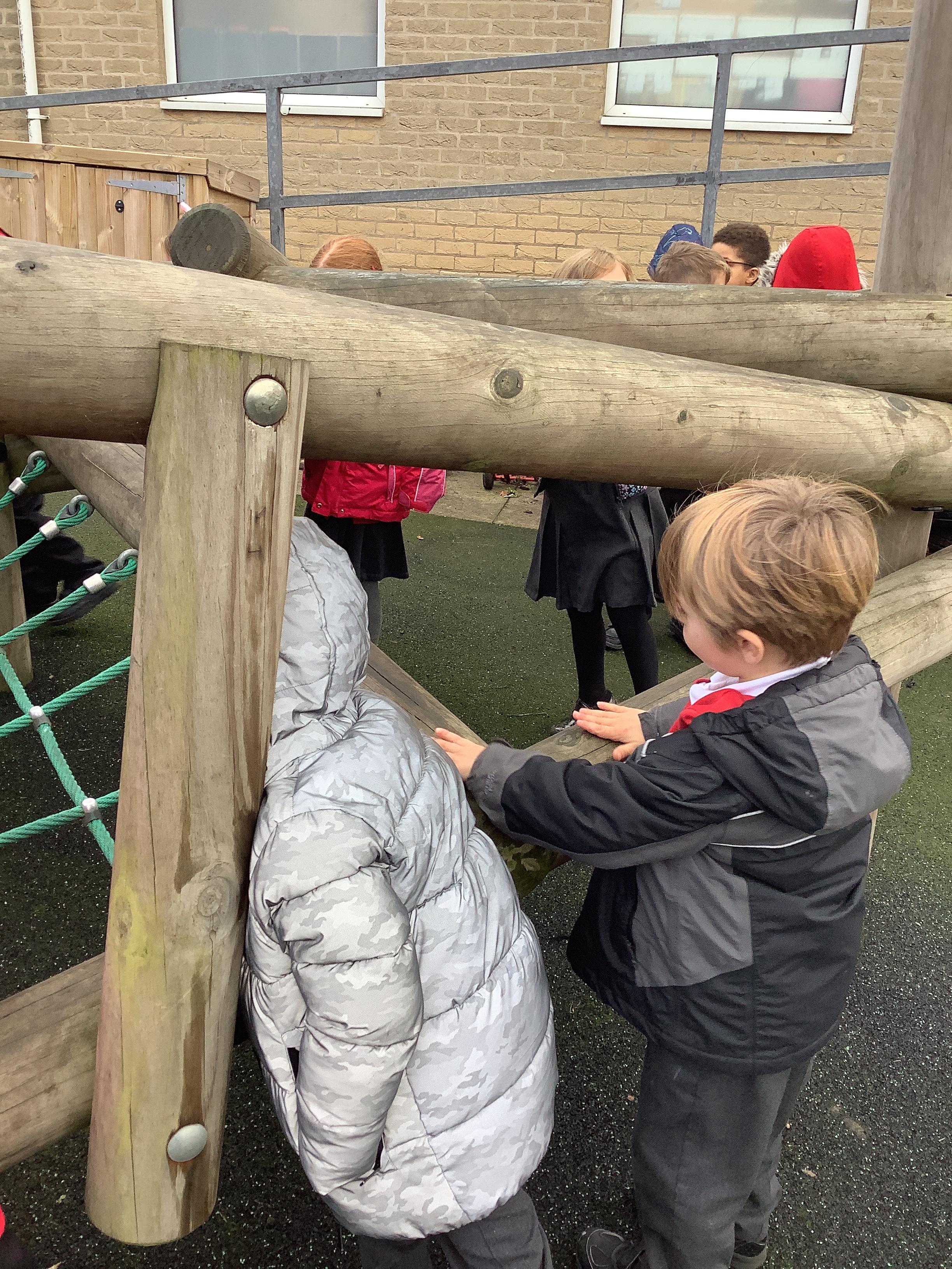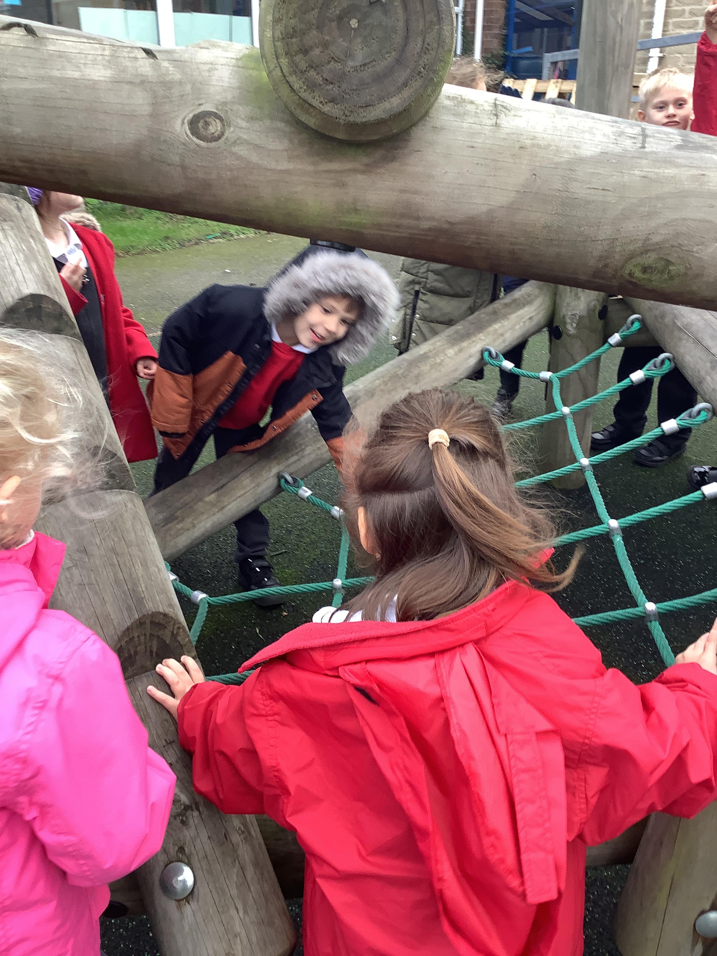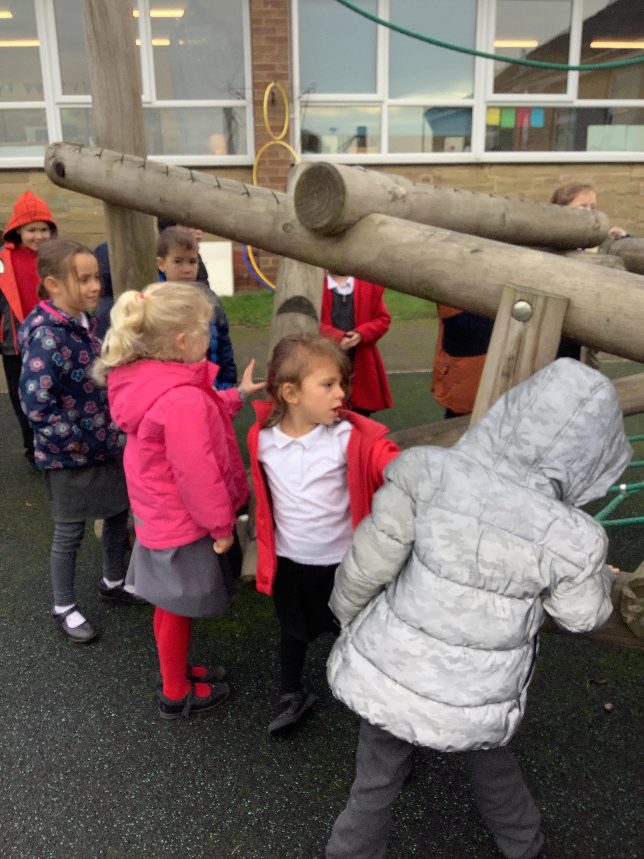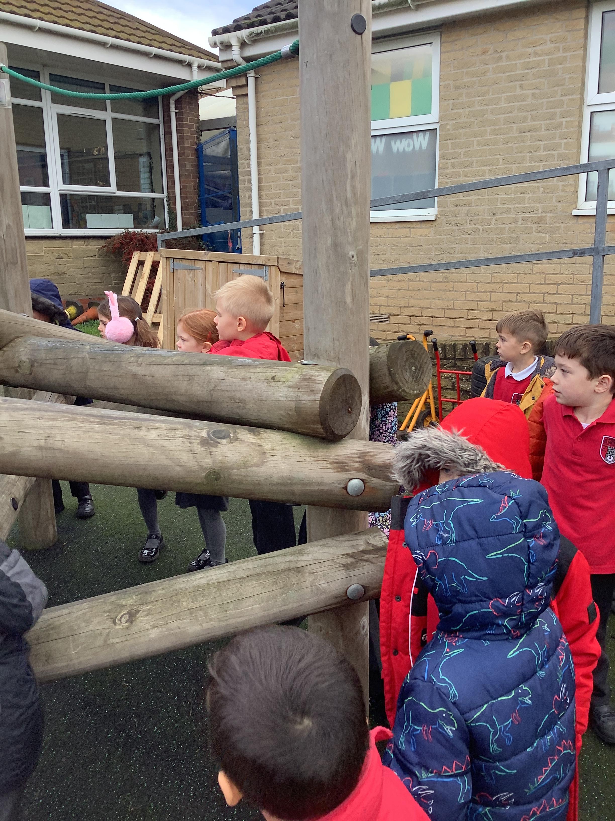 In Science this week we explored materials by taking about which material would be most suitable for a dog lead, bouncy ball and climbing frame. We went outside to explore the materials the climbing frame is made from.